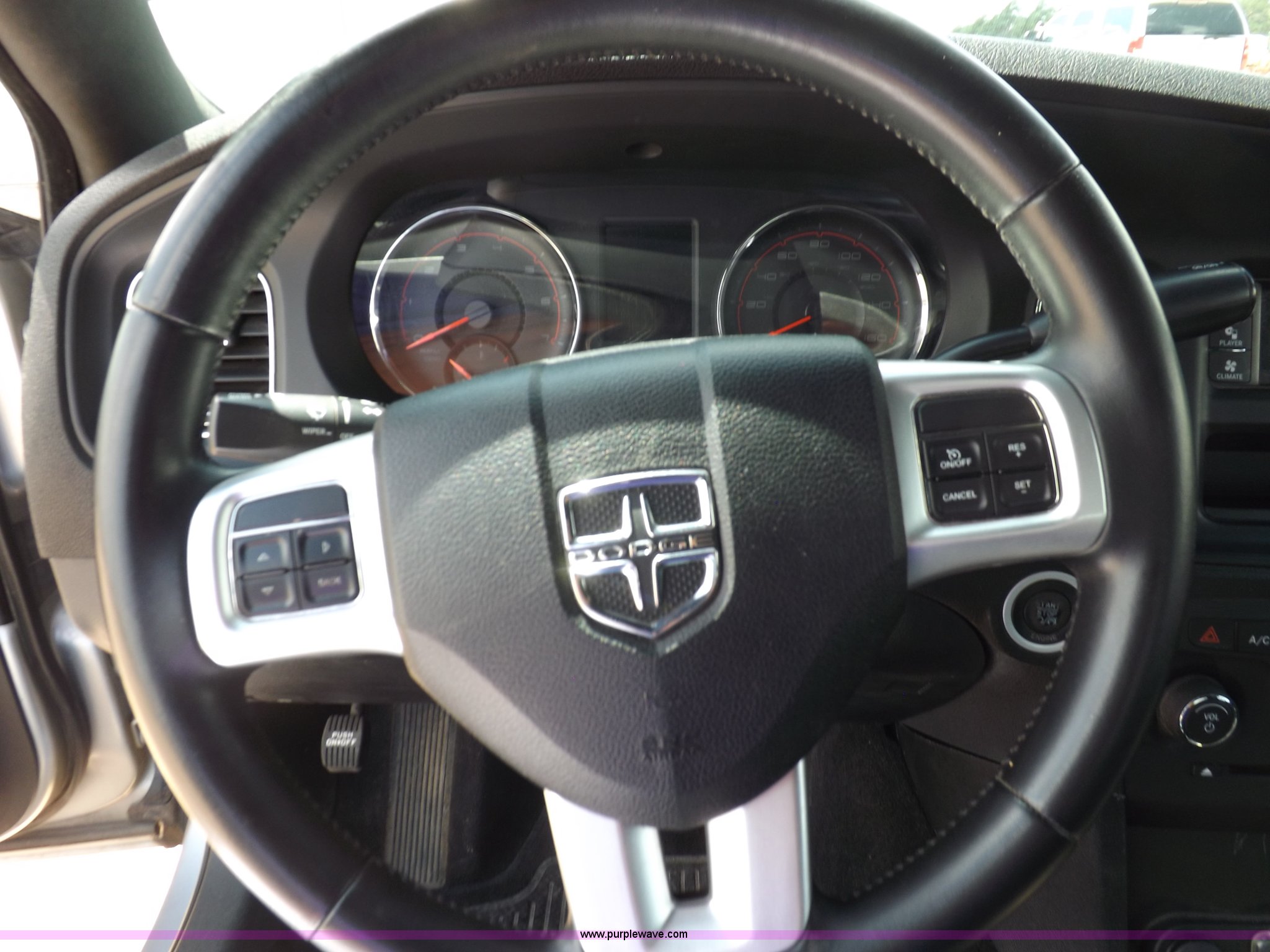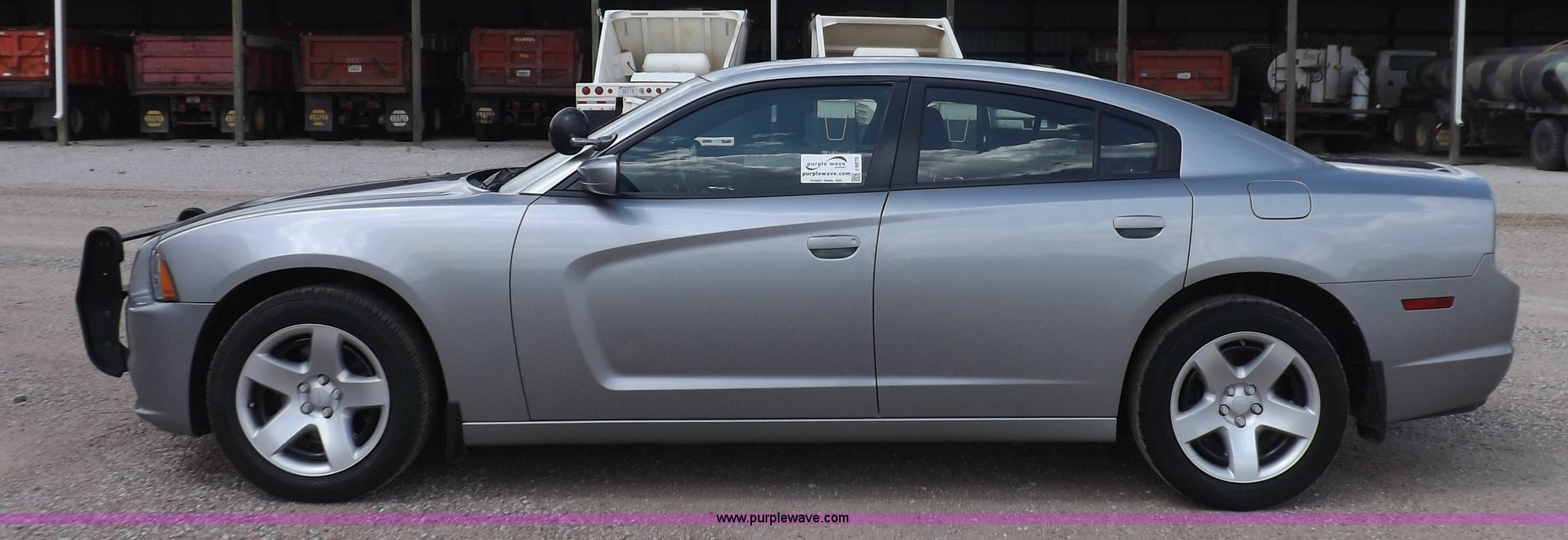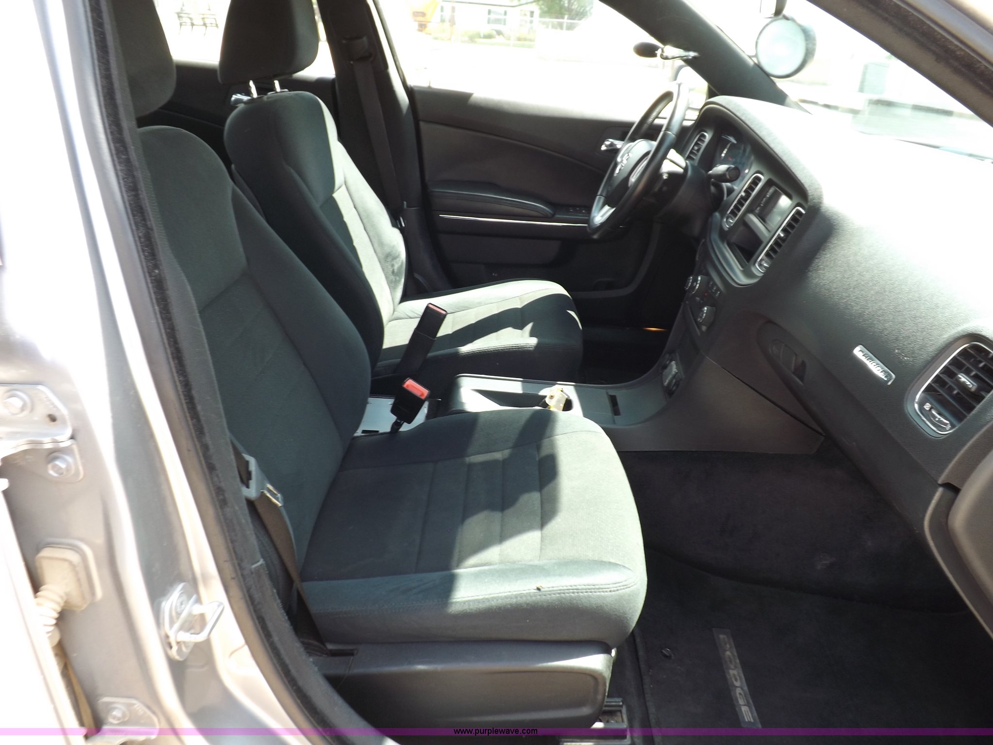 Purple Wave is selling a used Passenger Vehicle in Kansas. This item is a 2011 Dodge Charger Police with the following: 63,589 miles on odometer, 5.7L V8 OHV 16V gas engine, Engine replaced at 49,329 miles, Automatic transmission, AC and heat, Tilt, Cruise, AM/FM/CD, Power windows, locks, mirrors, and seat, Cloth front interior, Vinyl rear interior, Pro-Gard push bar, 225/60R18 tires, Interior/exterior cosmetic damage, Roof drilled and plugged