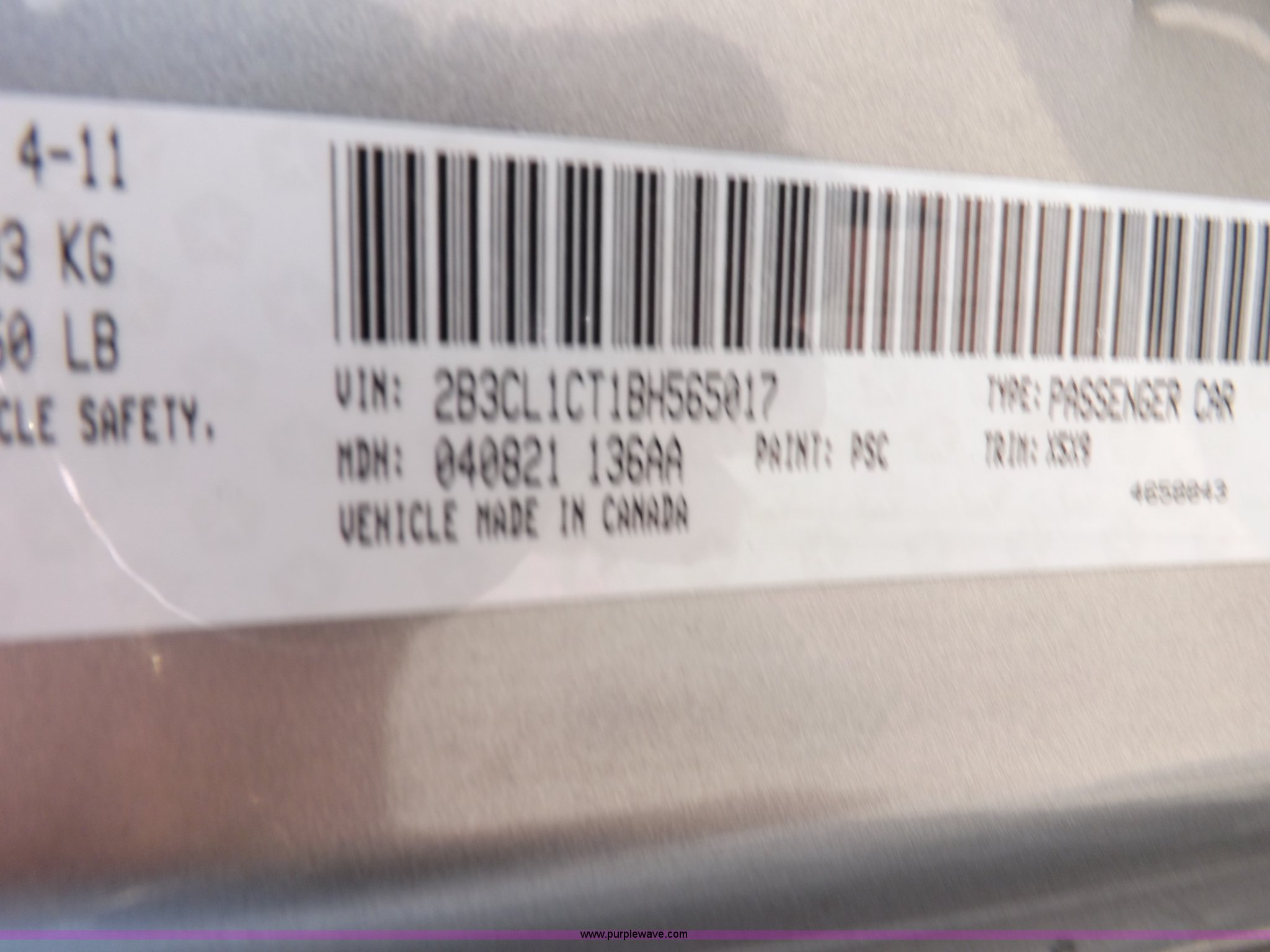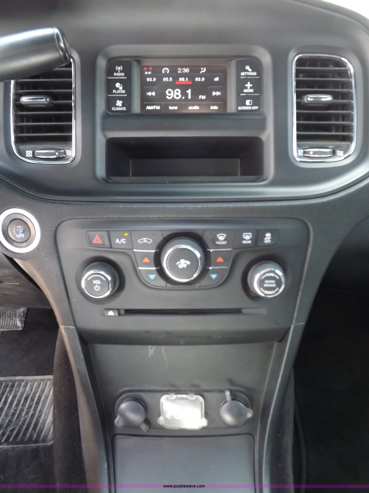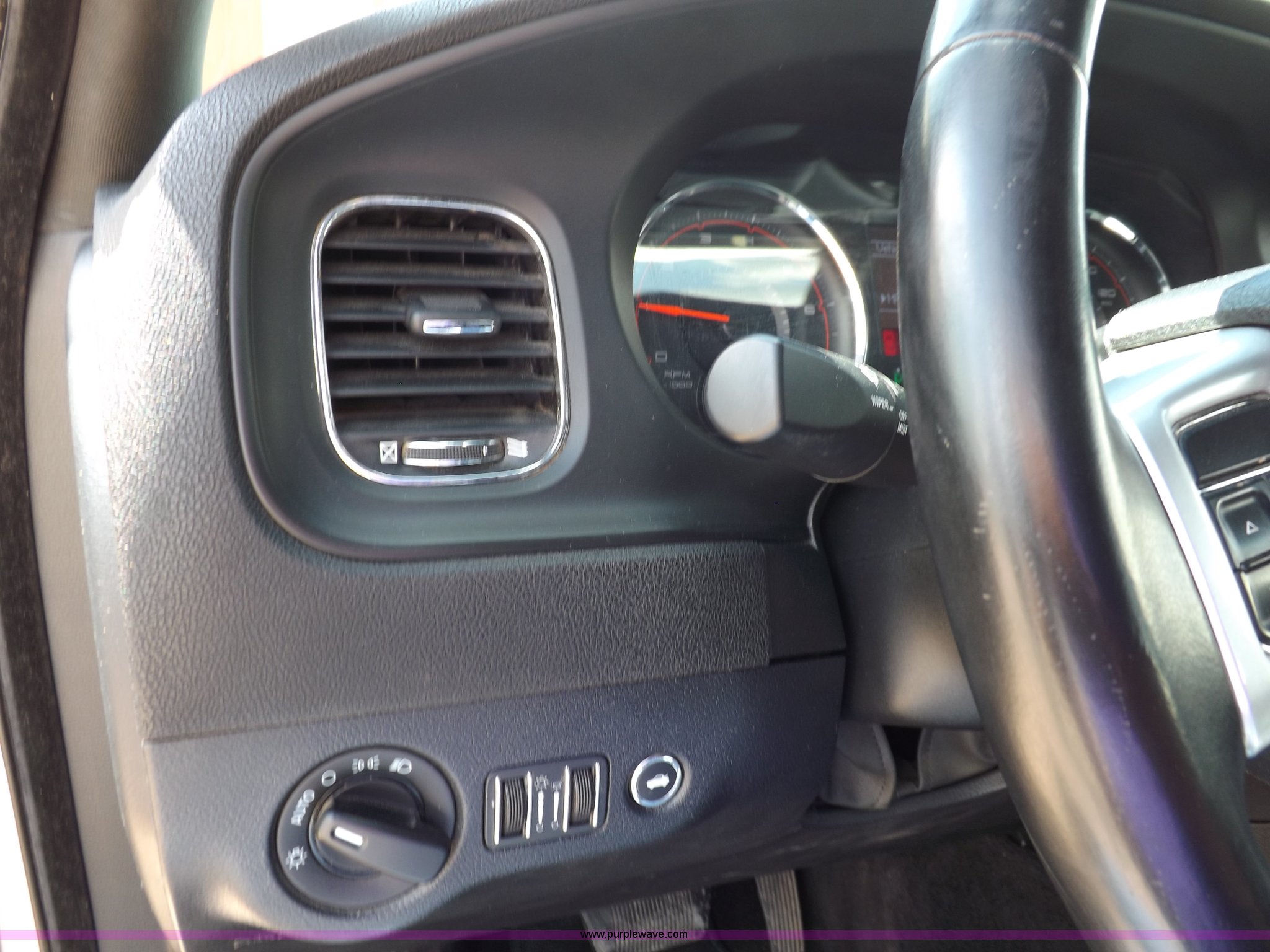 Purple Wave is selling a used Passenger Vehicle in Kansas. This item is a 2011 Dodge Charger Police with the following: 63,589 miles on odometer, 5.7L V8 OHV 16V gas engine, Engine replaced at 49,329 miles, Automatic transmission, AC and heat, Tilt, Cruise, AM/FM/CD, Power windows, locks, mirrors, and seat, Cloth front interior, Vinyl rear interior, Pro-Gard push bar, 225/60R18 tires, Interior/exterior cosmetic damage, Roof drilled and plugged