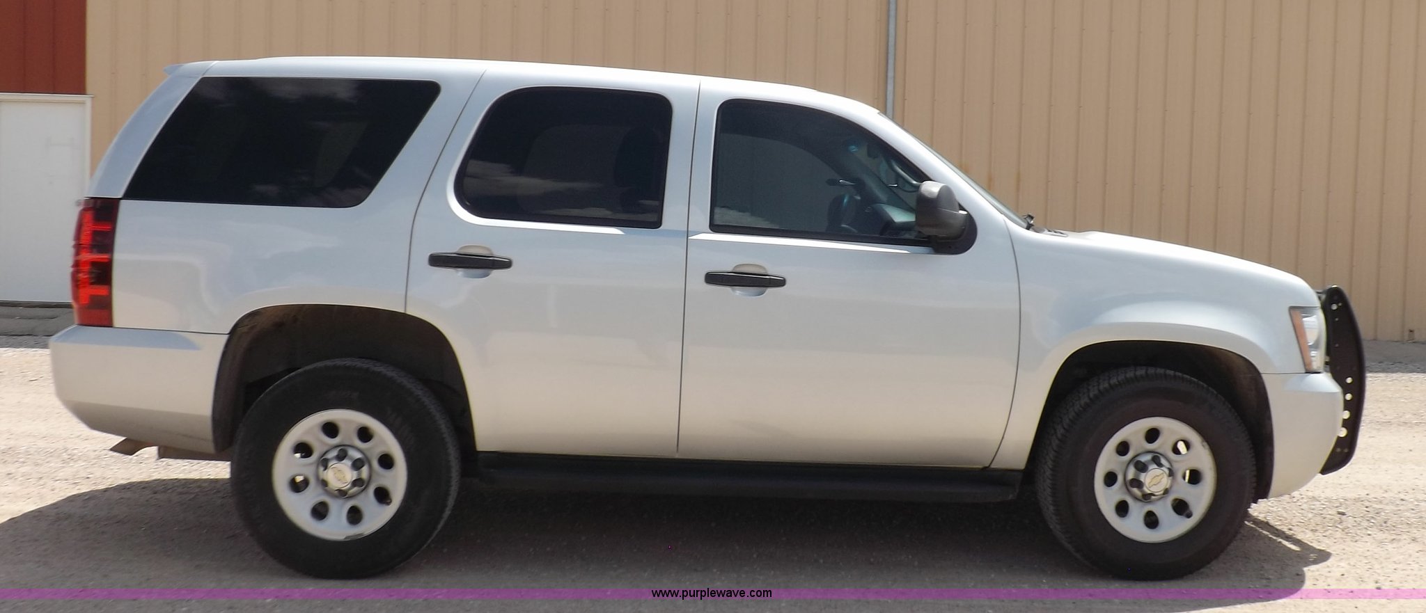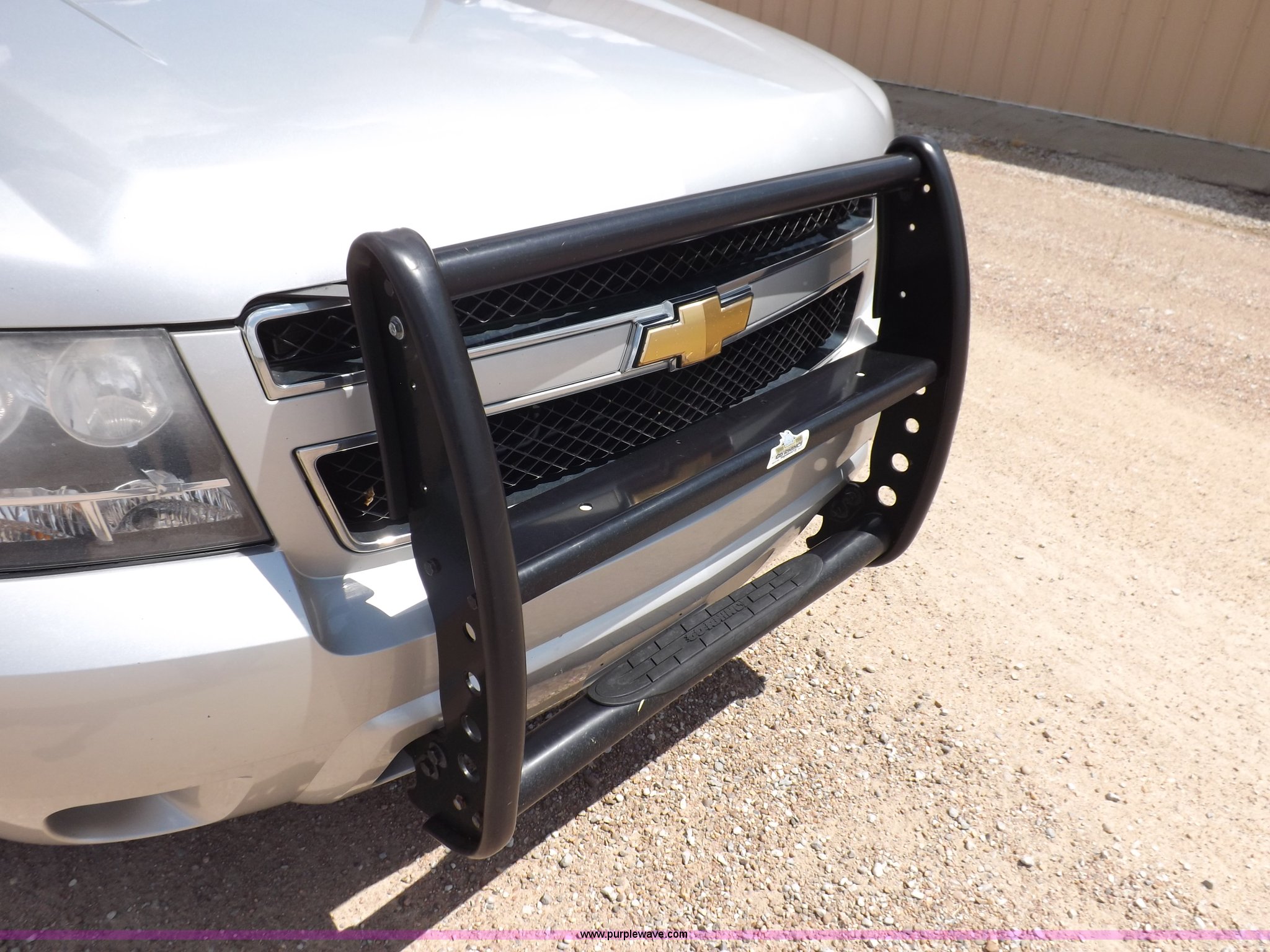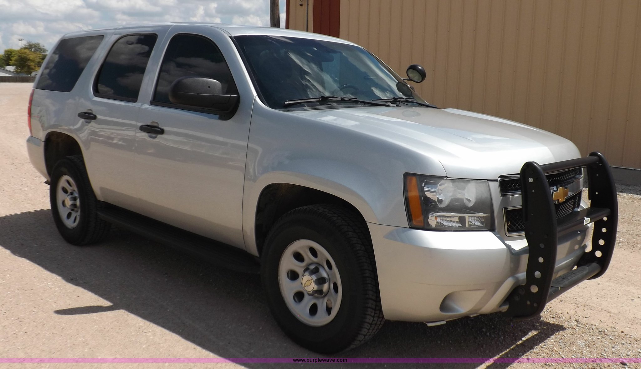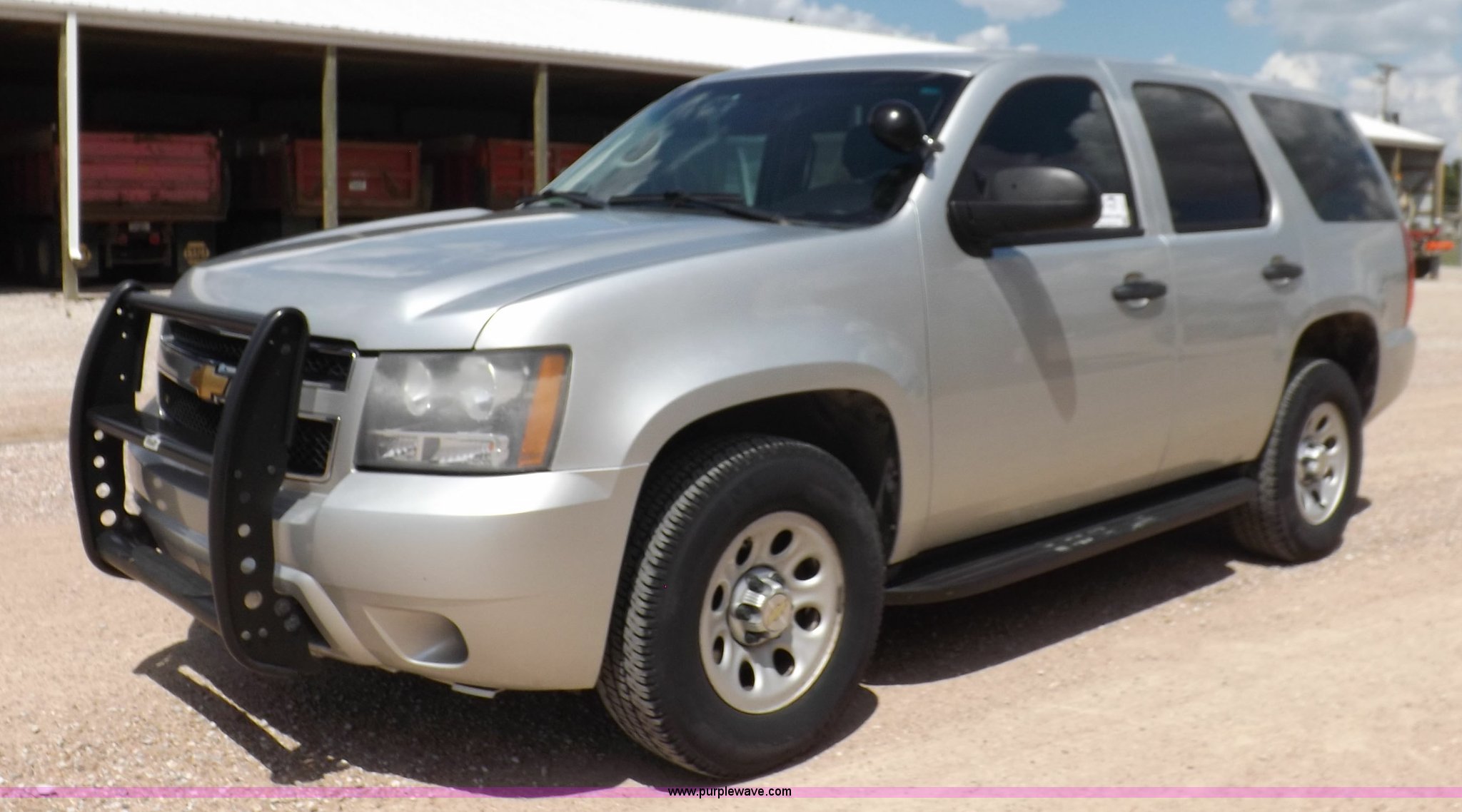 2010 Chevrolet Tahoe SUV. 90,610 miles on odometer, 5.3L V8 OHV 16V FFV gas engine Engine replaced at 90,527 miles, Automatic transmission, Four wheel drive, AC and heat, Tilt, Cruise, AM/FM/CD, Power windows, locks, mirrors,a nd seats, Cloth front interior, Vinyl rear interior, Spotlight, Go Rhino push bar, Running boards, Receiver hitch, Trailer wiring, 265/70R17 tires, Interior/exterior cosmetic damage, Dash cracked, Roof drilled and plugged, Mirrors drilled, No center console, No carpet. 1GNUKAE02AR221940. Haskell County Sheriffs Department. 300 S Inman. Sublette, KS 67877