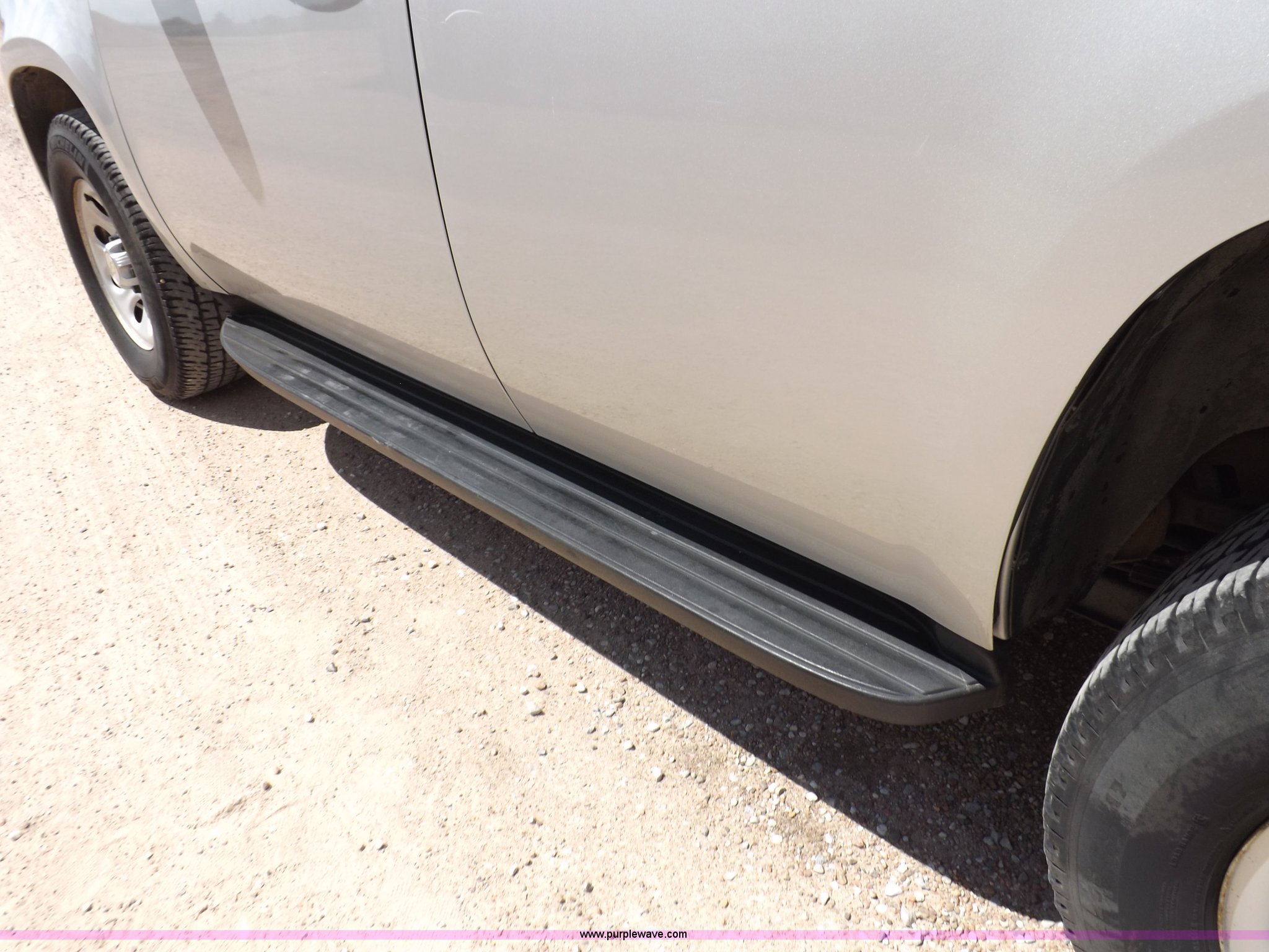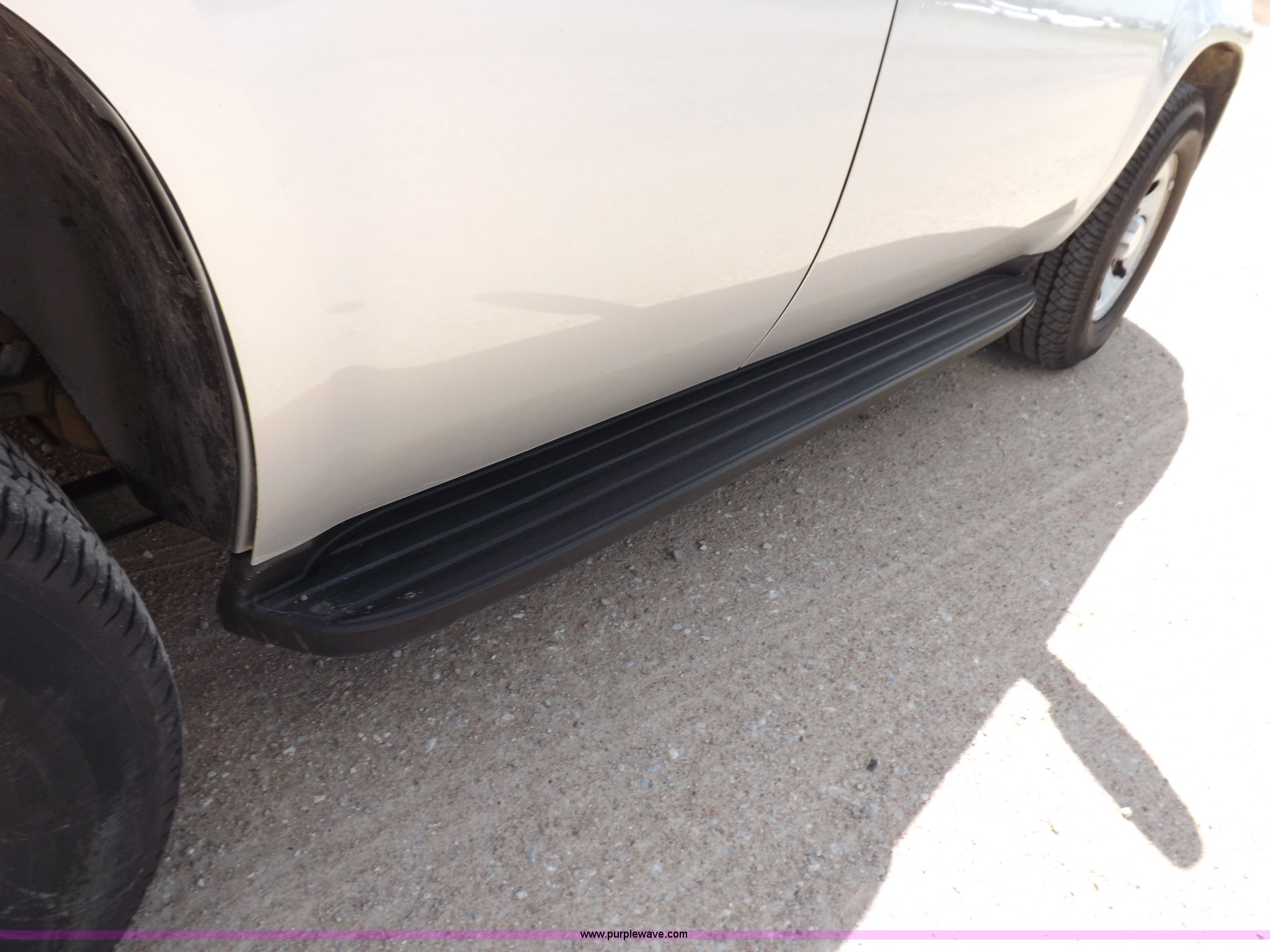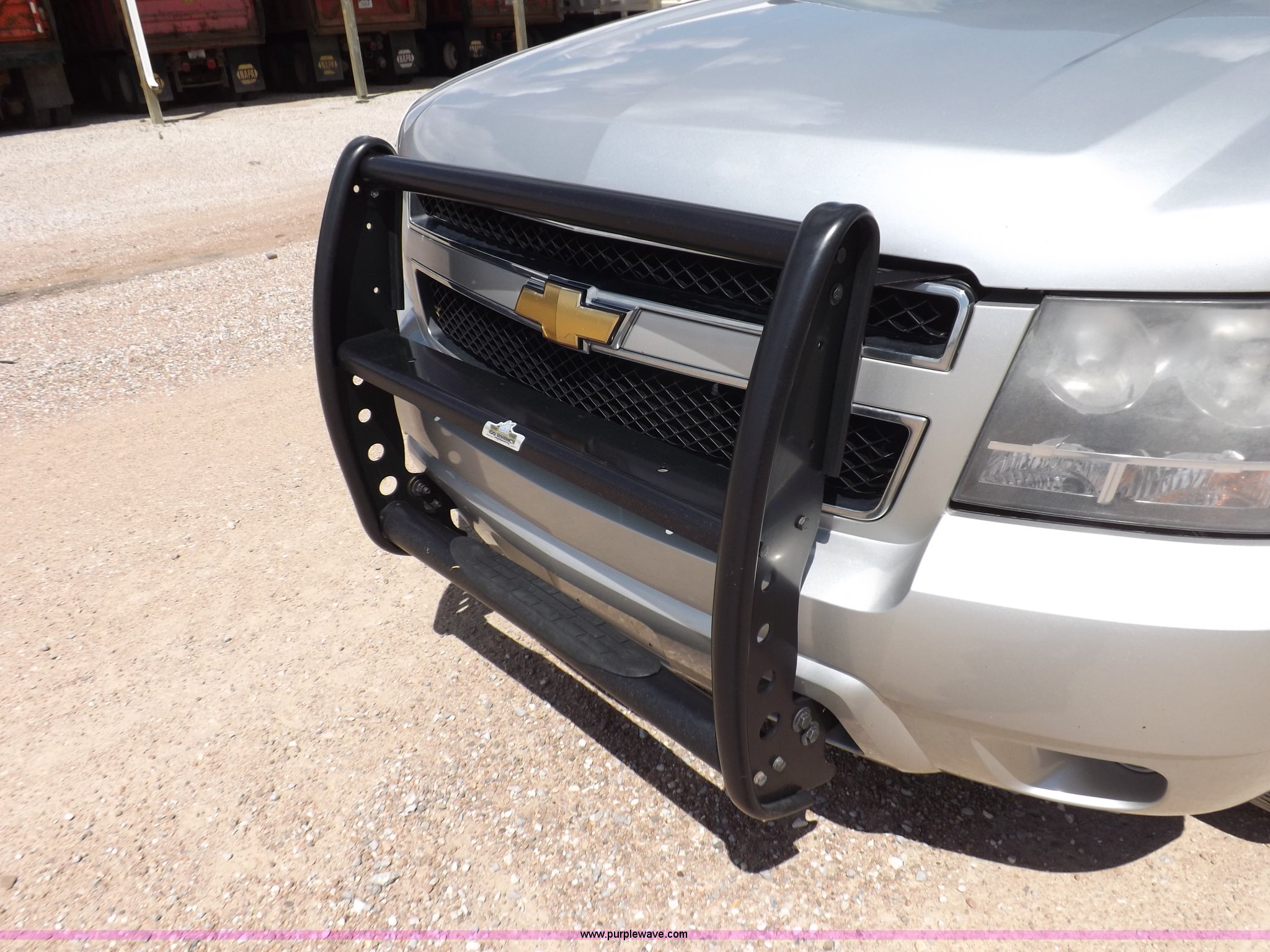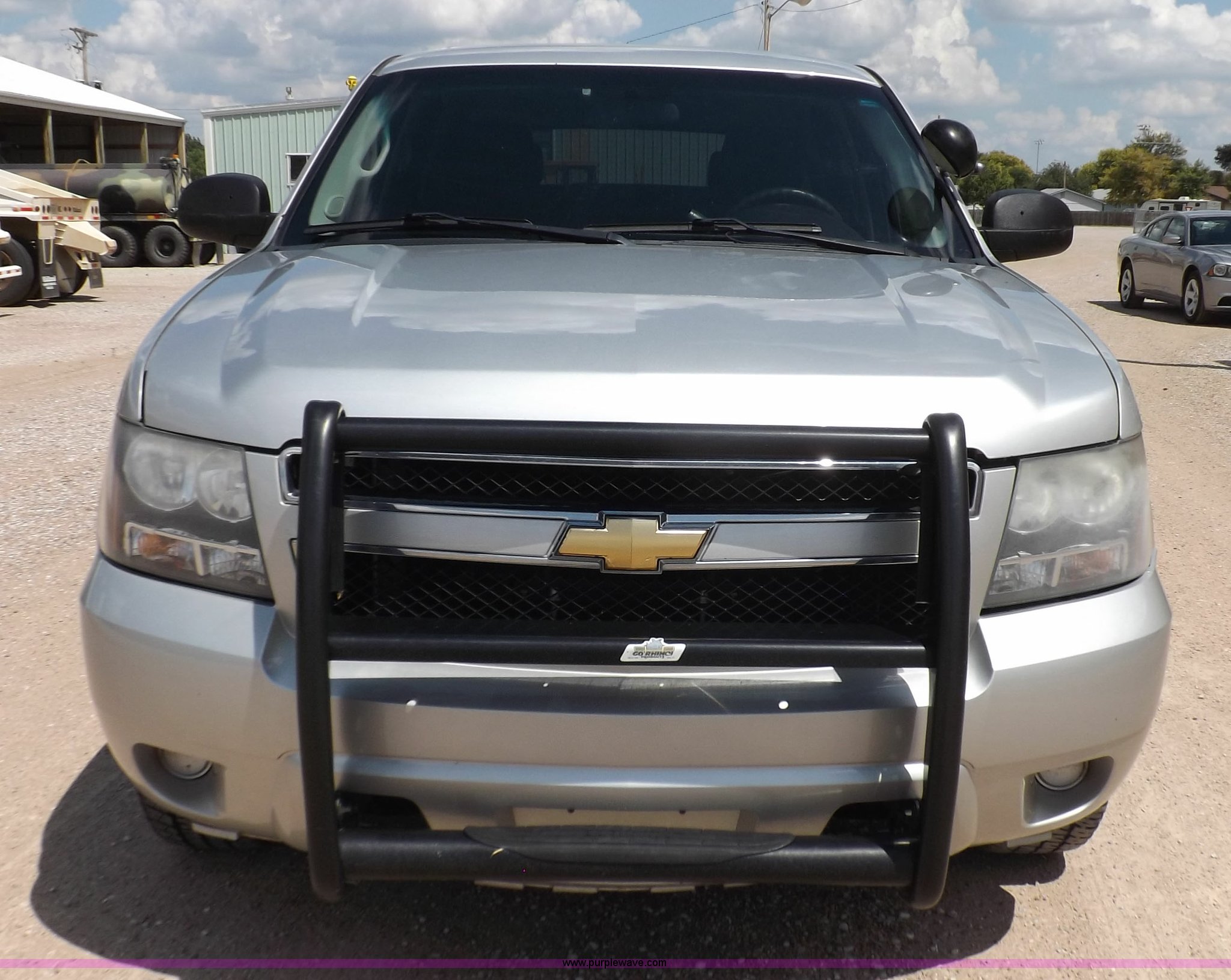 2010 Chevrolet Tahoe SUV. 90,610 miles on odometer, 5.3L V8 OHV 16V FFV gas engine Engine replaced at 90,527 miles, Automatic transmission, Four wheel drive, AC and heat, Tilt, Cruise, AM/FM/CD, Power windows, locks, mirrors,a nd seats, Cloth front interior, Vinyl rear interior, Spotlight, Go Rhino push bar, Running boards, Receiver hitch, Trailer wiring, 265/70R17 tires, Interior/exterior cosmetic damage, Dash cracked, Roof drilled and plugged, Mirrors drilled, No center console, No carpet. 1GNUKAE02AR221940. Haskell County Sheriffs Department. 300 S Inman. Sublette, KS 67877