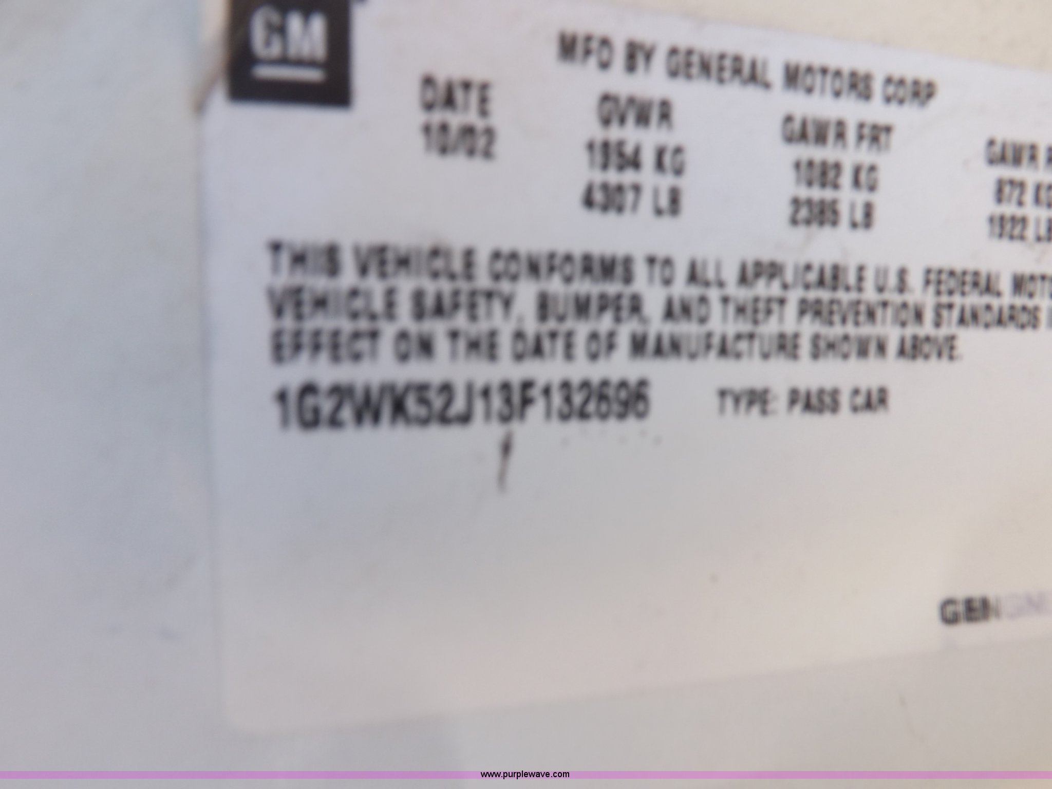 Purple Wave is selling a used Passenger Vehicle in Kansas. This item is a 2003 Pontiac Grand Prix SE with the following: 112,040 miles on odometer, 3.1L V6 OHV 12V gas engine, Automatic transmission, AC and heat, Tilt, Cruise, AM/FM/CD, Power windows, locks, mirrors, and seats, Cloth interior, 225/60R16 tires, Interior/exterior cosmetic damage, Windshield chipped
