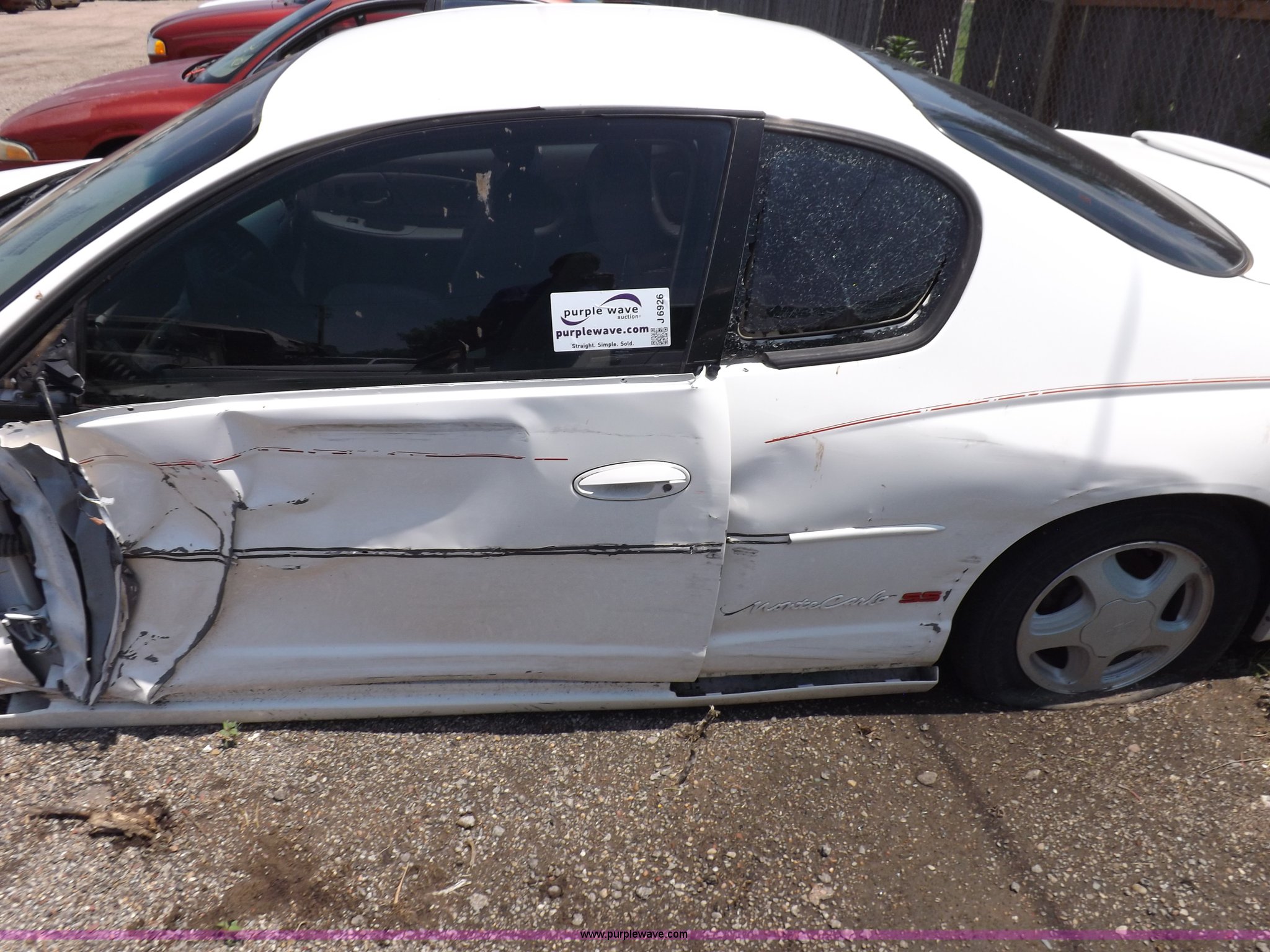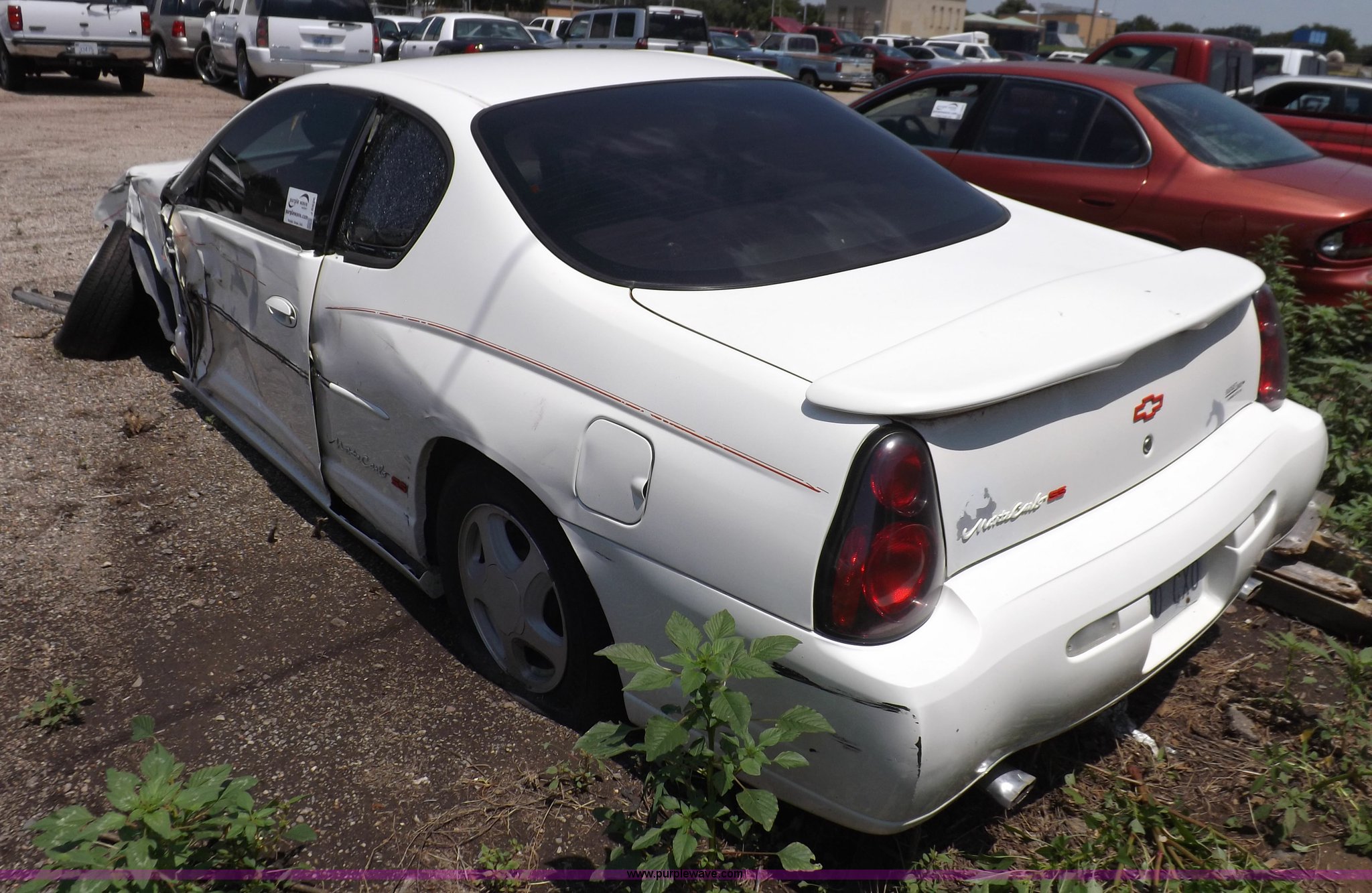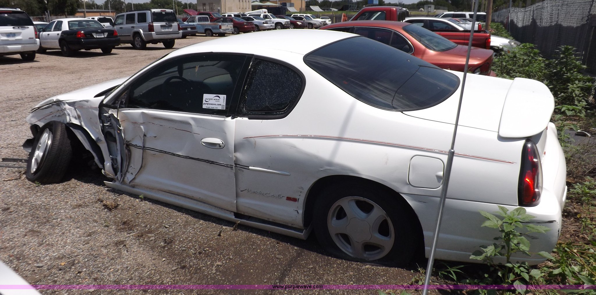 Purple Wave is selling a used Passenger Vehicle in Kansas. This item is a 2003 Chevrolet Monte Carlo SS with the following: Unknown miles on odometer, 3.8L V6 OHV 12V gas engine, Automatic transmission, AC and heat, Tilt, Cruise, AM/FM/CD/cassette, Power windows, locks, and mirrors, Leather interior, 225/60R16 tires, Battery dead, Vehicle wrecked, Driver's door will not open, No keys, Unknown running condition