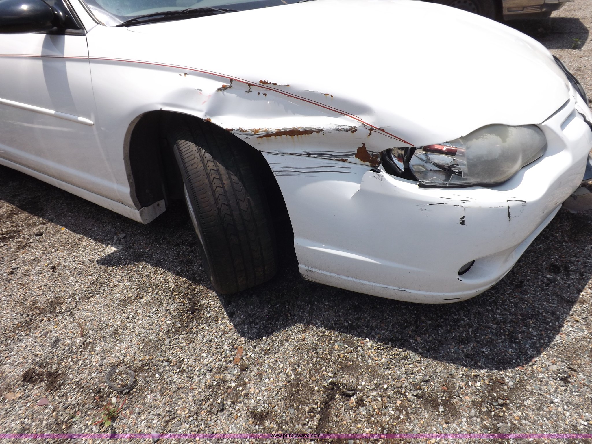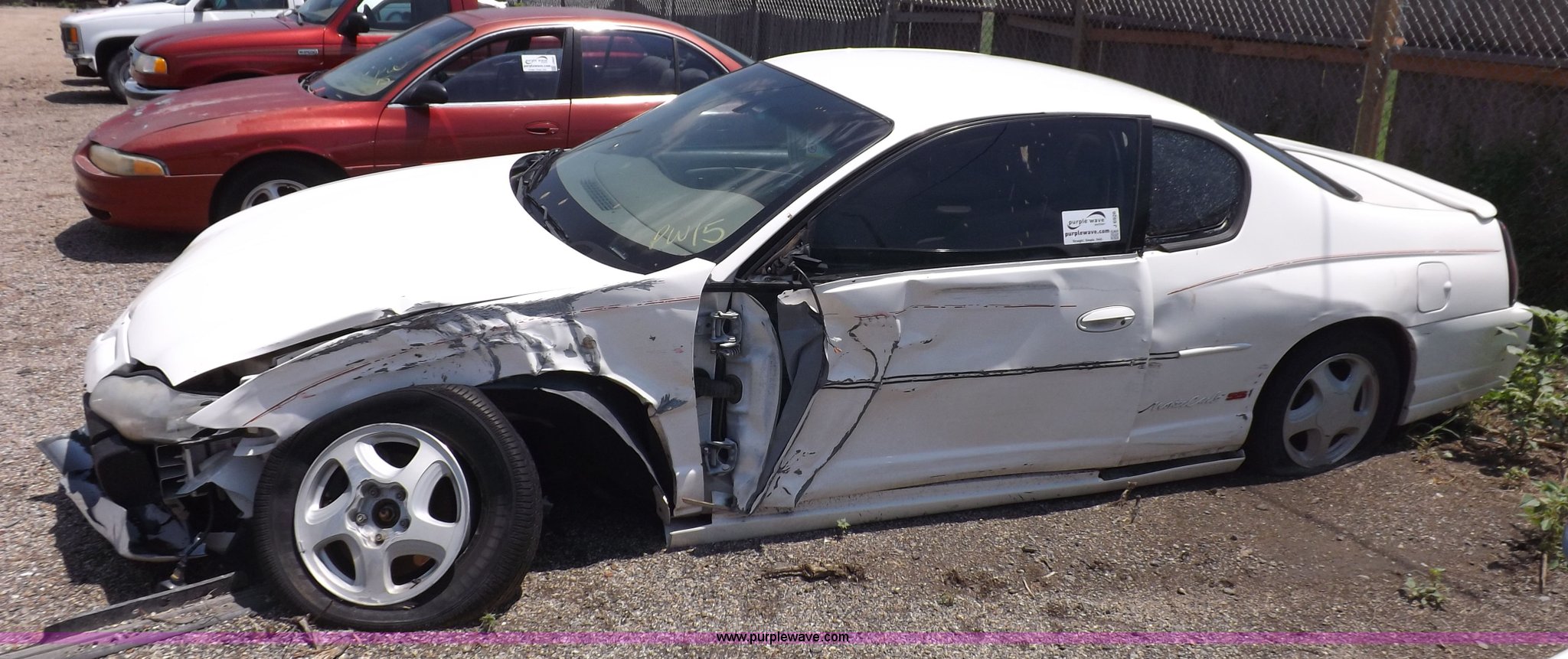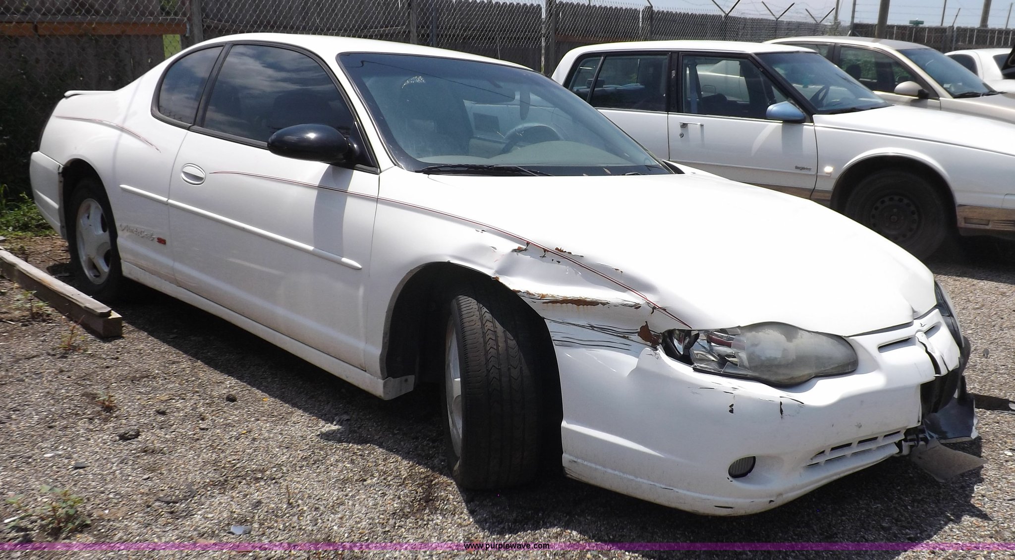 Purple Wave is selling a used Passenger Vehicle in Kansas. This item is a 2003 Chevrolet Monte Carlo SS with the following: Unknown miles on odometer, 3.8L V6 OHV 12V gas engine, Automatic transmission, AC and heat, Tilt, Cruise, AM/FM/CD/cassette, Power windows, locks, and mirrors, Leather interior, 225/60R16 tires, Battery dead, Vehicle wrecked, Driver's door will not open, No keys, Unknown running condition
