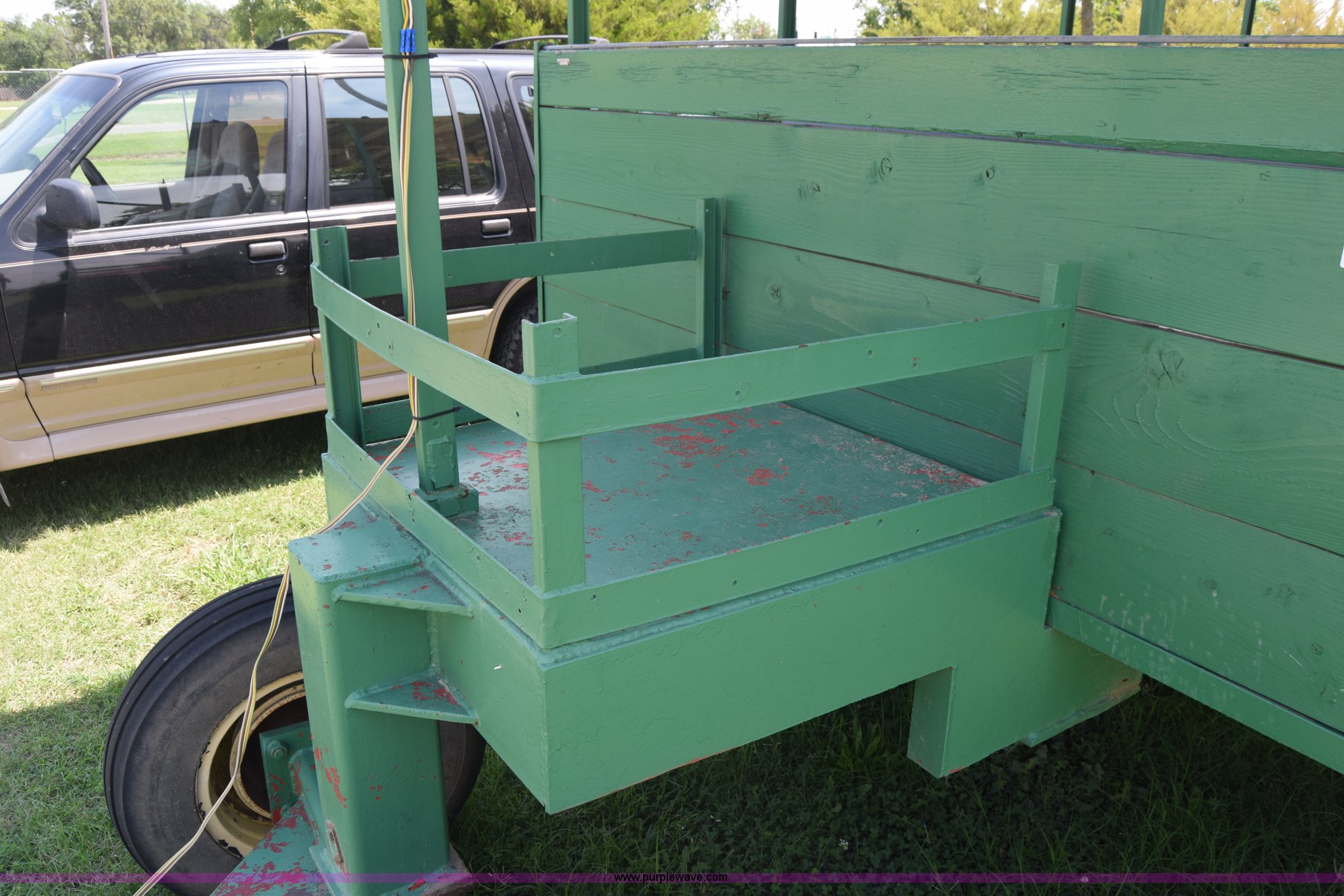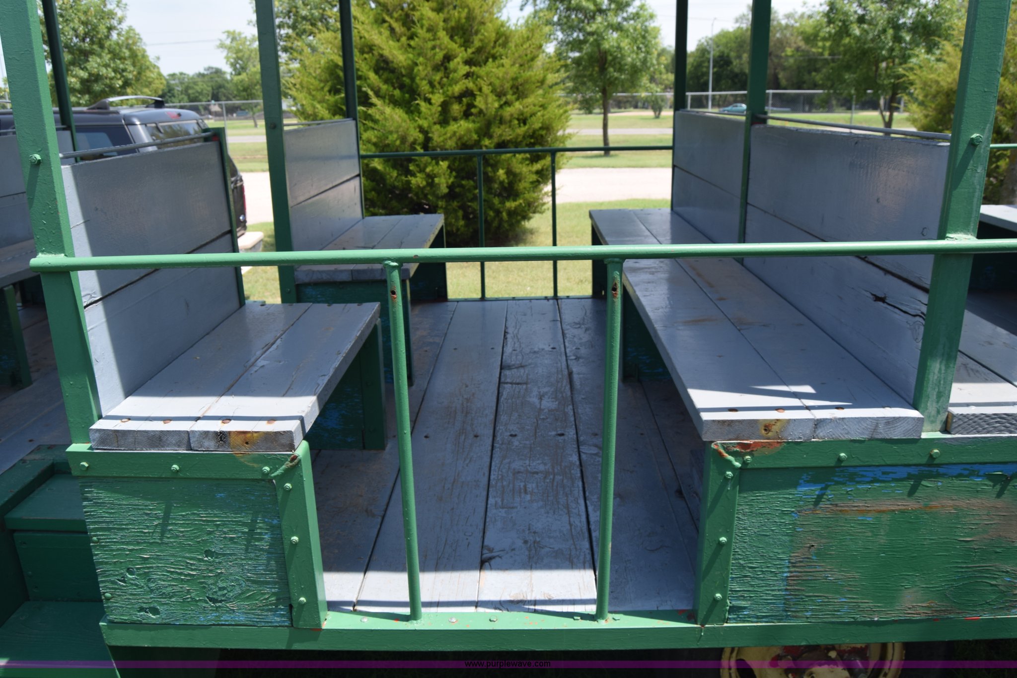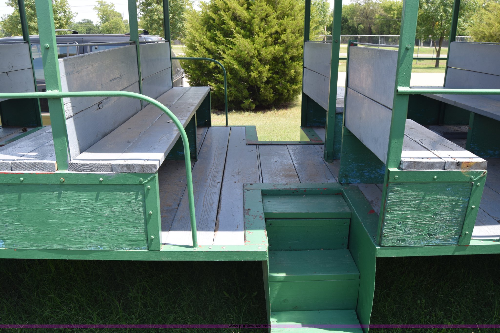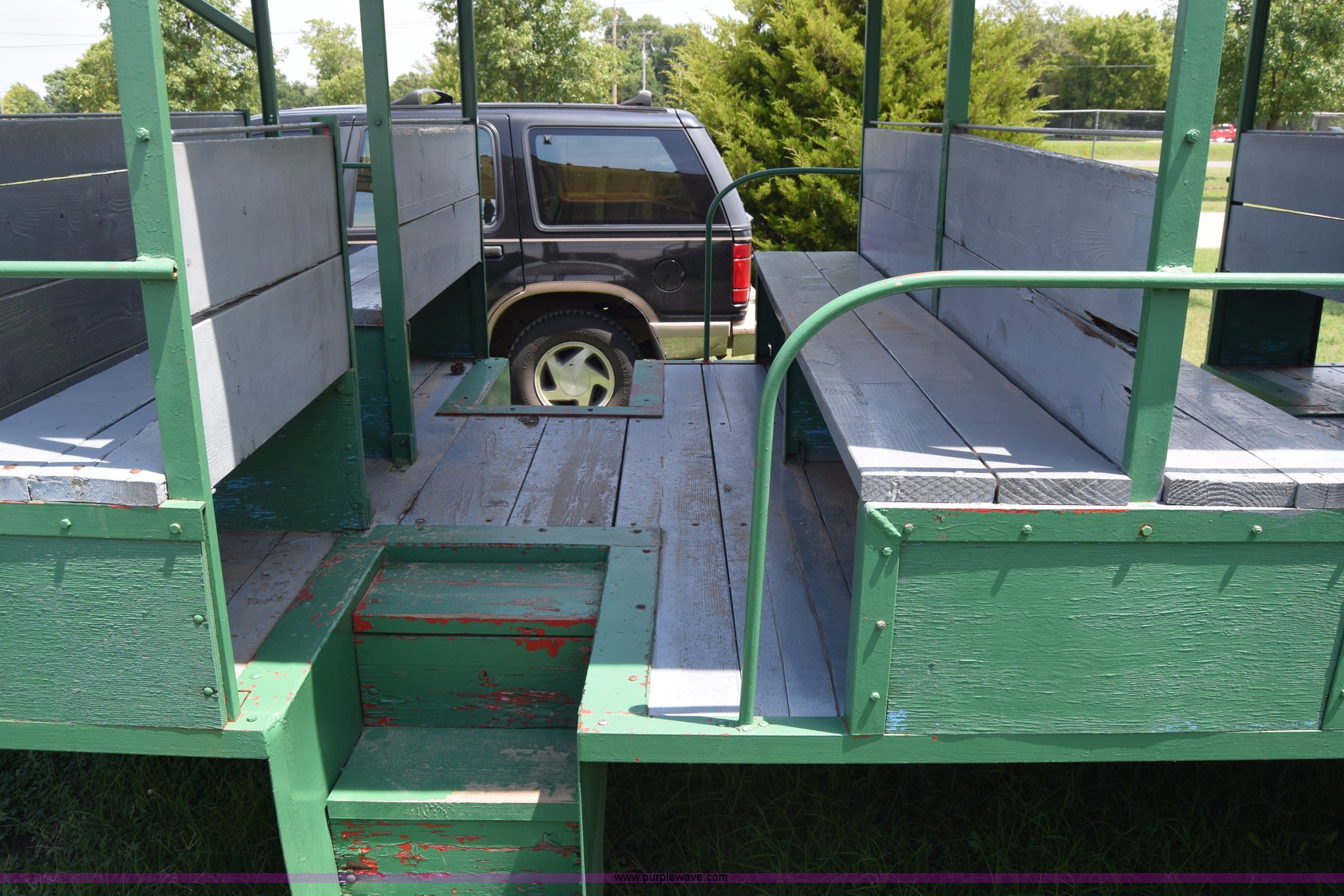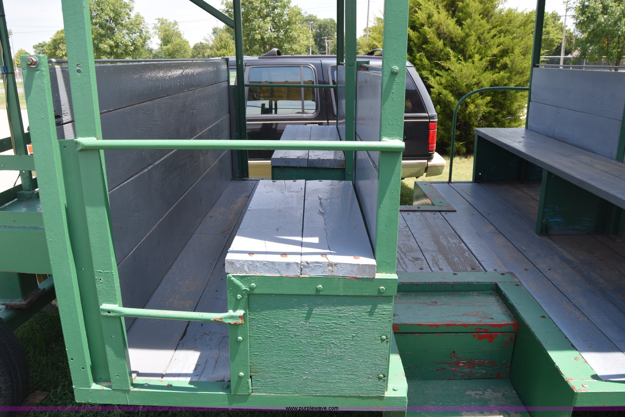 Purple Wave is selling a used Trailer Other in Kansas. This item is a Trolley wagon with the following: 25'L x 8'W x 9'H, Wood floor, Interior lighting, Approx. 25 person capacity, Pin hitch, Spring suspension, 6.50-16SL tires