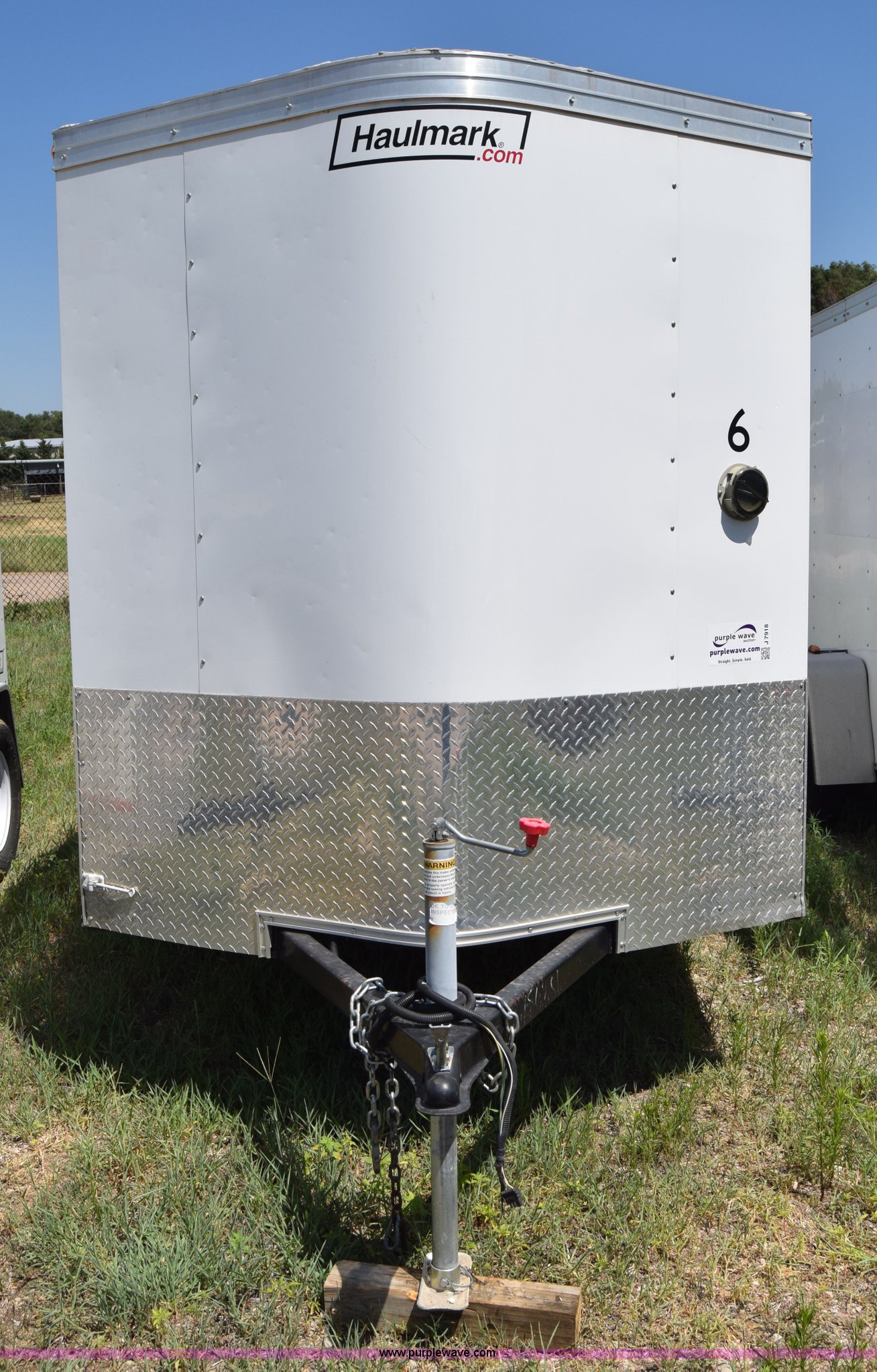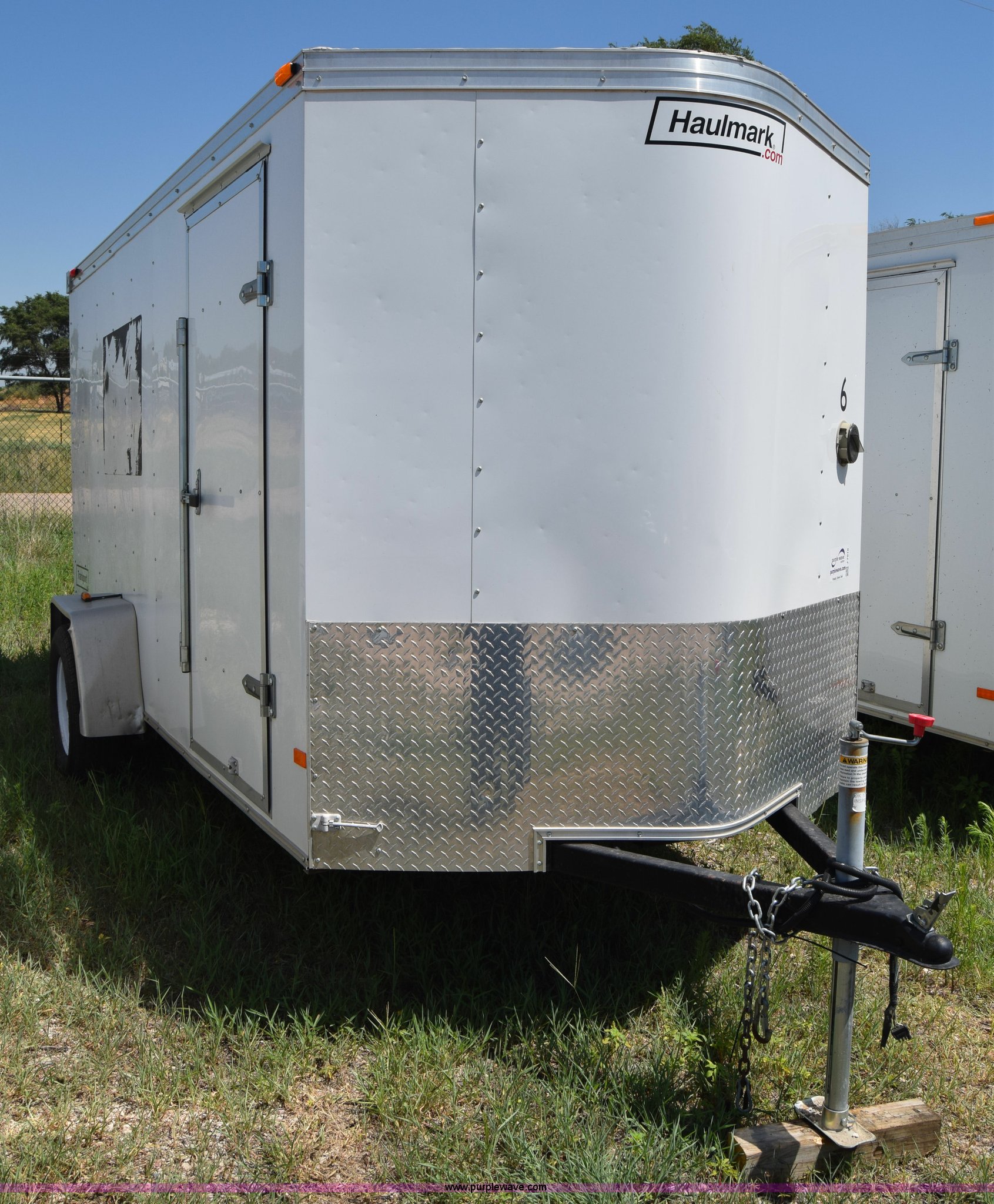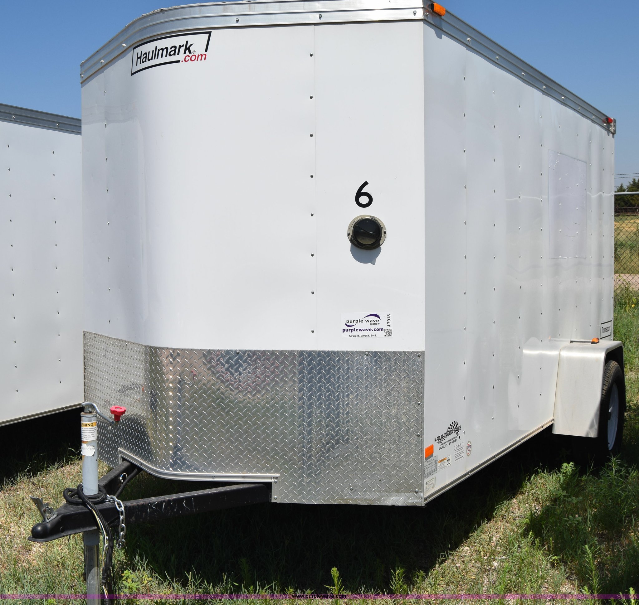 Purple Wave is selling a used Enclosed Cargo Trailer in Kansas. This item is a 2010 Haulmark enclosed cargo trailer with the following: 12'L x 6'W x 6'H, Single axle, Wood floor, Rear fold down door, Side swing door, Interior lighting, Ball hitch, 2" coupler, 205/75R15 tires, Dents and scratches, GVWR 2,980 lbs