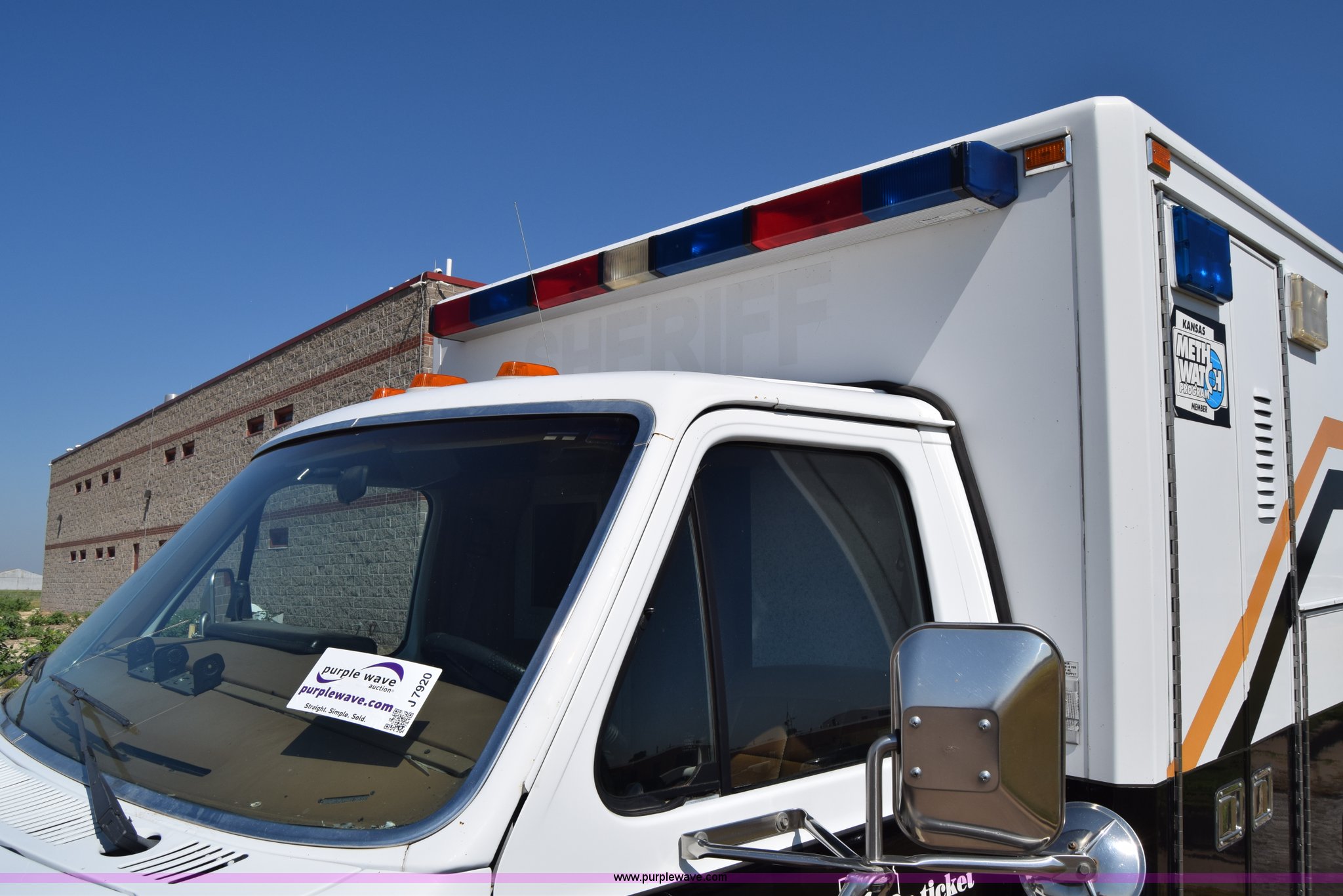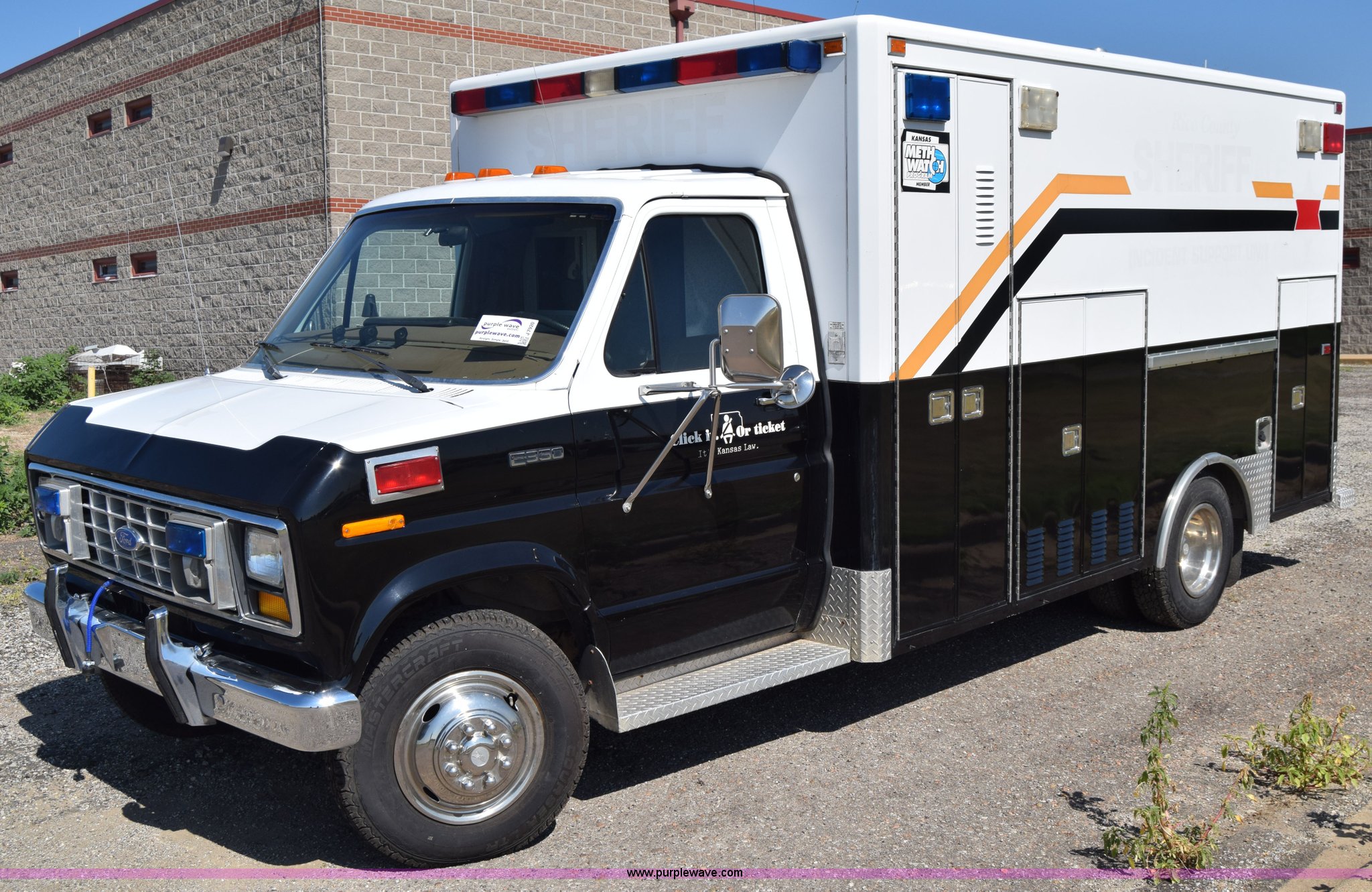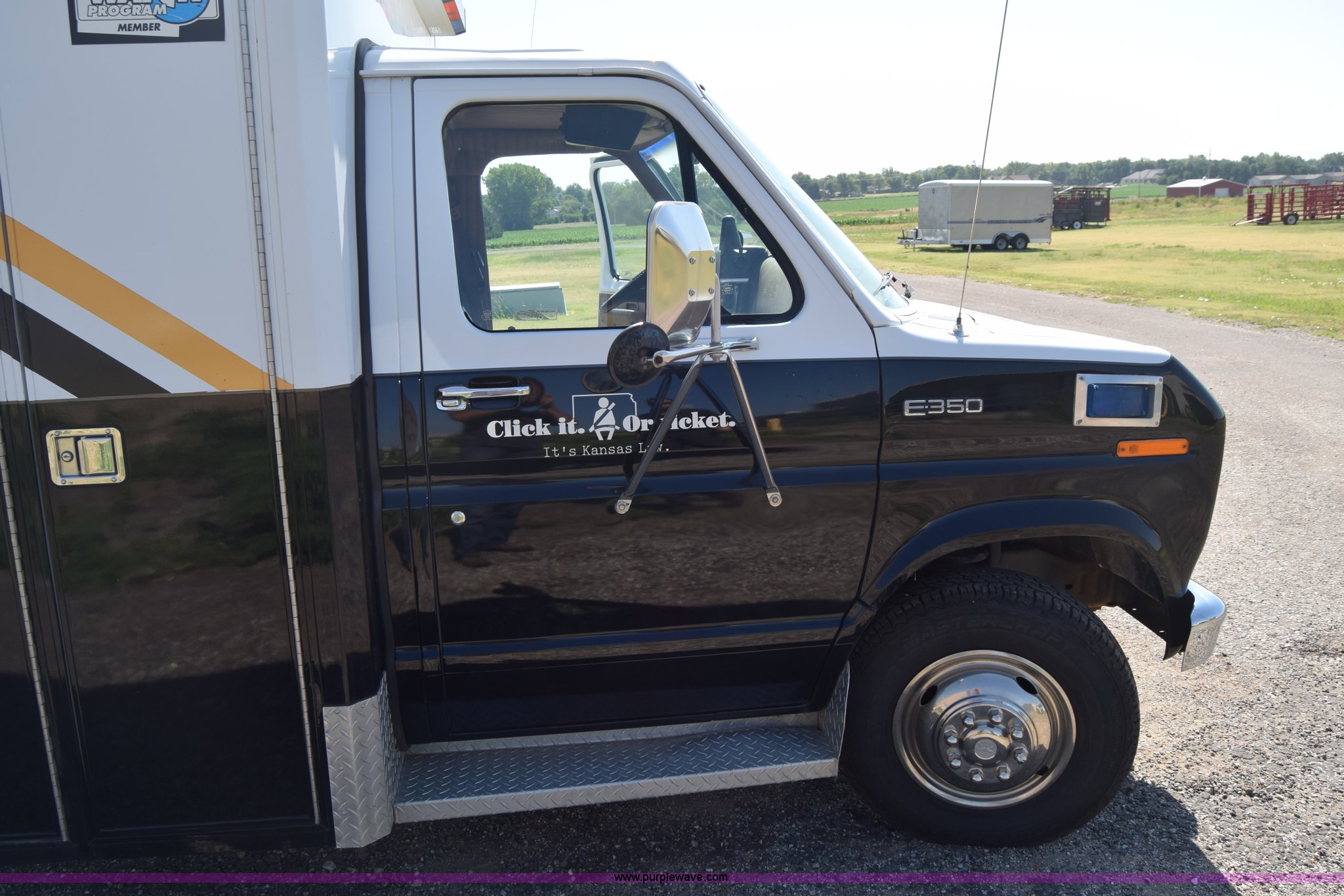Purple Wave is selling a used Fire Truck or Emergency Vehicle in Kansas. This item is a 1991 Ford Econoline E350 ambulance with the following: 95,188 miles on odometer, 4.6L V8 SOHC 16V diesel engine, Automatic transmission, AC and heat, AM/FM, Manual windows and locks, Vinyl interior, Engine block heater, 215/85R16 tires, National Ambulance Builders ambulance body, Full light package, Running boards, Exterior storage compartments, GVWR 11,000 lbs