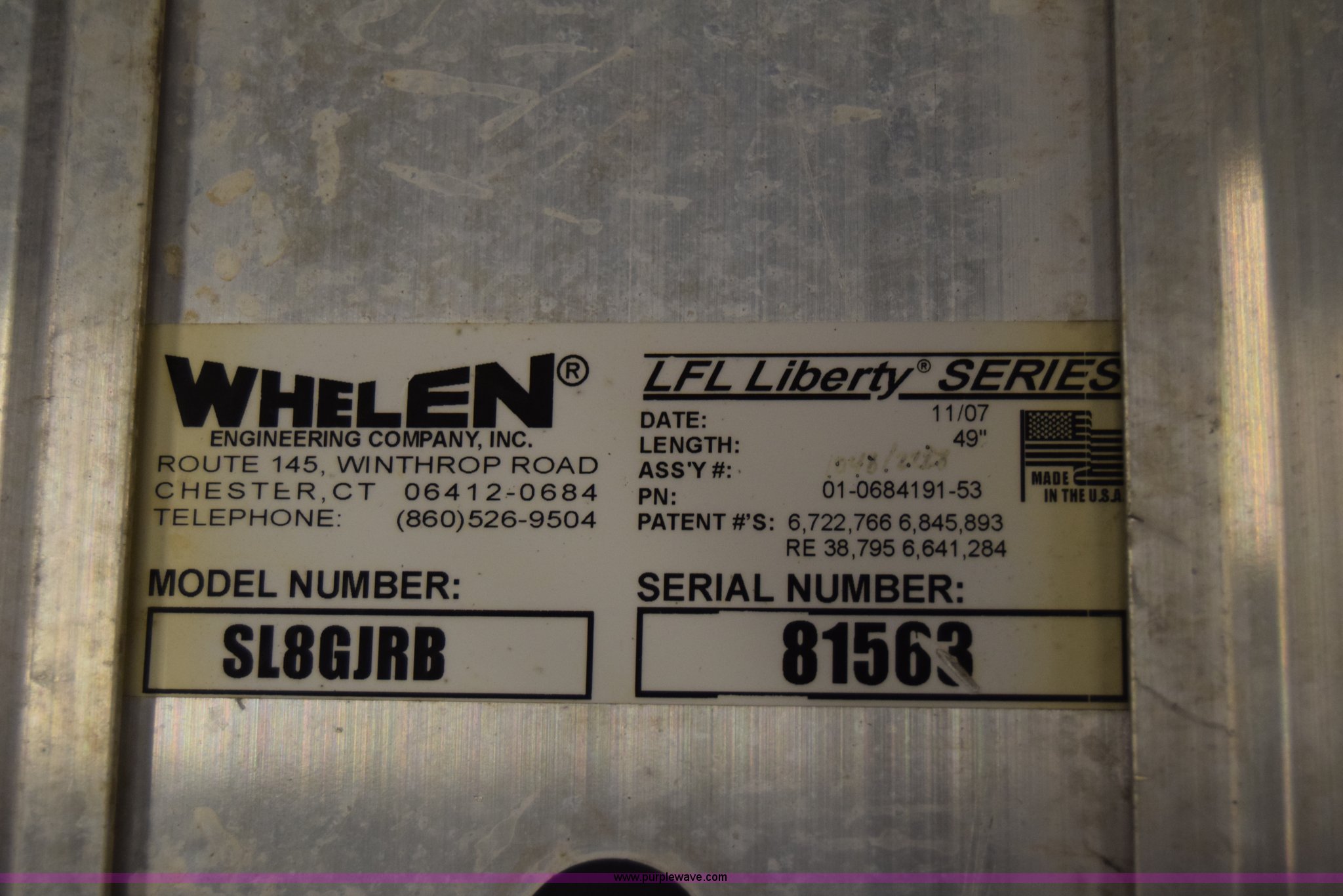 Purple Wave is selling a used Automotive Parts or Acces. in Kansas. This item is a Whelen light bar with the following: Model SL8GJRB, 49"L, Mounting accessories