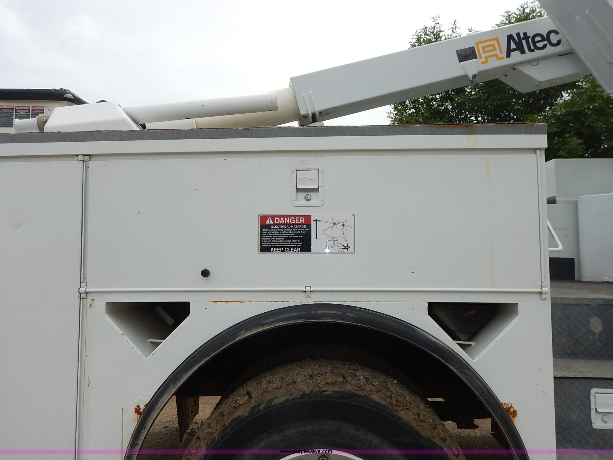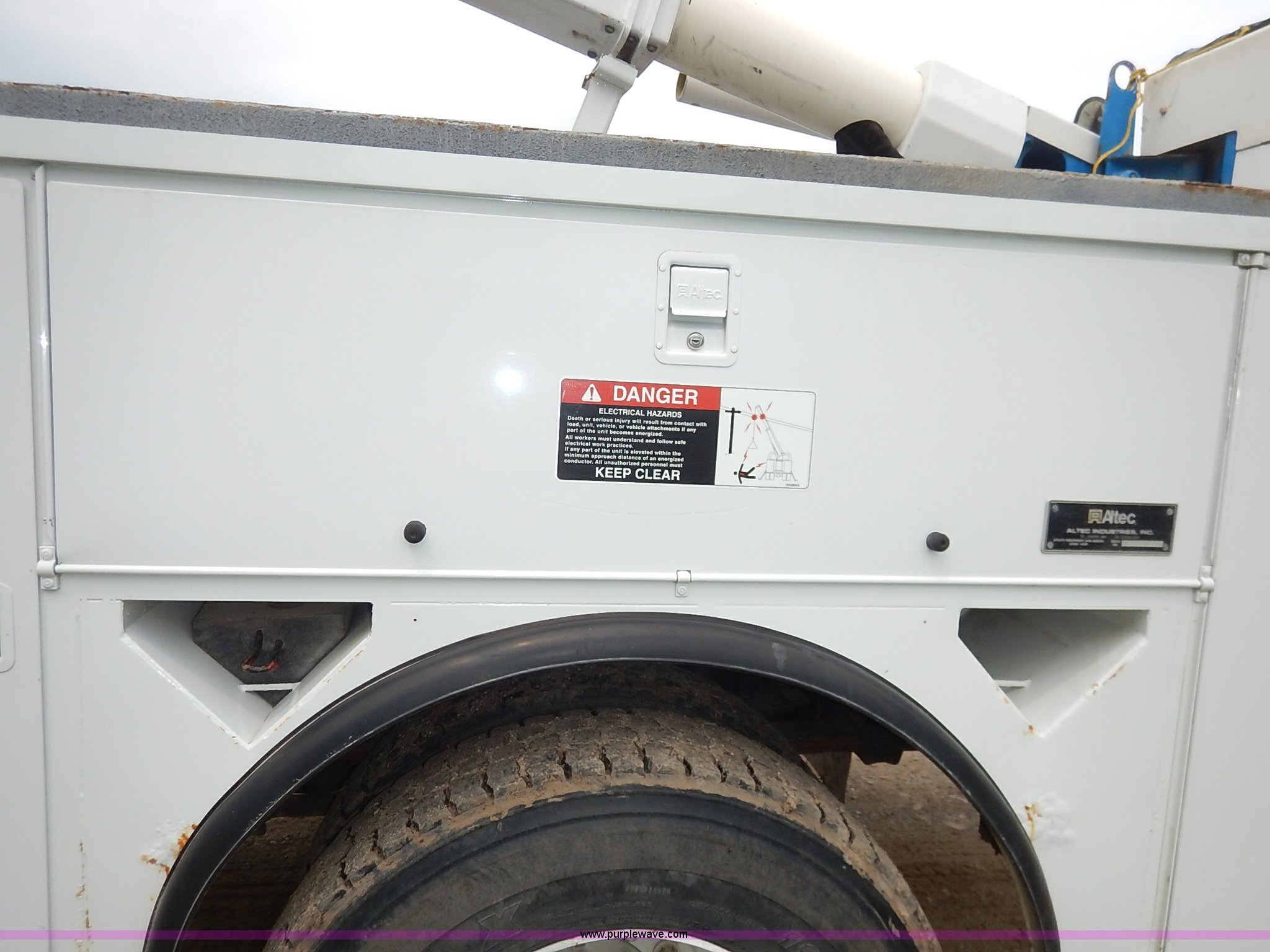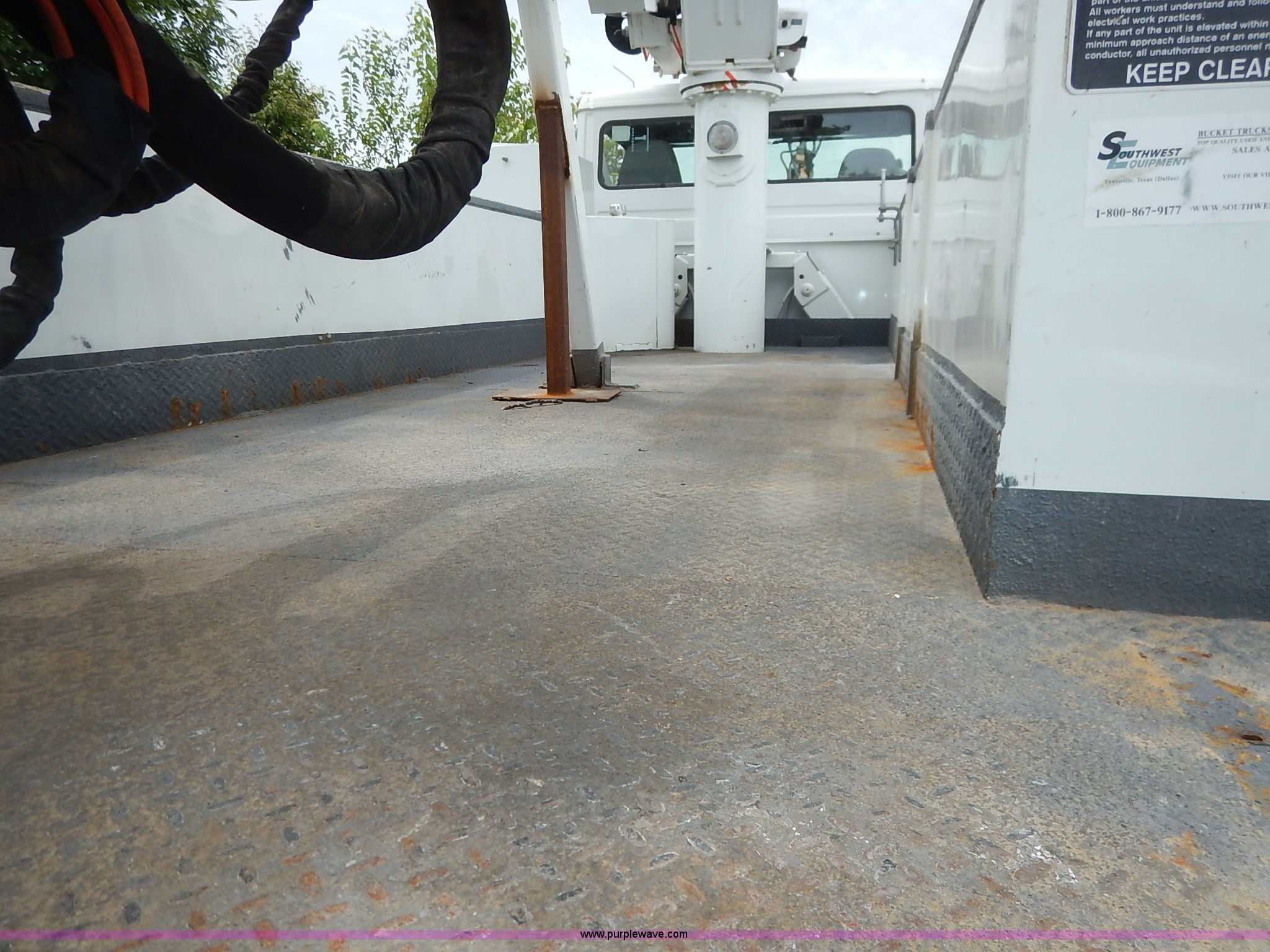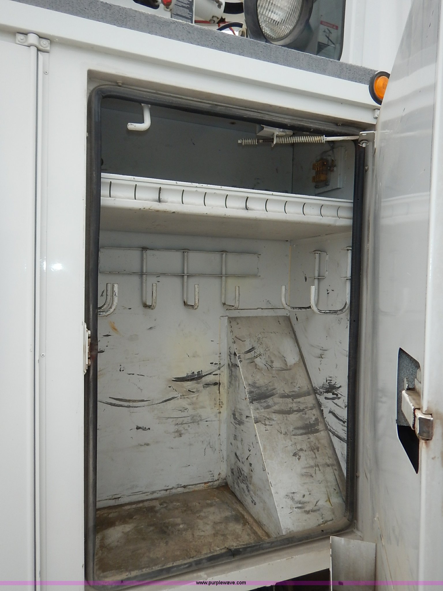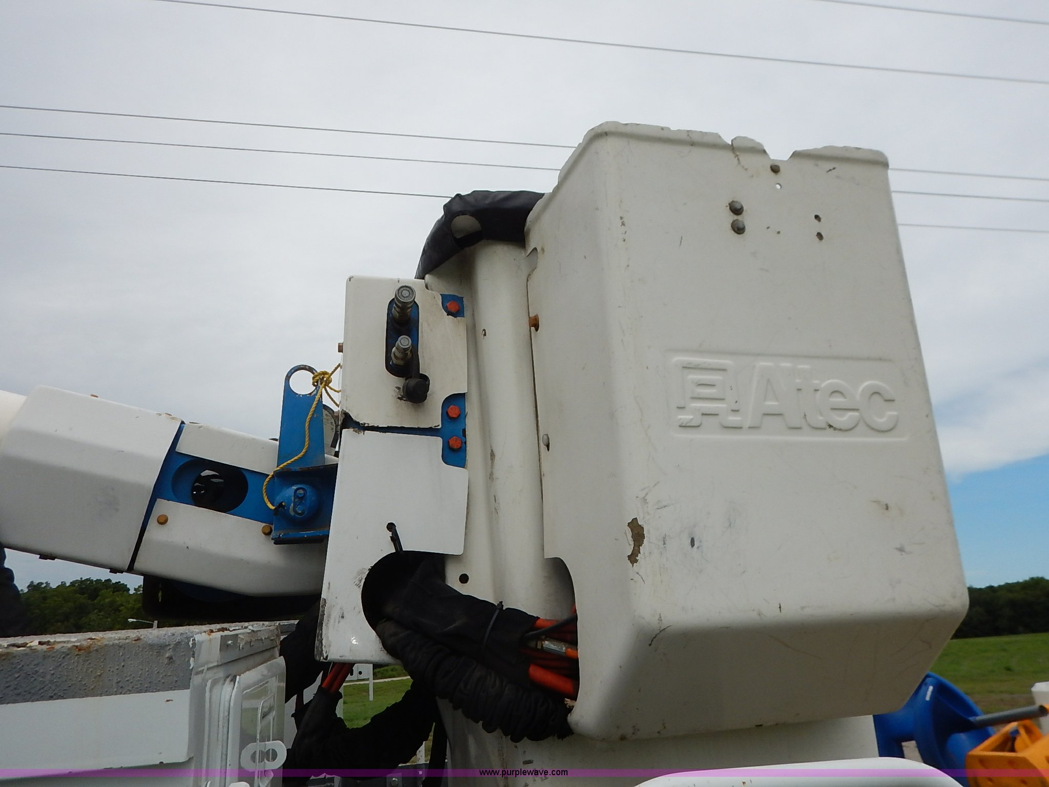 Purple Wave is selling a used Bucket Truck in Kansas. This item is a 2002 Freightliner FL70 bucket truck with the following: 128,415 miles on odometer, 4,030 hours on meter, 5,231 PTO hours on meter, Caterpillar 3126 7.2L L6 turbo diesel engine, 250 HP, Serial CKM34060, Automatic transmission, Single axle, AC and heat, Non-operational AC, Tilt, Telescoping steering wheel, AM/FM/CD, Air suspension seat, Heated mirrors, Front tow hooks, Spotlight, Beacon light, Block heater, PTO, Altec 16'L service bed, Shelving, Slide-out drawers, Work lights, Bed liner, Rear tow hooks, Rear hydraulic hose hookups, Altec TA41M boom, Man basket, 41' max lift height, Platform boom controls, Telescoping boom, Jib capacities, 700 lbs at 2', 450 lbs at 3', 350 lbs at 4', 300 lbs at over 4', 800 lbs rated eye capacity, 46V AC rated line voltage, 11'10" traveling height, Front outriggers, Serial 0102CL0547, Serial 37-74743, Dual 45 gallon fuel tanks, Pintle hitch, Trailer wiring, Spring suspension, Air brakes, 172" wheelbase, Goodyear 11R22.5 front tires, Michelin 11R22.5 rear tires, GVWR 31,000 lbs, FAWR 12,000 lbs, RAWR 19,000 lbs