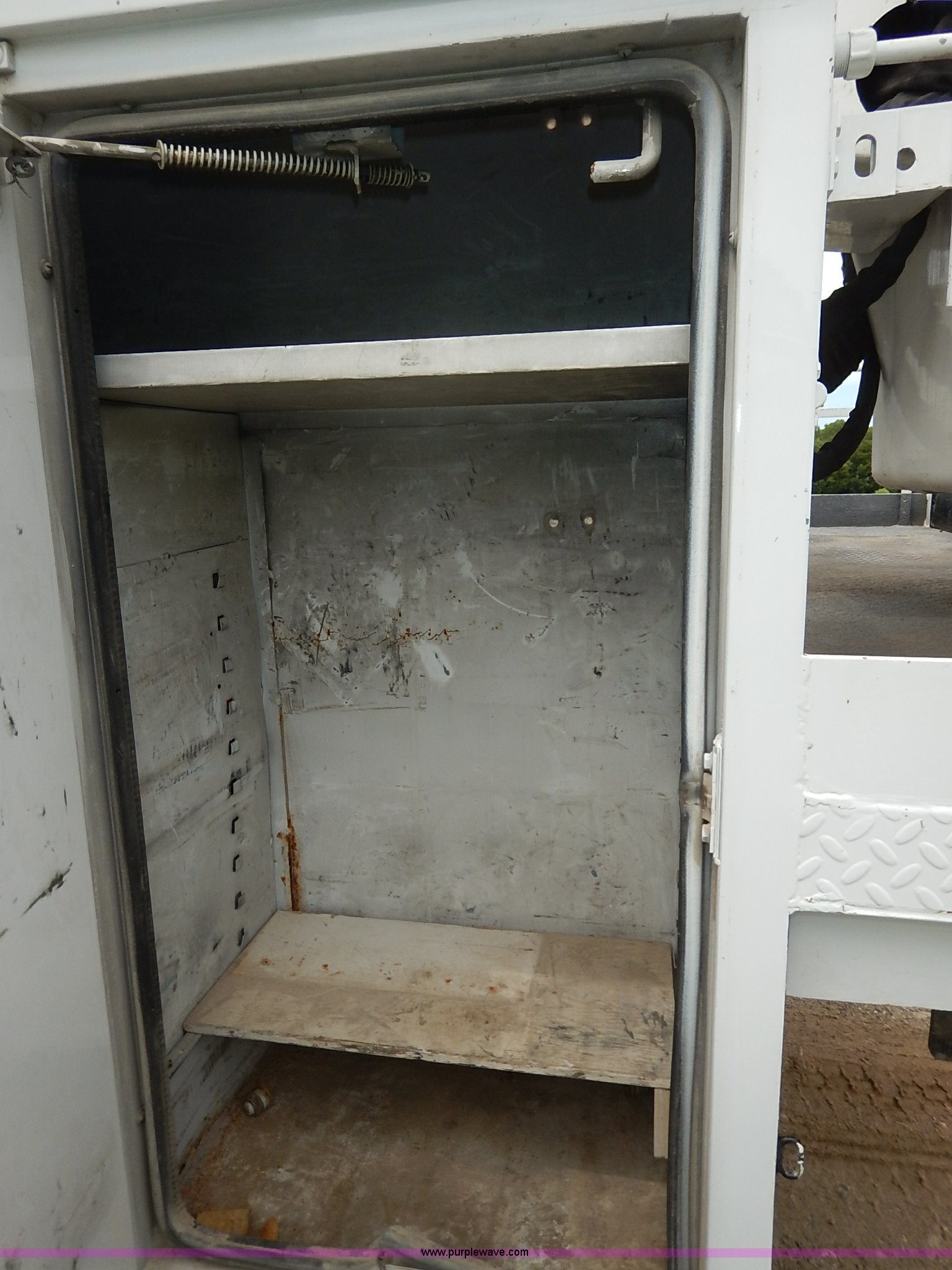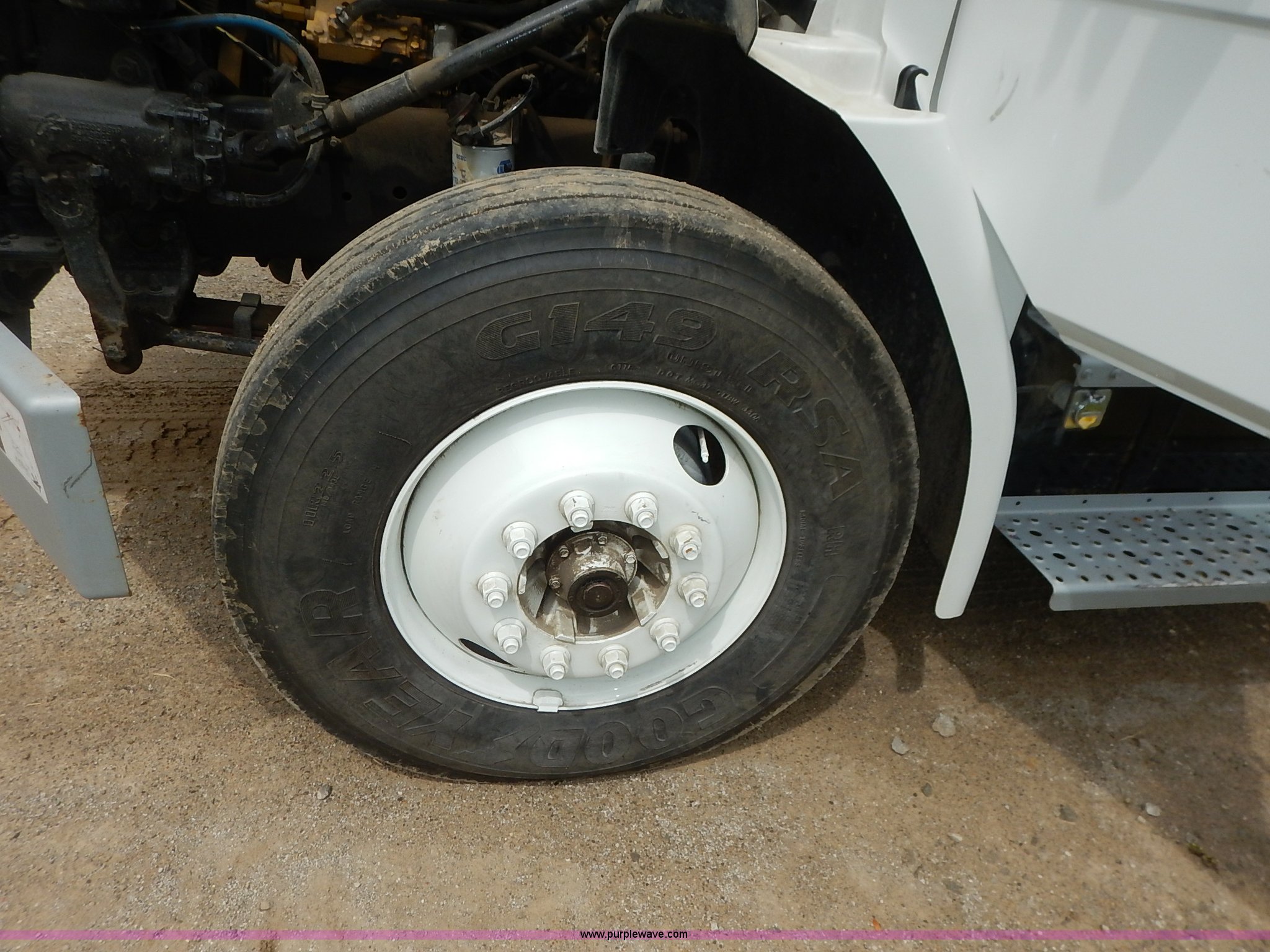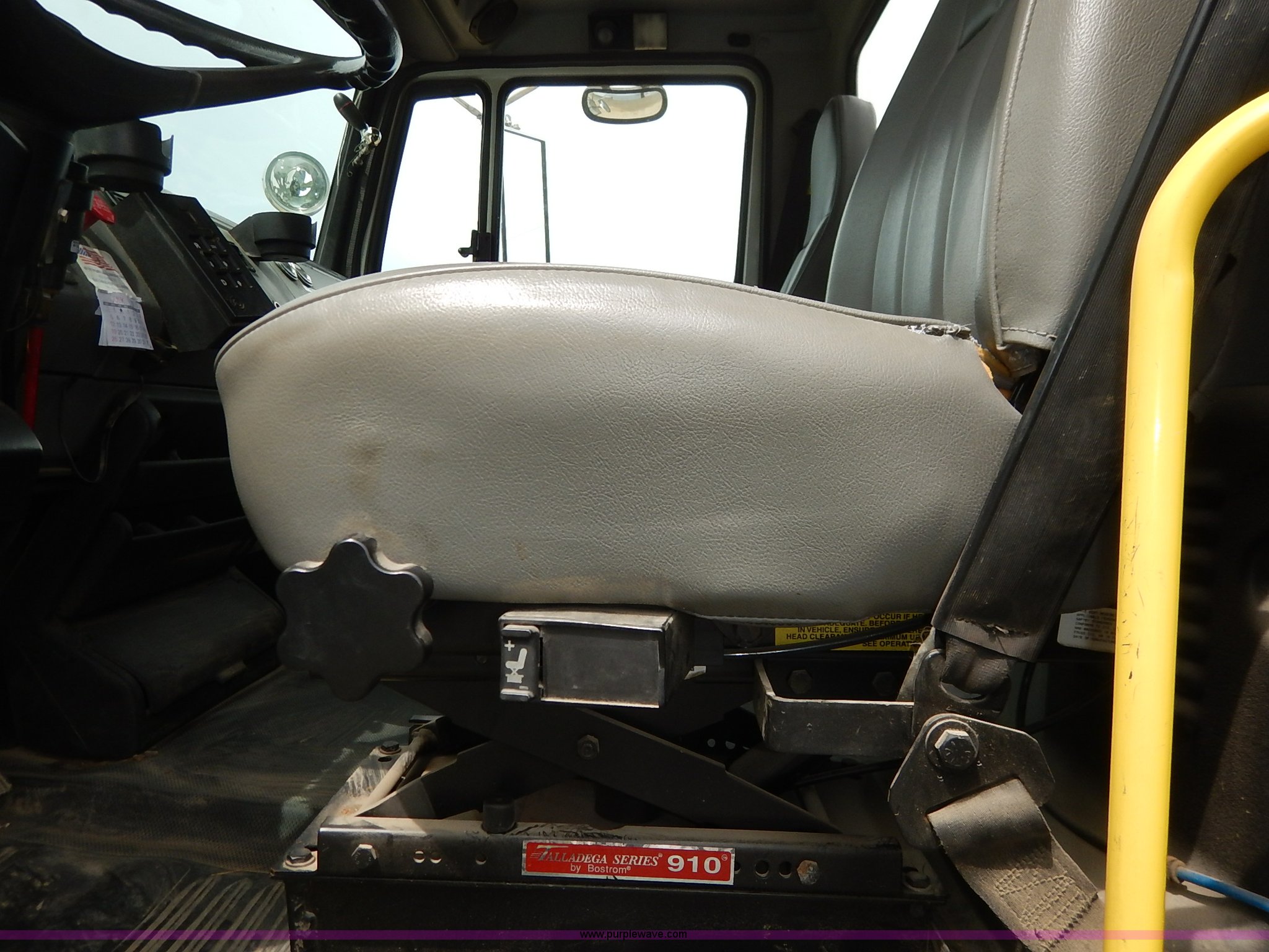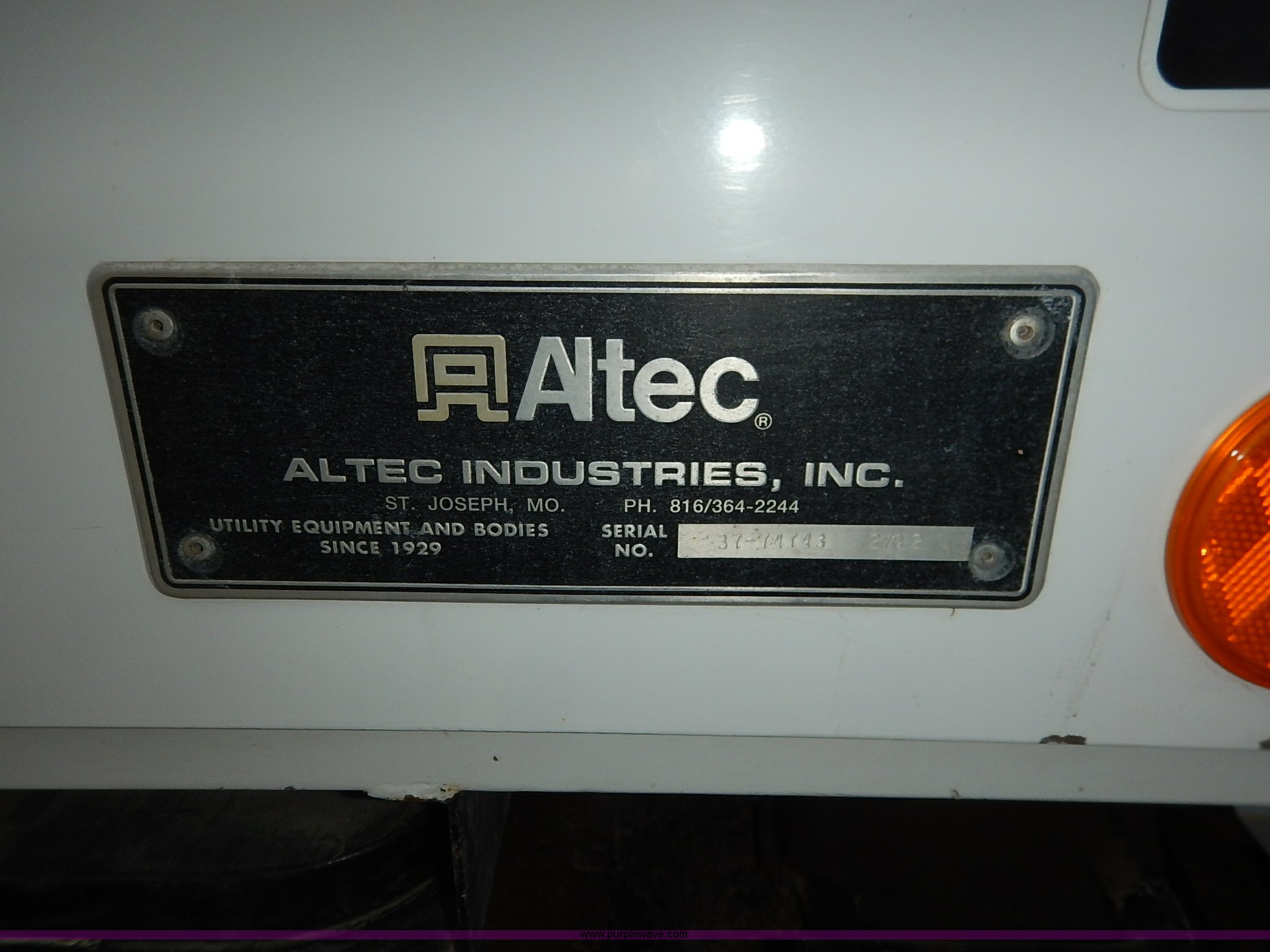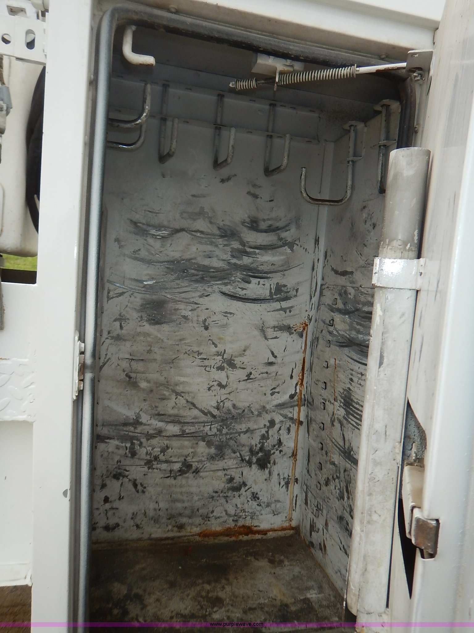 Purple Wave is selling a used Bucket Truck in Kansas. This item is a 2002 Freightliner FL70 bucket truck with the following: 128,415 miles on odometer, 4,030 hours on meter, 5,231 PTO hours on meter, Caterpillar 3126 7.2L L6 turbo diesel engine, 250 HP, Serial CKM34060, Automatic transmission, Single axle, AC and heat, Non-operational AC, Tilt, Telescoping steering wheel, AM/FM/CD, Air suspension seat, Heated mirrors, Front tow hooks, Spotlight, Beacon light, Block heater, PTO, Altec 16'L service bed, Shelving, Slide-out drawers, Work lights, Bed liner, Rear tow hooks, Rear hydraulic hose hookups, Altec TA41M boom, Man basket, 41' max lift height, Platform boom controls, Telescoping boom, Jib capacities, 700 lbs at 2', 450 lbs at 3', 350 lbs at 4', 300 lbs at over 4', 800 lbs rated eye capacity, 46V AC rated line voltage, 11'10" traveling height, Front outriggers, Serial 0102CL0547, Serial 37-74743, Dual 45 gallon fuel tanks, Pintle hitch, Trailer wiring, Spring suspension, Air brakes, 172" wheelbase, Goodyear 11R22.5 front tires, Michelin 11R22.5 rear tires, GVWR 31,000 lbs, FAWR 12,000 lbs, RAWR 19,000 lbs