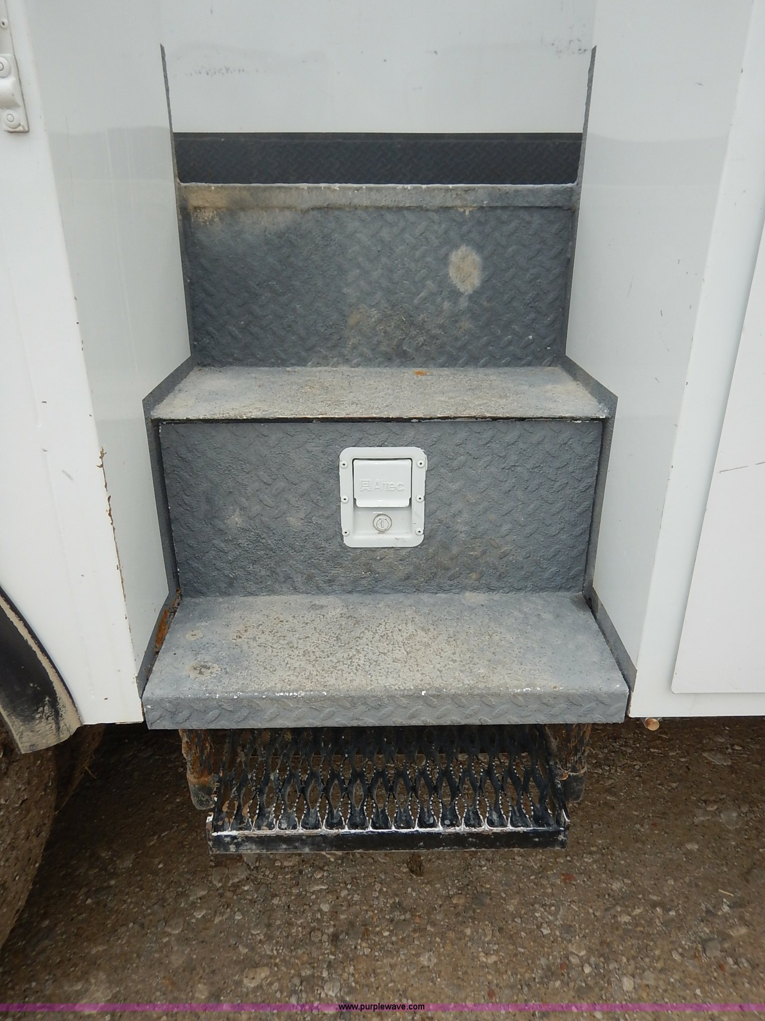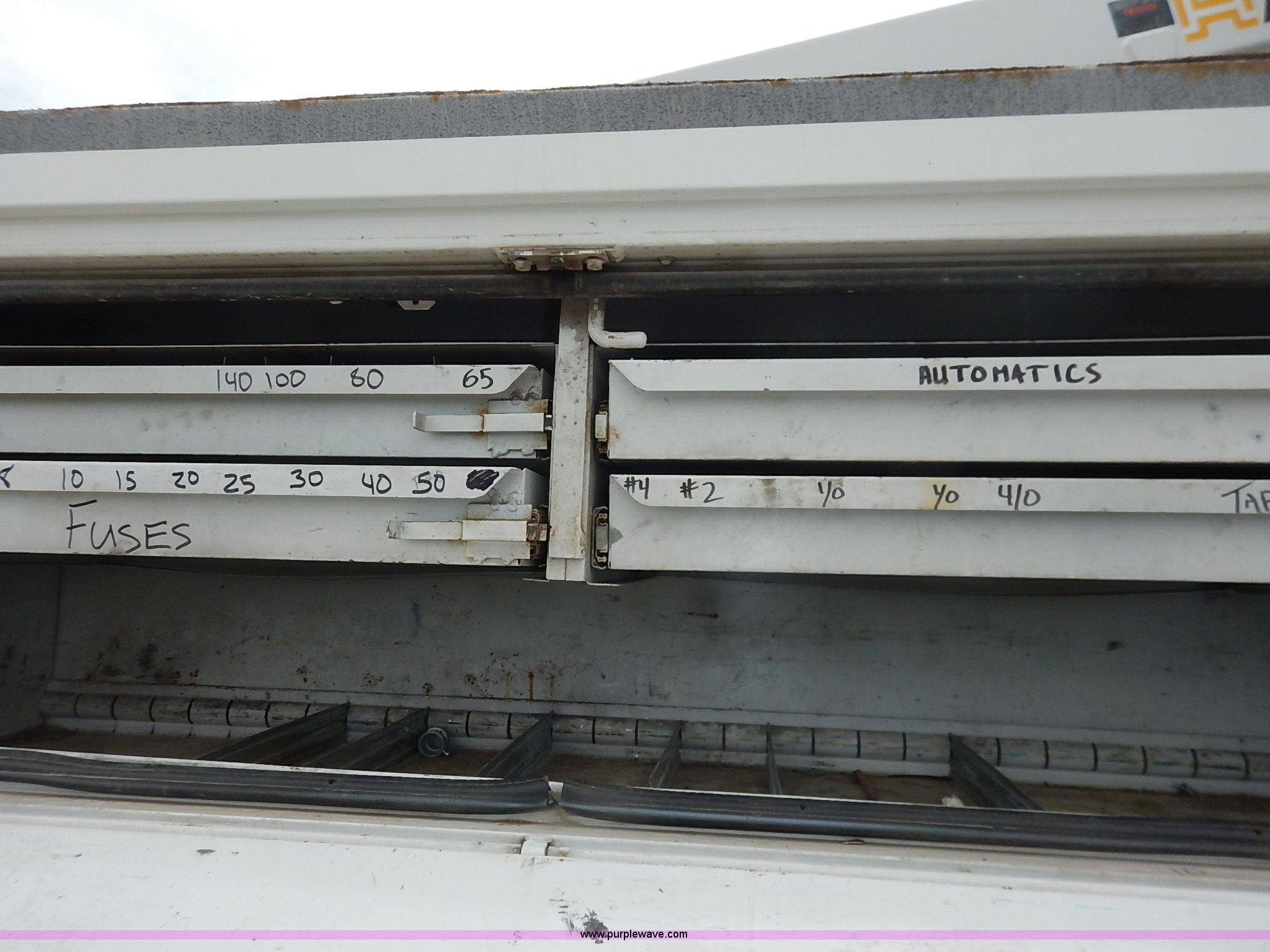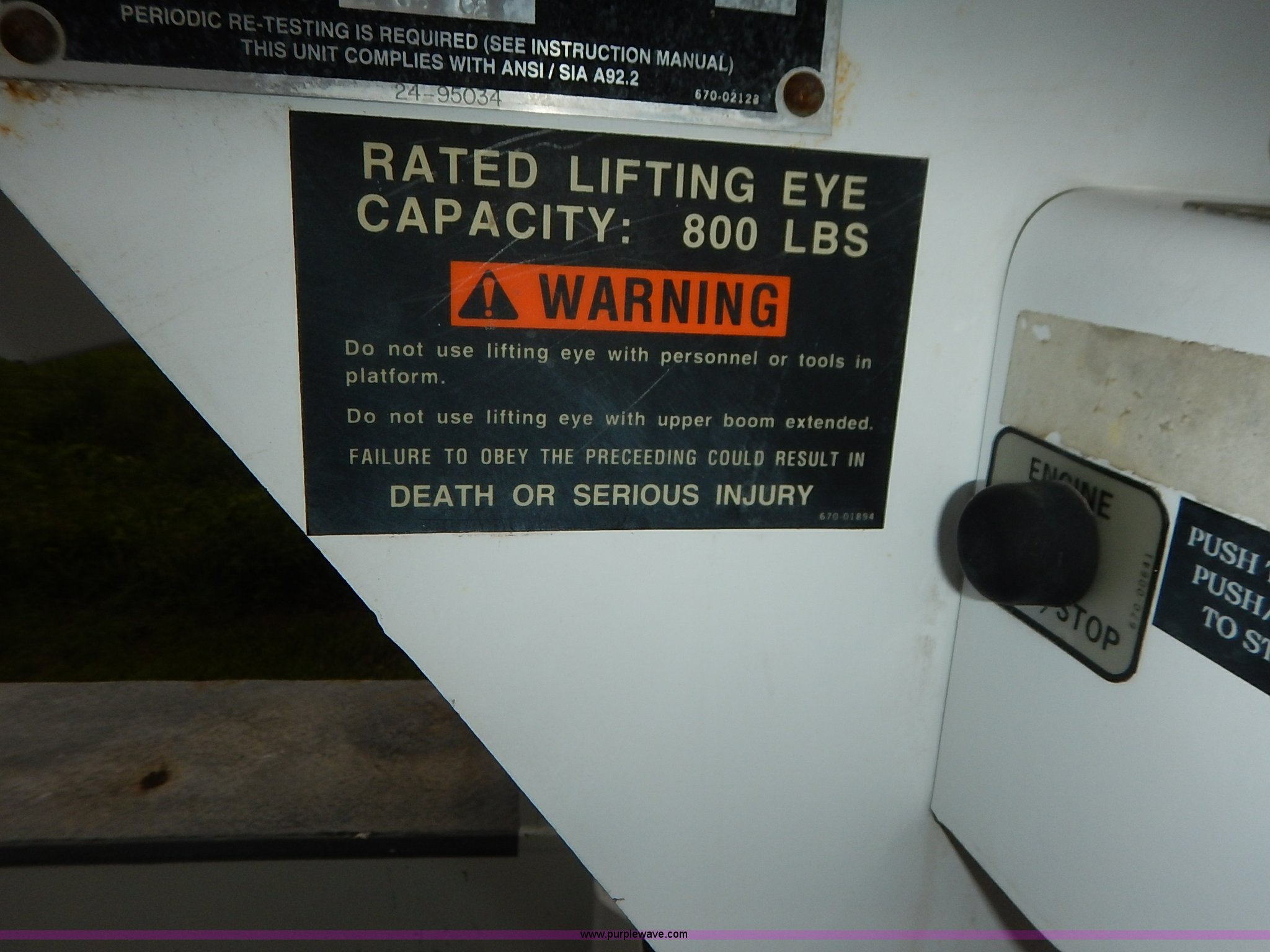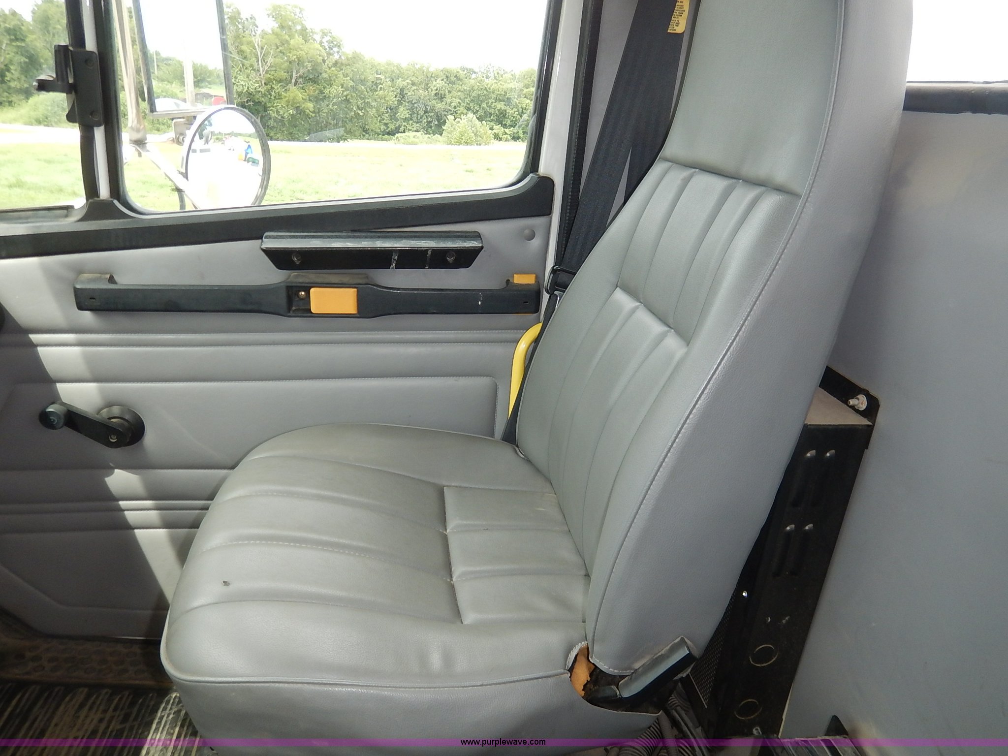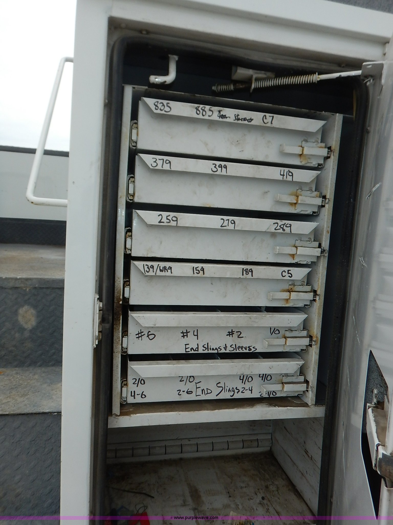 Purple Wave is selling a used Bucket Truck in Kansas. This item is a 2002 Freightliner FL70 bucket truck with the following: 128,415 miles on odometer, 4,030 hours on meter, 5,231 PTO hours on meter, Caterpillar 3126 7.2L L6 turbo diesel engine, 250 HP, Serial CKM34060, Automatic transmission, Single axle, AC and heat, Non-operational AC, Tilt, Telescoping steering wheel, AM/FM/CD, Air suspension seat, Heated mirrors, Front tow hooks, Spotlight, Beacon light, Block heater, PTO, Altec 16'L service bed, Shelving, Slide-out drawers, Work lights, Bed liner, Rear tow hooks, Rear hydraulic hose hookups, Altec TA41M boom, Man basket, 41' max lift height, Platform boom controls, Telescoping boom, Jib capacities, 700 lbs at 2', 450 lbs at 3', 350 lbs at 4', 300 lbs at over 4', 800 lbs rated eye capacity, 46V AC rated line voltage, 11'10" traveling height, Front outriggers, Serial 0102CL0547, Serial 37-74743, Dual 45 gallon fuel tanks, Pintle hitch, Trailer wiring, Spring suspension, Air brakes, 172" wheelbase, Goodyear 11R22.5 front tires, Michelin 11R22.5 rear tires, GVWR 31,000 lbs, FAWR 12,000 lbs, RAWR 19,000 lbs