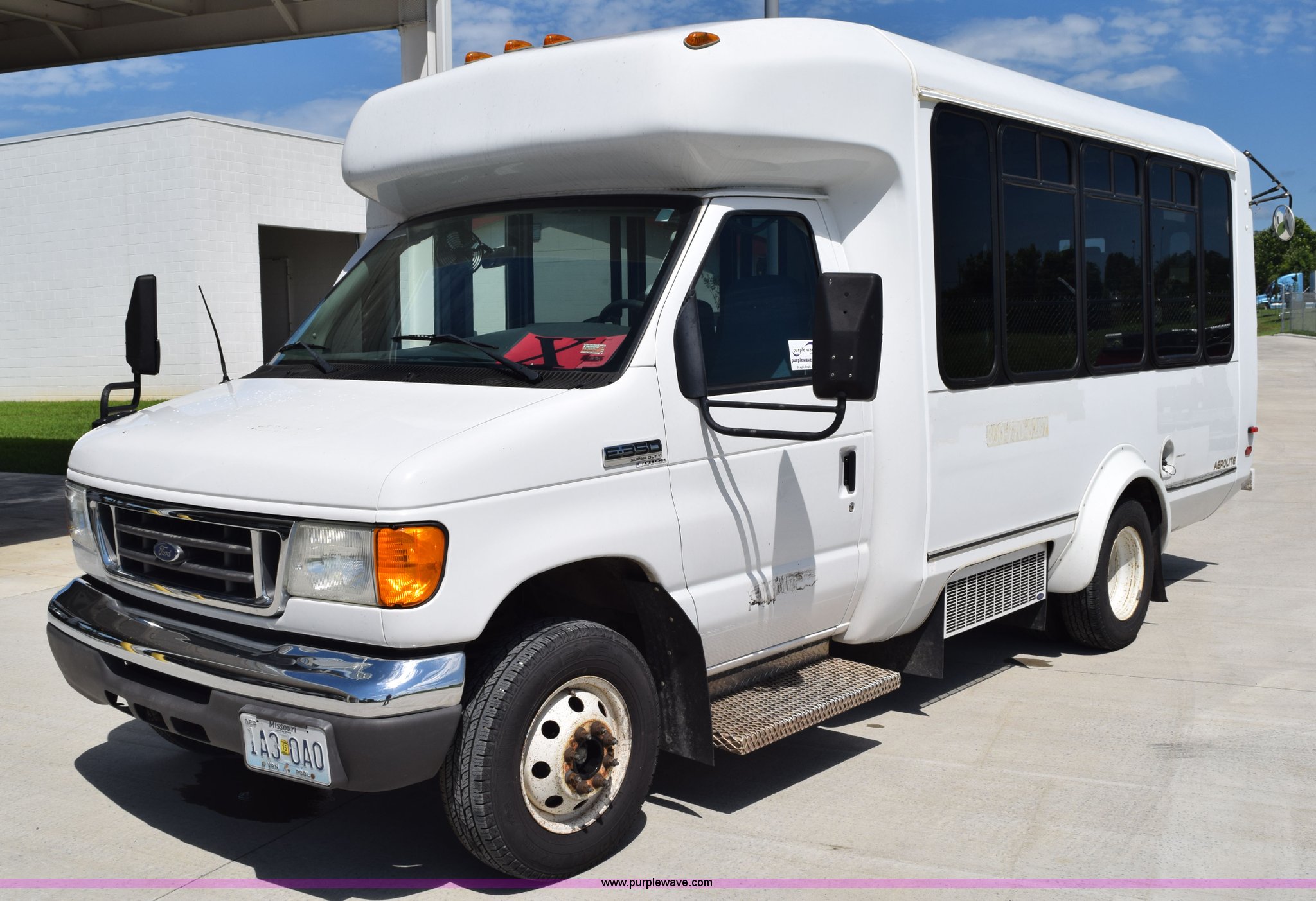 Purple Wave is selling a used Bus in Missouri. This item is a 2006 Ford E350 Super Duty bus with the following: 147,257 miles on odometer, 5.4L V8 SOHC 16V gas engine, Automatic transmission, Transmission issues, will not go into reverse gear, AC and heat, Tilt, Cruise, AM/FM/CD, Manual windows and locks, Wheelchair lift, 138" wheelbase, 225/75R16 tires, Unit# 1412