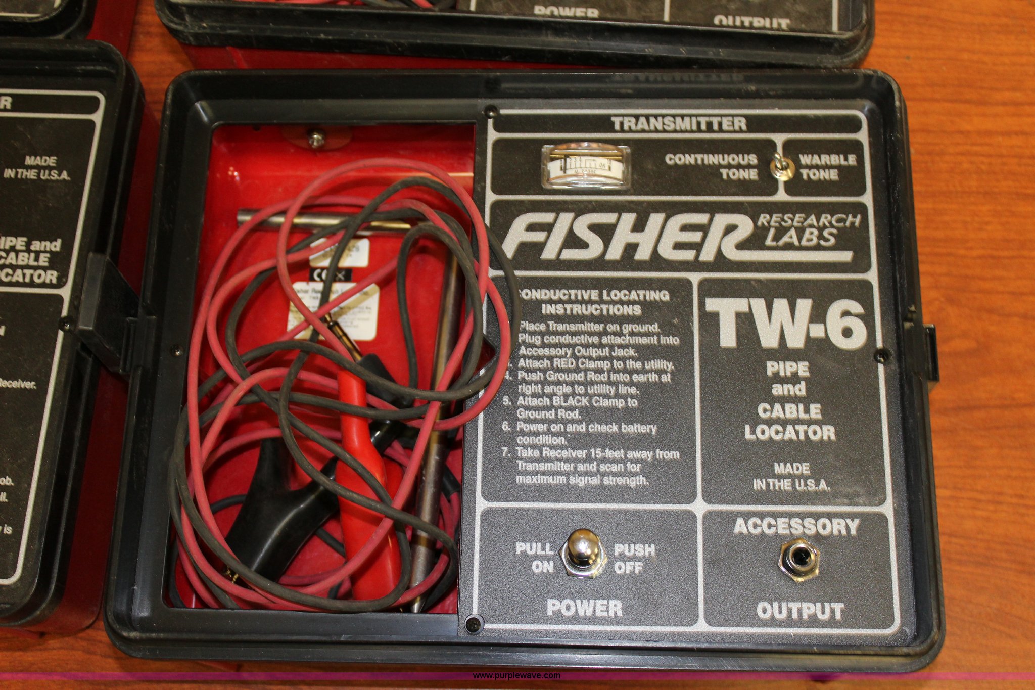 Purple Wave is selling a used Tools in Kansas. This item is a (2) Fisher TW-6 pipe and cable locators with the following: Transmitter, Receiver, Conductive attachment