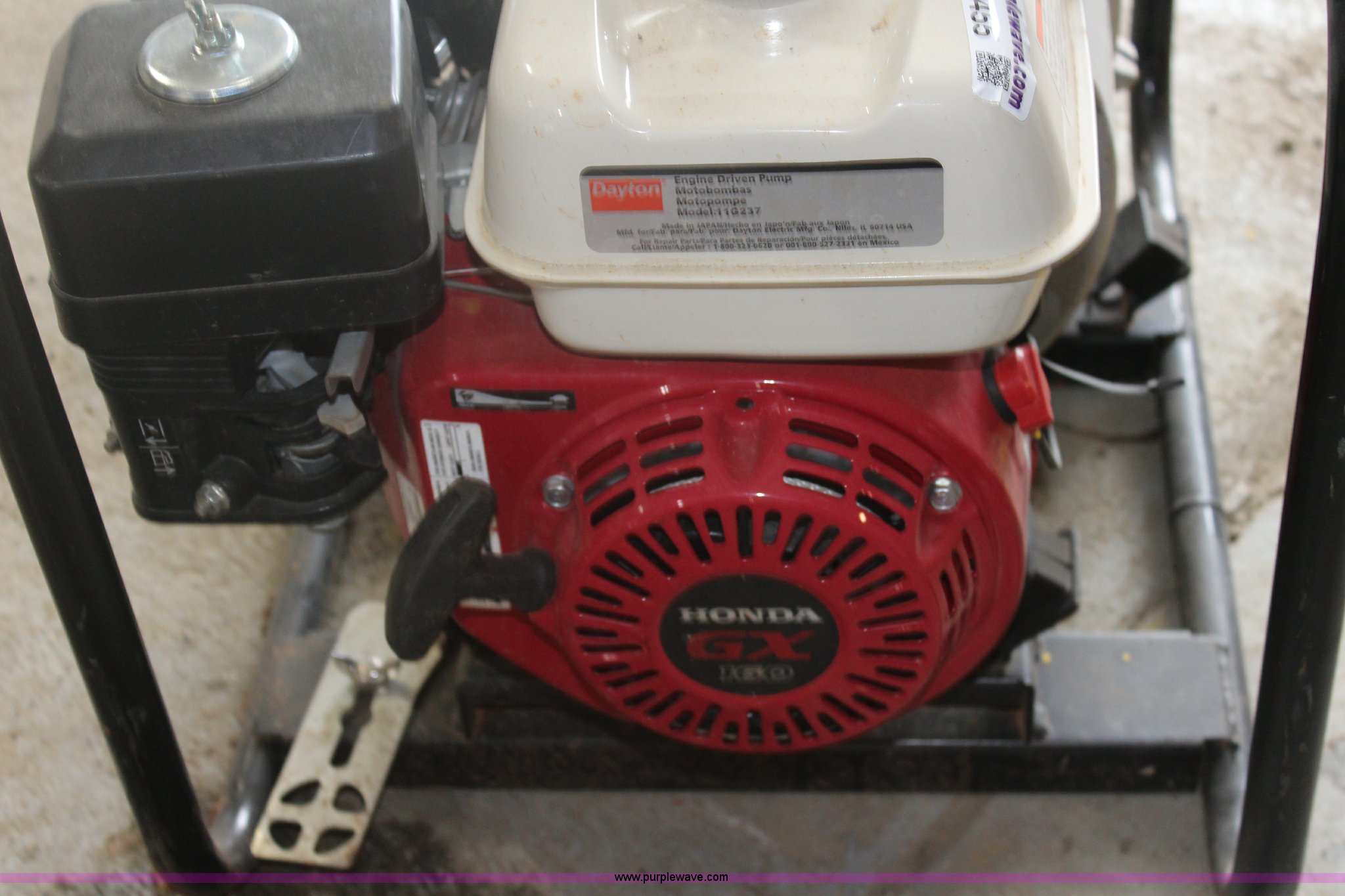 Purple Wave is selling a used Pump in Kansas. This item is a Honda 2" trash pump with the following: Model 11G237, Honda GX160 gas engine