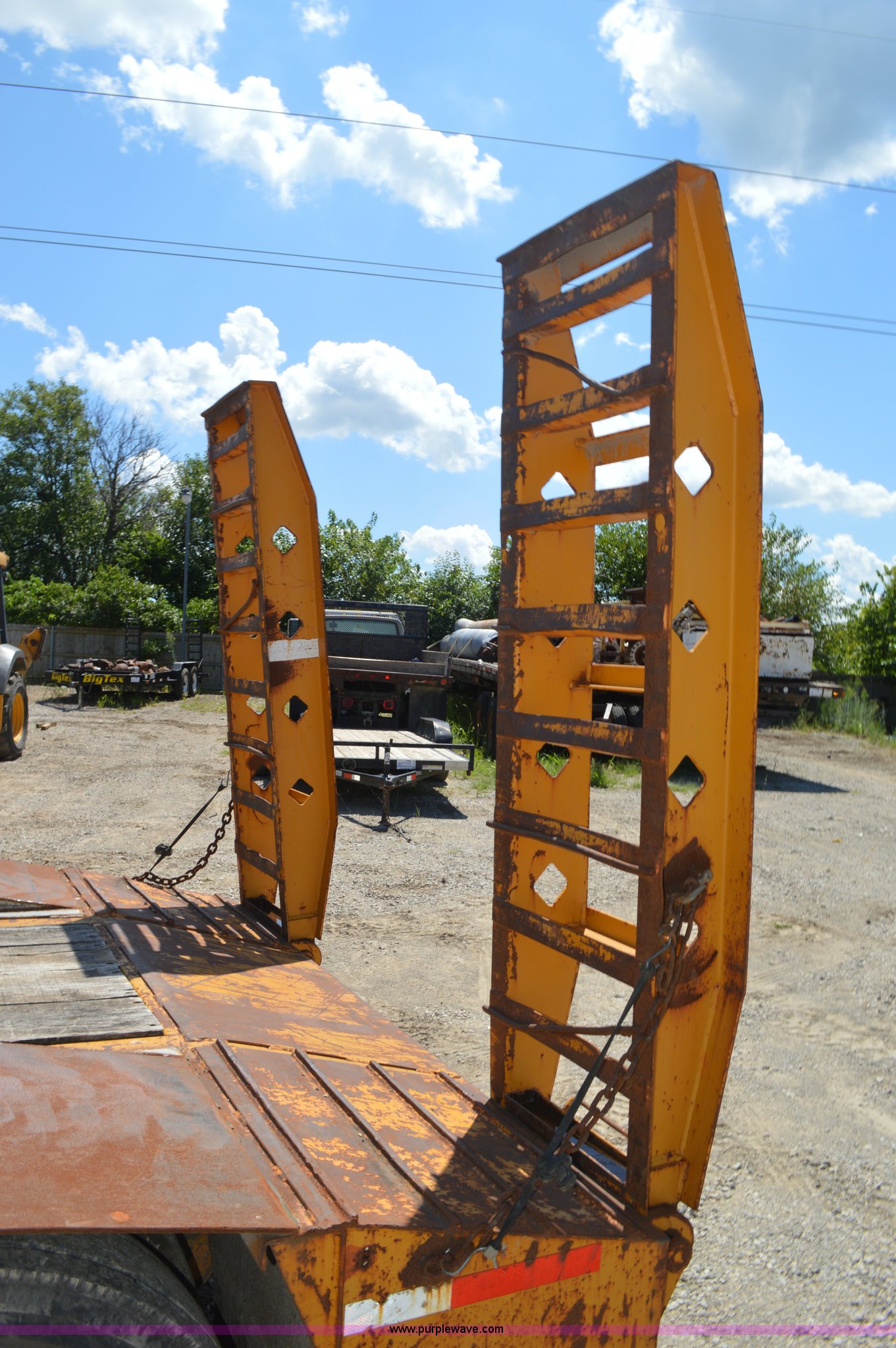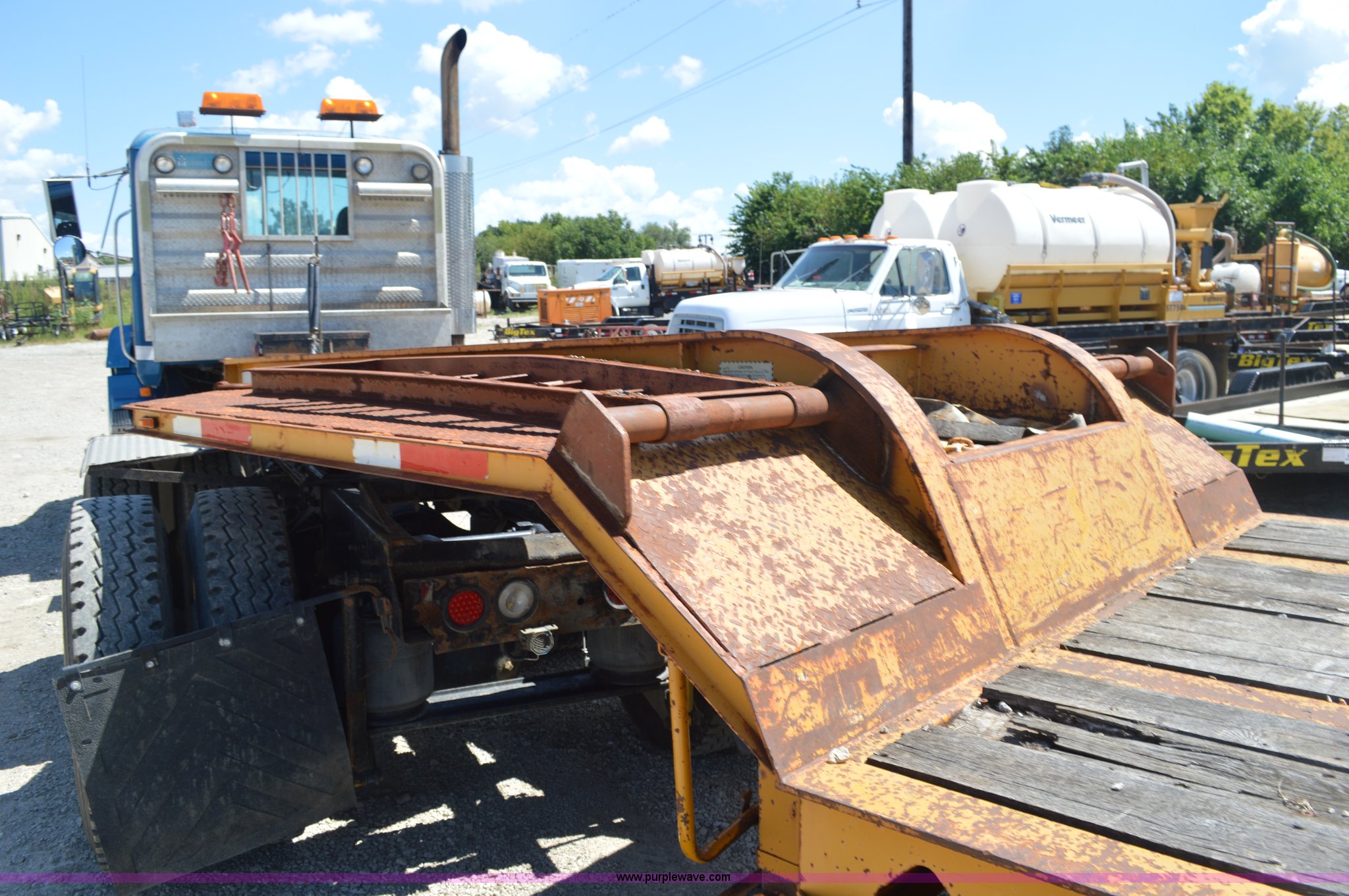 Purple Wave is selling a used Equip. Trailer in Kansas. This item is a 2001 Fontaine LT-7-35HBTW equipment trailer with the following: 29'L x 102"W deck, 2'L dovetail, 6'L x 22"W ramps, 255/70R22.5 tires, GVWR 70,000 lbs, Manual jack, Side D rings, Unit # 937028