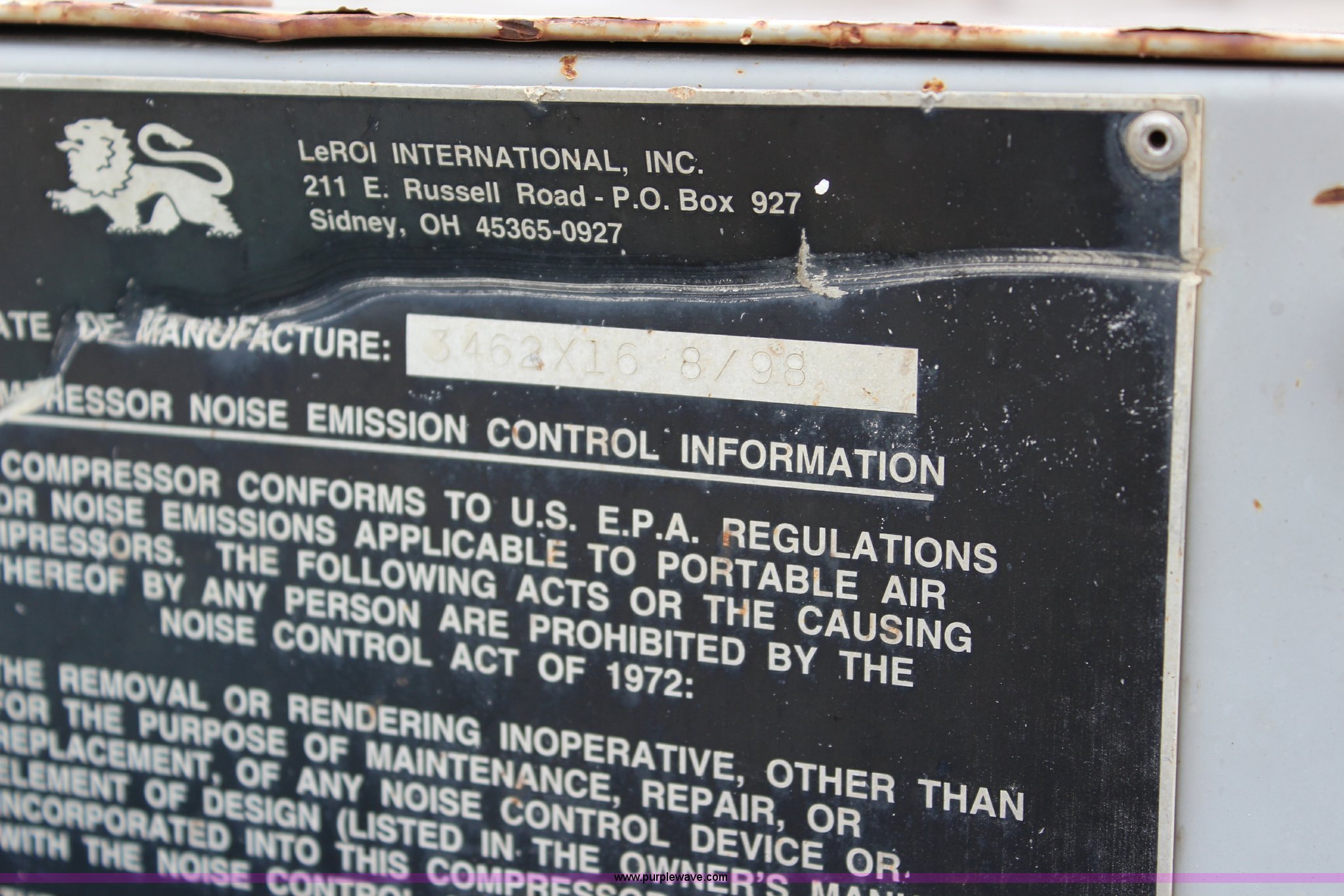 Take a look at this used 1998 Leroi H185 air compressor being sold on September 17th, 2015 in the SOLD! September 17 Cimarron Underground Equipment Auction made by Leroi. Take a look at all of the item information below or take a look at similar auctions for Compressors.
