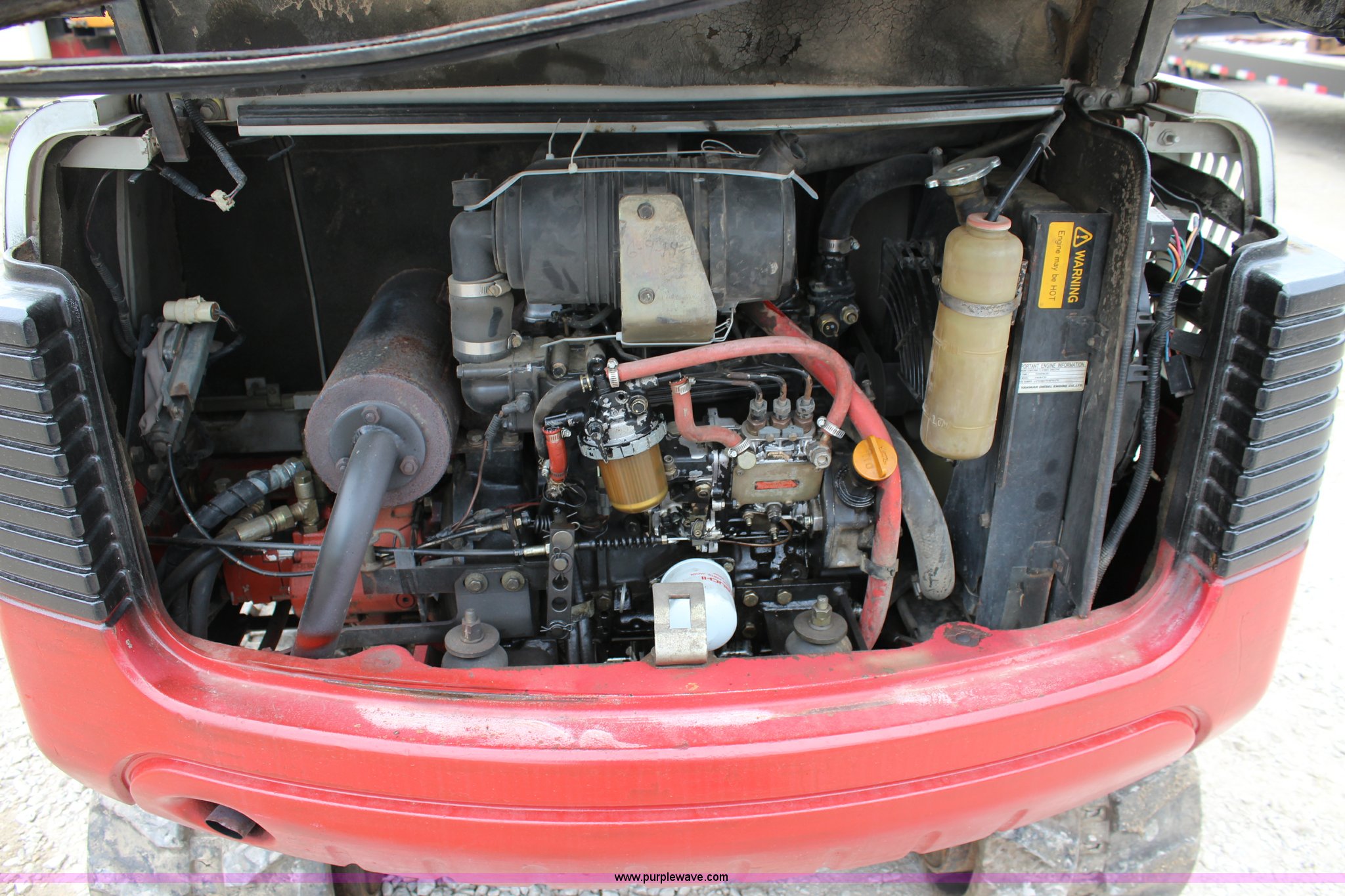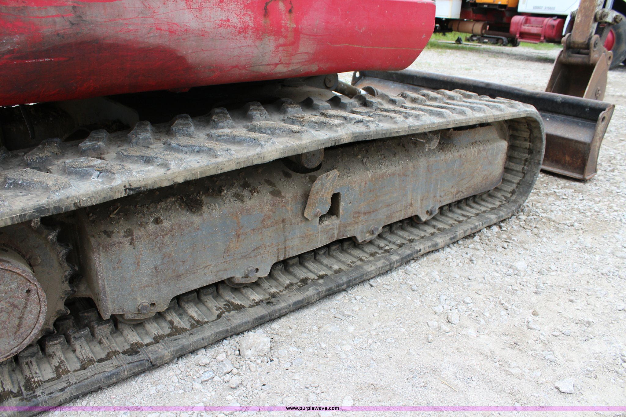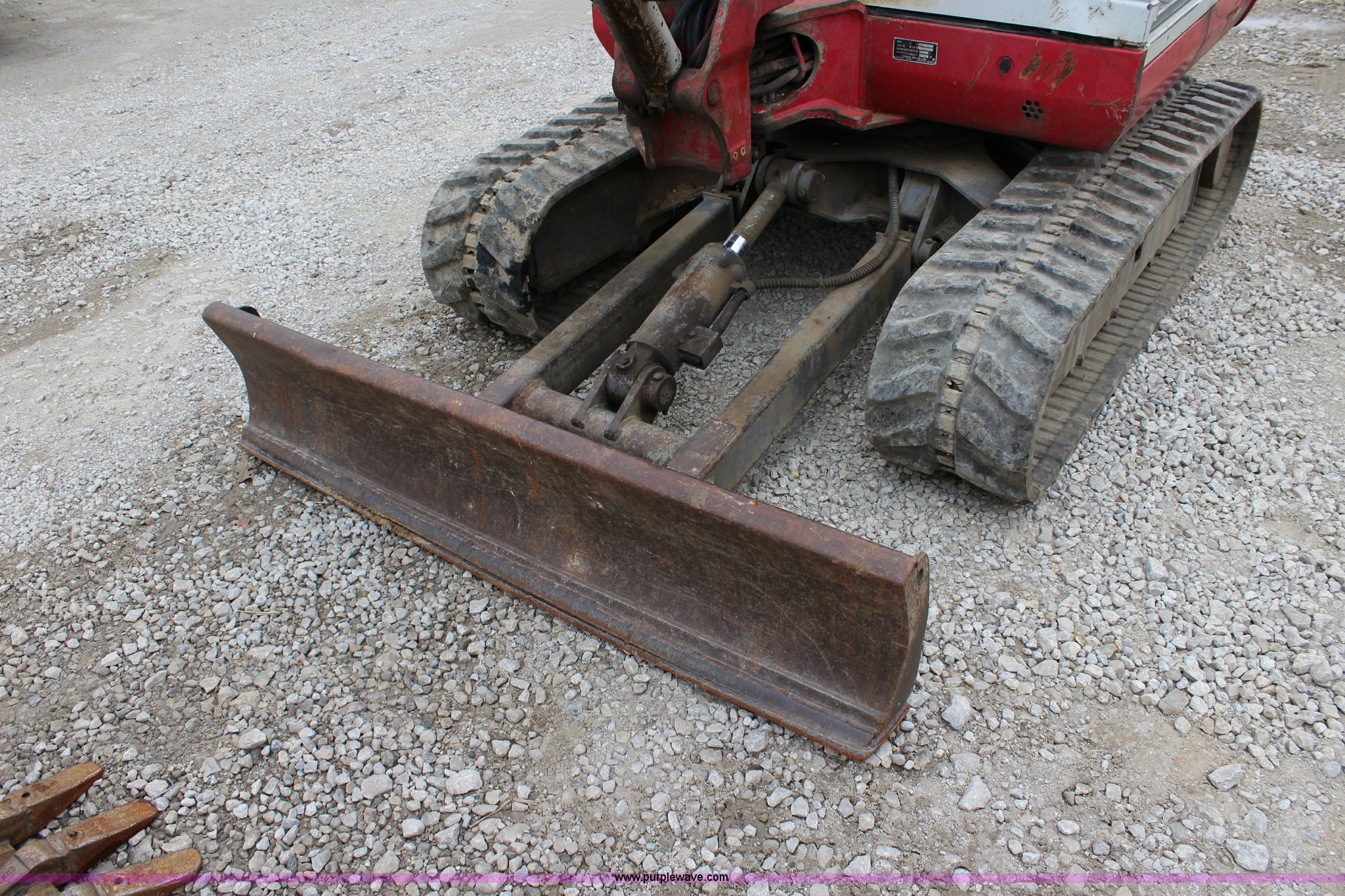 Purple Wave is selling a used Mini Excavator in Kansas. This item is a 2002 Takeuchi TB135 compact excavator with the following: 5,128 hours on meter, Yanmar 3TNE88-ETB1 three cylinder diesel engine, 28 HP, Hydrostatic transmission, Canopy, Suspension seat, Standard boom, 5'3" stick length, CP 12"W bucket, One way standard auxiliary hydraulics, 64"W backfill blade, 13.5"W rubber tracks, Serial 13512703