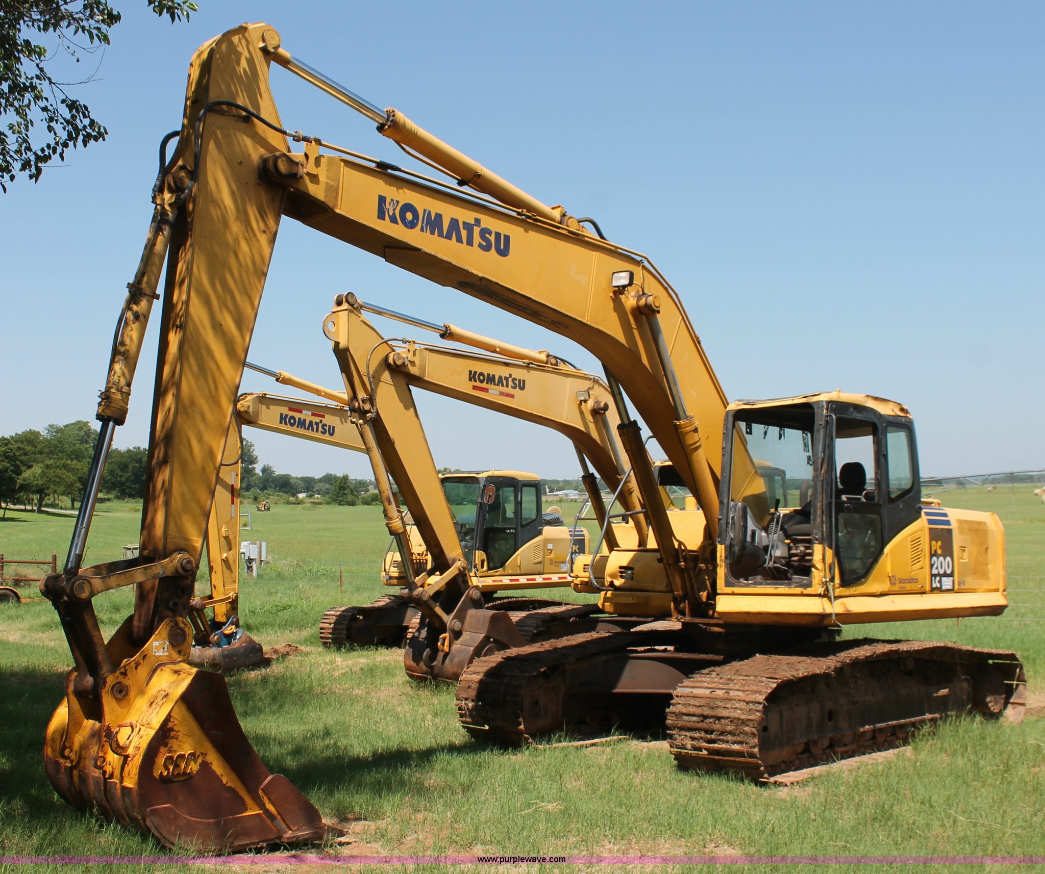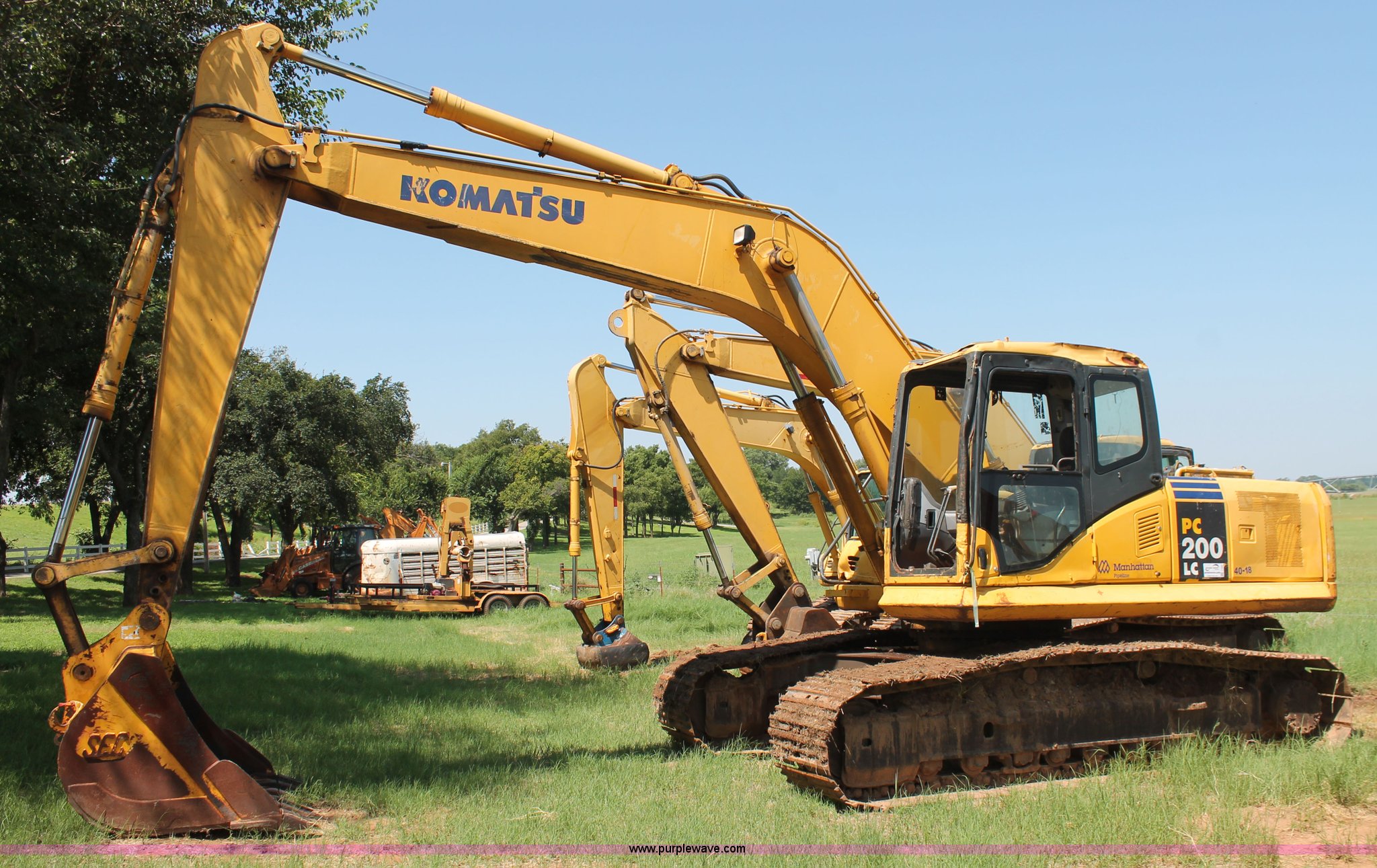 Purple Wave is selling a used Hydraulic Excavator in Oklahoma. This item is a 2005 Komatsu PC200LC-7L excavator with the following: 2,142 hours on meter, Komatsu six cylinder diesel engine, Hydrostatic transmission, AM/FM, Suspension seat, Front work lights, Standard boom, 9.5' stick length, SEC 46"W bucket, Weld-on cutting edge, (6) bolt-on teeth, 31.5"W steel triple grouser track pads, 46,410 lbs. base operating weight, Front windshield missing, Engine cover missing, Serial KMPTC049T54A87542, Unit# 40-18