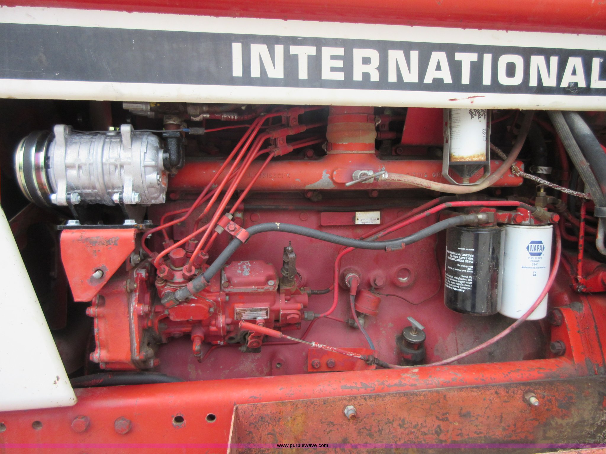 Purple Wave is selling a used Tractor in Oklahoma. This item is a 1979 International 1586 tractor with the following: 2,171 hours on meter, International 466 C.I.D. six cylinder turbo diesel engine, Serial 4199984, Torque amplifier transmission, Non-operational, will not go into second gear, AC and heat, AM/FM, Three point, Seven pin outlet, 1000 PTO, (3) rear hydraulic remote sets, (12) suitcase weights, 11.00-16 front tires, 20.8-38 dual rear tires, Serial 2660154U16448