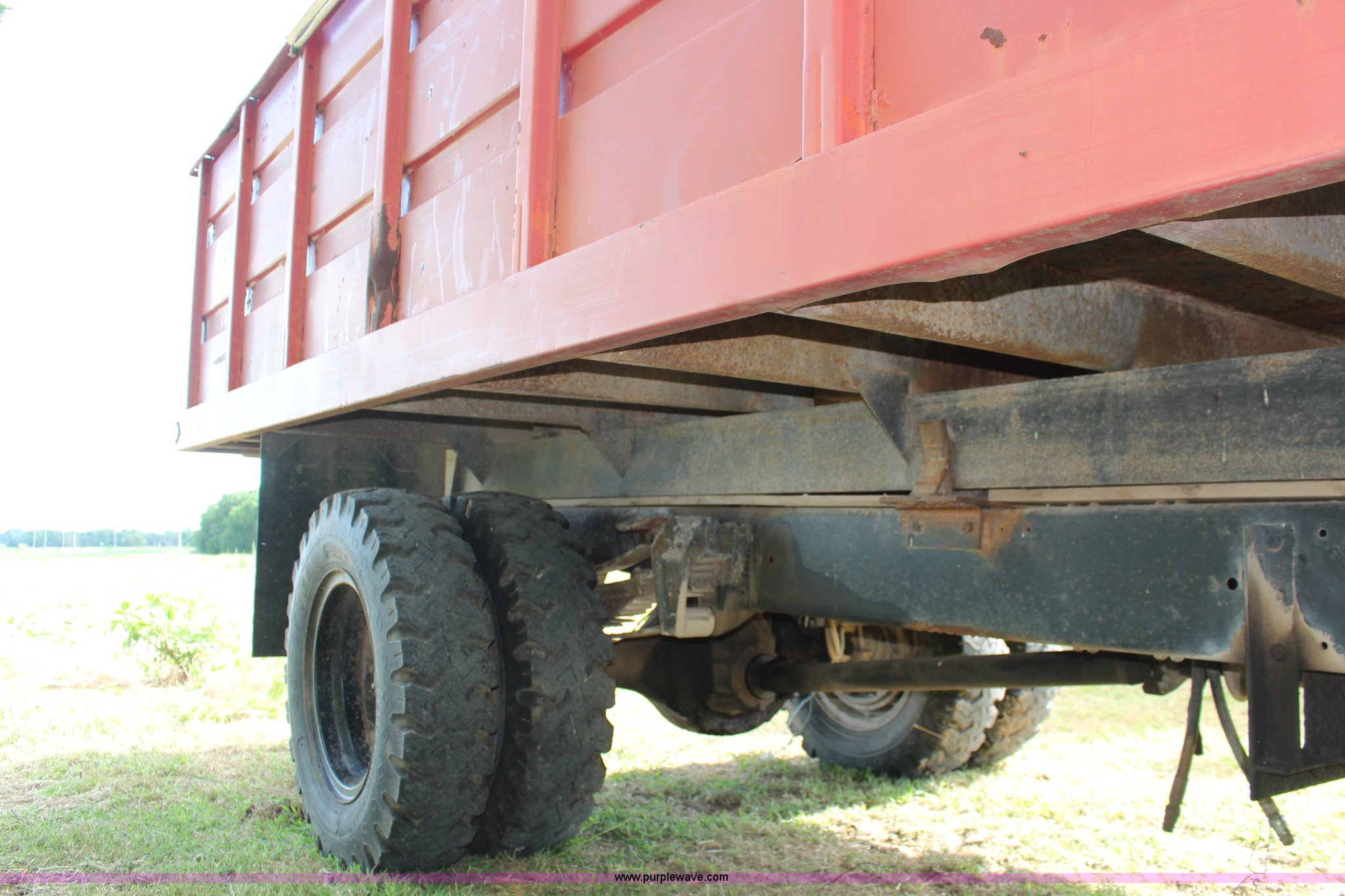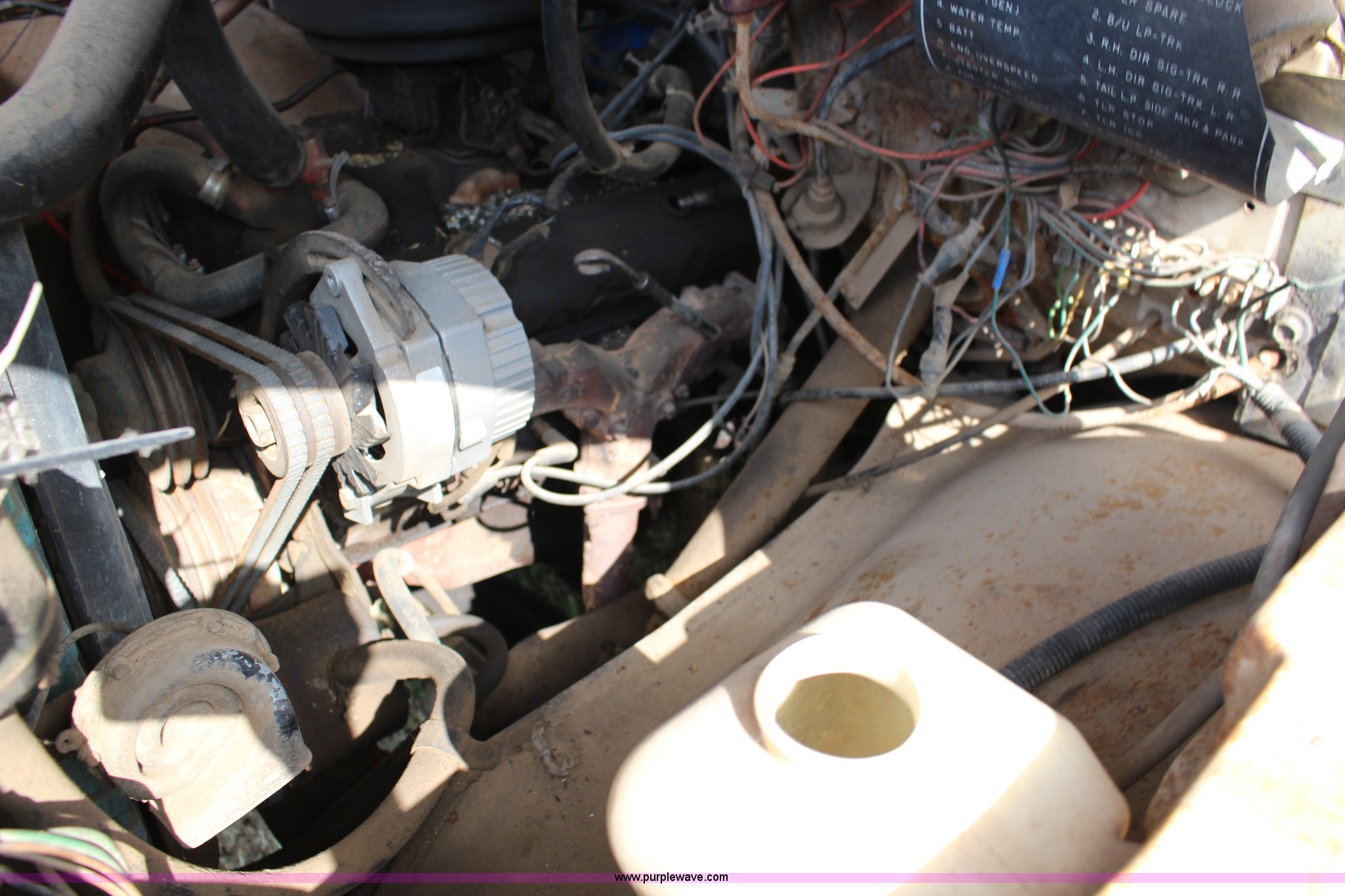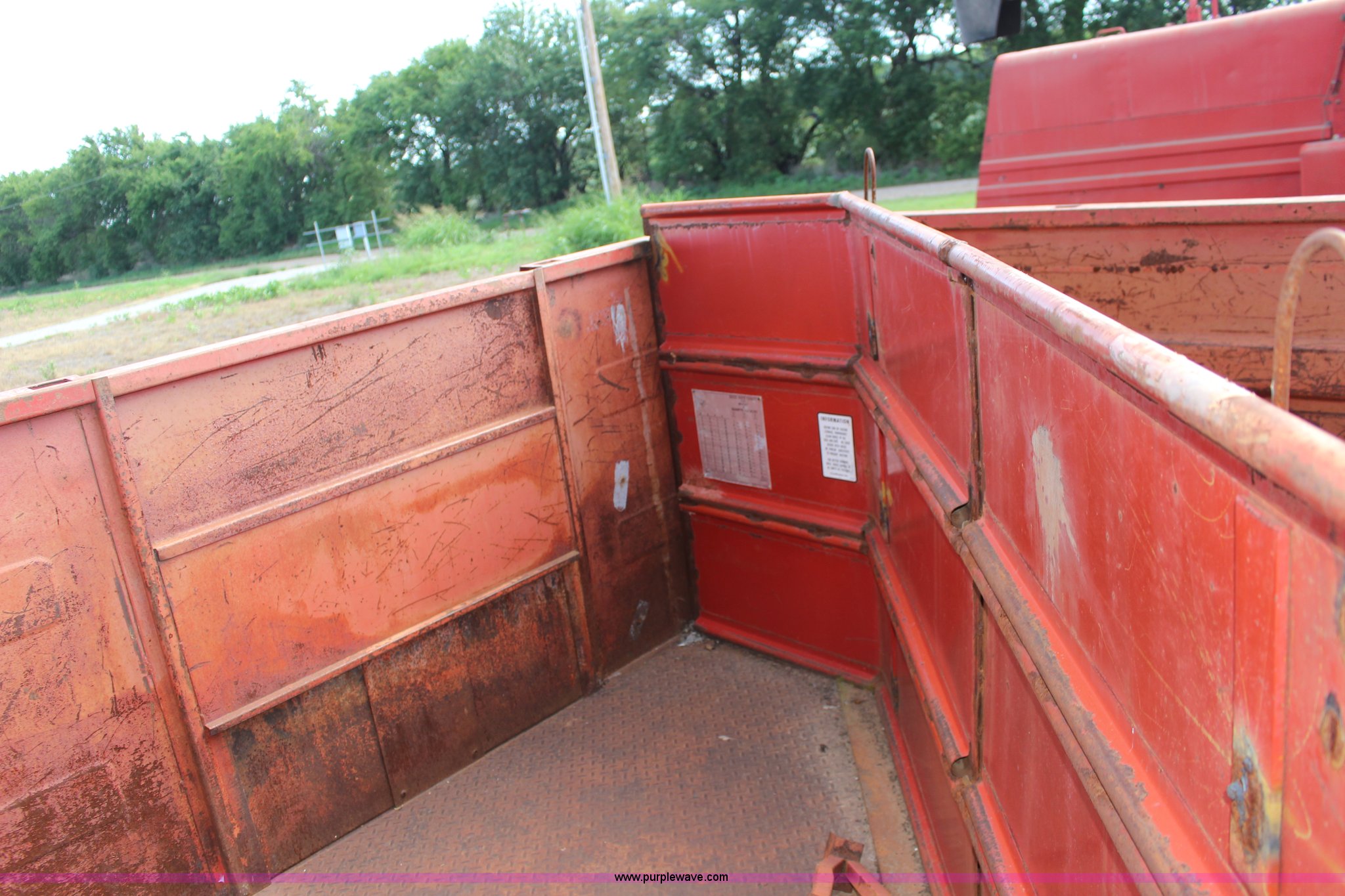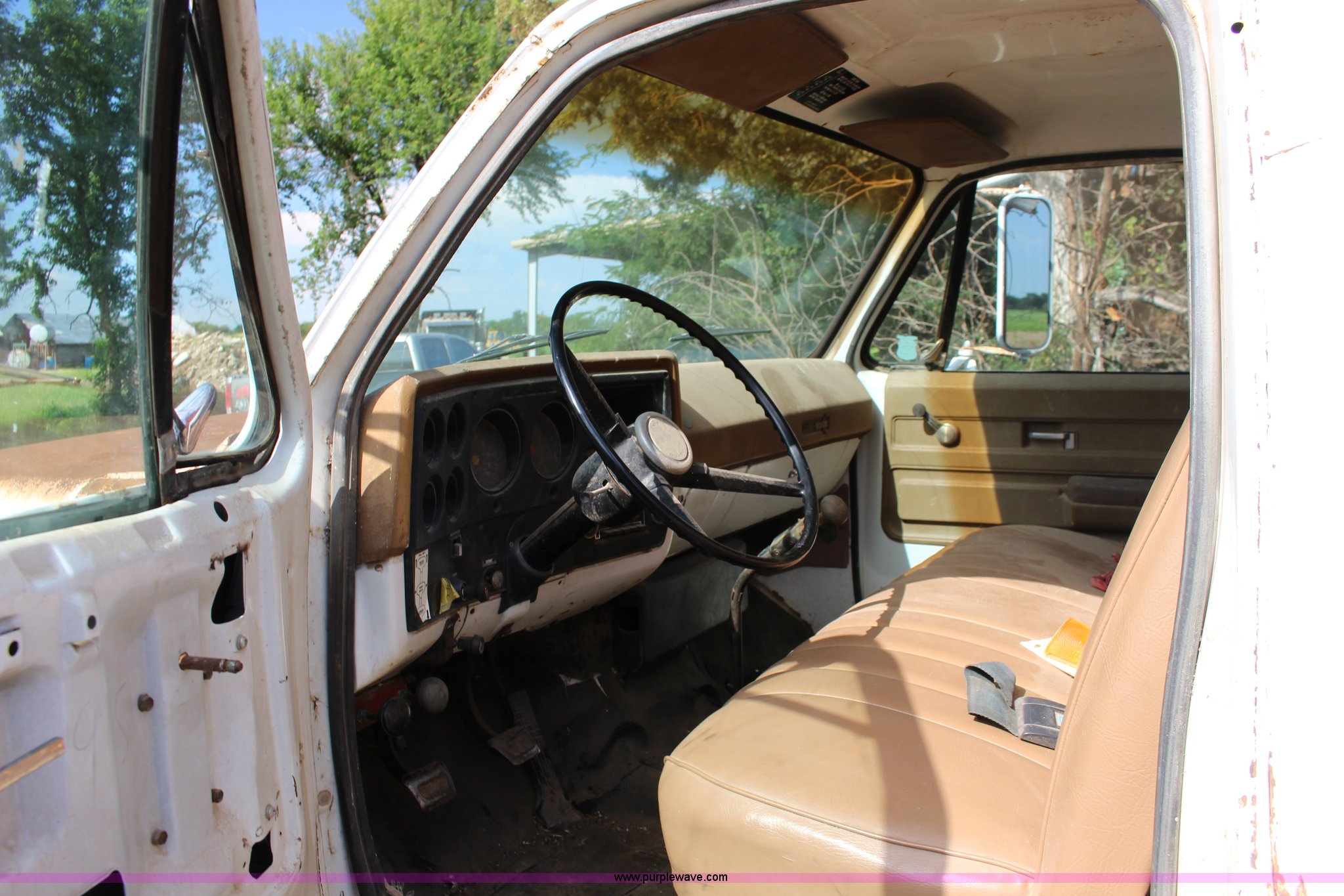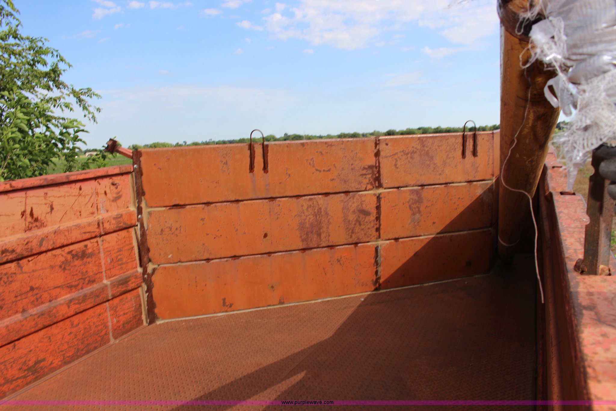 Purple Wave is selling a used Grain Truck in Kansas. This item is a 1974 Chevrolet C60 grain truck with the following: 7,887 miles on odometer, V8 gas engine, Engine blown, Four speed manual transmission, Two speed rear end, Manual windows and locks, 16'L x 8'W steel bed, Hoist, Hoist leaks,, Spring suspension, Hydraulic brakes, Non-operational, 8.25-20 tires, Has not been used in three years