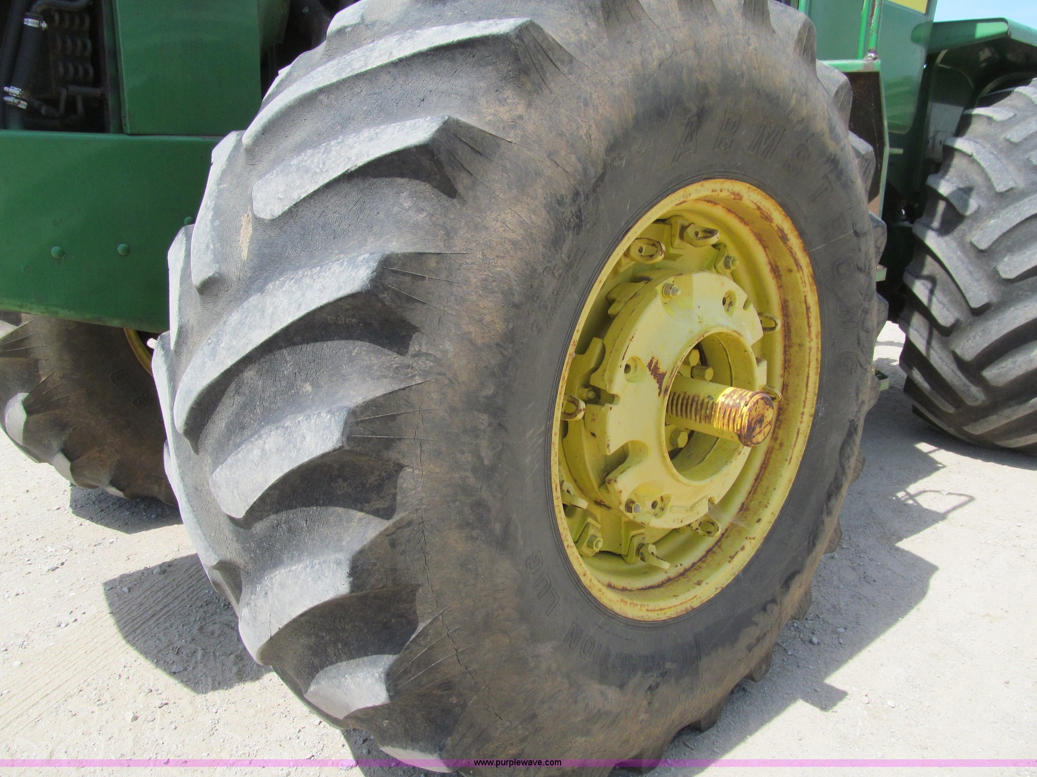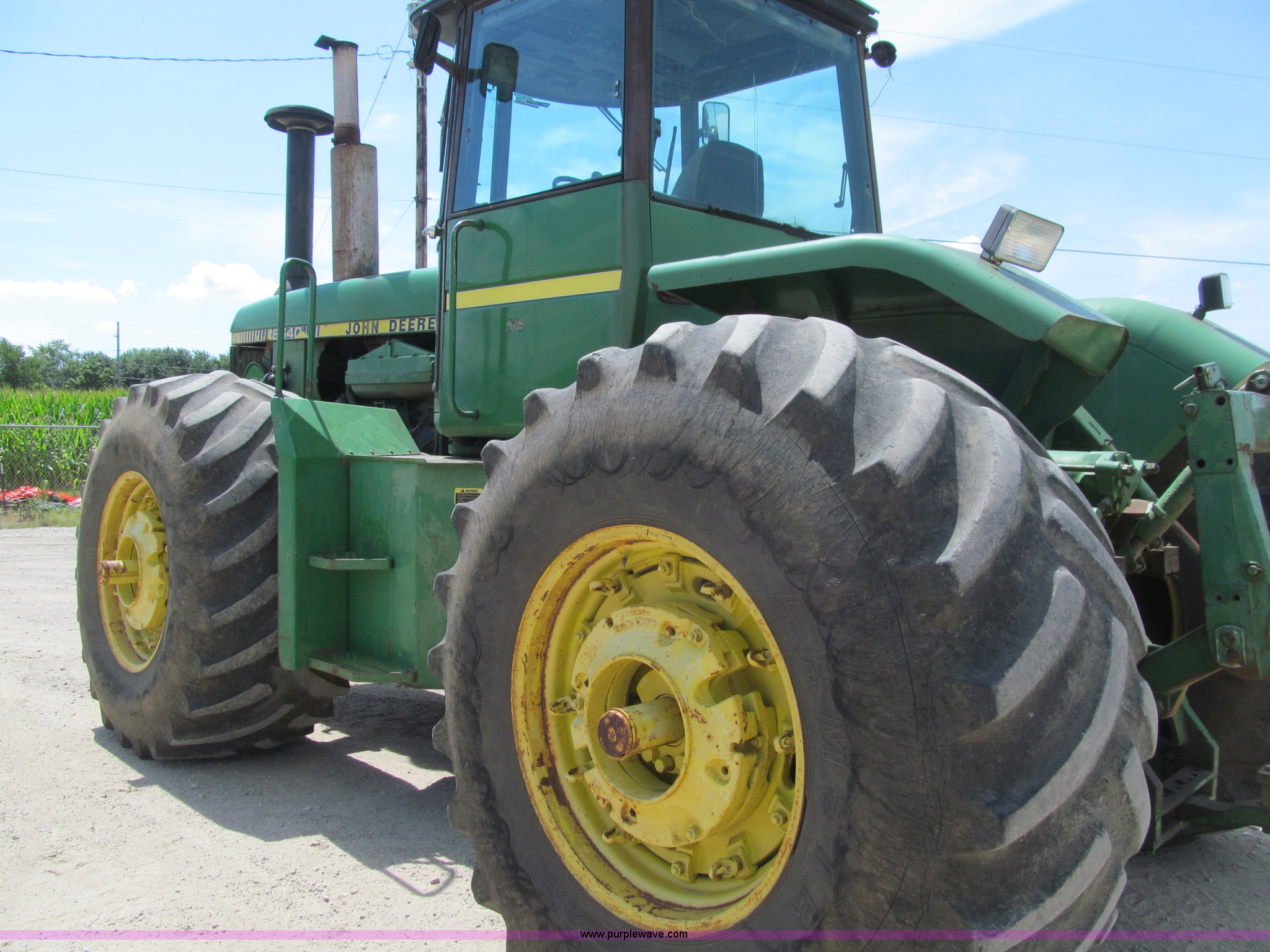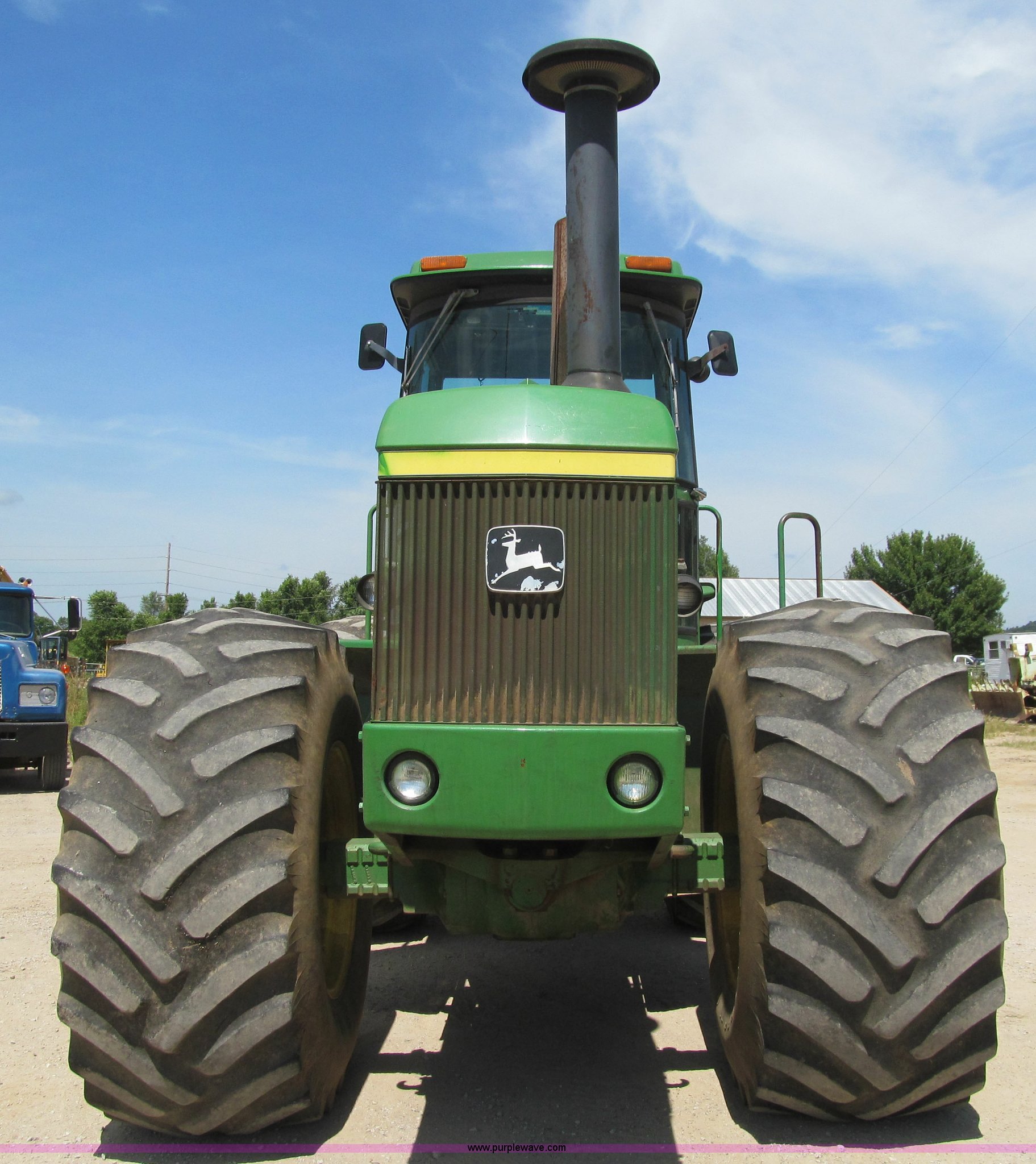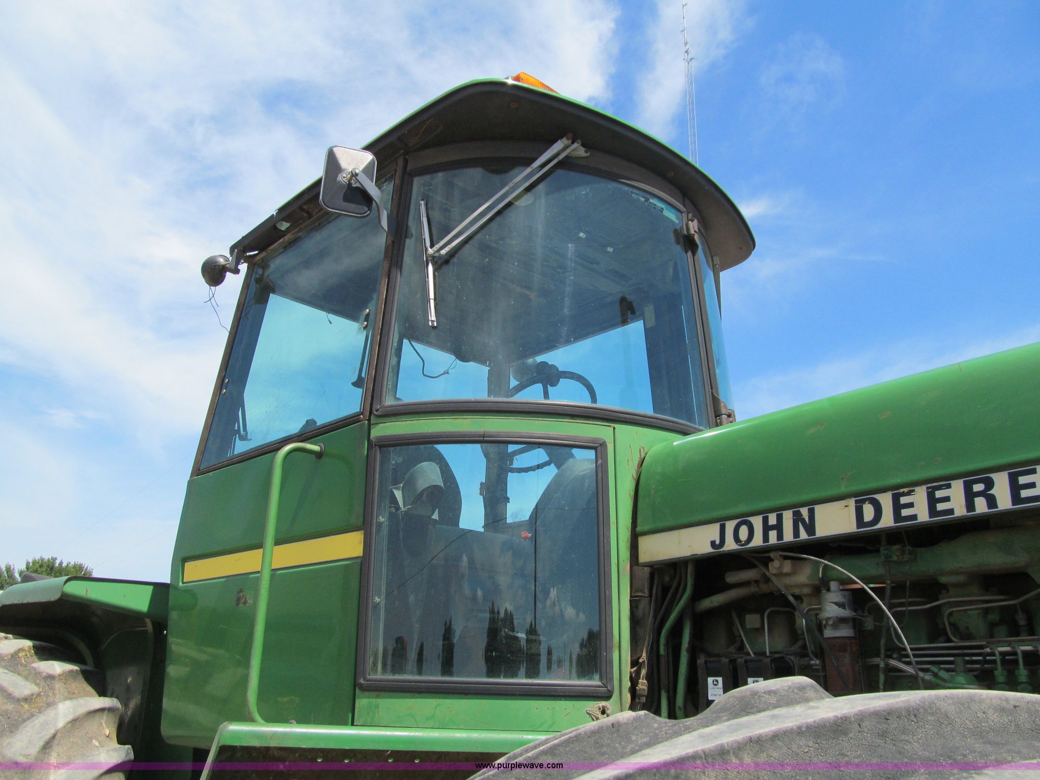 Purple Wave is selling a used Articulated 4-Wheel Drive Tractor in Iowa. This item is a 1977 John Deere 8630 4WD tractor with the following: 7,776 hours on meter, John Deere 10.1L six cylinder turbo diesel engine, 275 HP, Quad-Range transmission, 16F-4R gears, Differential lock, AC and heat, AM/FM, Tilt steering wheel, Suspension seat, Block heater, Three point, Top link, Quick attach, (2) rear hydraulic remote sets, (6) wheel weights, 125" wheelbase, 30.5L-32 dual tires, Dual wheels and tires furnished loose, Serial 8630H007363R
