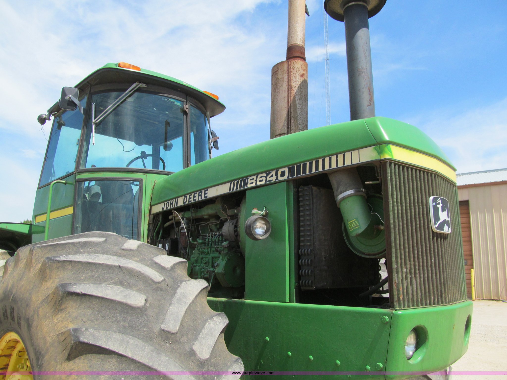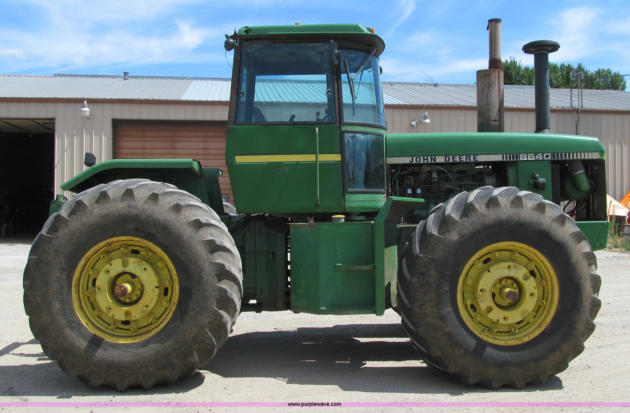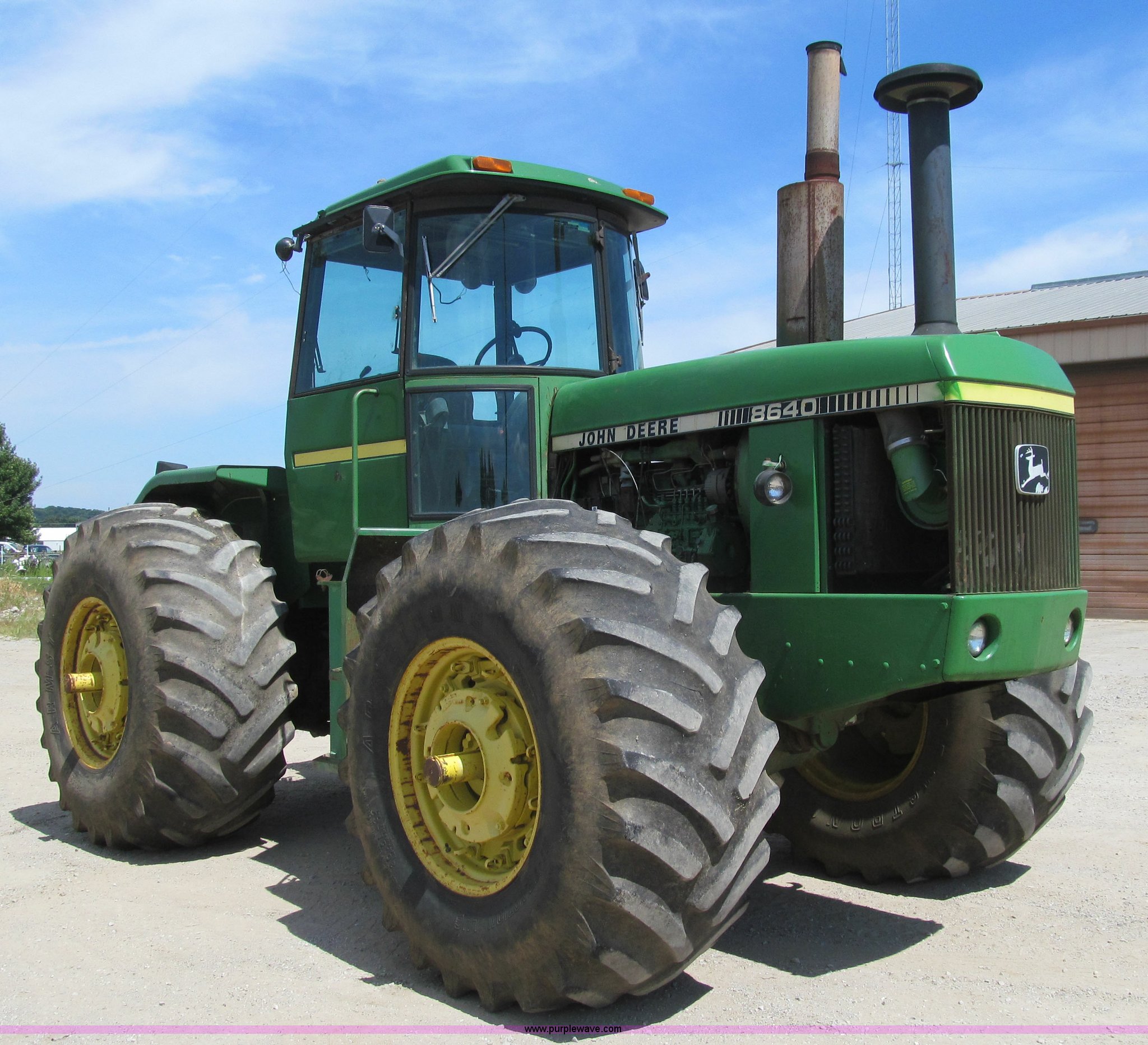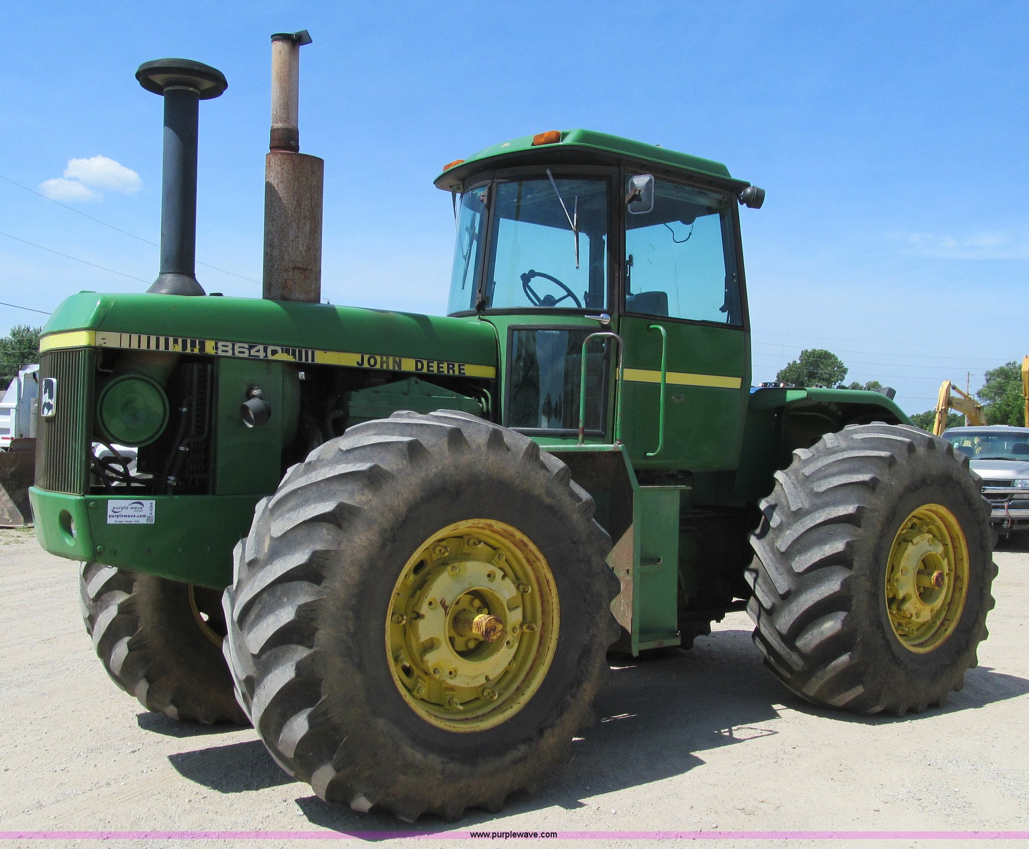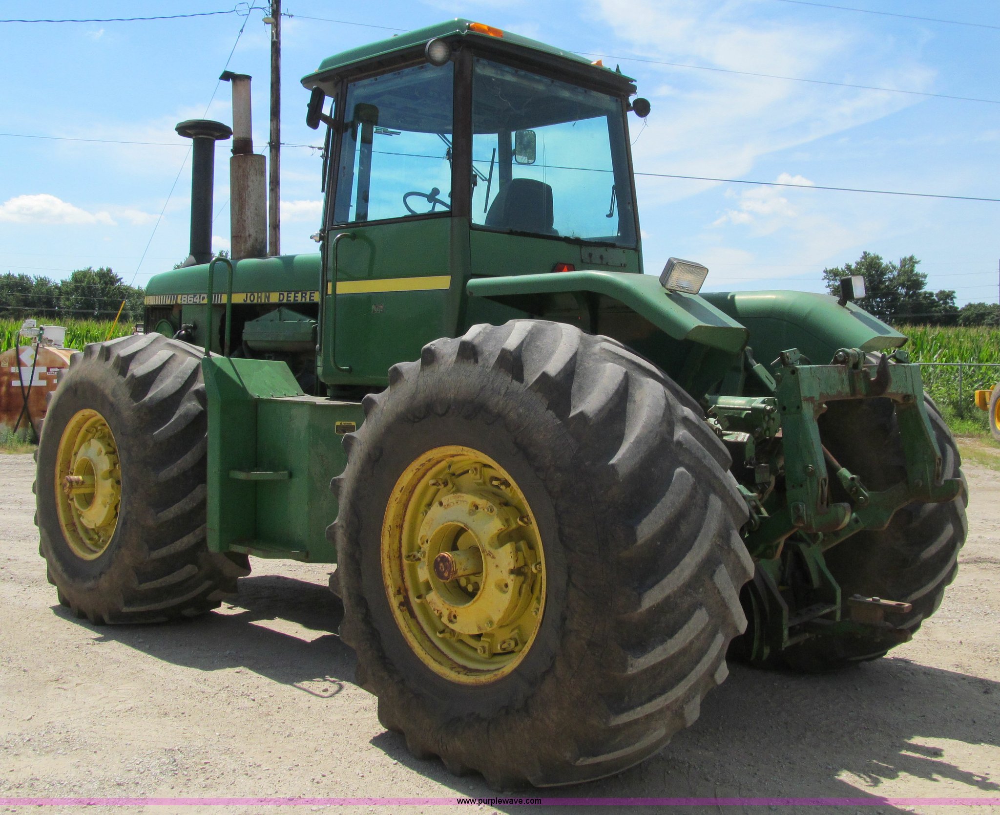 Purple Wave is selling a used Articulated 4-Wheel Drive Tractor in Iowa. This item is a 1977 John Deere 8630 4WD tractor with the following: 7,776 hours on meter, John Deere 10.1L six cylinder turbo diesel engine, 275 HP, Quad-Range transmission, 16F-4R gears, Differential lock, AC and heat, AM/FM, Tilt steering wheel, Suspension seat, Block heater, Three point, Top link, Quick attach, (2) rear hydraulic remote sets, (6) wheel weights, 125" wheelbase, 30.5L-32 dual tires, Dual wheels and tires furnished loose, Serial 8630H007363R