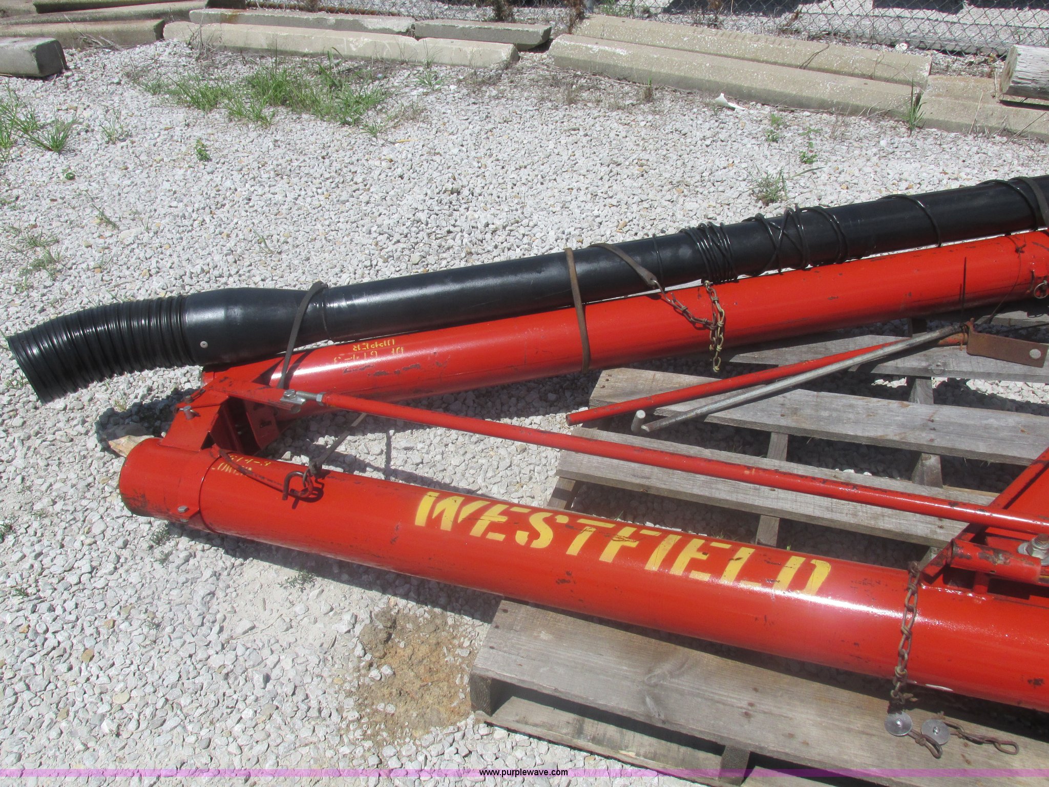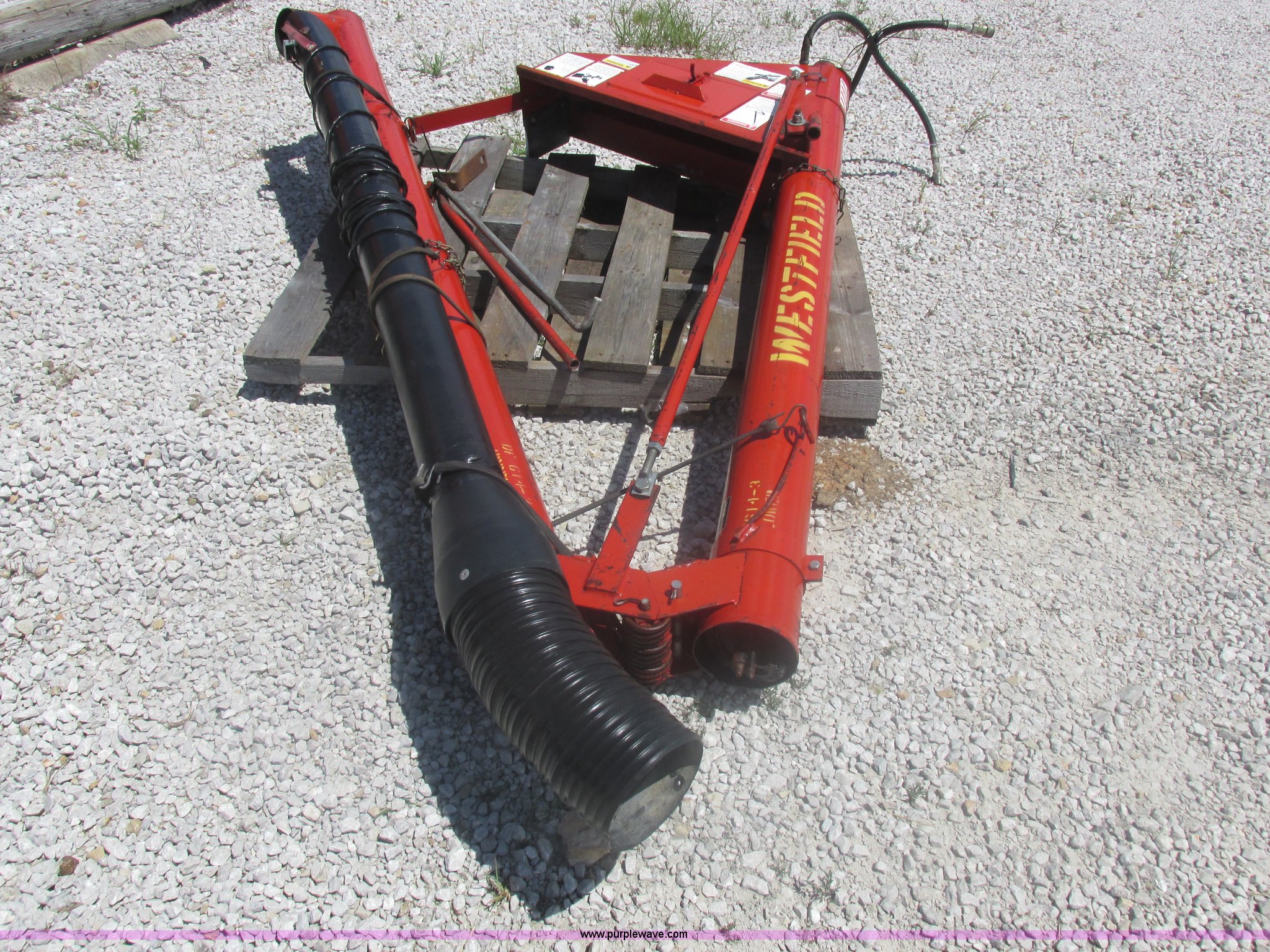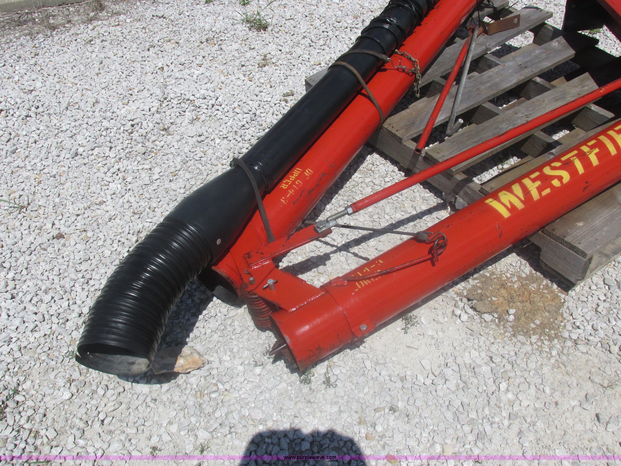 Purple Wave is selling a used Auger or Conveyor in Missouri. This item is a Westfield seed auger with the following: 15.5'L x 6" diameter auger, Hydraulic couplers, Delta electric shut-off, Serial 59183W