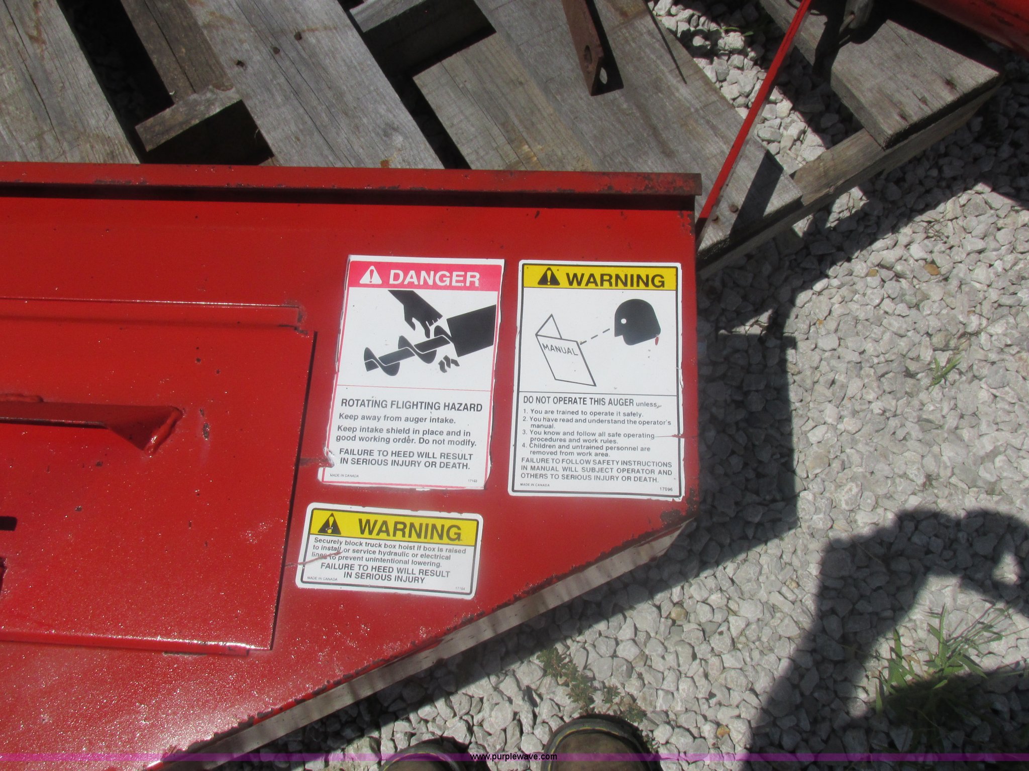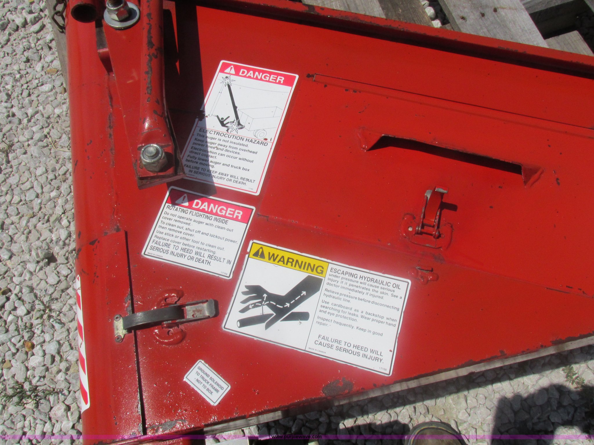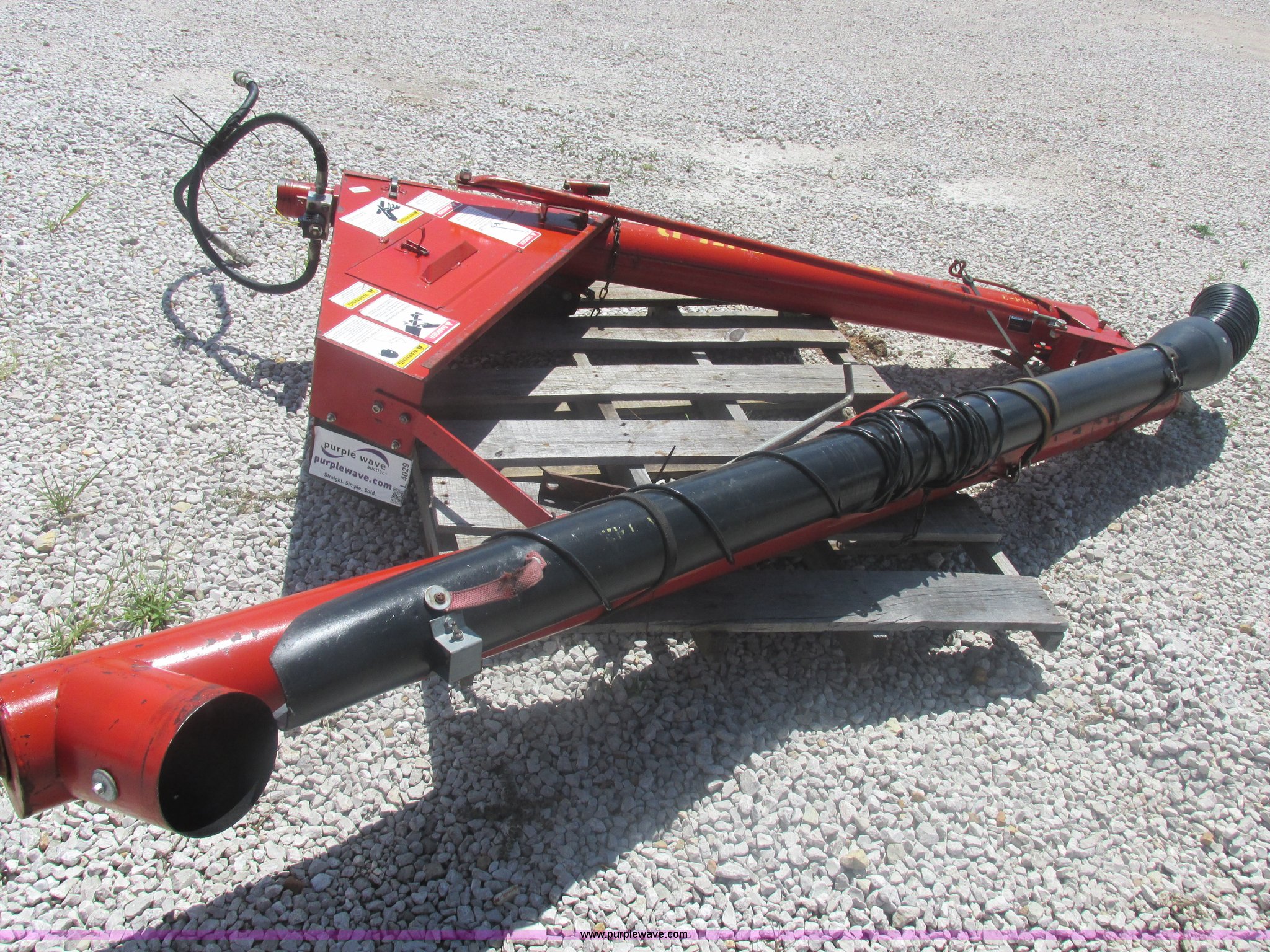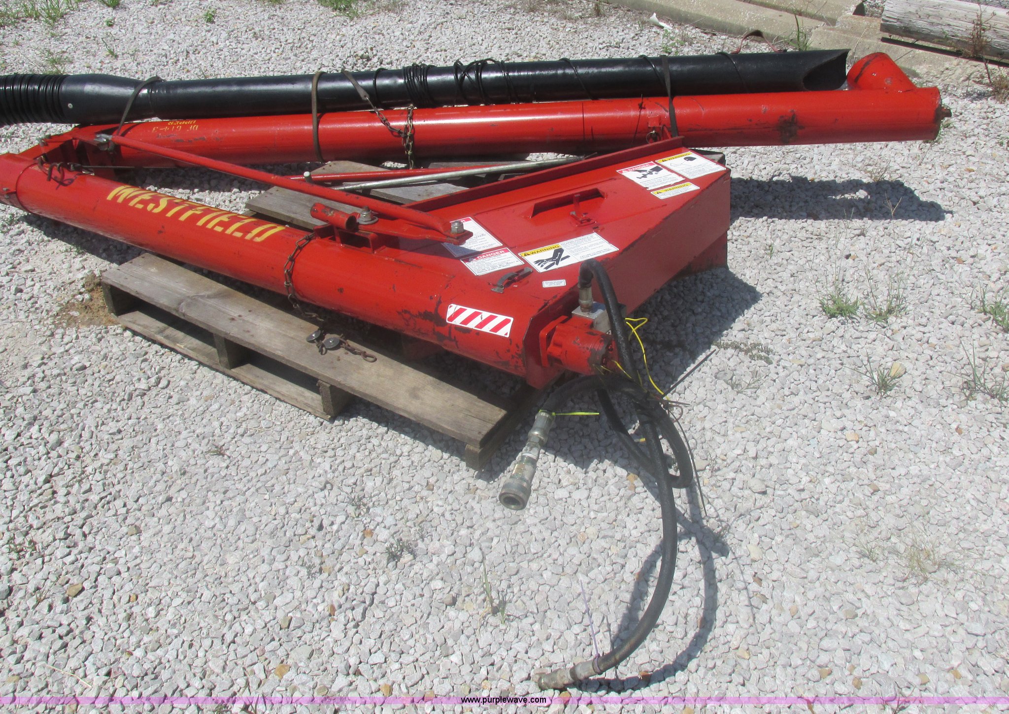 Purple Wave is selling a used Auger or Conveyor in Missouri. This item is a Westfield seed auger with the following: 15.5'L x 6" diameter auger, Hydraulic couplers, Delta electric shut-off, Serial 59183W