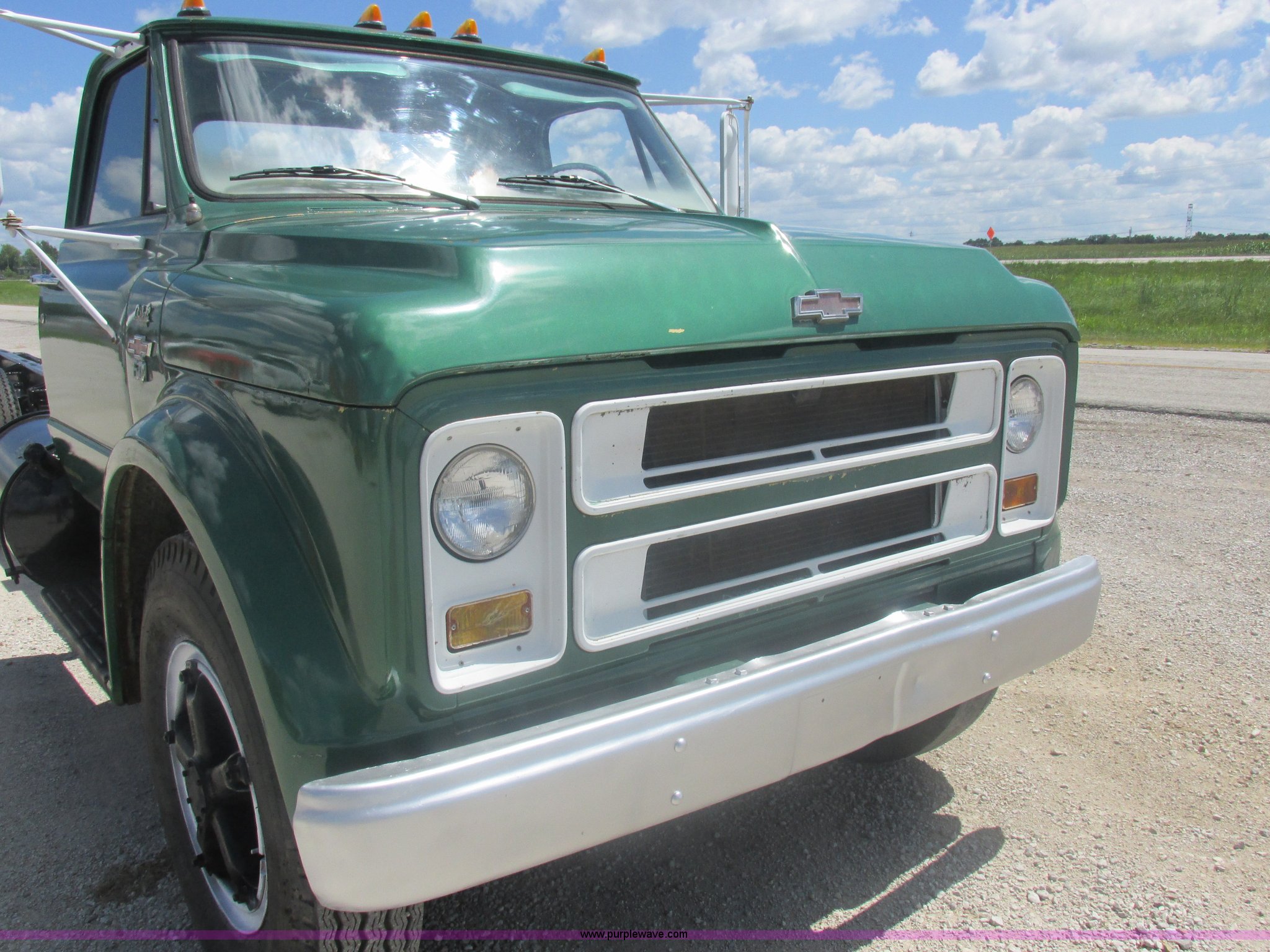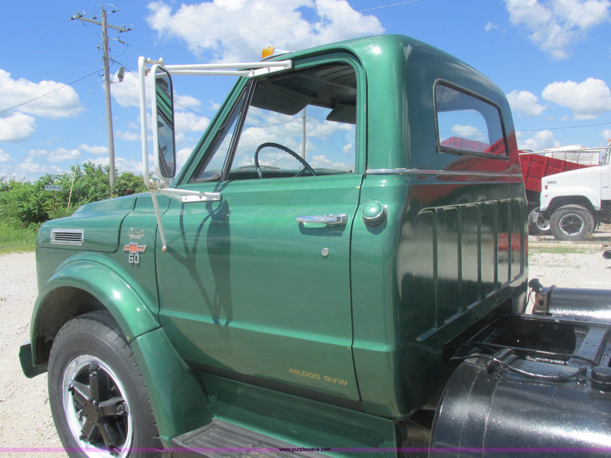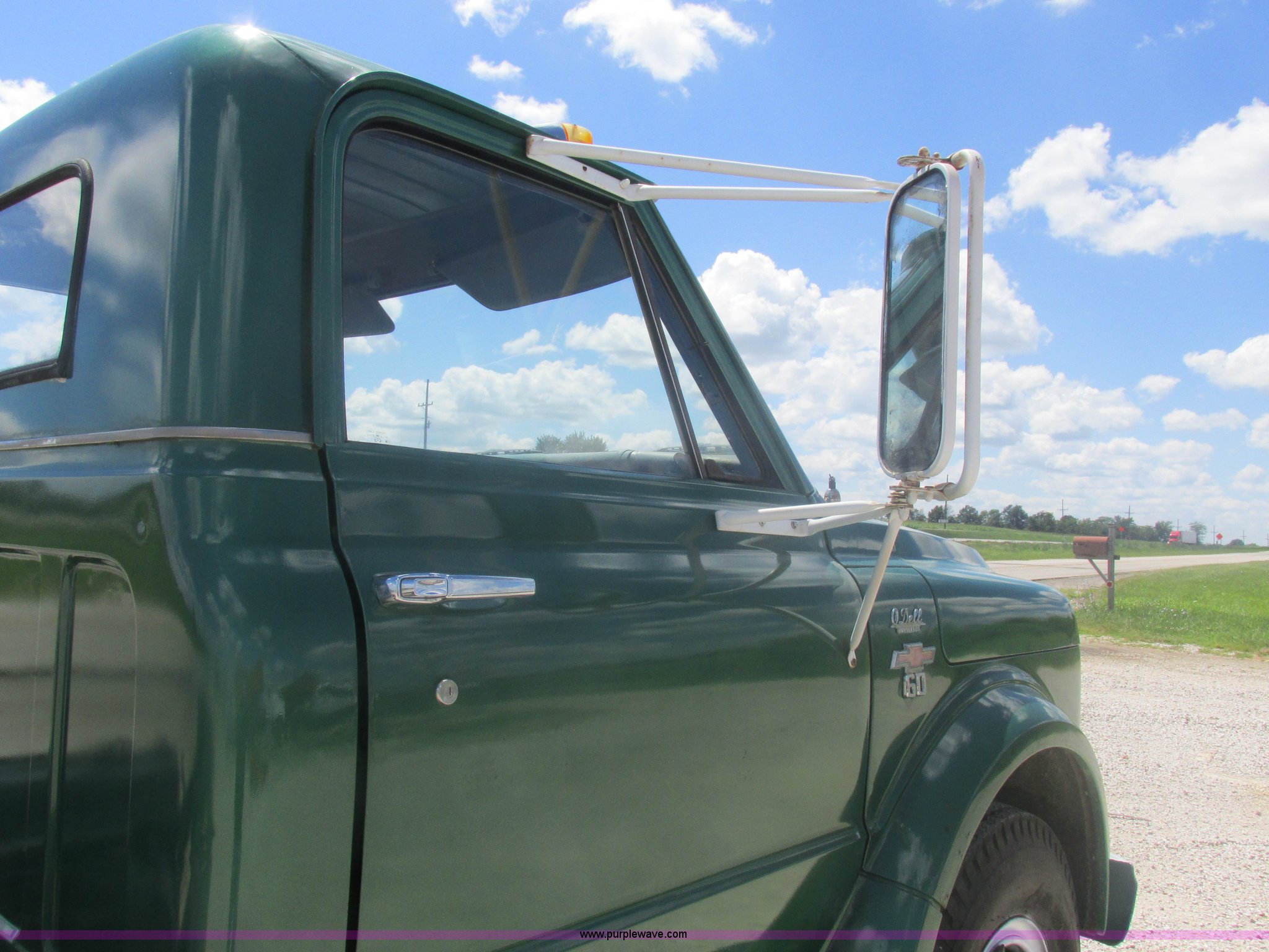Purple Wave is selling a used Truck Chassis in Missouri. This item is a 1967 Chevrolet C60 truck cab and chassis with the following: 95,842 miles on odometer, Eight cylinder gas engine, Five speed manual transmission, Two speed rear end, Tandem axle, Heat, AM, Manual windows and locks, Vinyl interior, Running boards, Dual fuel tanks, Spring suspension, Hydraulic brakes, 9-20 front tires, 10R20 rear tires