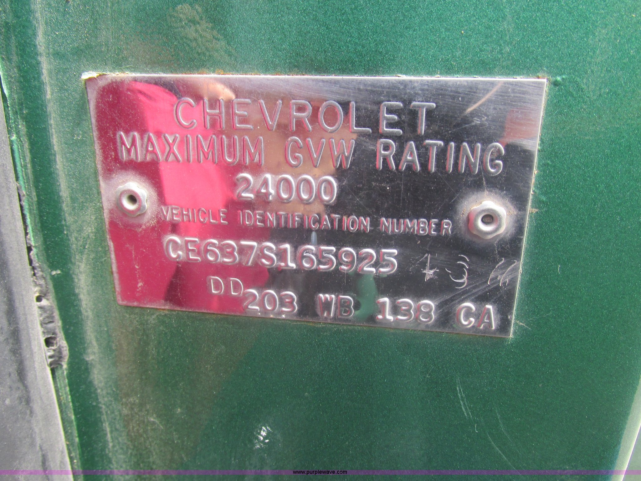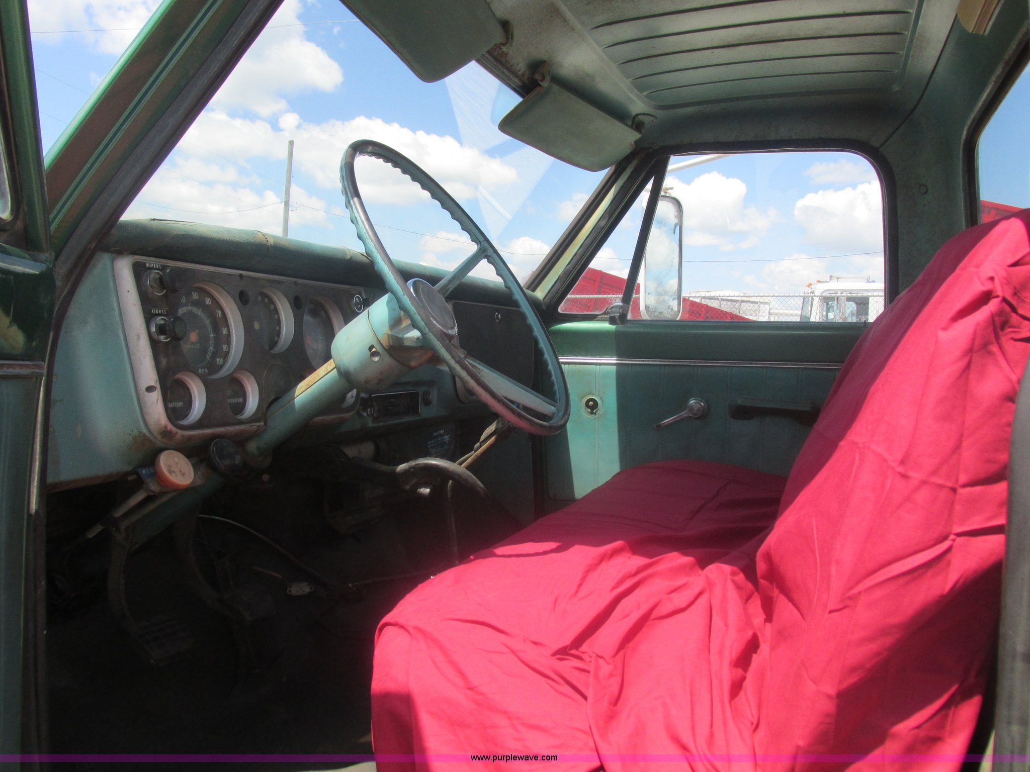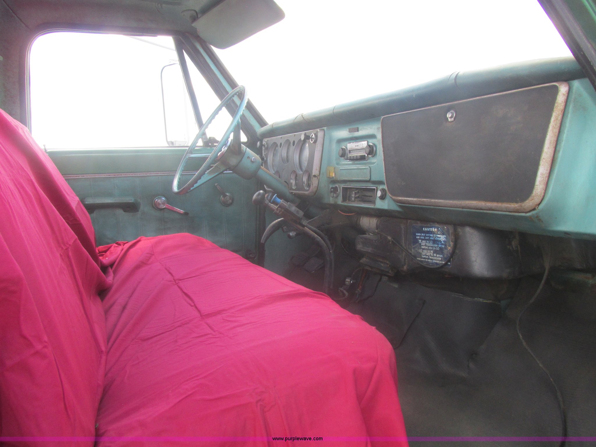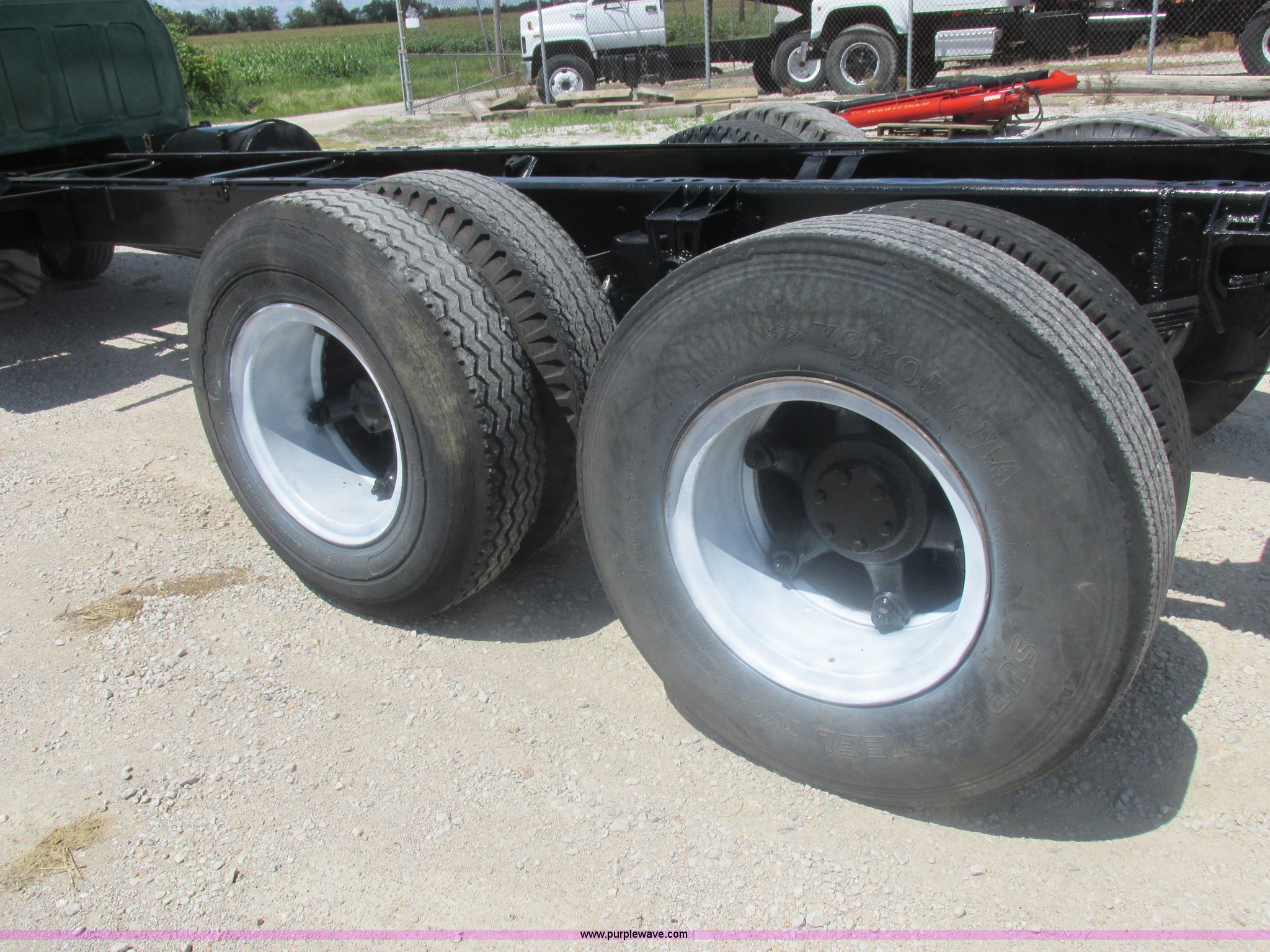 Purple Wave is selling a used Truck Chassis in Missouri. This item is a 1967 Chevrolet C60 truck cab and chassis with the following: 95,842 miles on odometer, Eight cylinder gas engine, Five speed manual transmission, Two speed rear end, Tandem axle, Heat, AM, Manual windows and locks, Vinyl interior, Running boards, Dual fuel tanks, Spring suspension, Hydraulic brakes, 9-20 front tires, 10R20 rear tires