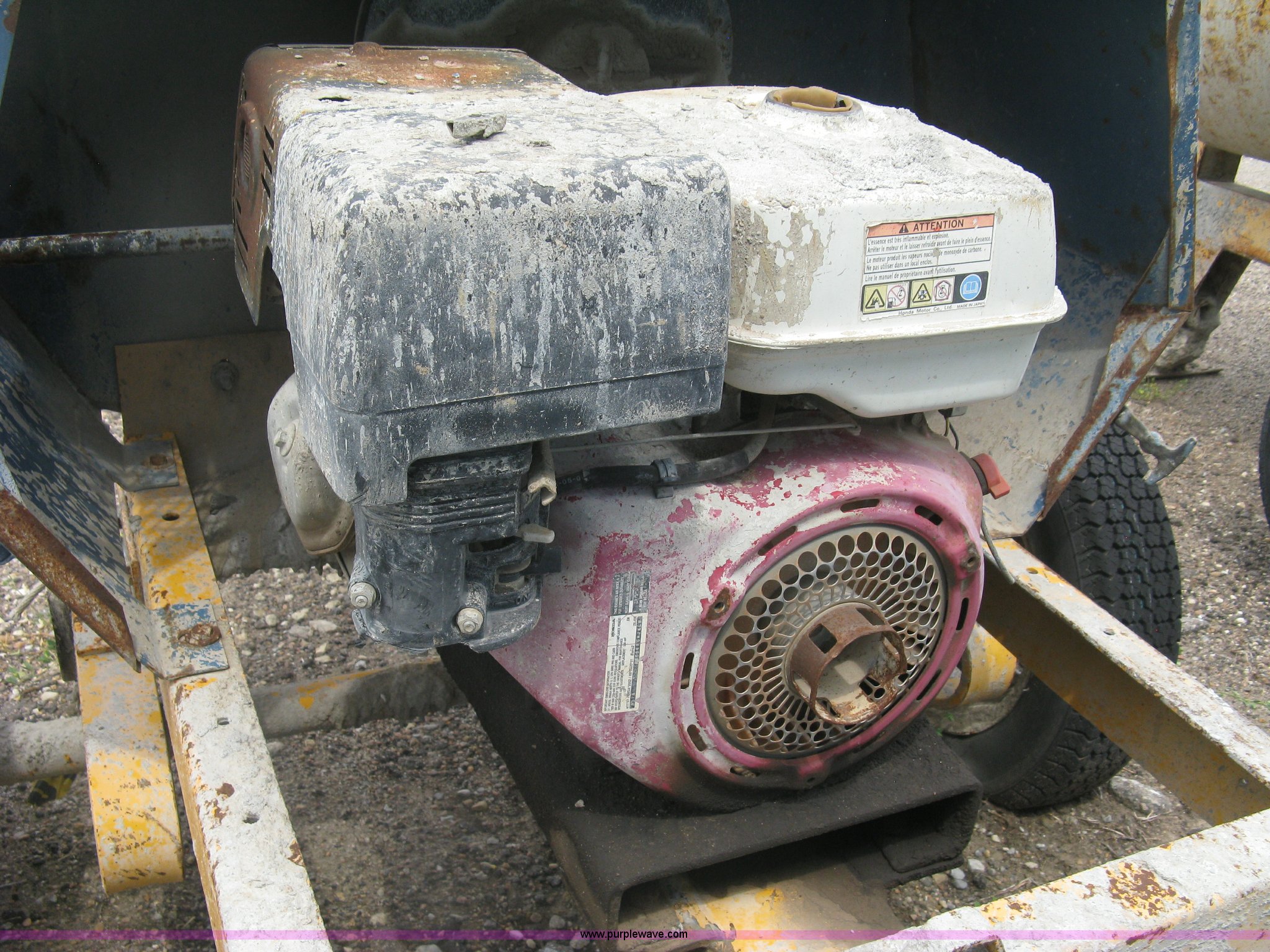 (3) Stone 1285PM portable concrete mixers. Honda gas engines Non-operational units, parts missing, Single axle chassis, Four lug 13" wheels, ST175/80R13 tires, Tire and wheel damage, One missing tow tongue, Two have damaged ball couplers, Non-operational units. D & D Rental. 4260 S West St. Wichita, KS 67217