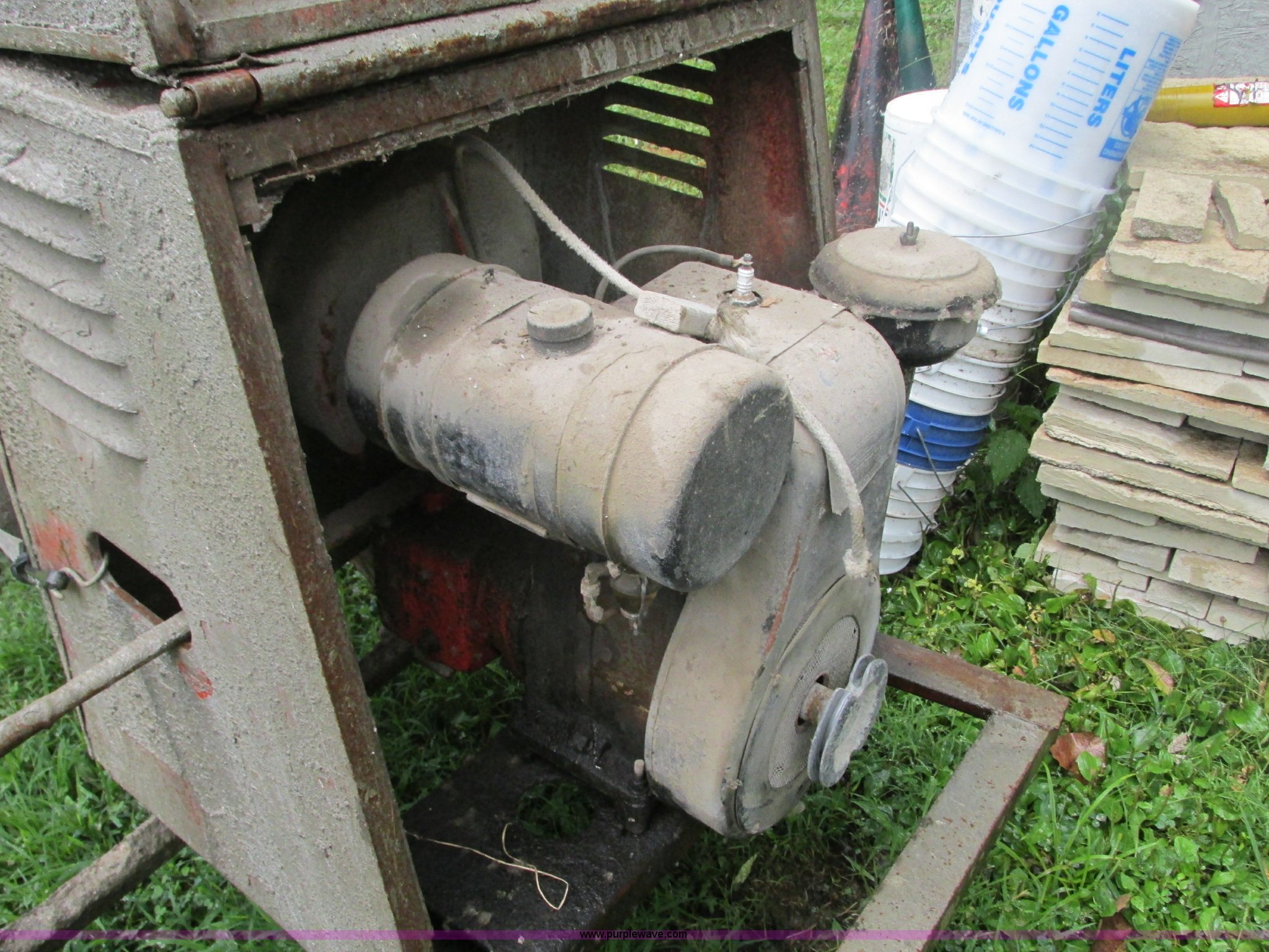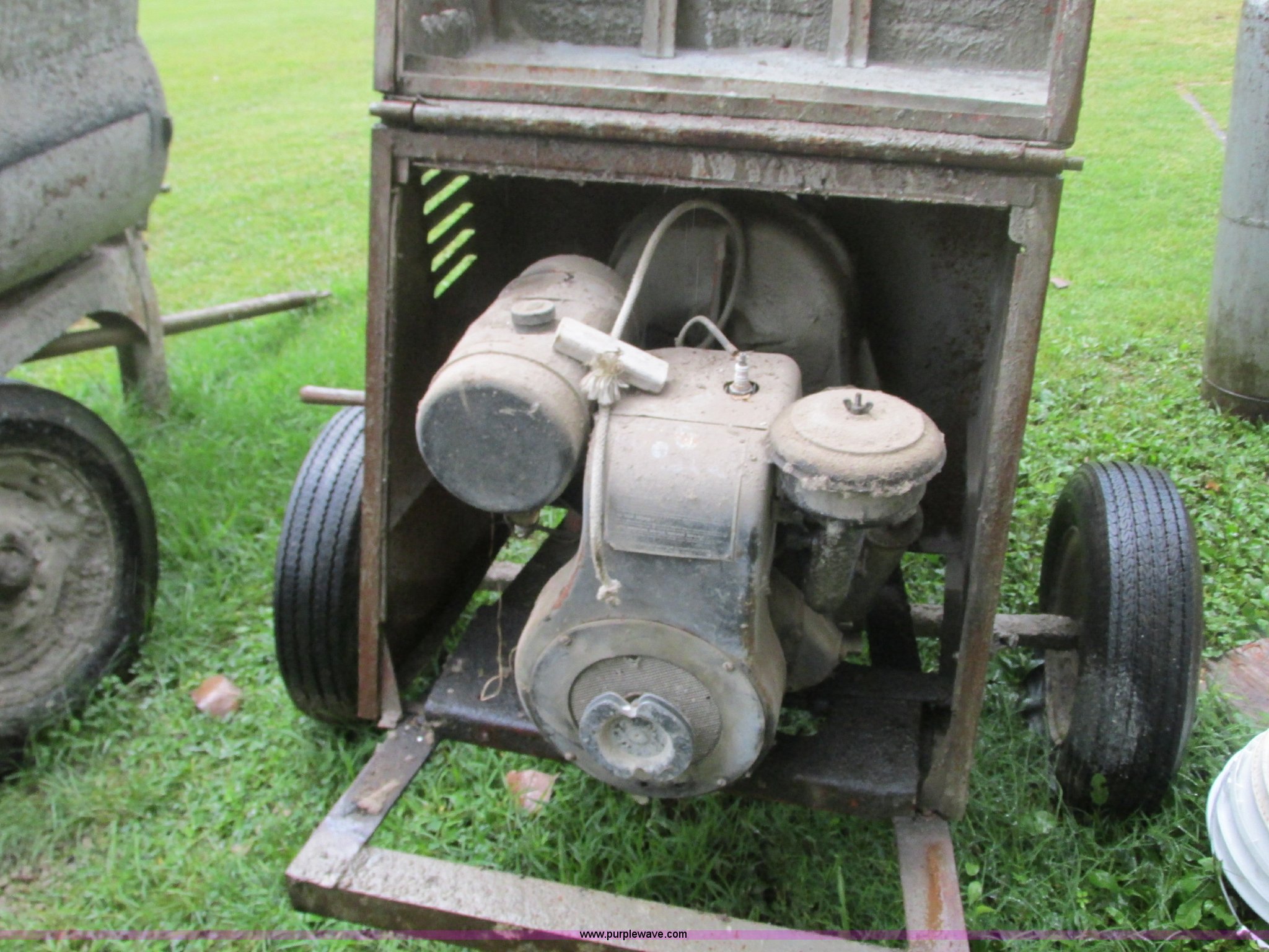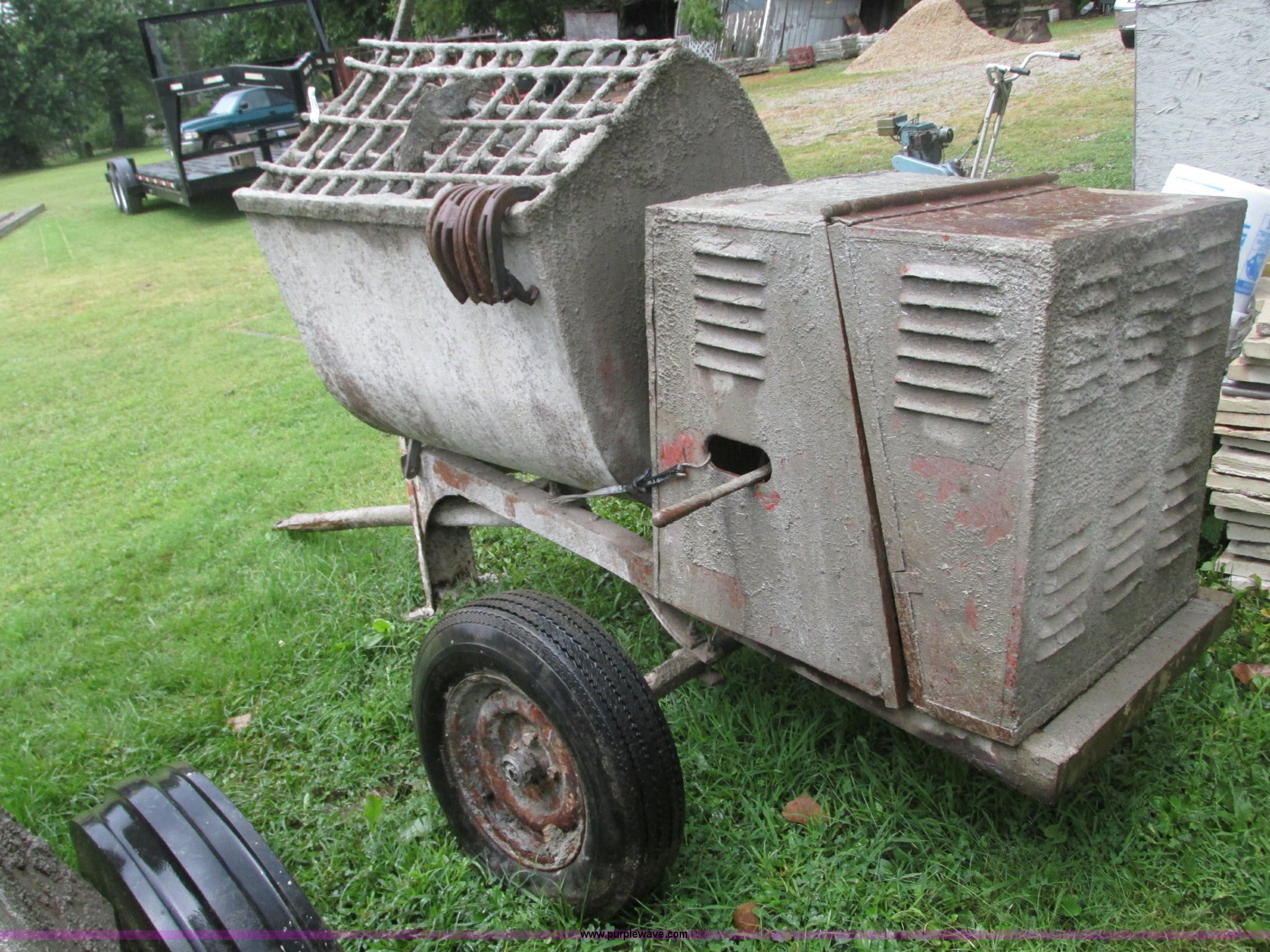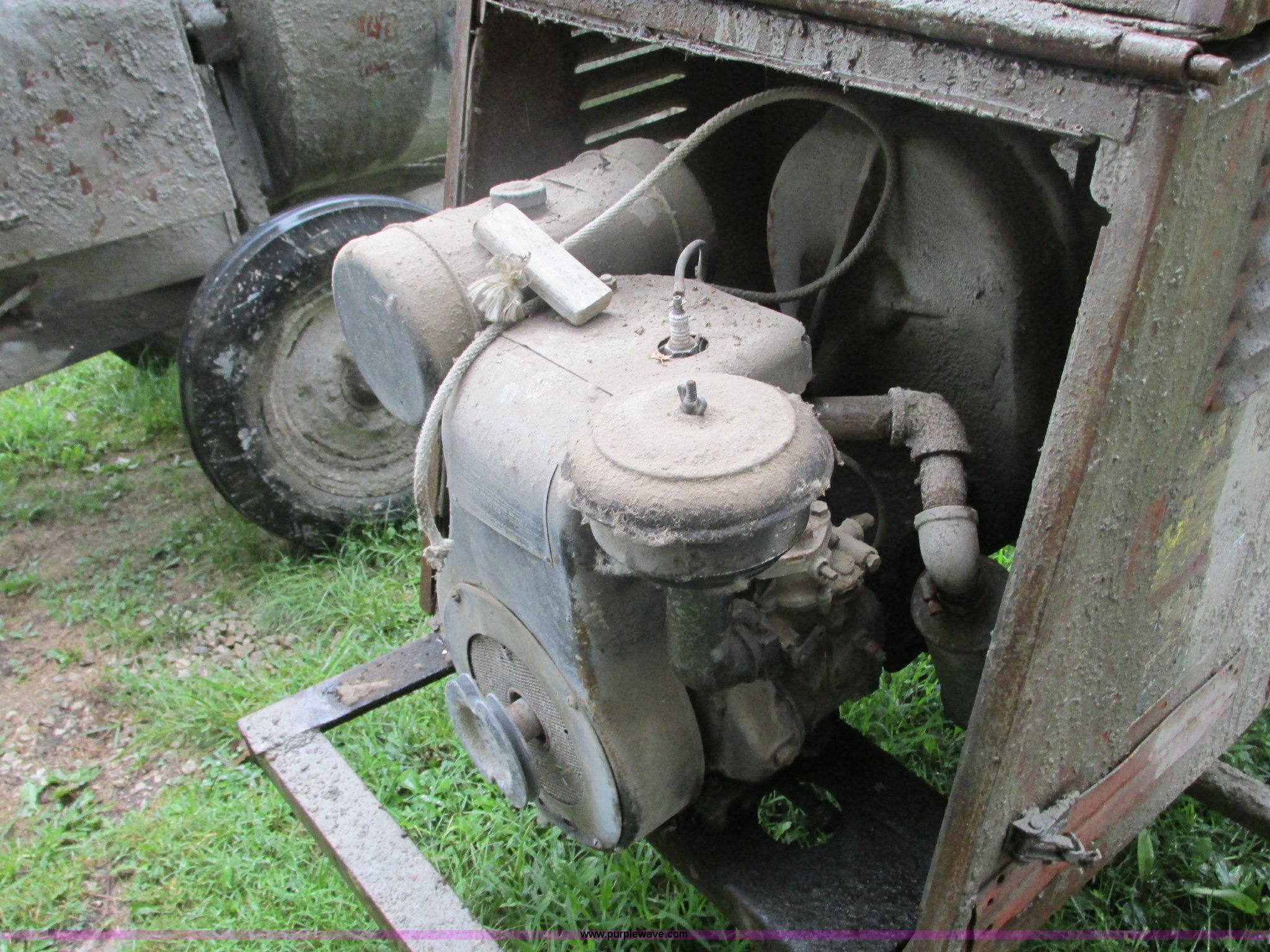 Purple Wave is selling a used Concrete Dispenser in Missouri. This item is a Essick mixer with the following: Wisconsin single cylinder gas engine, Removable tongue, 165-8-13 tires, One flat, Unknown operating condition