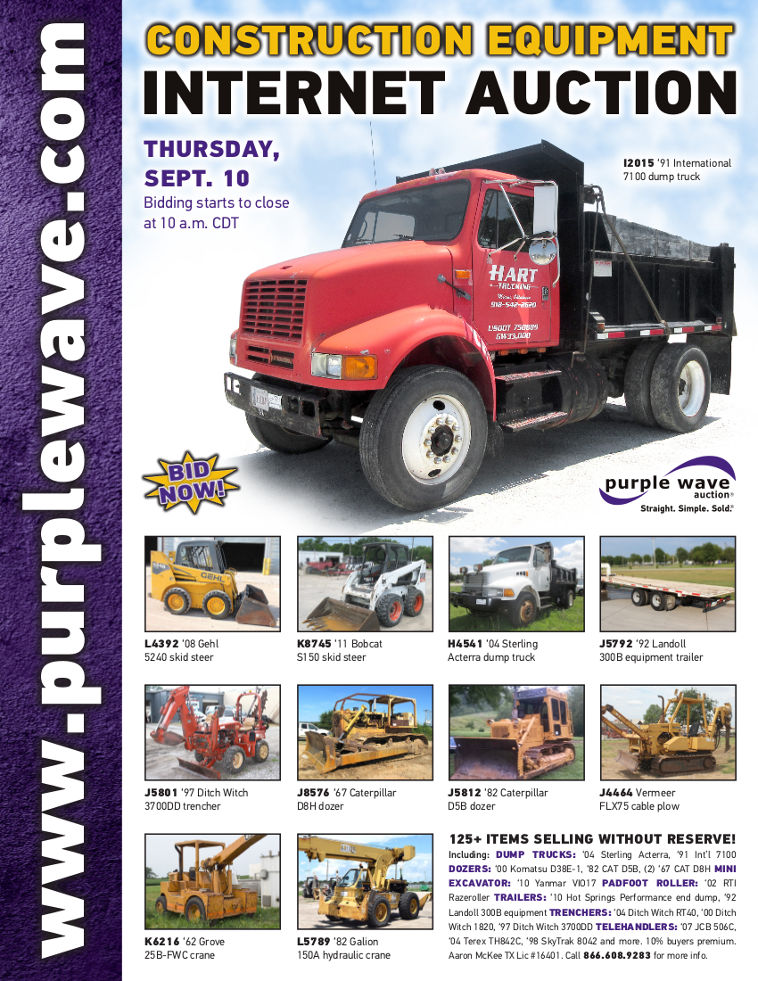 Terms, conditions, explanations and information in addition to those listed on this page are found in the Terms and Conditions section of this site and on the individual listing pages for all assets included in this auction. All terms, conditions, explanations and information are intended to be supplemental and complimentary to each other. They are incorporated by reference into this page, and collectively they govern this auction. In the event of a conflict or inconsistency among terms, conditions, explanations or information in the Terms and Conditions section, the individual listing pages for assets and/or this page, the individual listing pages shall control this page and the Terms and Conditions section, and this page shall control the Terms and Conditions section. By registering to bid live and/or on the Internet, you agree to abide by all terms and conditions and you acknowledge receipt of all explanations and information made available by Purple Wave.