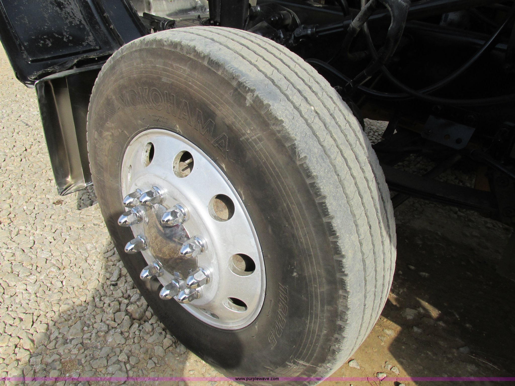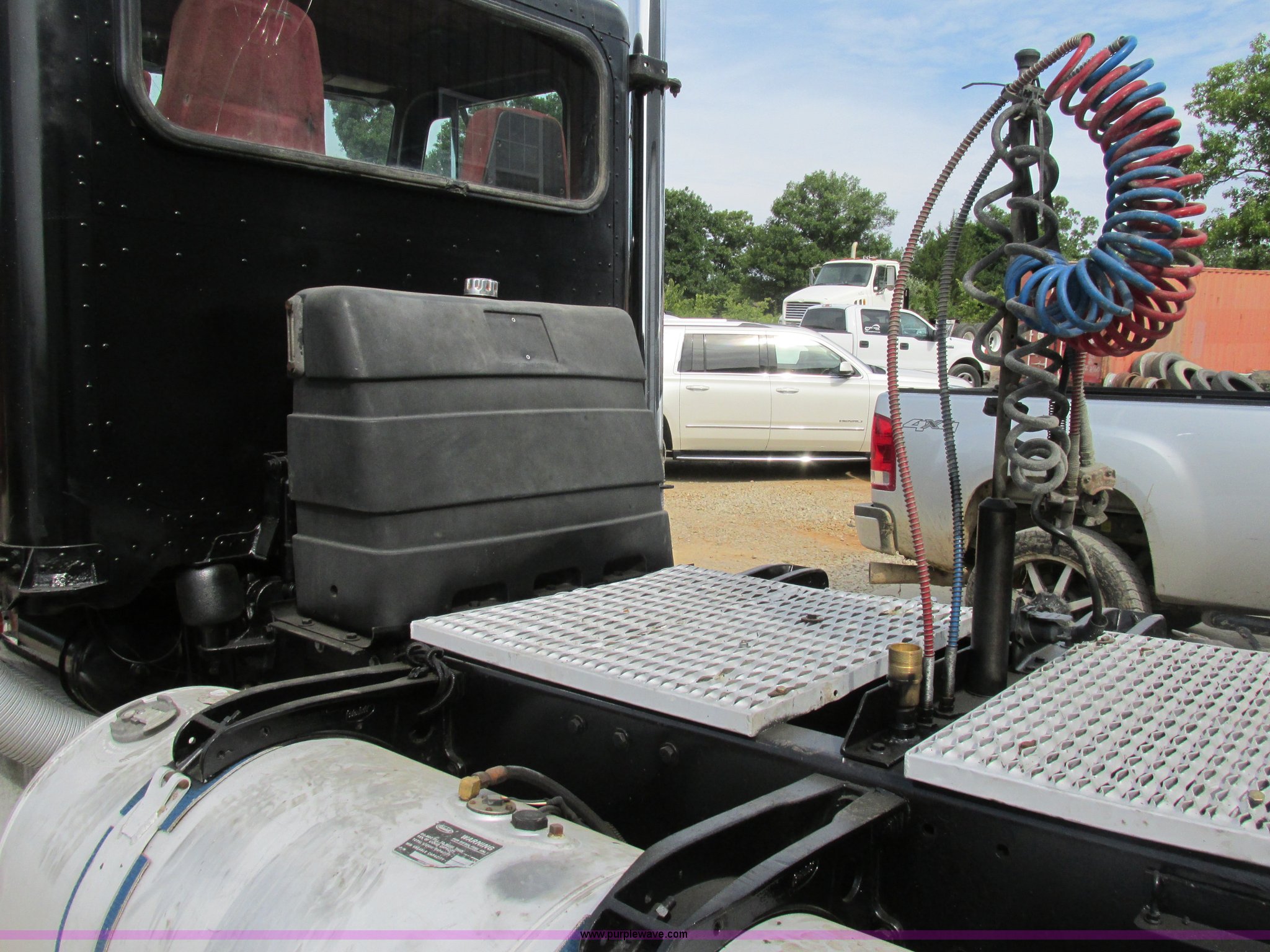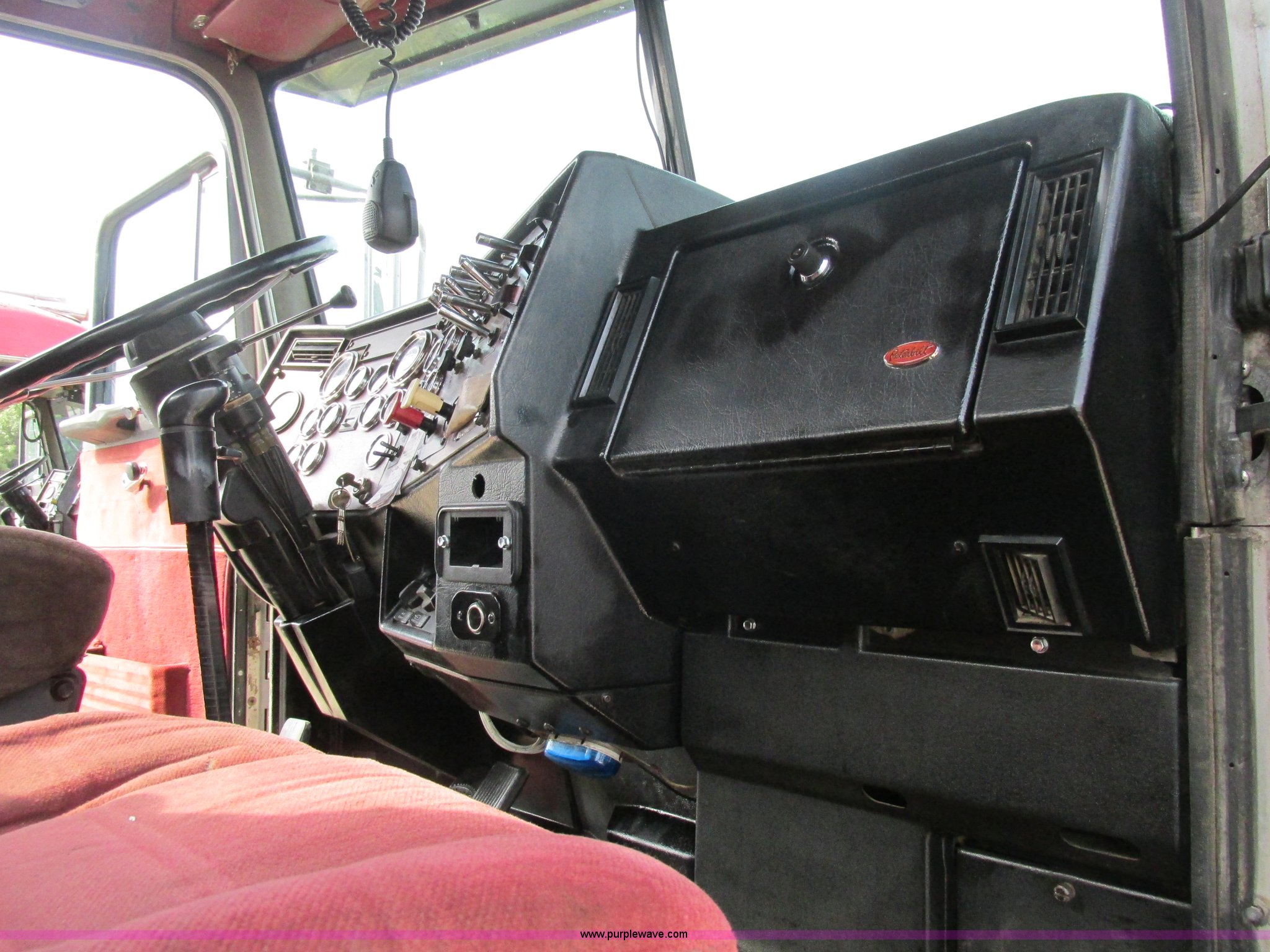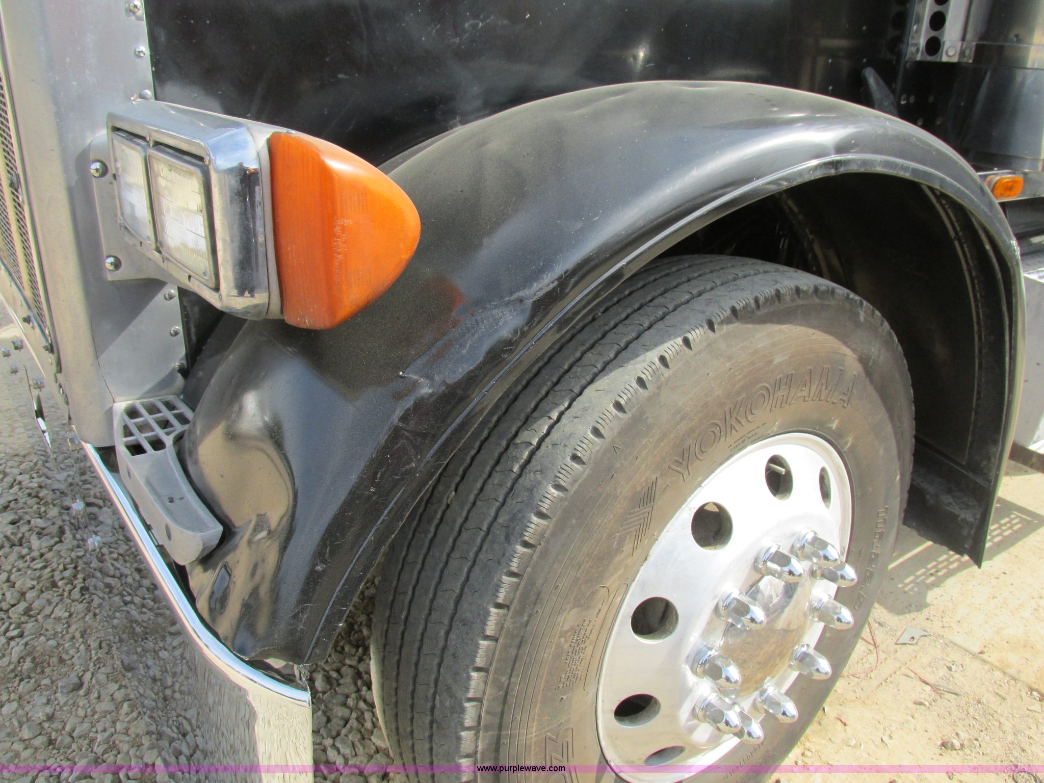 Purple Wave is selling a used Truck Tractor in Missouri. This item is a 1997 Peterbilt 379 semi truck with the following: 1,405,877 miles on odometer, Caterpillar 3406 14.6L L6 turbo diesel engine, 13 speed manual transmission, AC and heat, AM/FM, Air ride cab, In-cab dump controls, Exterior visor, PTO, Wet kit, Aluminum sliding fifth wheel plate, Dual rear exhaust stacks, Dual 110 gallon fuel tanks, Quarter fenders, Mud flaps, 3:70 gear ratio, Aluminum outer wheels, 11R22.5 front tires, 11R24.5 rear tires, GVWR 50,000 lbs, Interior/exterior cosmetic damage