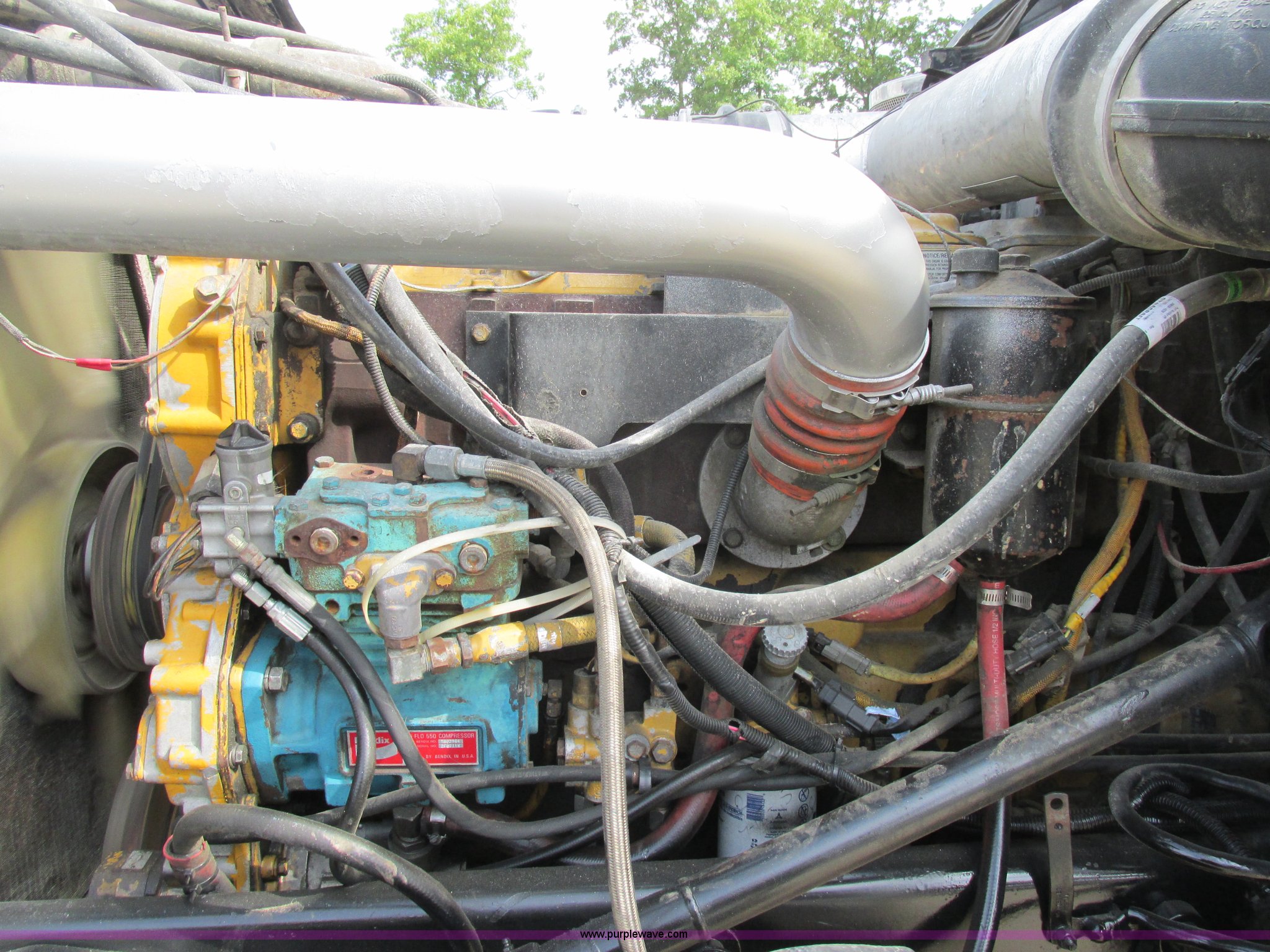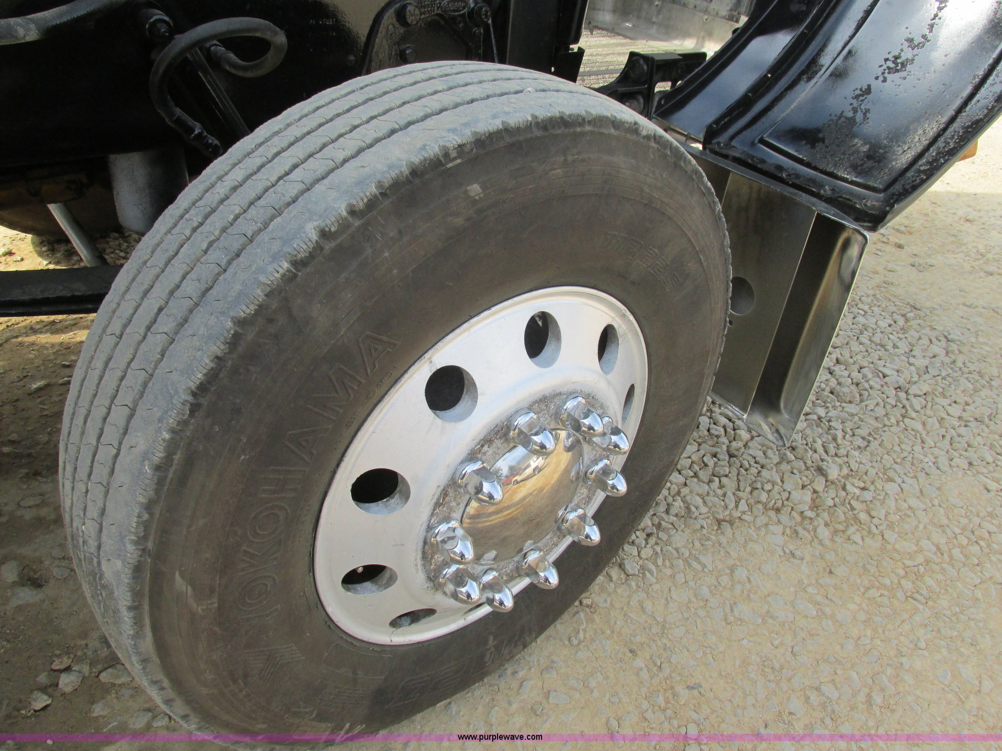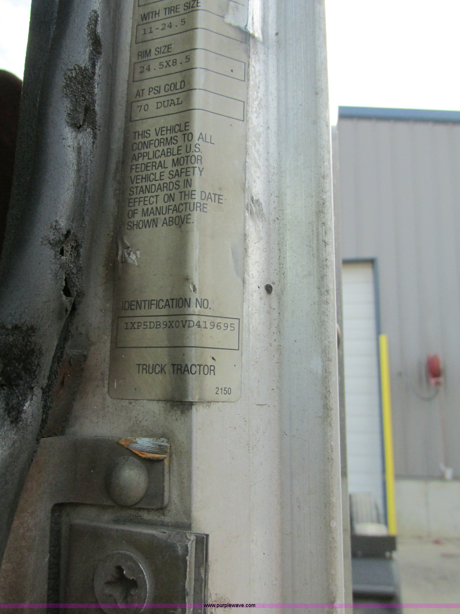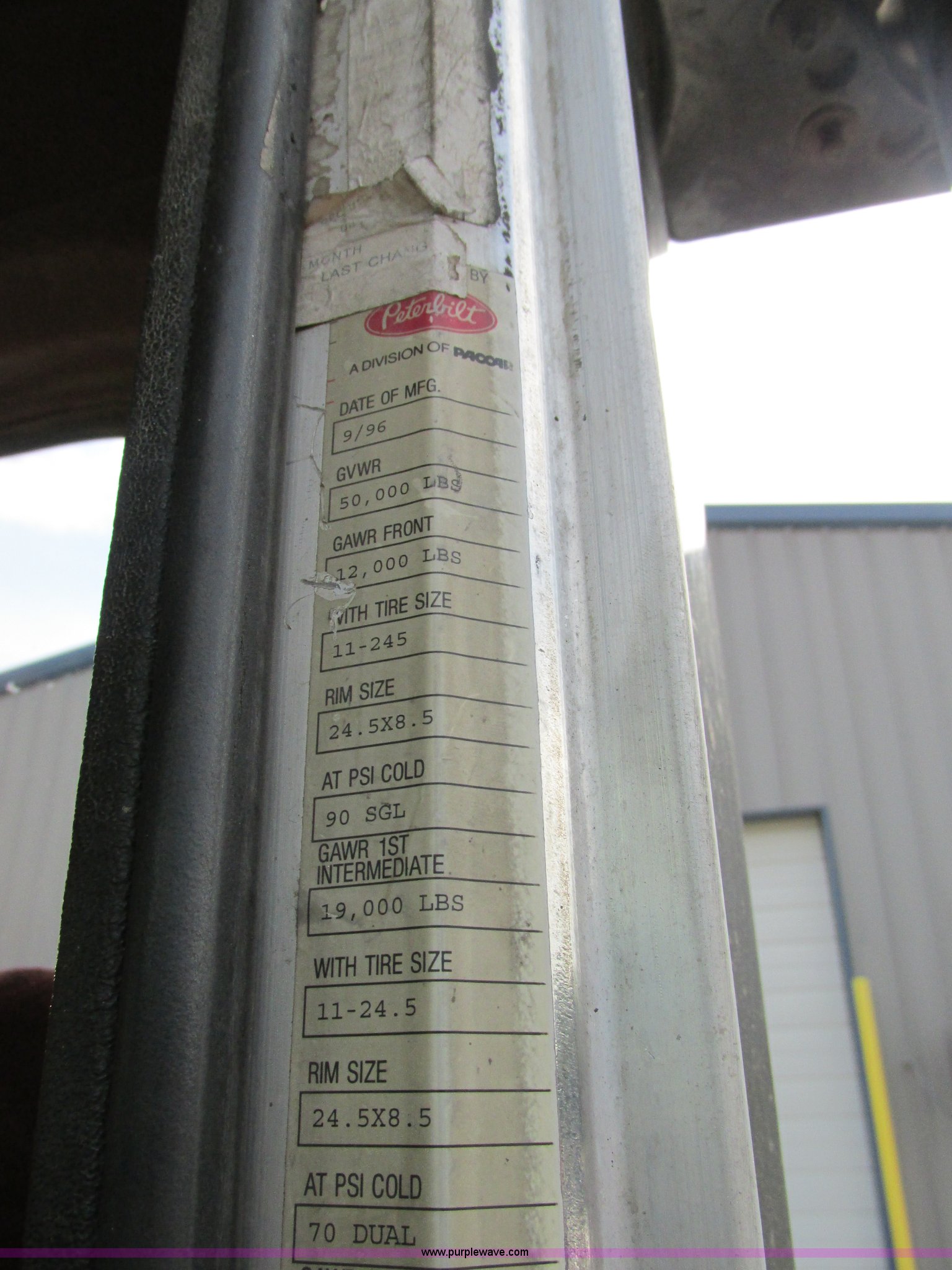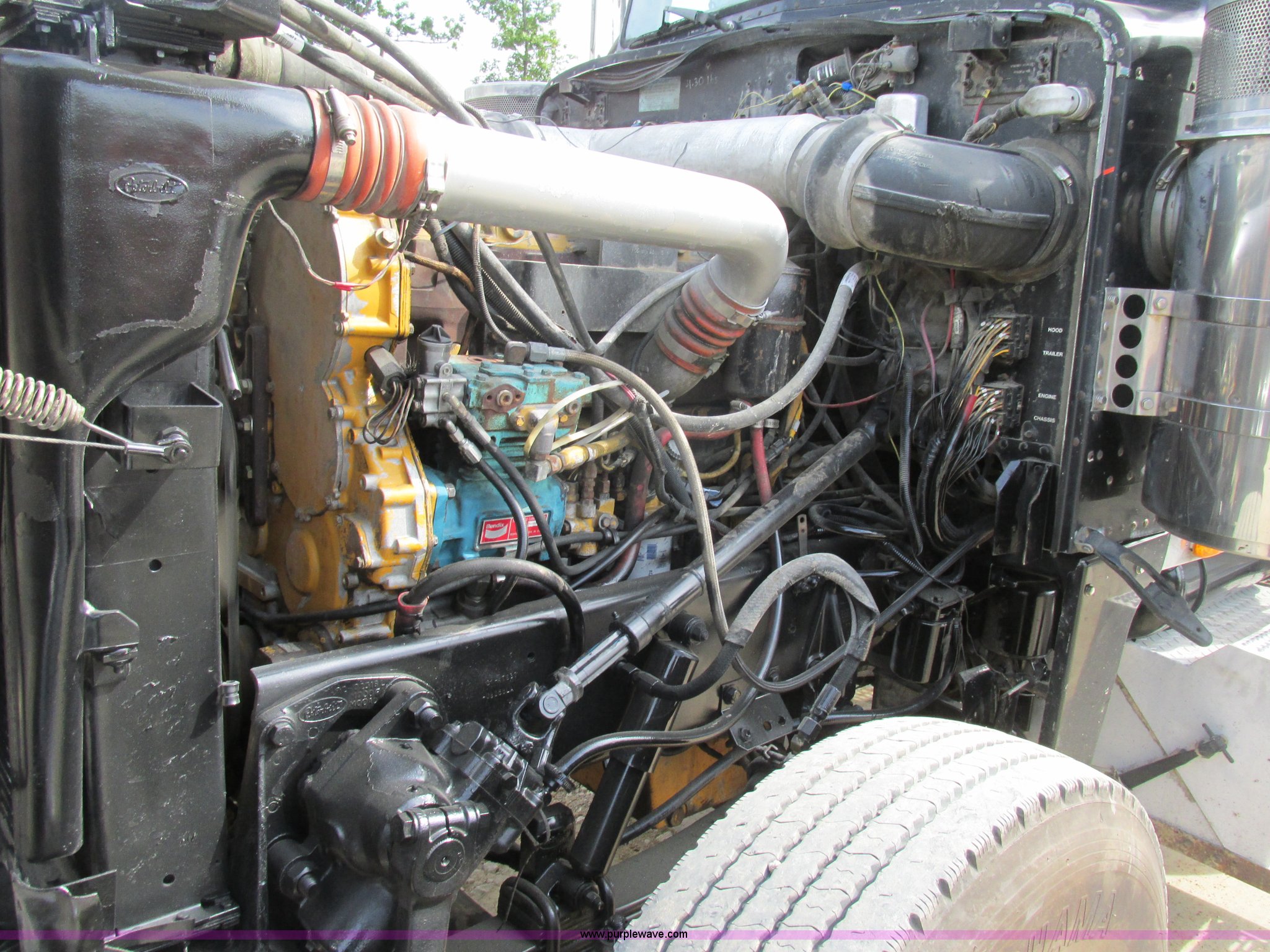Purple Wave is selling a used Truck Tractor in Missouri. This item is a 1997 Peterbilt 379 semi truck with the following: 1,405,877 miles on odometer, Caterpillar 3406 14.6L L6 turbo diesel engine, 13 speed manual transmission, AC and heat, AM/FM, Air ride cab, In-cab dump controls, Exterior visor, PTO, Wet kit, Aluminum sliding fifth wheel plate, Dual rear exhaust stacks, Dual 110 gallon fuel tanks, Quarter fenders, Mud flaps, 3:70 gear ratio, Aluminum outer wheels, 11R22.5 front tires, 11R24.5 rear tires, GVWR 50,000 lbs, Interior/exterior cosmetic damage