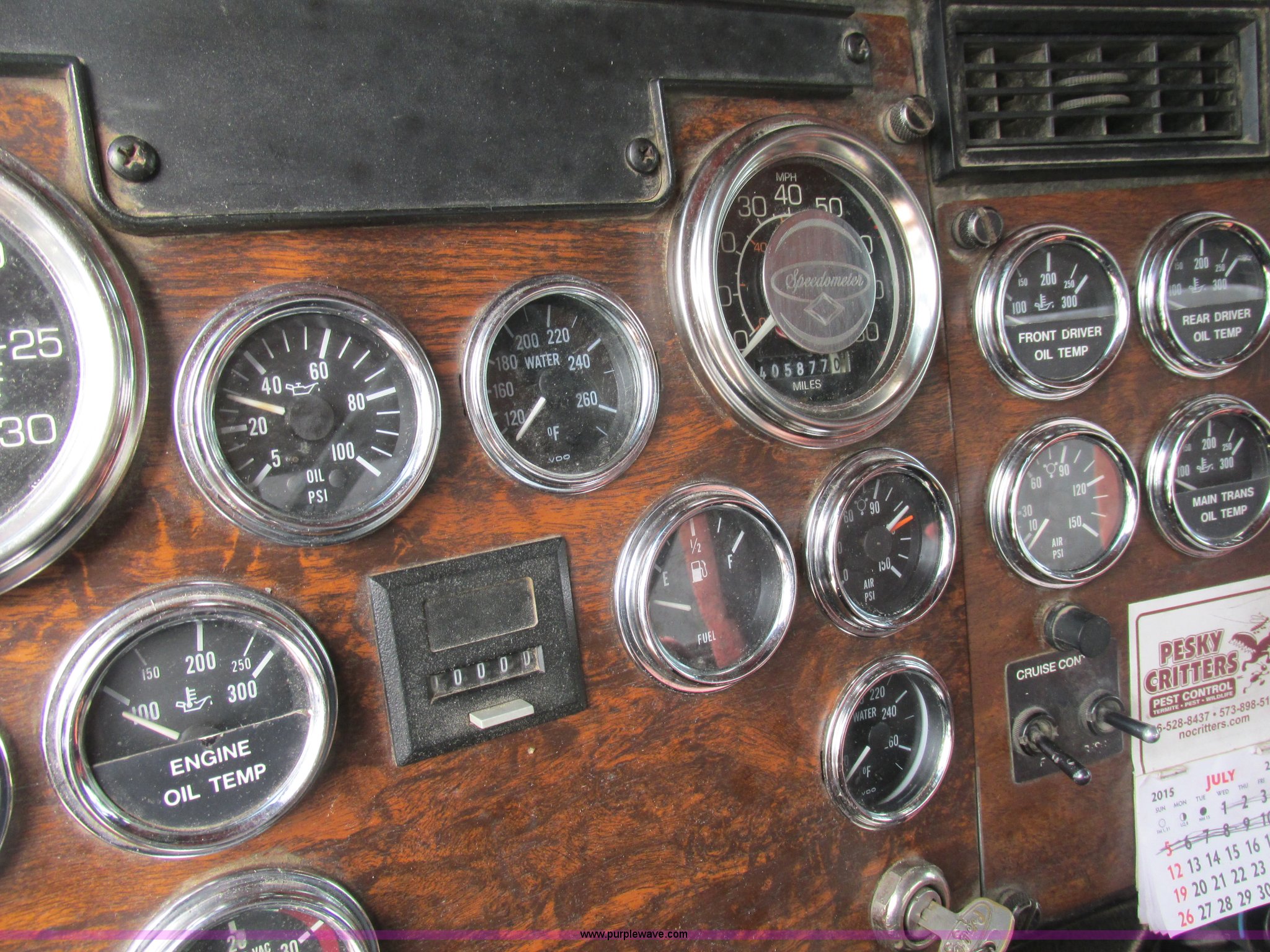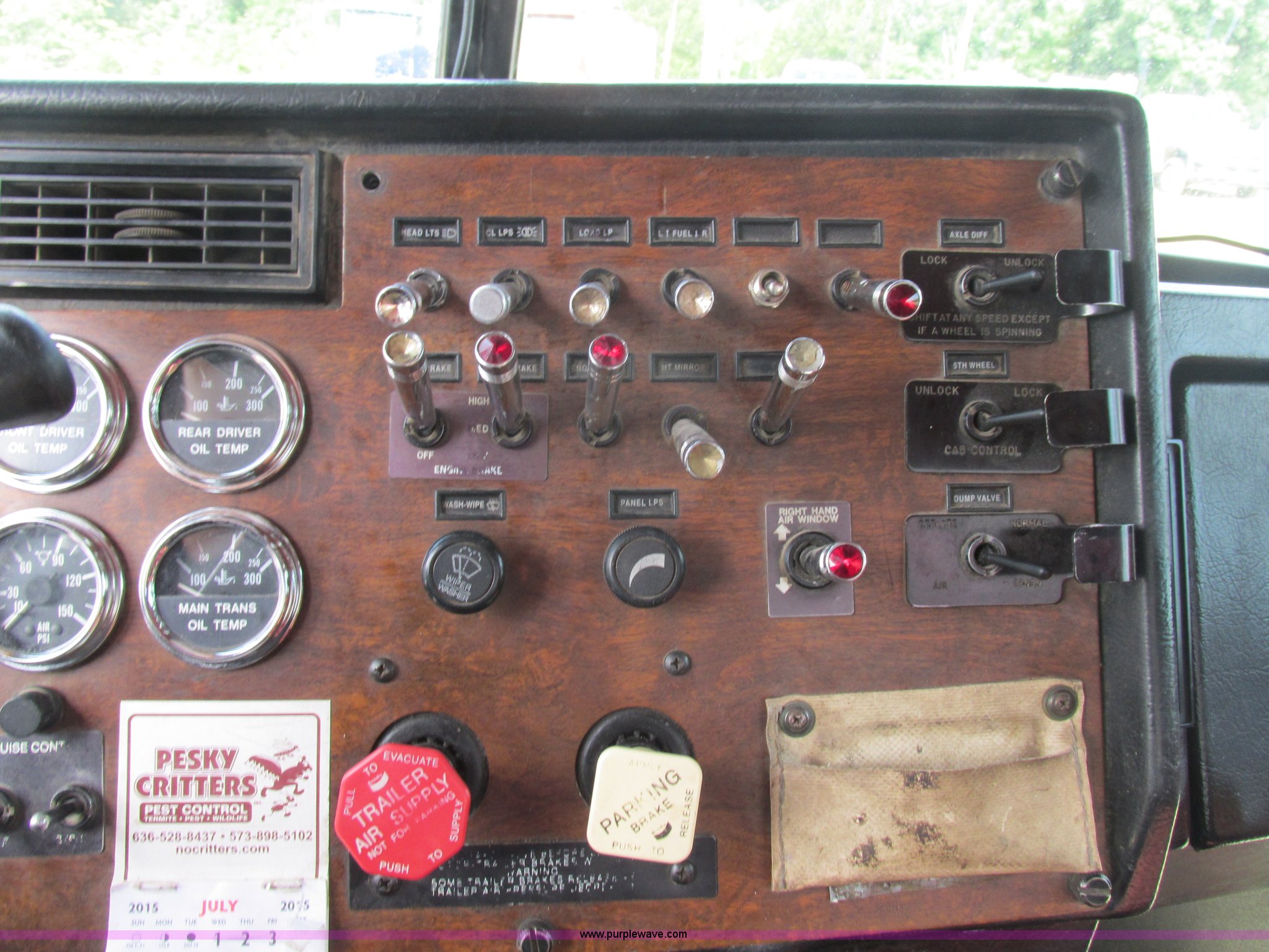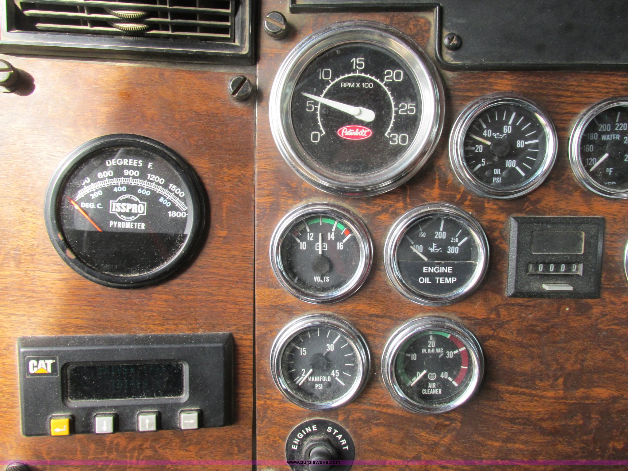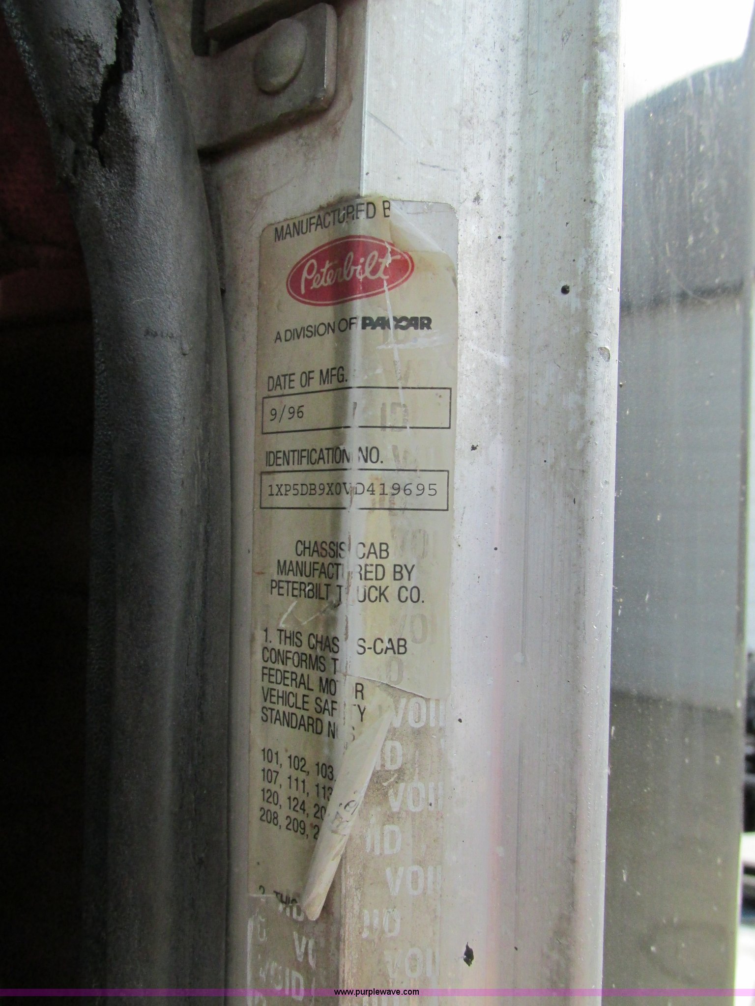 Purple Wave is selling a used Truck Tractor in Missouri. This item is a 1997 Peterbilt 379 semi truck with the following: 1,405,877 miles on odometer, Caterpillar 3406 14.6L L6 turbo diesel engine, 13 speed manual transmission, AC and heat, AM/FM, Air ride cab, In-cab dump controls, Exterior visor, PTO, Wet kit, Aluminum sliding fifth wheel plate, Dual rear exhaust stacks, Dual 110 gallon fuel tanks, Quarter fenders, Mud flaps, 3:70 gear ratio, Aluminum outer wheels, 11R22.5 front tires, 11R24.5 rear tires, GVWR 50,000 lbs, Interior/exterior cosmetic damage