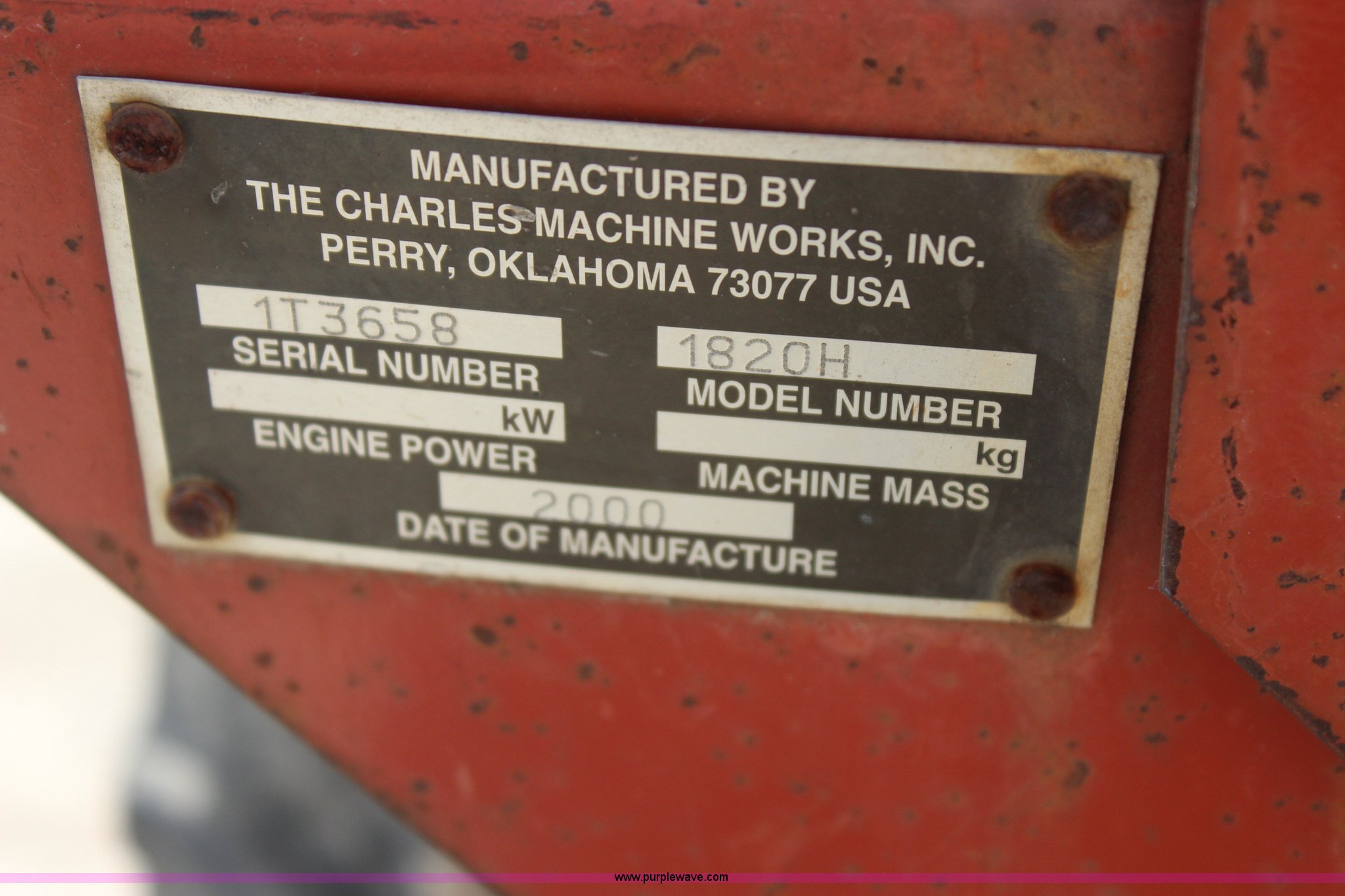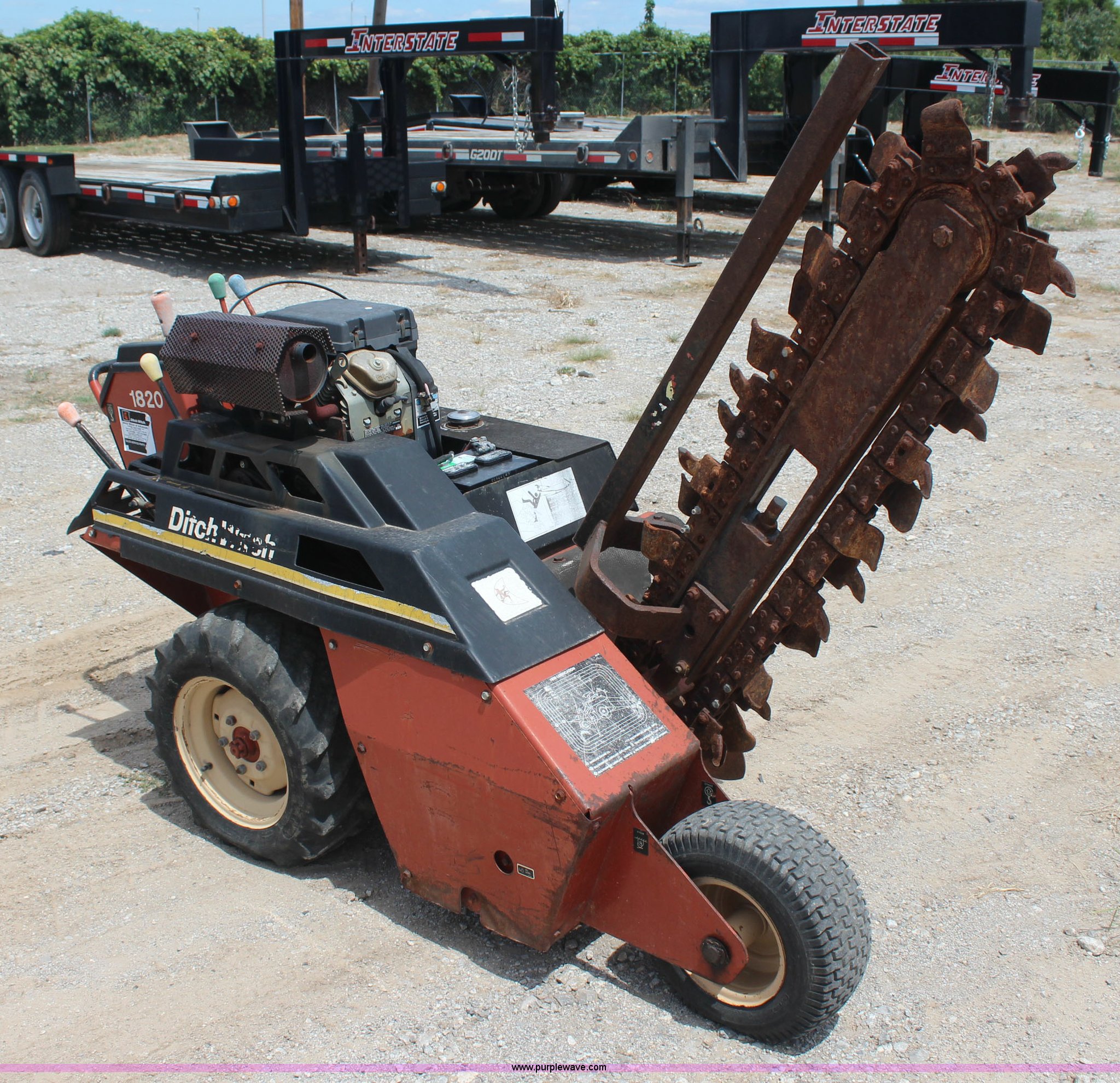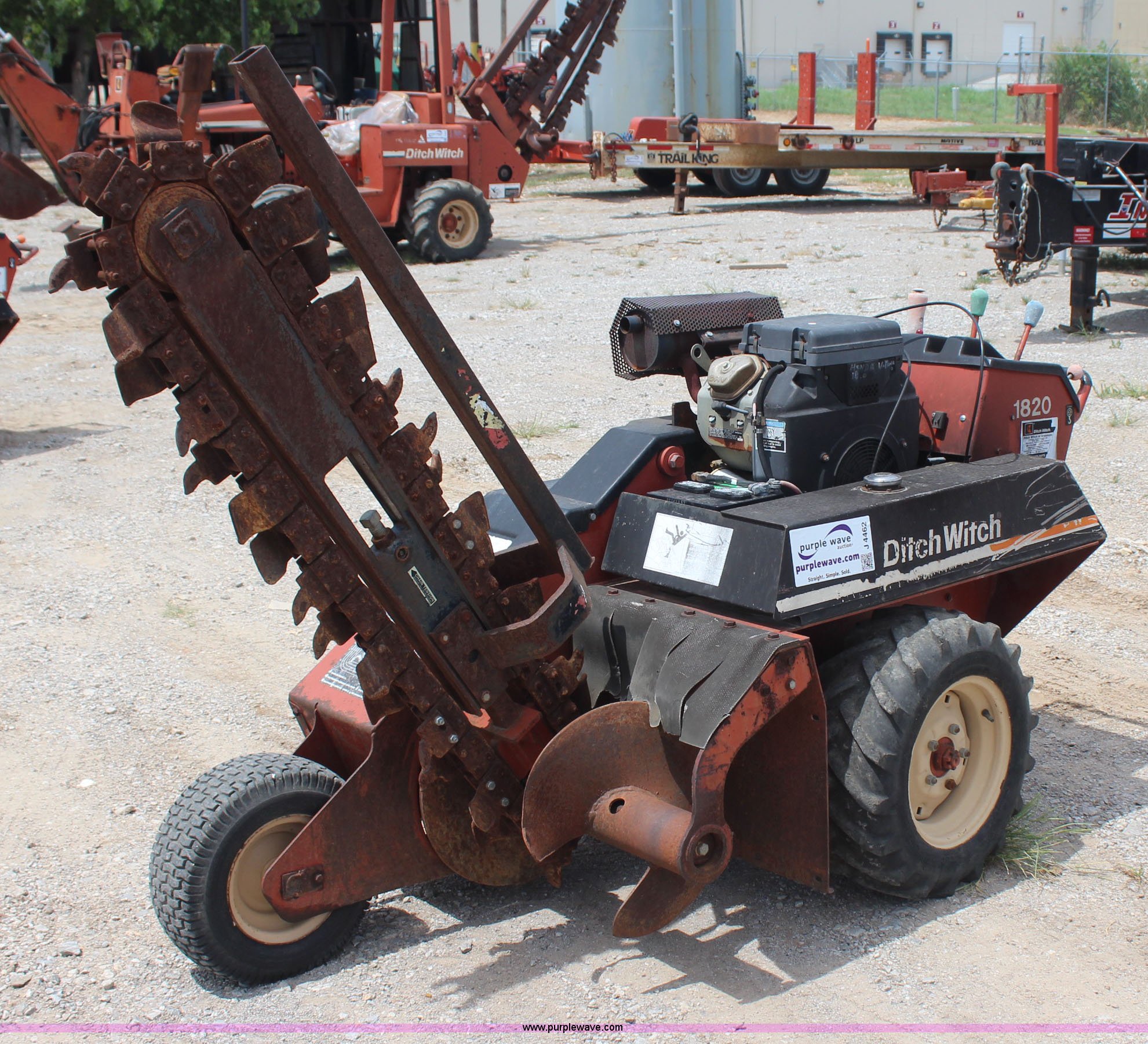 Purple Wave is selling a used Trencher or Rock Saw in Oklahoma. This item is a 2000 Ditch Witch 1820 trencher with the following: 663 hours on meter, Honda gas engine, 18 HP, Hydrostatic transmission, 36"L trencher boom, 4.5"W trench, Rock and dirt chain, 16 x 6.50-8 front tires, 23 x 8.50-12 rear tires, Serial 1T3658