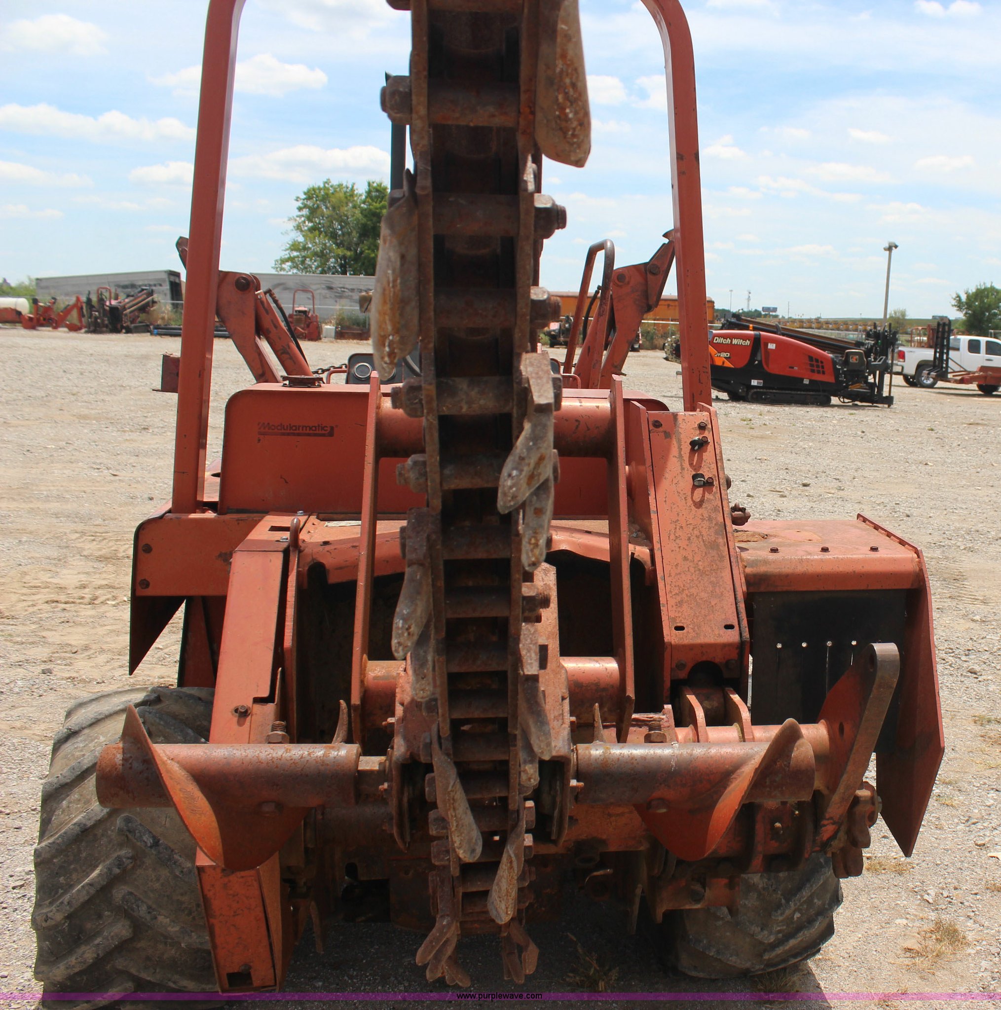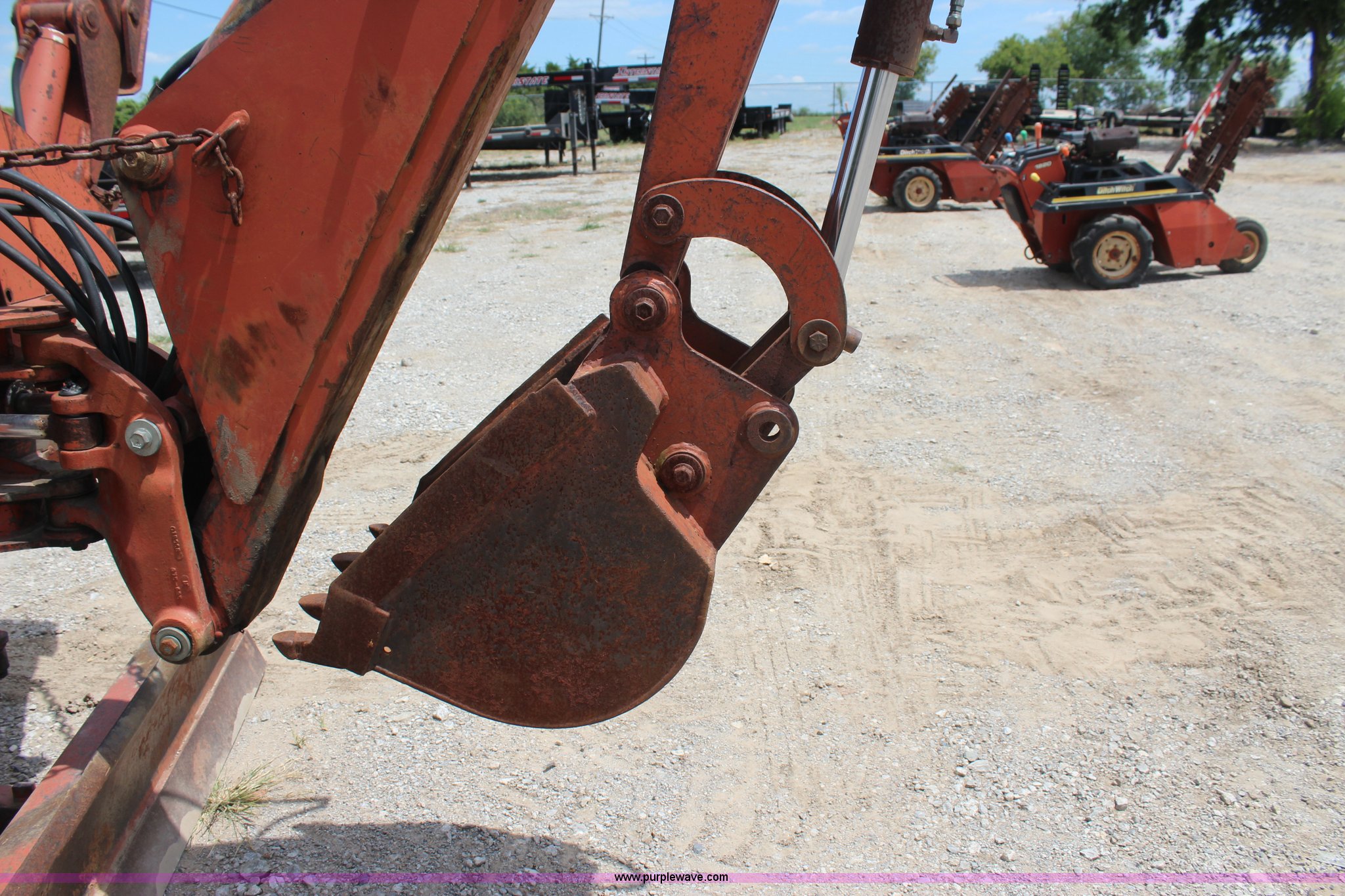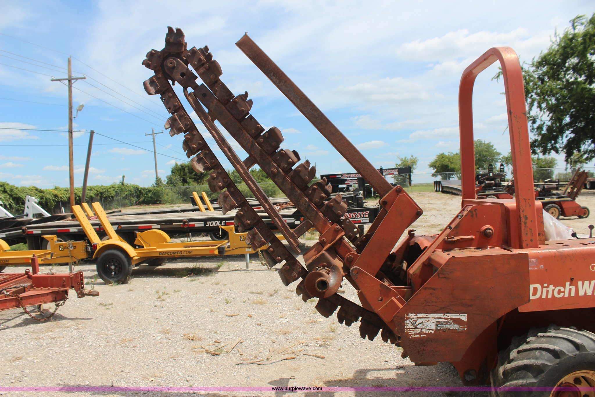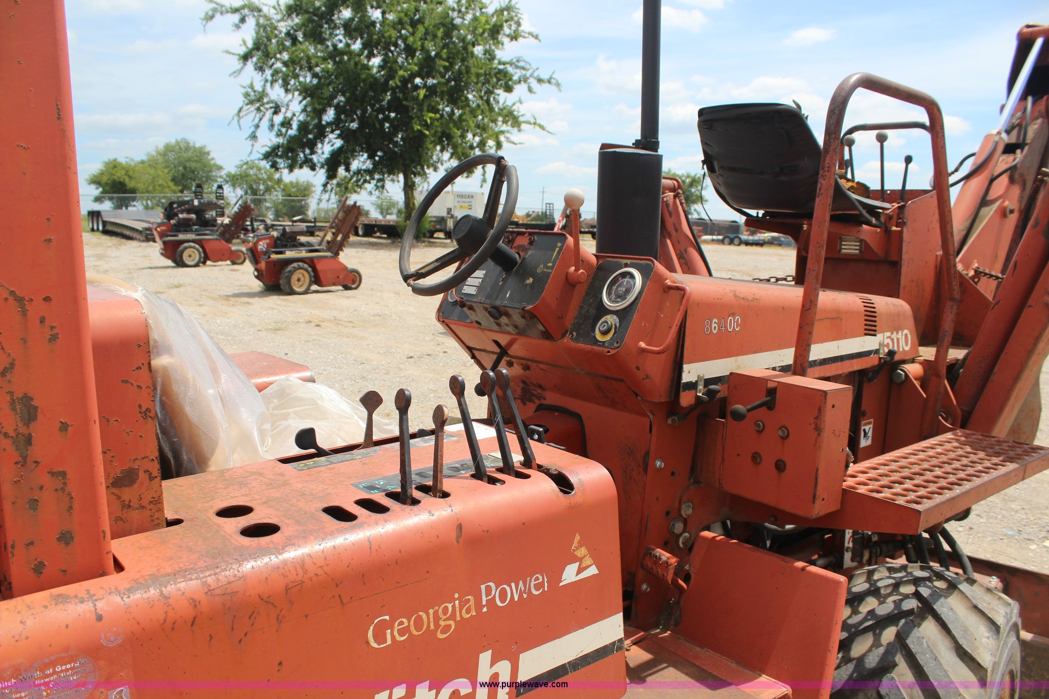 Purple Wave is selling a used Trencher or Rock Saw in Oklahoma. This item is a 1994 Ditch Witch 5110 trencher with the following: Deutz F3L912 diesel engine, Four speed transmission, Two post ROPS, A512 trencher attachment, 5' trencher boom, 6"W trench, Dirt and rock chain, 48" pin to pin, Restraint bar, A420 backhoe attachment, Serial 1D0227, 18"W bucket, Six way back fill blade, 6'W, 31 x 15.5-15 NHS tires, Recently replaced seat, Serial 5L0455