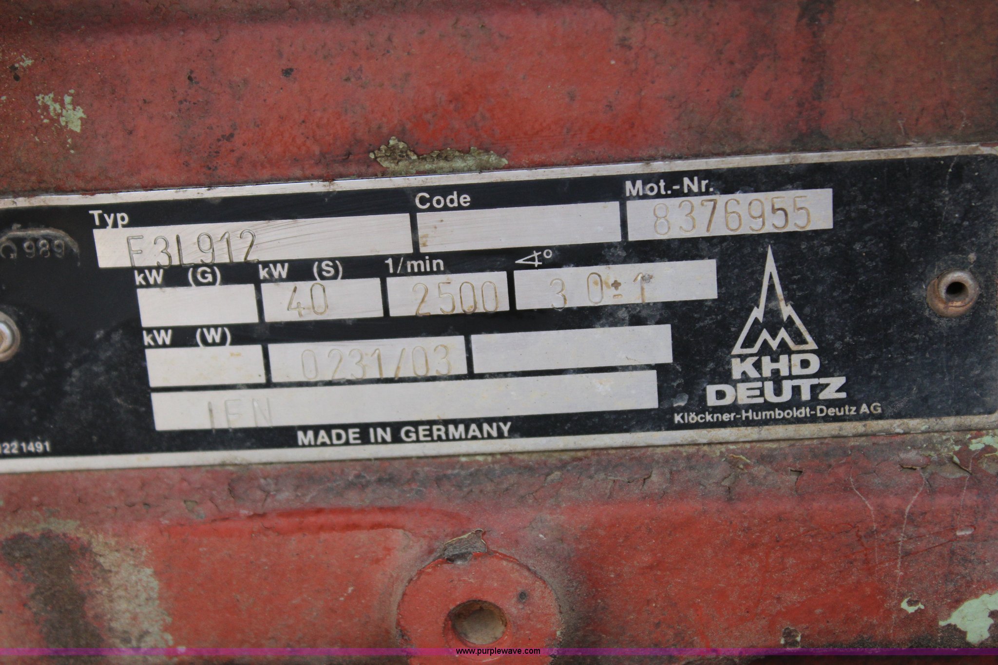- Deutz F3L912 diesel engine