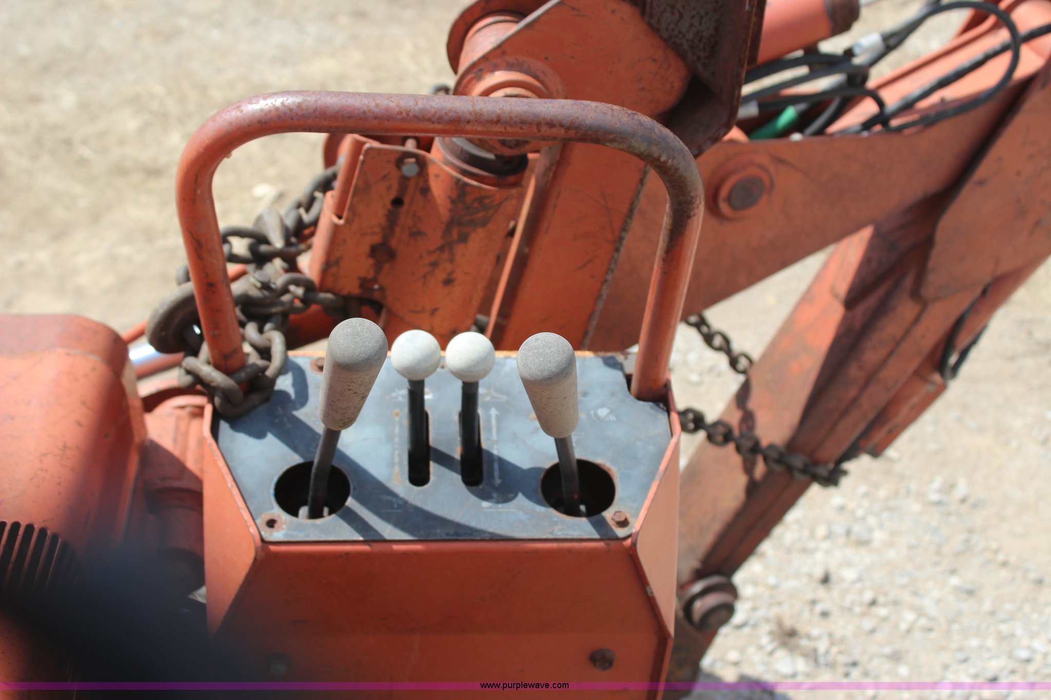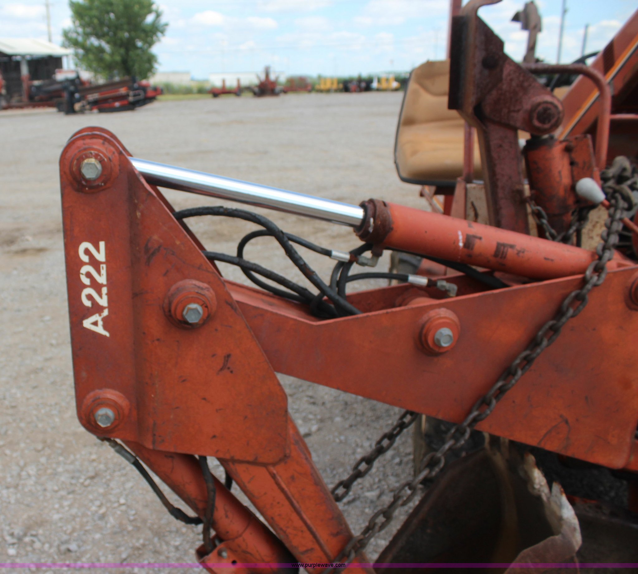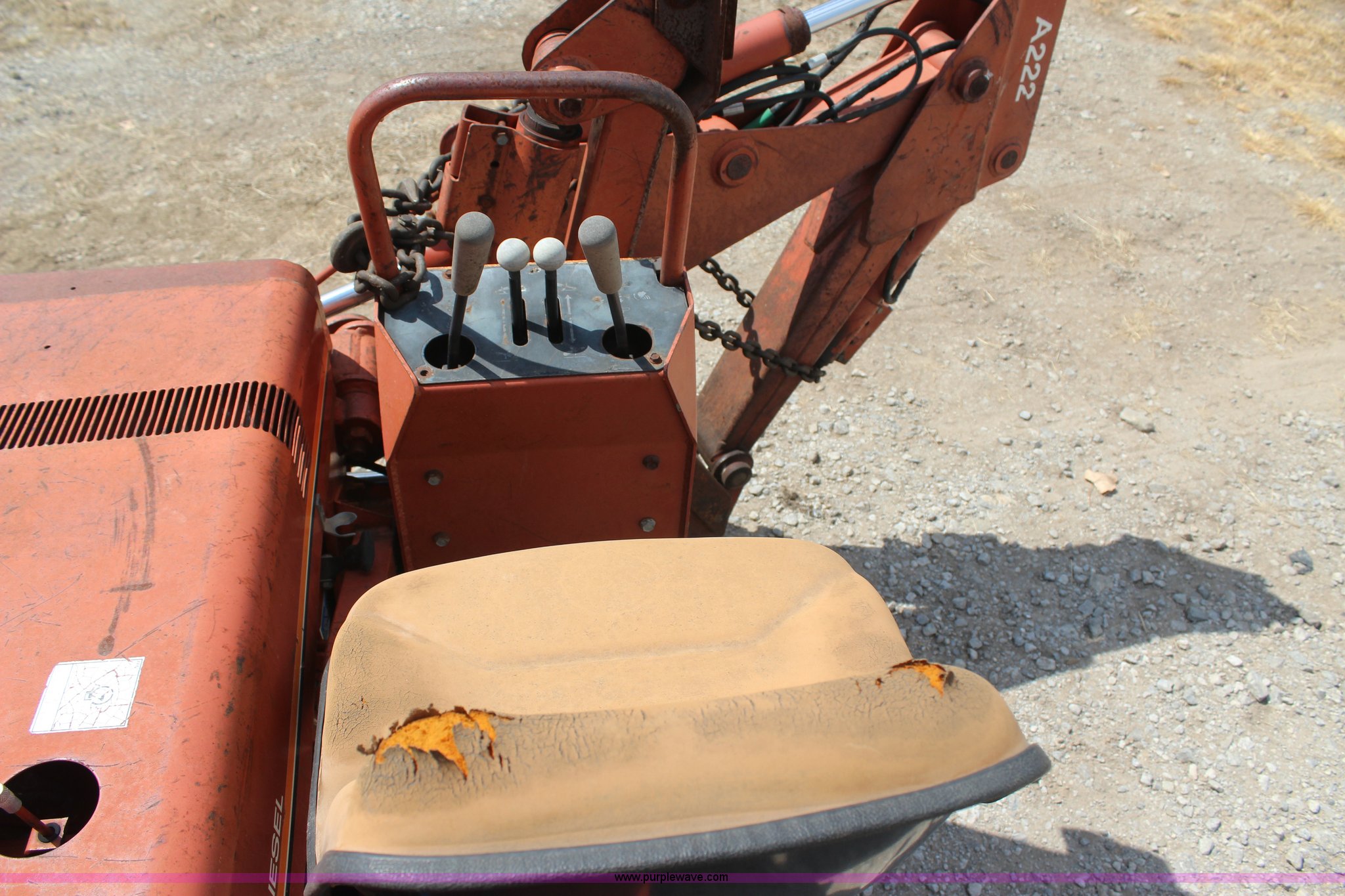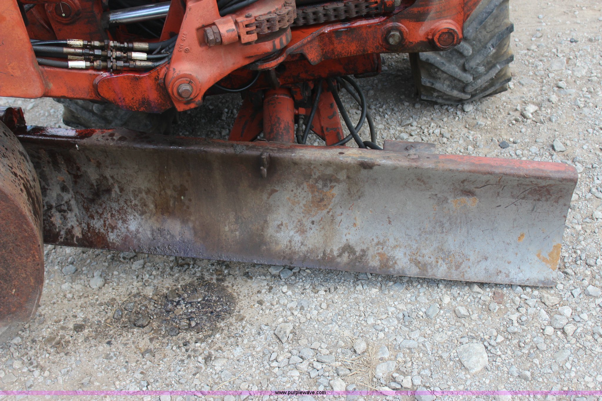 Purple Wave is selling a used Trencher or Rock Saw in Oklahoma. This item is a 1989 Ditch Witch 2310DD trencher with the following: 3,747 hours on meter, Deutz F2L511 diesel engine, Three speed manual transmission, ROPS, 4'L trenching boom, Dirt chain, Front mounted auxiliary hydraulics, A222 backhoe attachment, Controller, 13"W four tooth bucket, 57.5"W back fill blade, Trench cleaning bar, Rear wheel weights, 26 x 12.00 NHS tires, Serial 3F0625