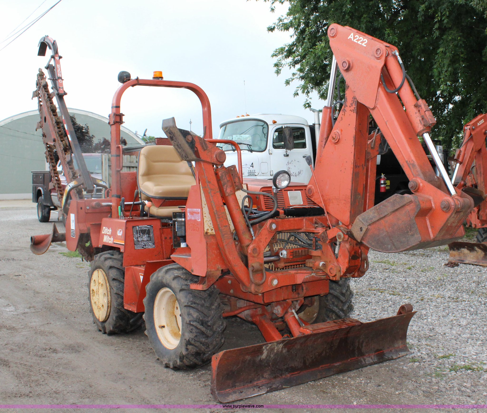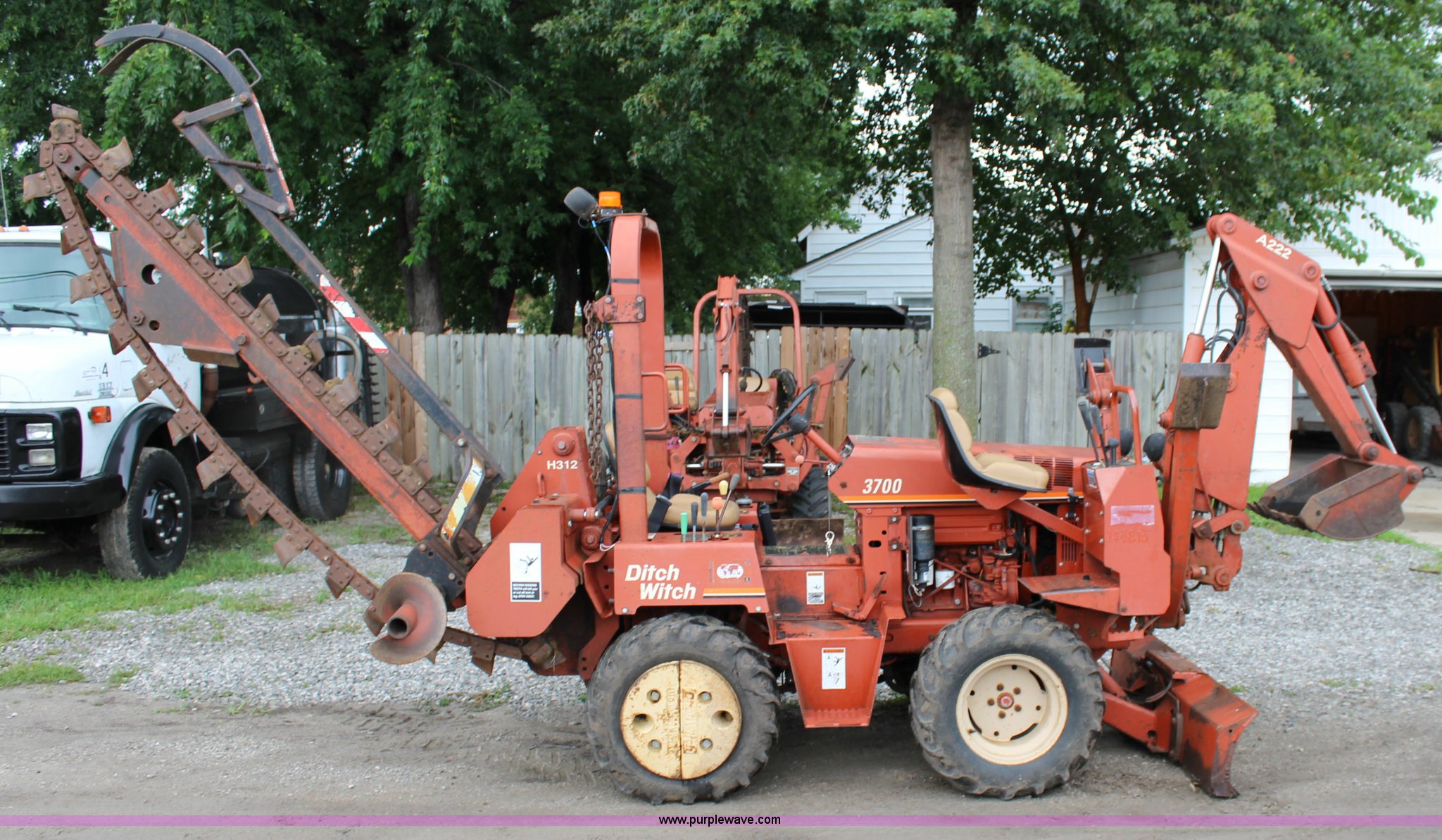Purple Wave is selling a used Trencher or Rock Saw in Kansas. This item is a 1997 Ditch Witch 3700DD trencher with the following: 932 hours on meter, Deutz three cylinder diesel engine, Hydrostatic transmission, H312 trencher attachment, 6' maximum digging depth, Side shift, A222 backhoe attachment, 18"W, Serial 7P2980, 64"W back fill blade, Hydraulic bore drive included, Rear wheel weights, 29 x 12.50-15 tires, Serial 3P1054