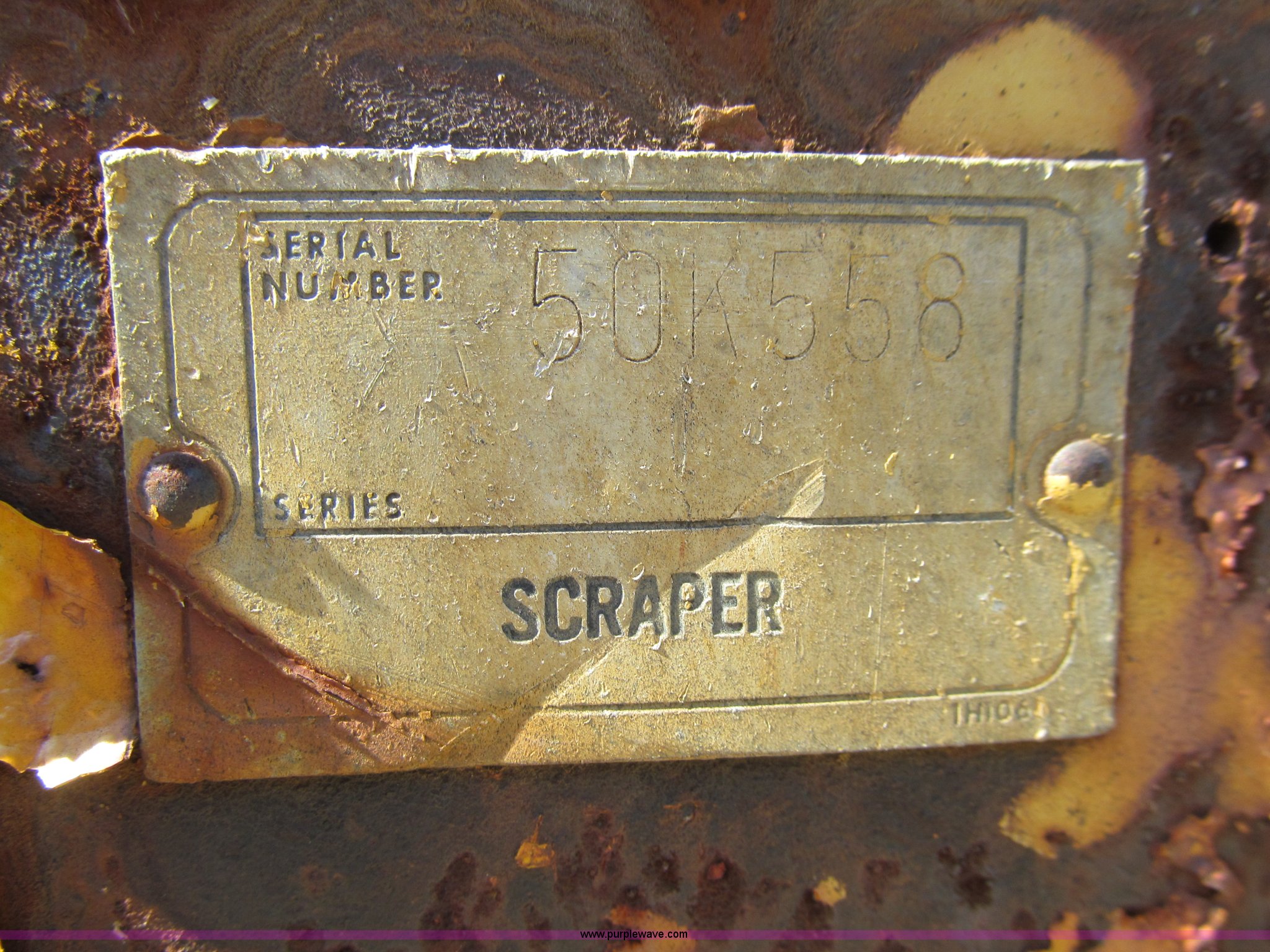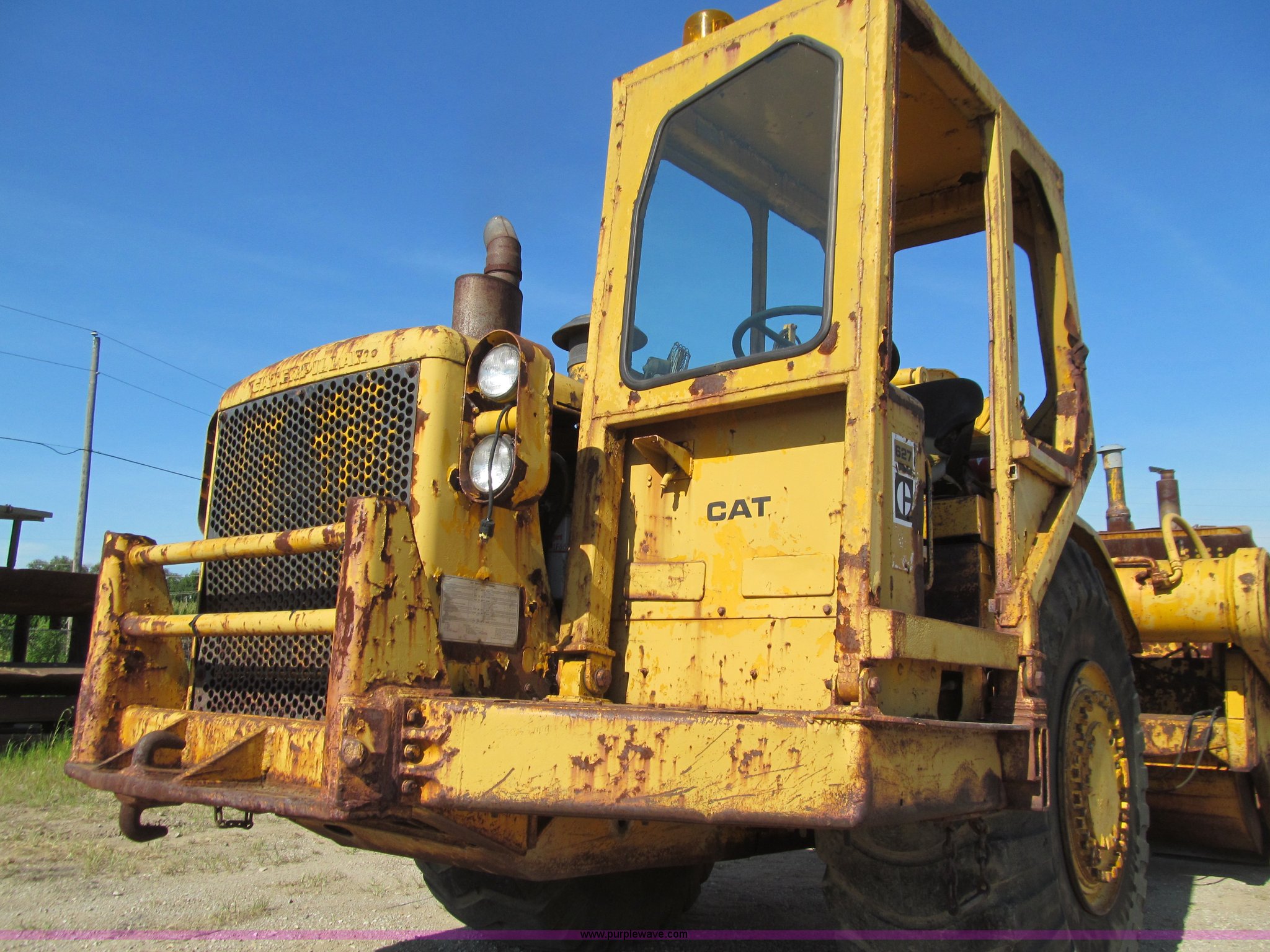 1970 Caterpillar 627 conventional scraper. Caterpillar 3306 six cylinder turbo diesel engine Glow plugs, Block heater, Powershift transmission 8F-1R gears, OROPS, Suspension seat, 20 cubic yard capacity, Hydraulic lift, Lever scraper controls, Caterpillar 3306 six cylinder turbo diesel rear engine, 29.5R29 tires, 65,560 lbs. base operating weight, Rear transmission fourth through six gears inoperable, Front engine replaced, Serial 50K558. View equipment video. Sulzberger Excavating Inc.. 1500 S. Houser Street. Muscatine, IA 52761