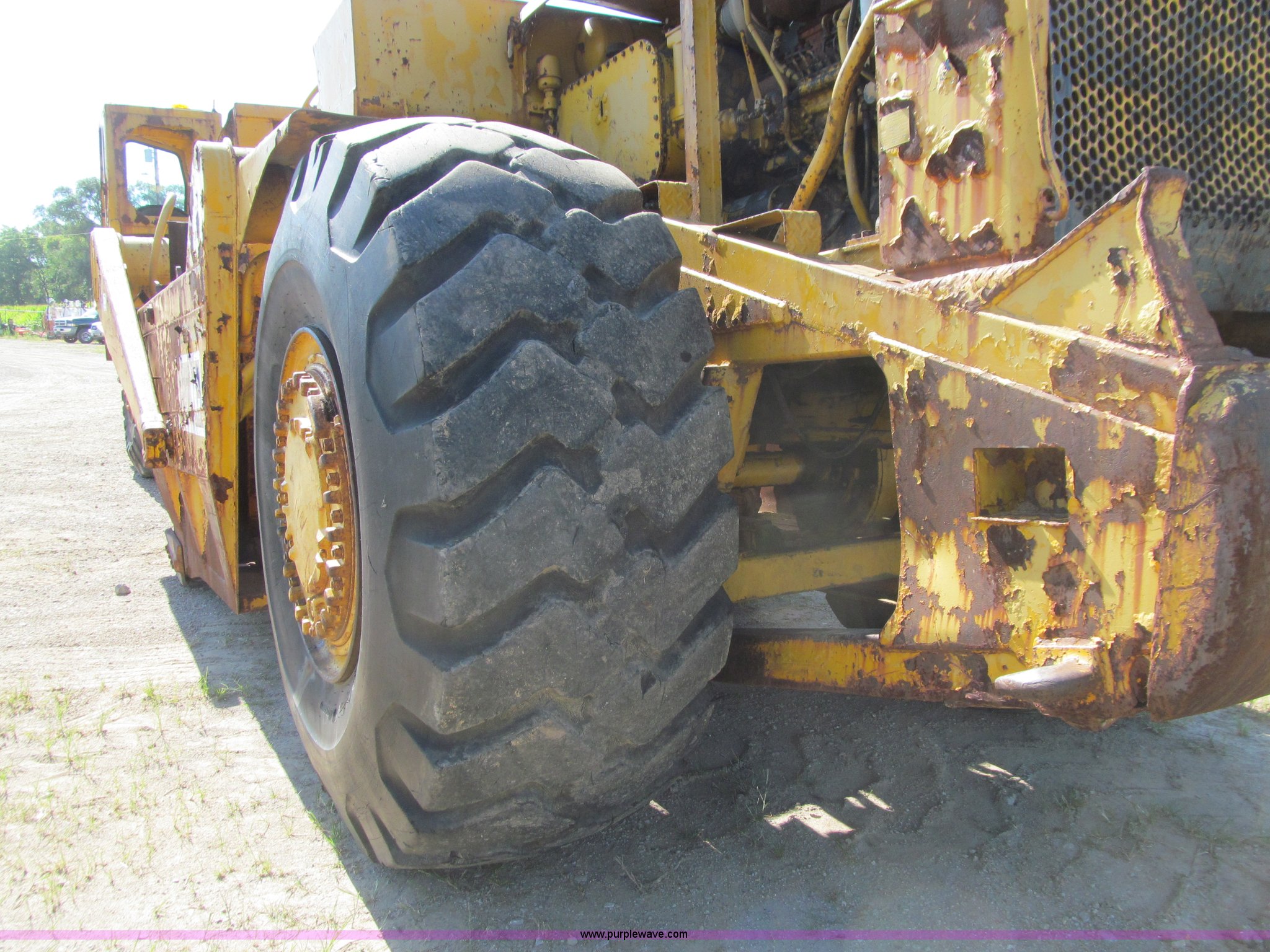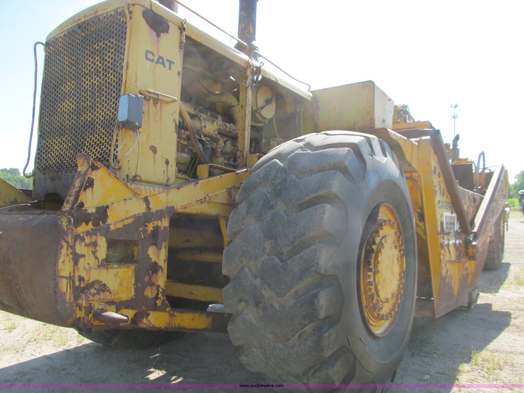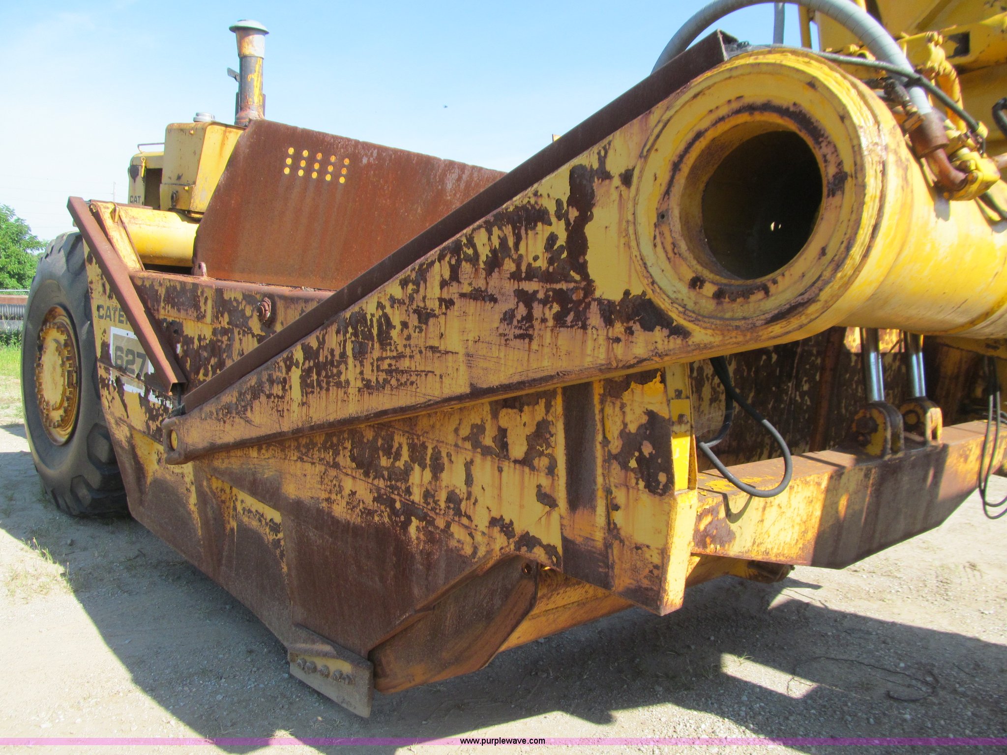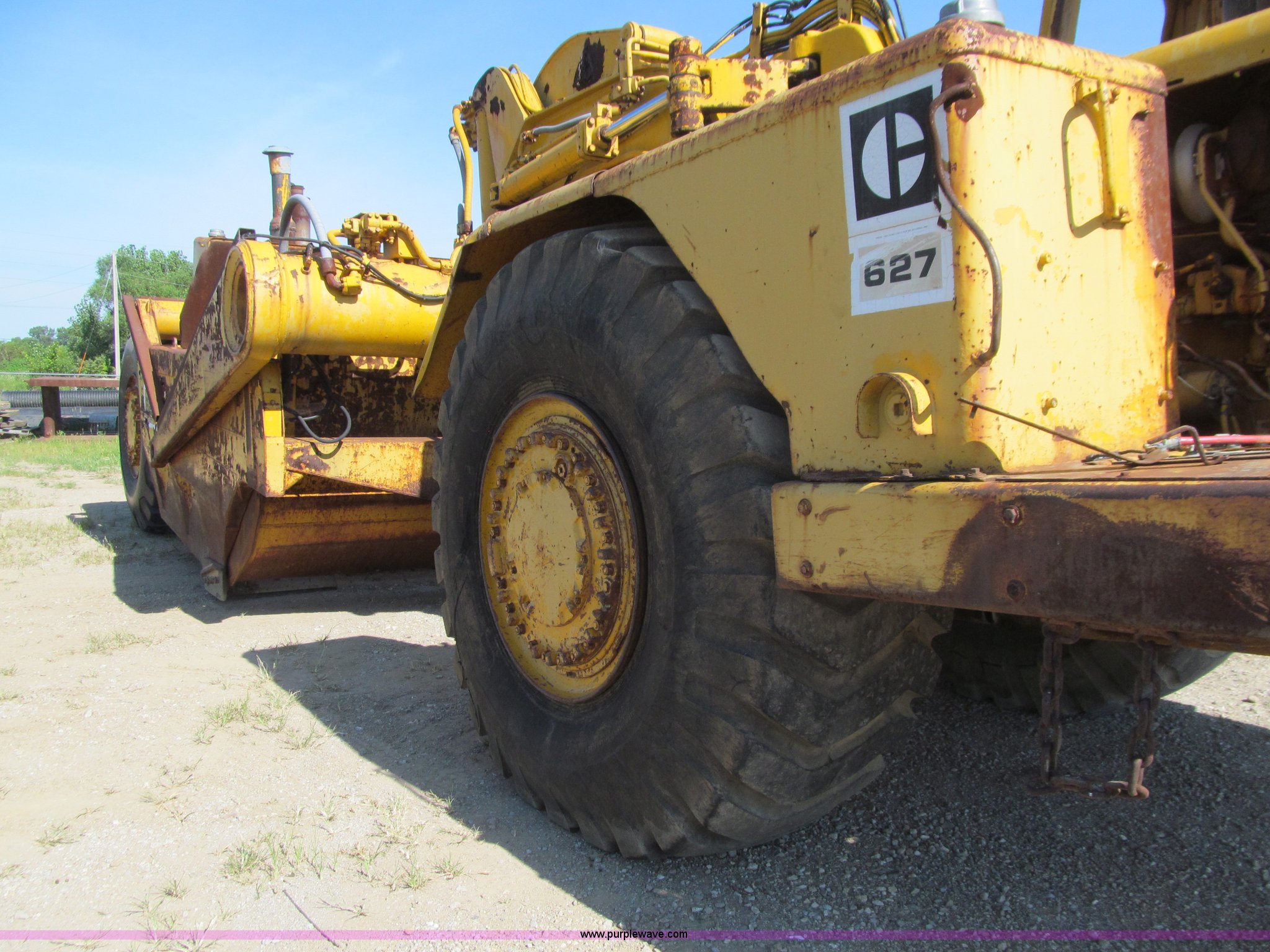 Purple Wave is selling a used Conventional Scraper in Iowa. This item is a 1970 Caterpillar 627 conventional scraper with the following: Caterpillar 3306 six cylinder turbo diesel engine, Glow plugs, Block heater, Powershift transmission, 8F-1R gears, OROPS, Suspension seat, 20 cubic yard capacity, Hydraulic lift, Lever scraper controls, Caterpillar 3306 six cylinder turbo diesel rear engine, 29.5R29 tires, 65,560 lbs. base operating weight, Rear transmission fourth through six gears inoperable, Front engine replaced, Serial 50K558