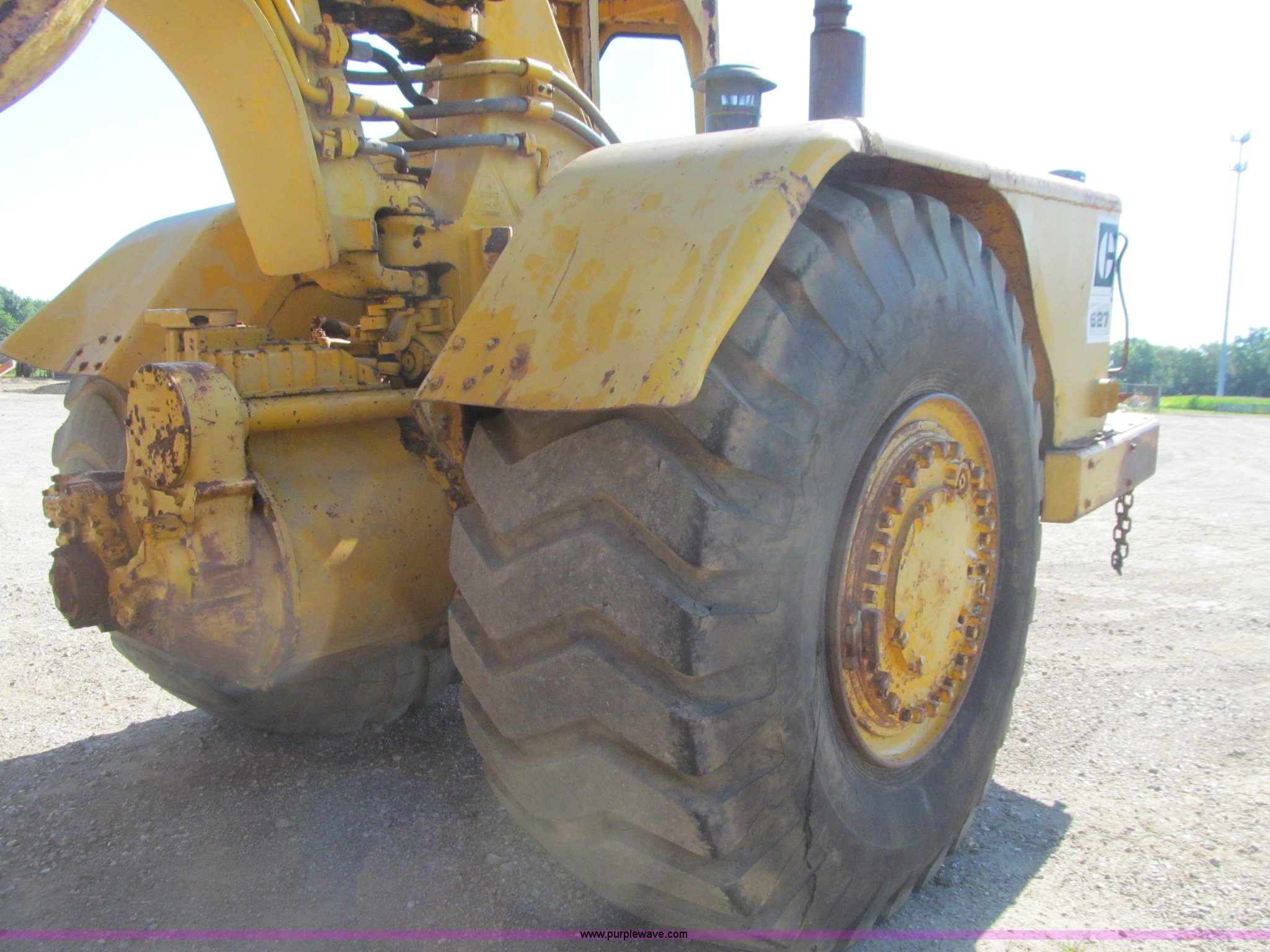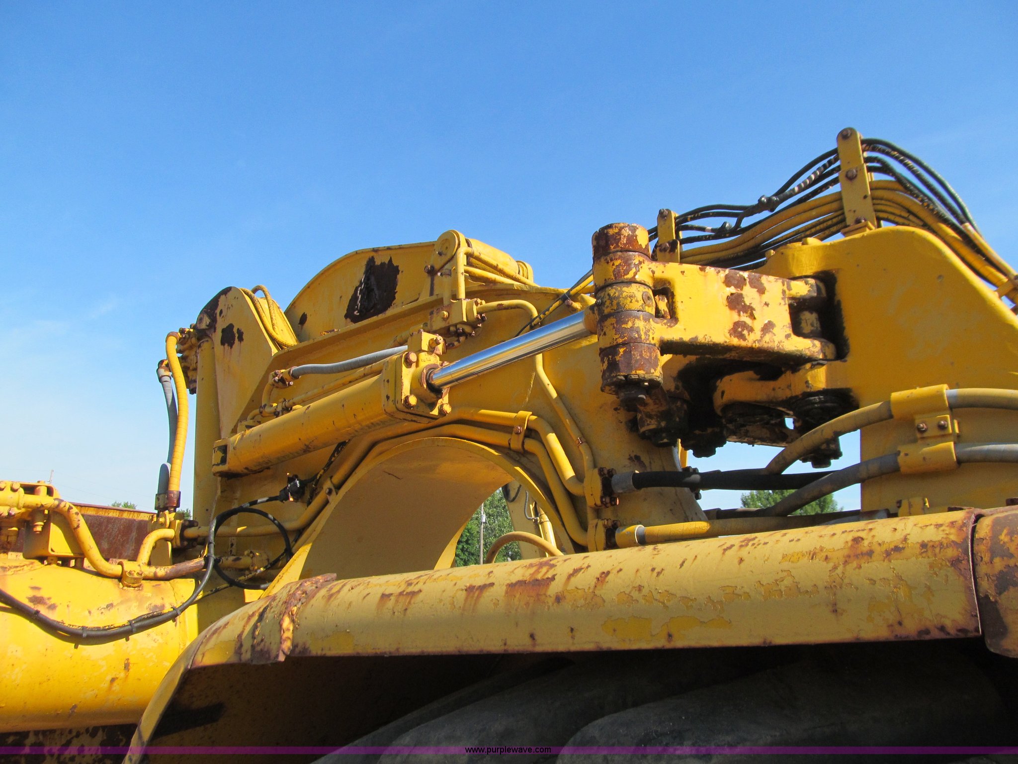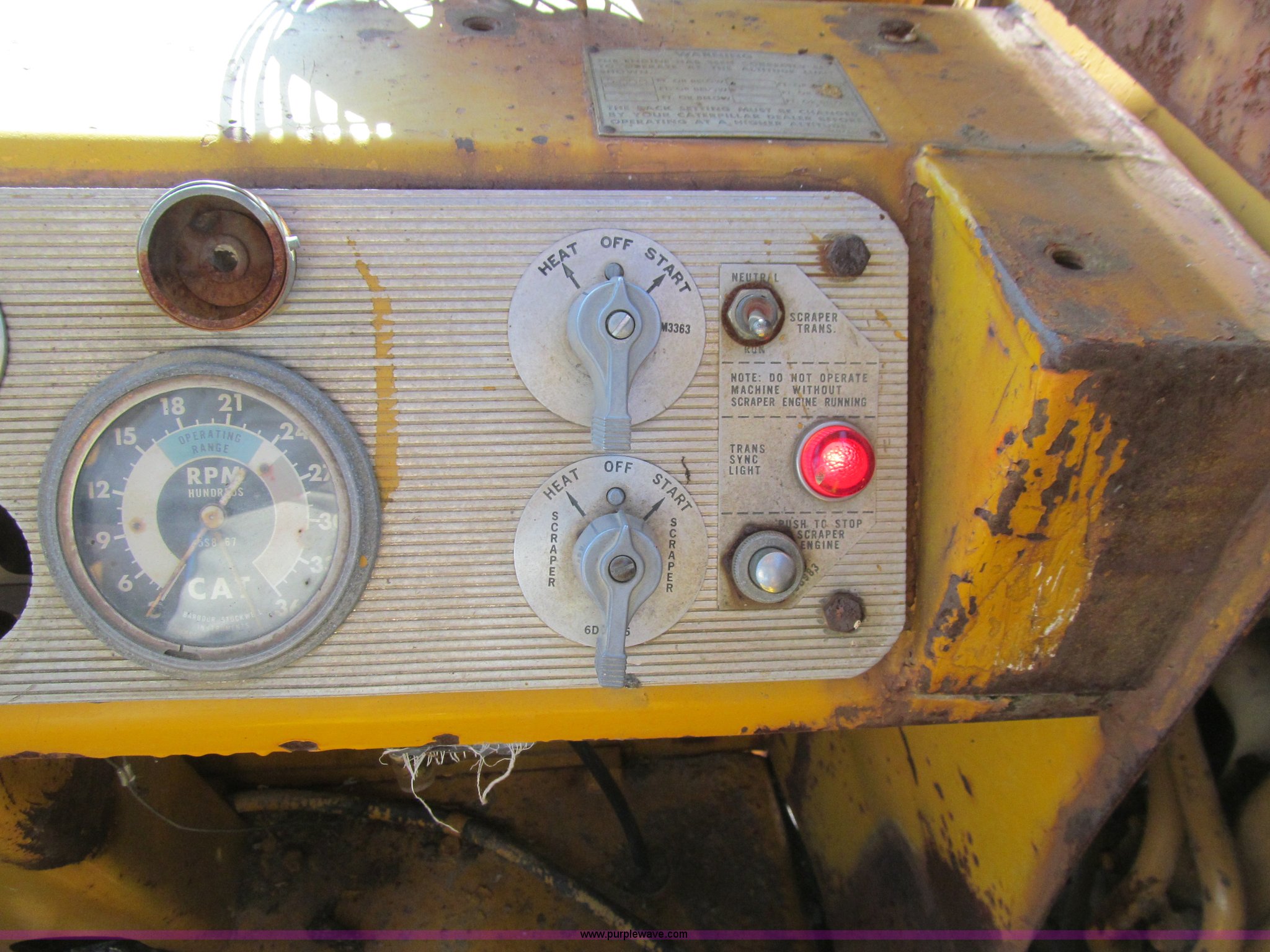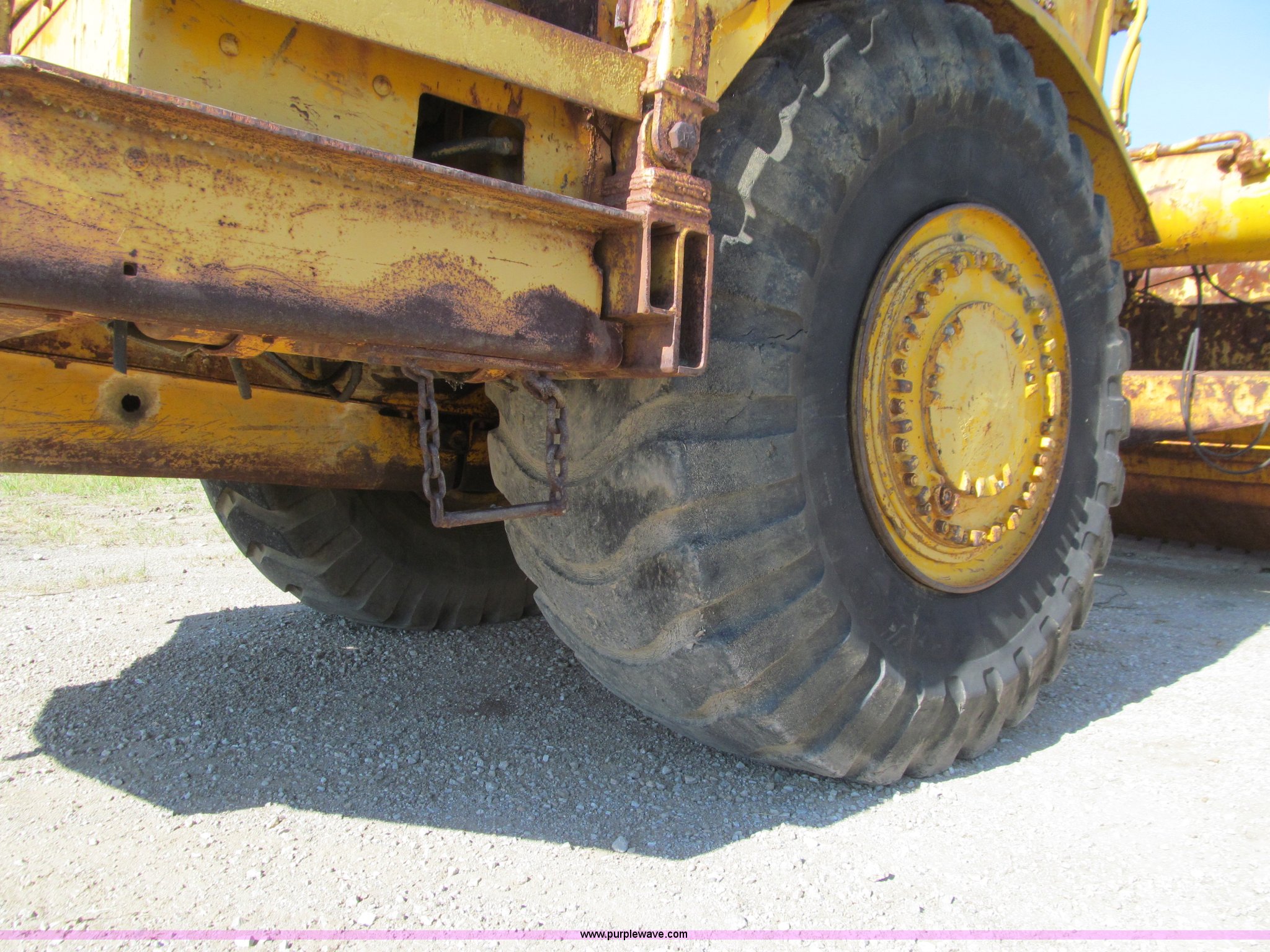 Purple Wave is selling a used Conventional Scraper in Iowa. This item is a 1970 Caterpillar 627 conventional scraper with the following: Caterpillar 3306 six cylinder turbo diesel engine, Glow plugs, Block heater, Powershift transmission, 8F-1R gears, OROPS, Suspension seat, 20 cubic yard capacity, Hydraulic lift, Lever scraper controls, Caterpillar 3306 six cylinder turbo diesel rear engine, 29.5R29 tires, 65,560 lbs. base operating weight, Rear transmission fourth through six gears inoperable, Front engine replaced, Serial 50K558