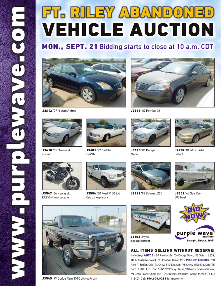 SOLD! September 21 Ft. Riley Abandoned Vehicle Auction