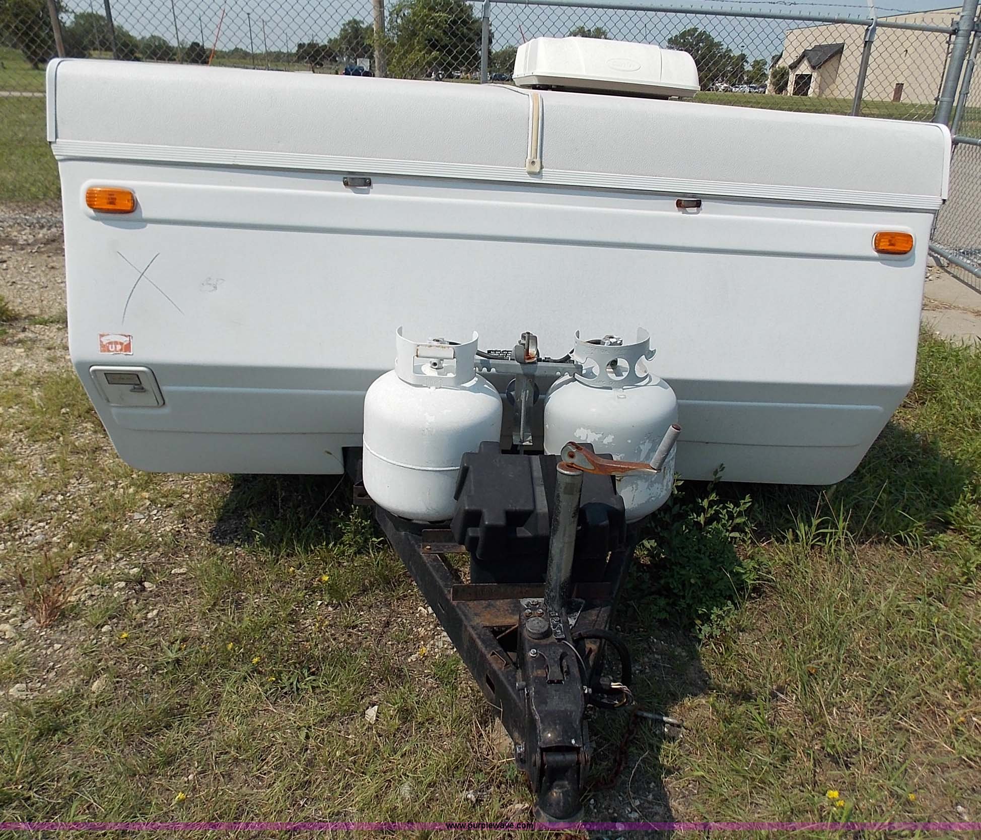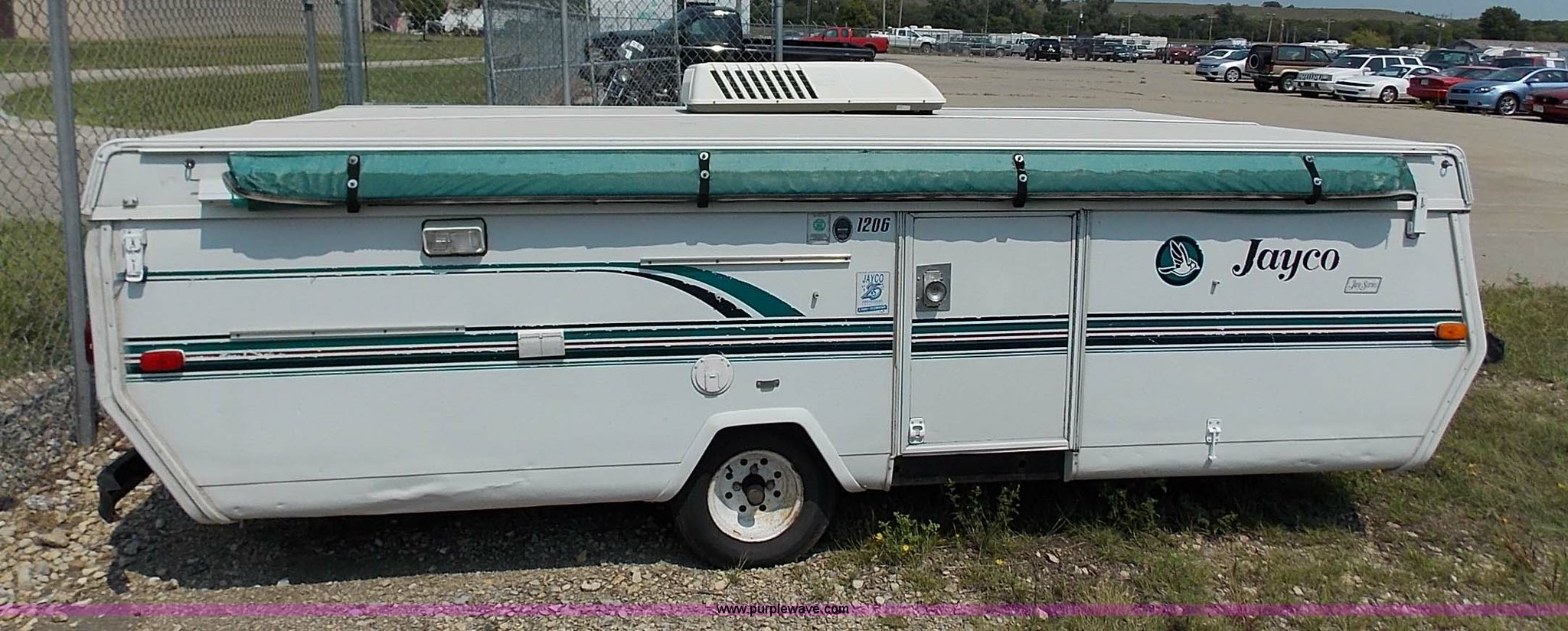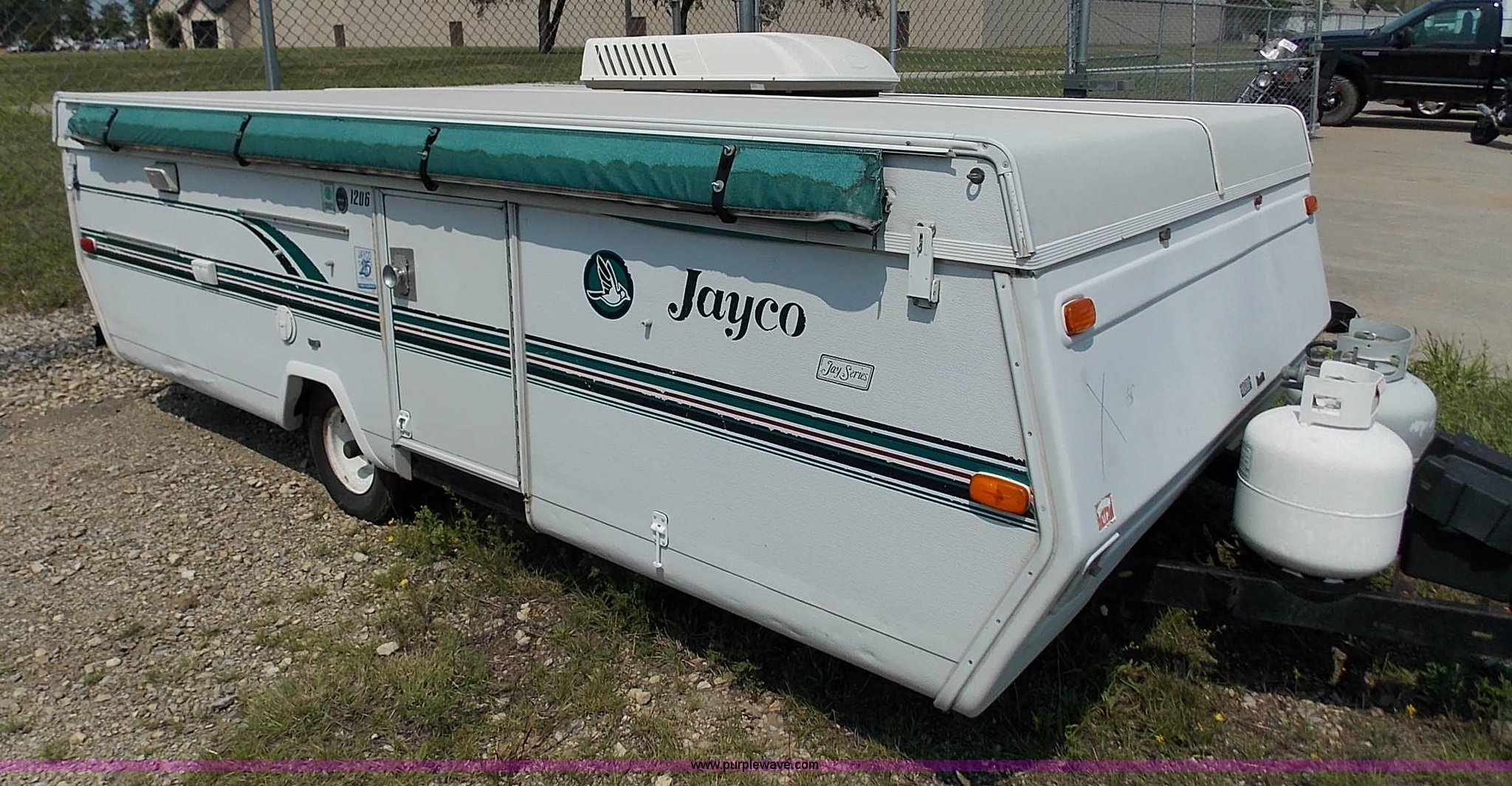 Purple Wave is selling a used RV in Kansas. This item is a Jayco pop up camper with the following: A/C, 2" ball hitch, Awning, (2) propane bottles, Flat tire