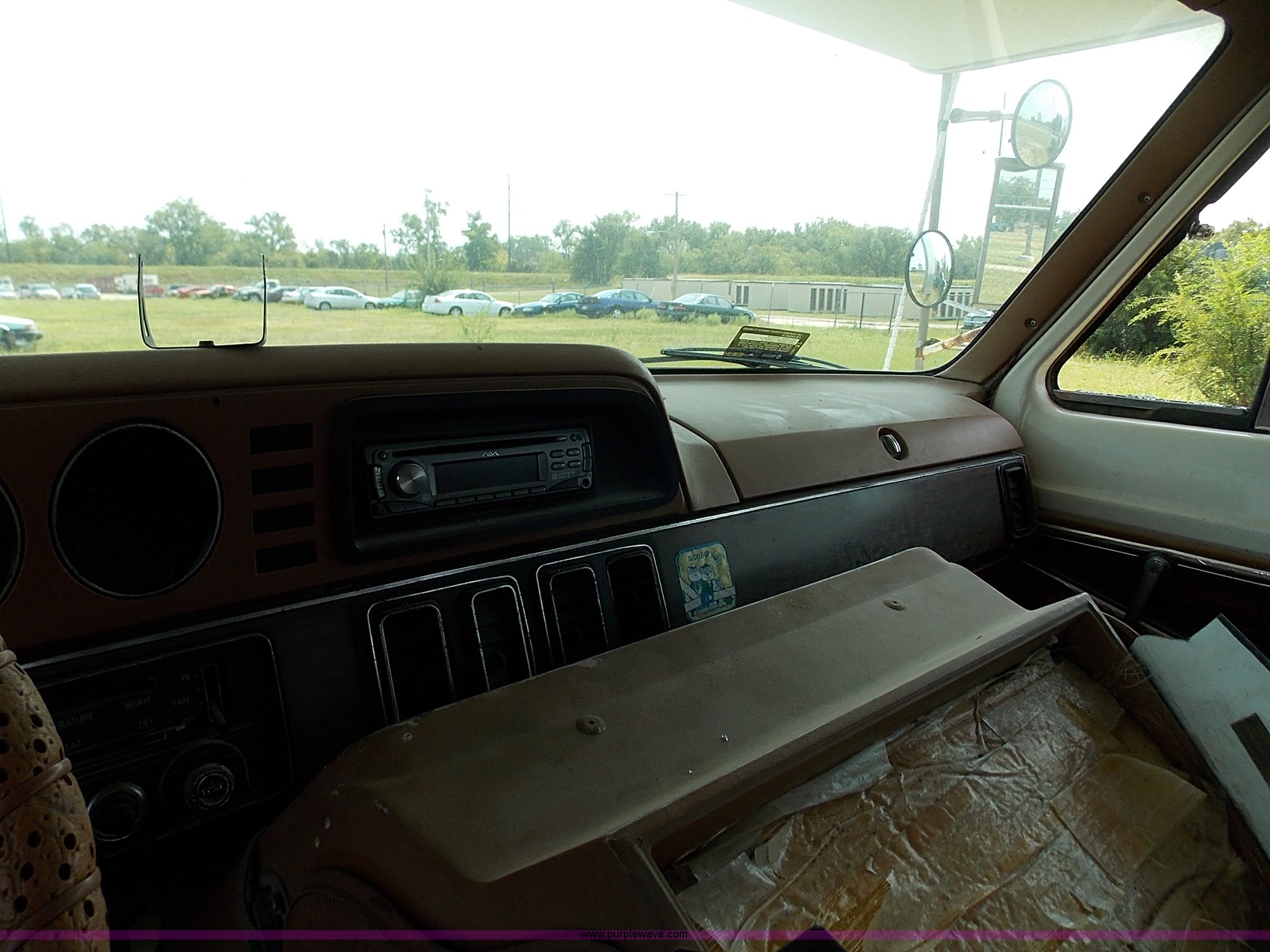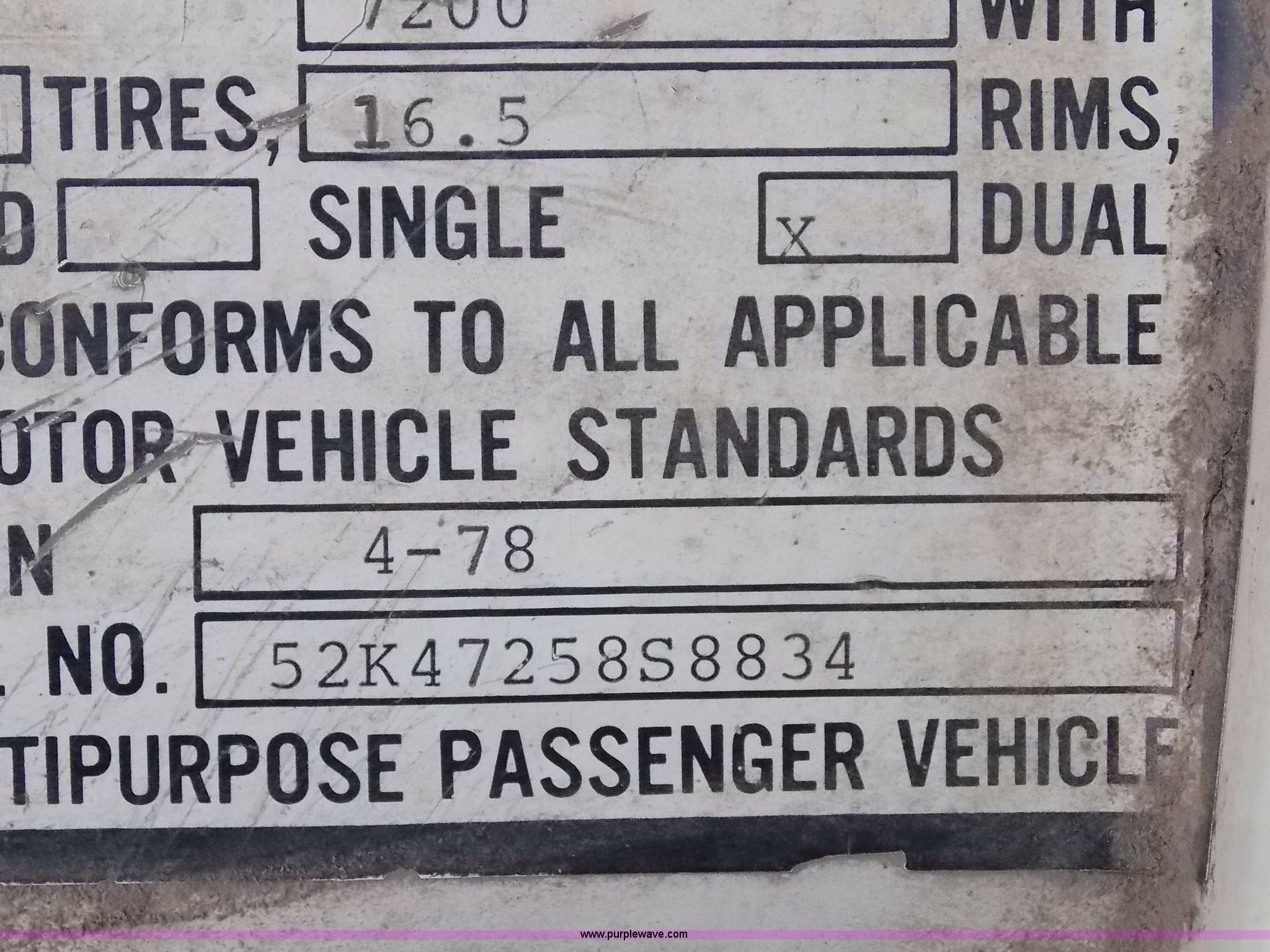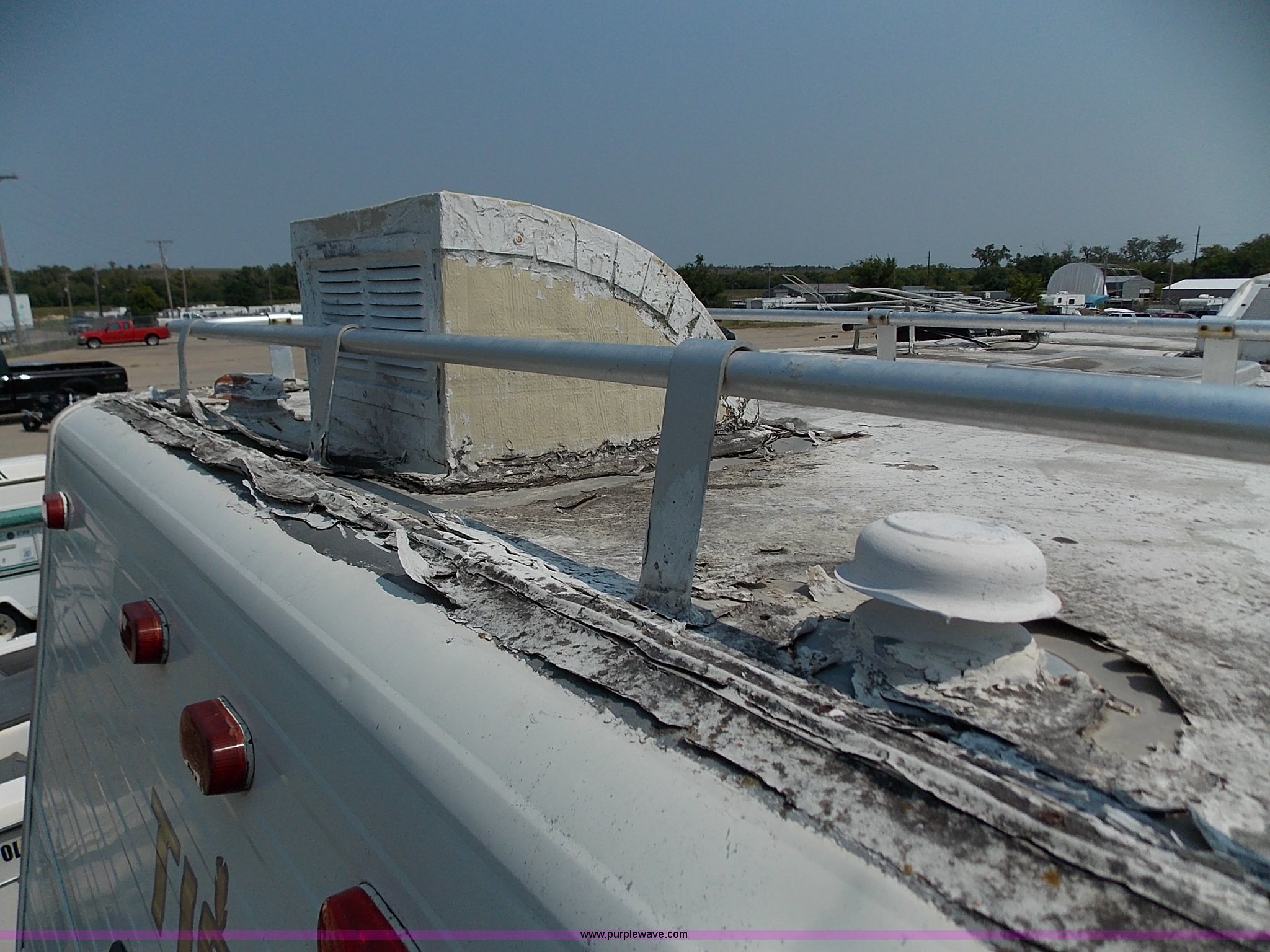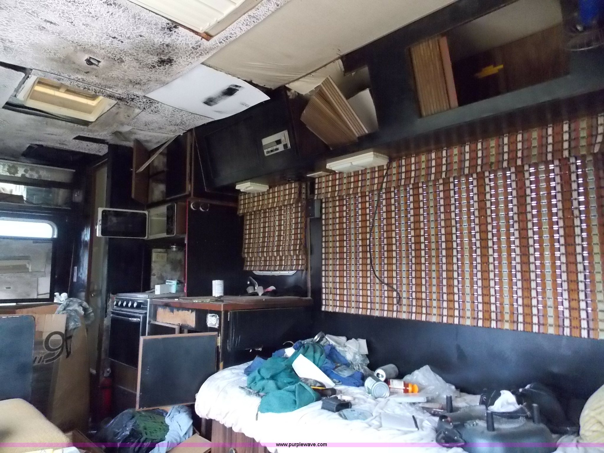 Purple Wave is selling a used RV in Kansas. This item is a 1978 Dodge Sportsman motor home with the following: 12,666 miles on odometer, V8 gas engine, Automatic transmission, Heat, AM/FM/CD, Manual locks, Cloth interior, 8.75/R16.5 tires, Interior/exterior cosmetic damage, Dents and scratches, Unknown operating condition, No keys, No air cleaner, Broken window, Unit# 2013092
