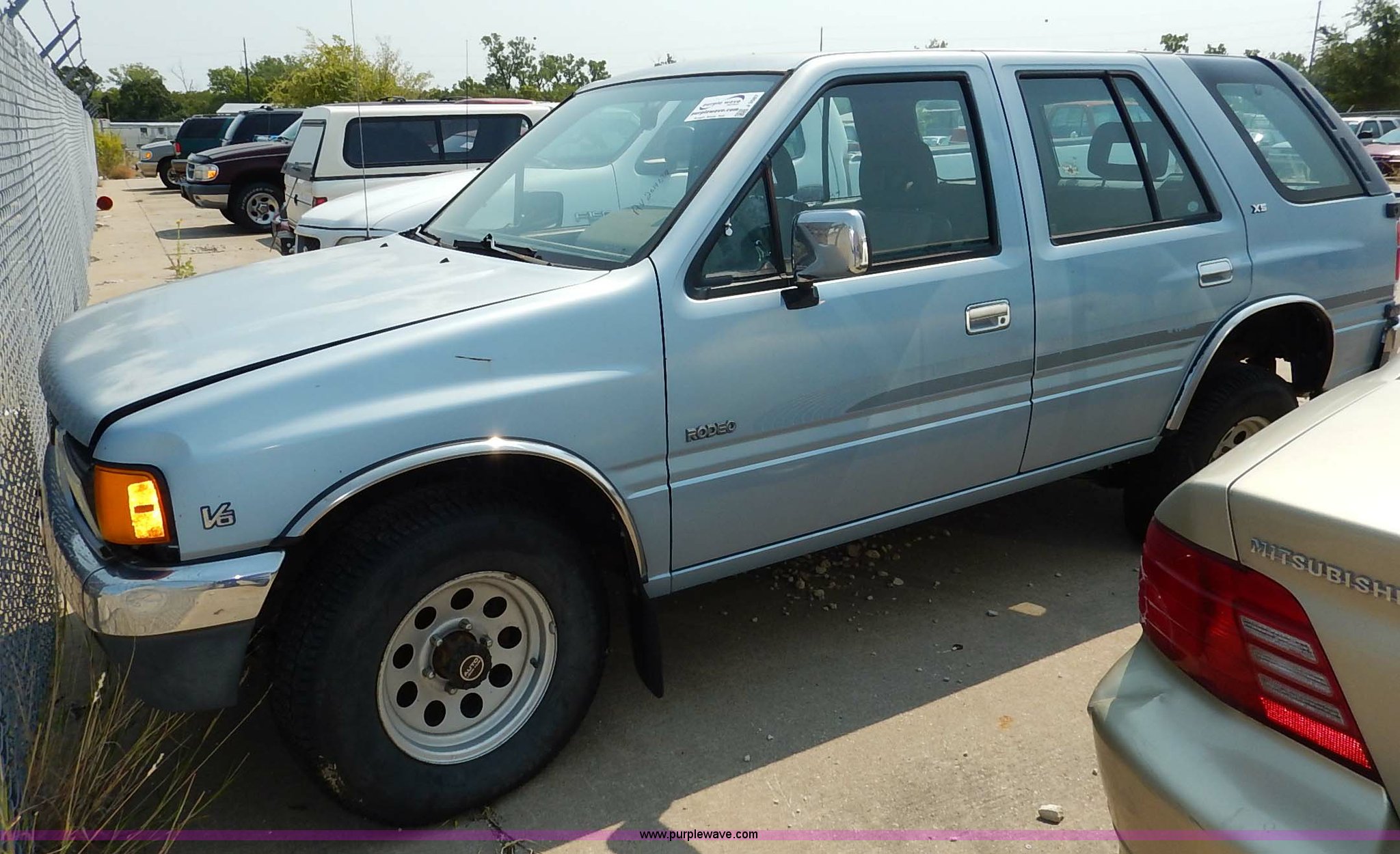 Purple Wave is selling a used Passenger Vehicle in Kansas. This item is a 1992 Isuzu Rodeo SUV with the following: 163,161 miles on odometer, 3.1L V6 OHV 12V gas engine, No transmission, AC and heat, Manual windows and locks, Cloth interior, 235/75R15 tires, No keys, Interior/exterior cosmetic damage, Dents, Scratches, Flat tires, Unknown operating condition, Unit# AV2014039