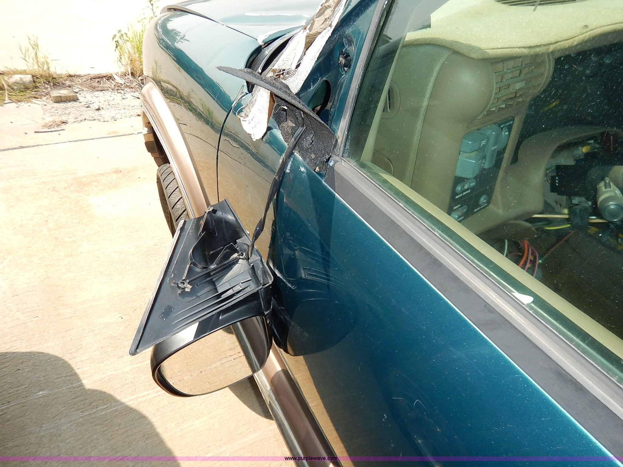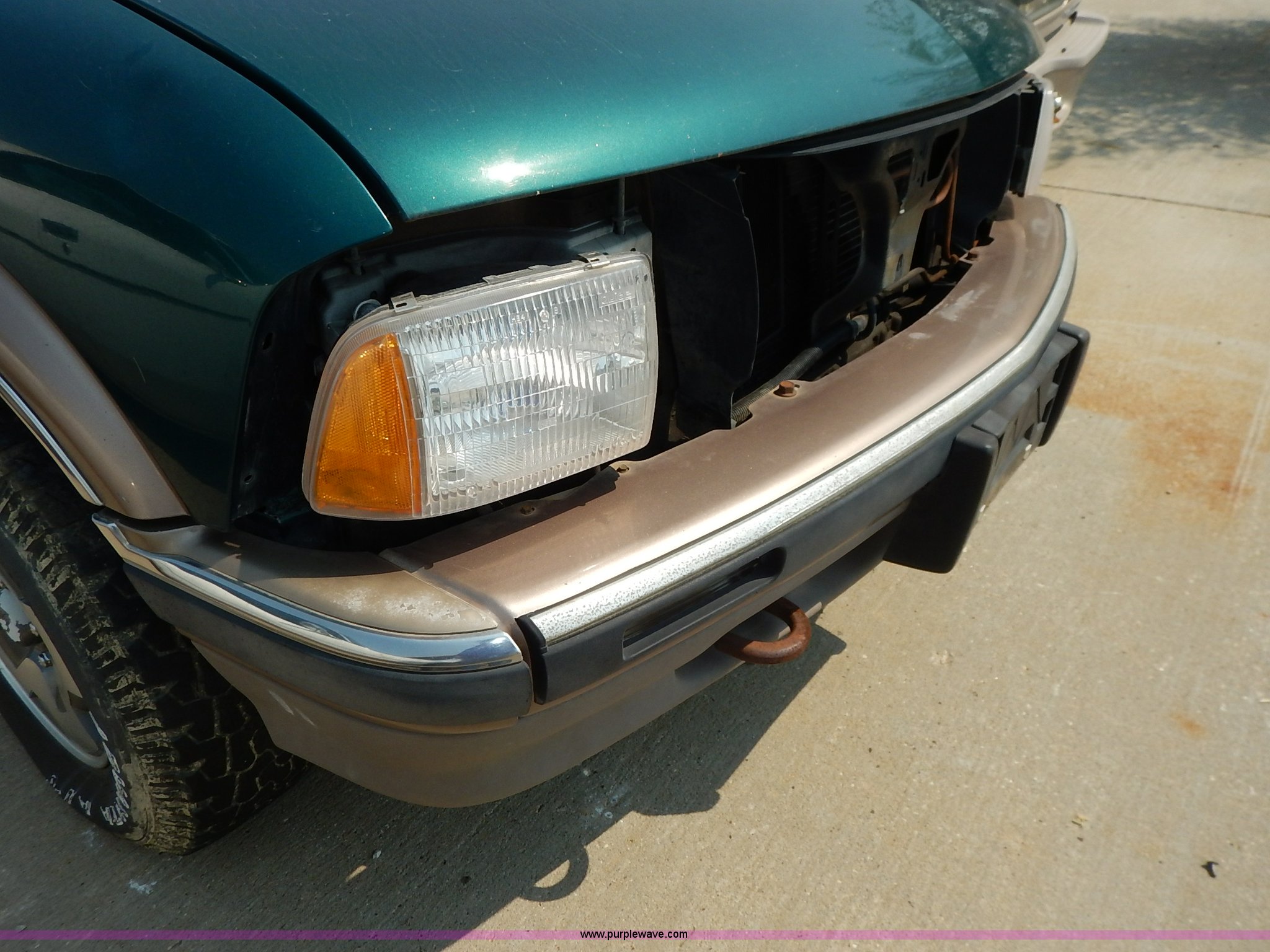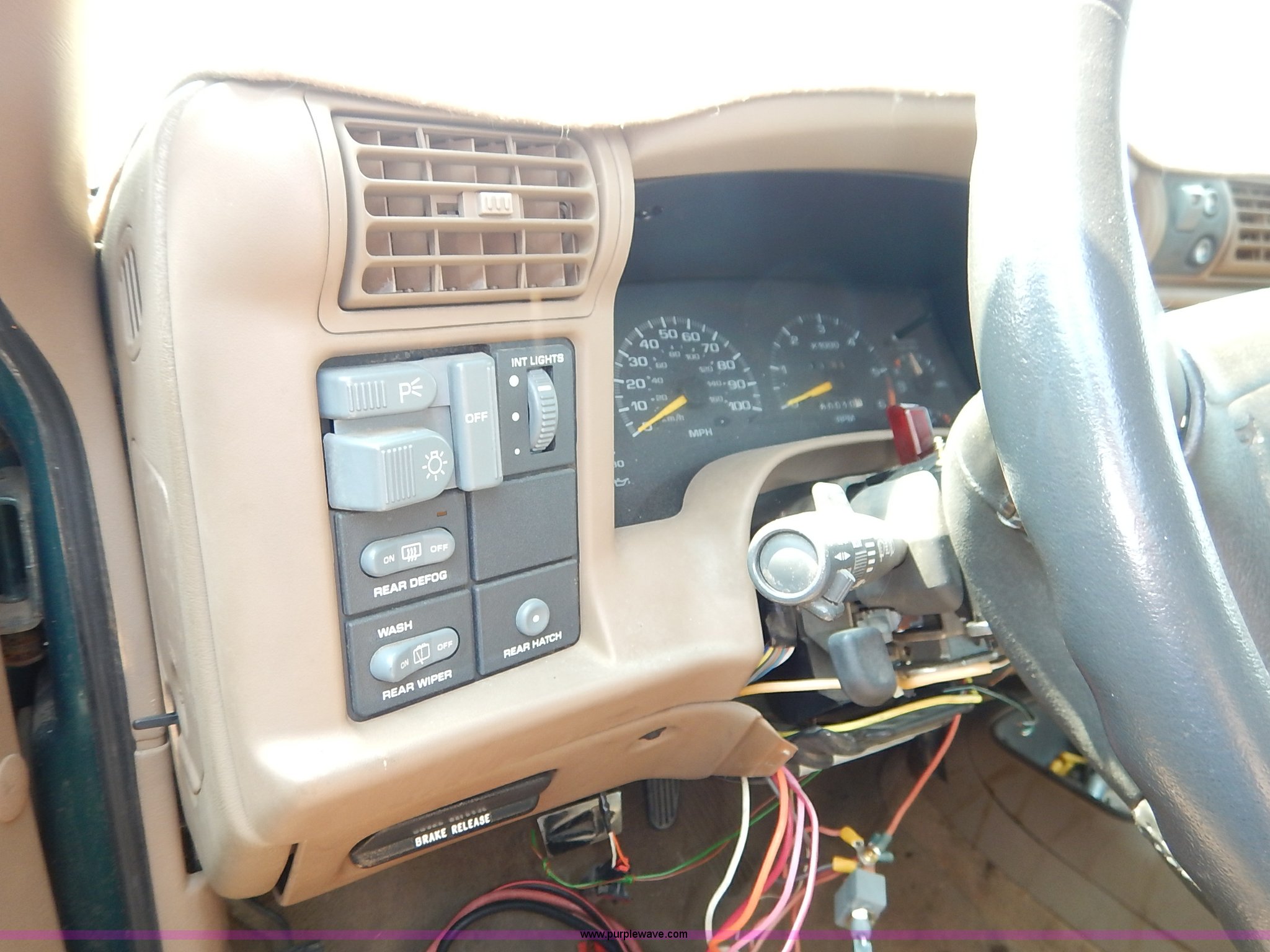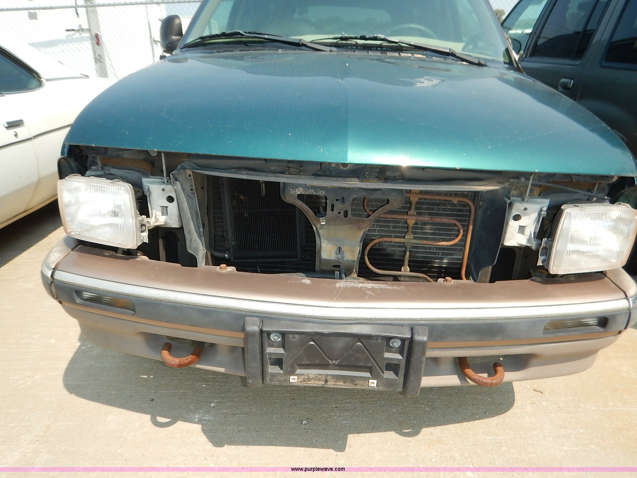 Purple Wave is selling a used Passenger Vehicle in Kansas. This item is a 1997 Chevrolet Blazer SUV with the following: 160,010 miles on odometer, 4.3L V6 OHV 12V gas engine, Automatic transmission, AC and heat, Tilt, Cruise, AM/FM/CD, Power windows, locks, mirrors, and seat, Leather interior, Receiver hitch, 235/75R16 tires, No keys, Interior/exterior cosmetic damage, Dents, Scratches, Flat tires, Unknown operating condition, Drivers mirror broken, Steering column disassembled, Unit# AV2013120