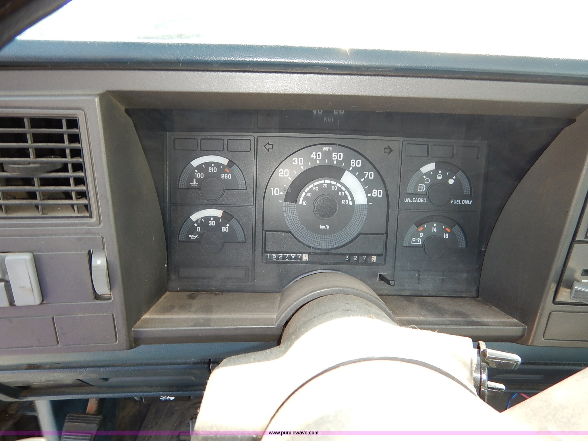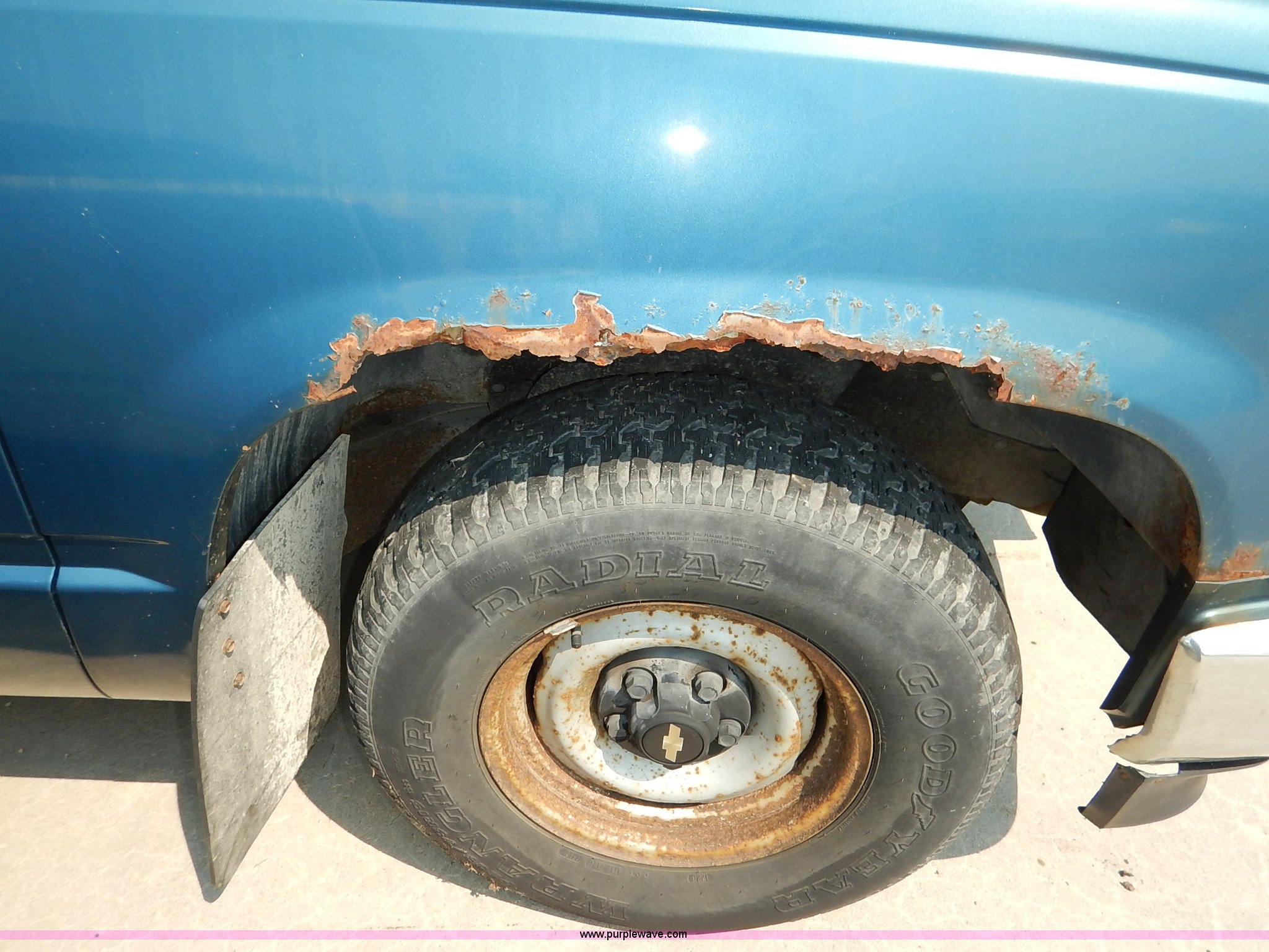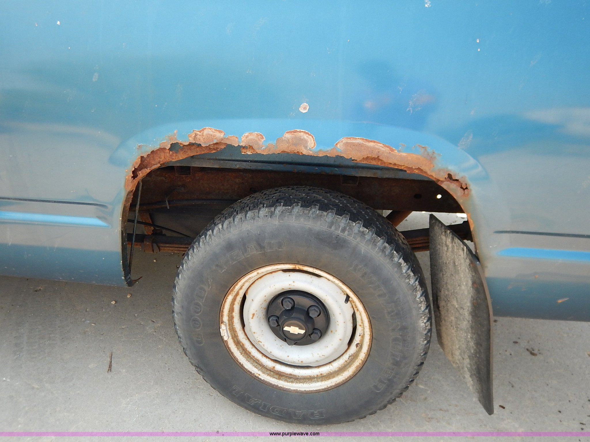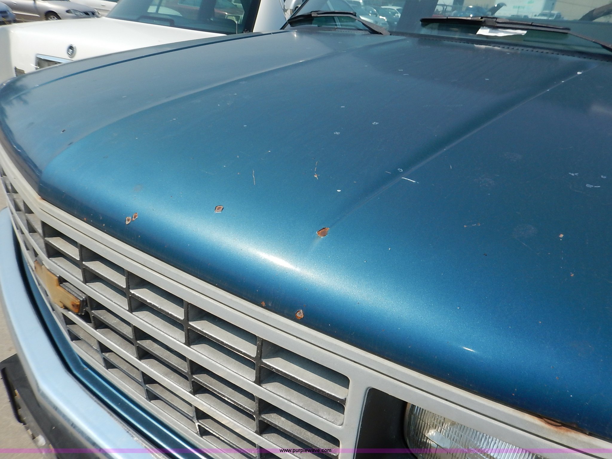 Purple Wave is selling a used 1/2 Ton Pickup or Van in Kansas. This item is a 1991 Chevrolet Cheyenne 1500 pickup with the following: 162,797 miles on odometer, 5.0L V8 gas engine, Five speed manual transmission, AC and heat, AM/FM/CD, Manual windows and locks, Cloth interior, Long bed, Receiver hitch, 235/75R15 tires, Interior/exterior cosmetic damage, No keys, Dents and scratches, Unknown operating condition, Flat tires, Rust, Unit# AV2015008