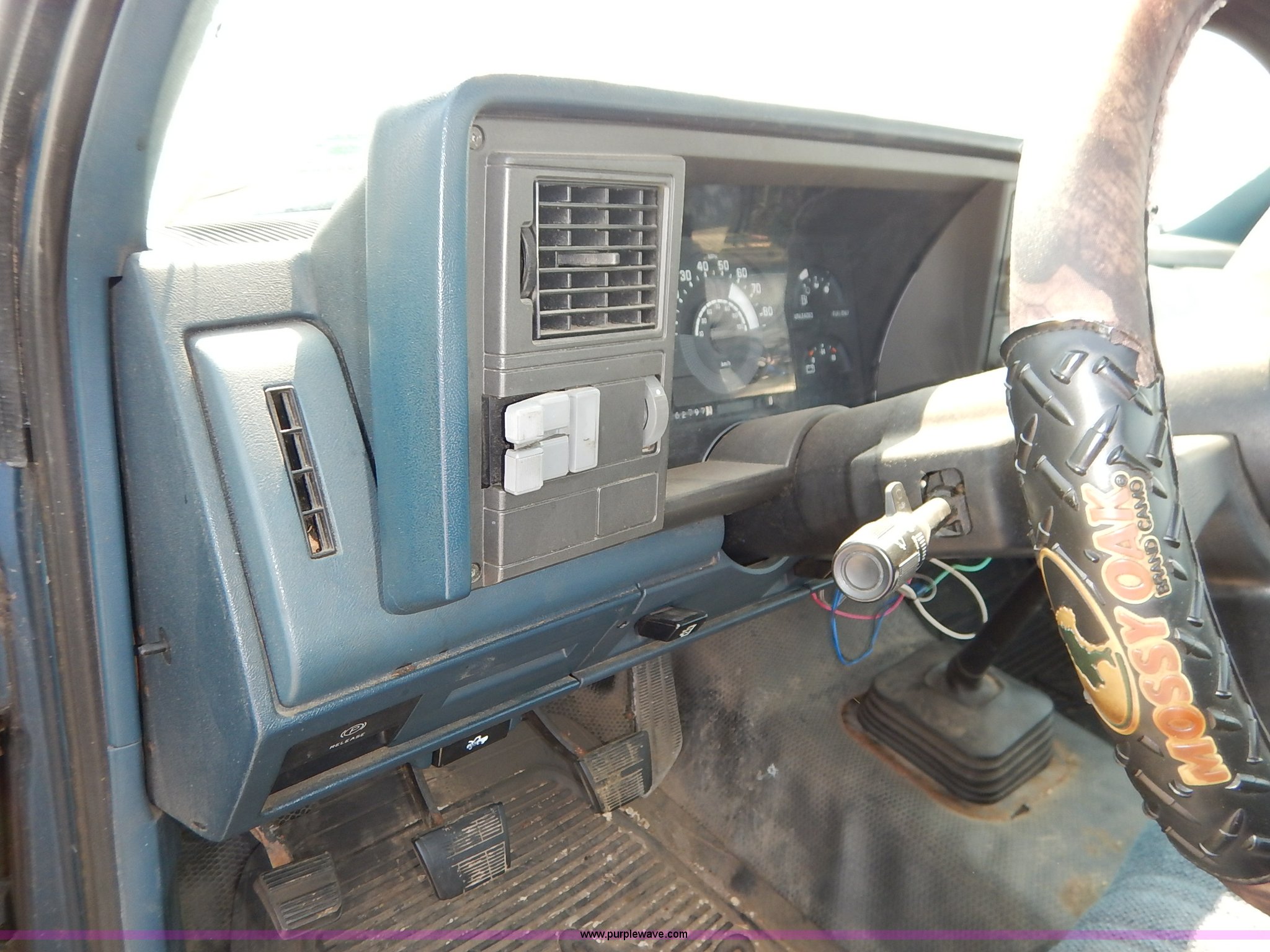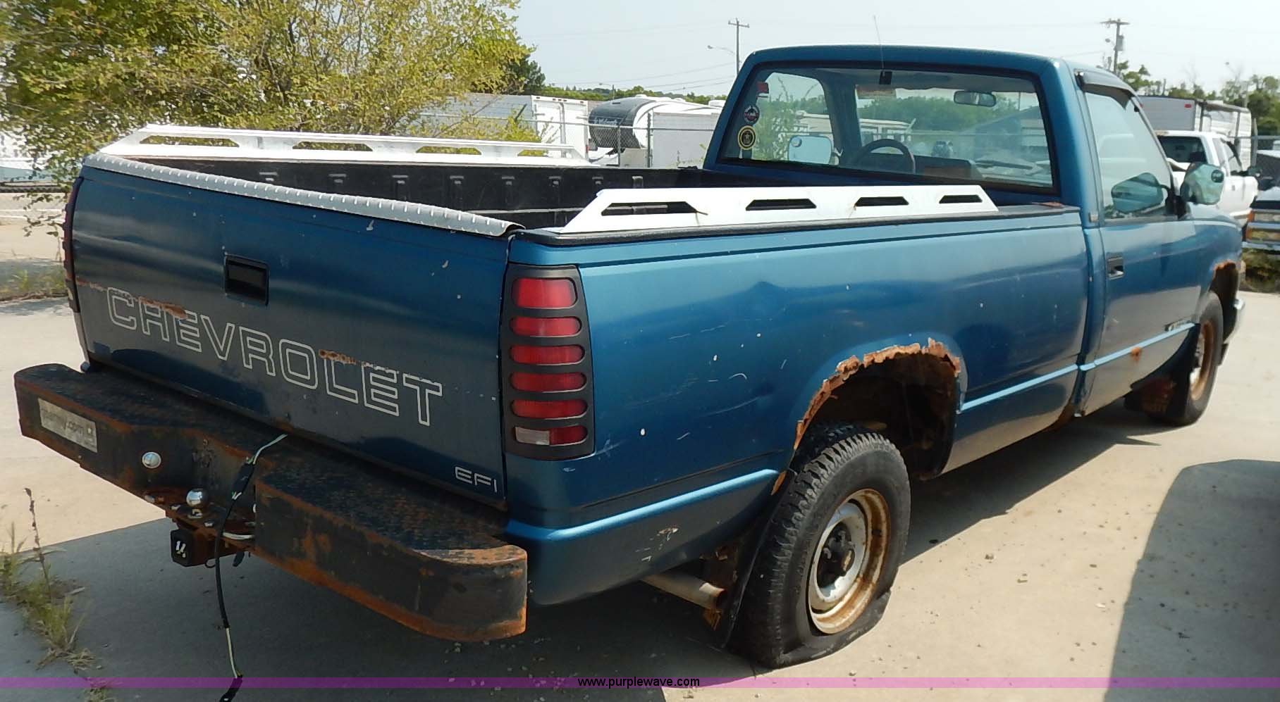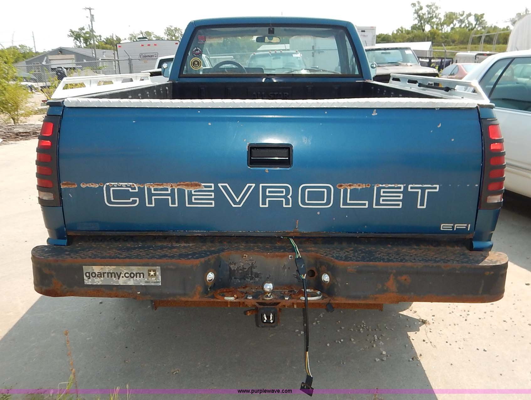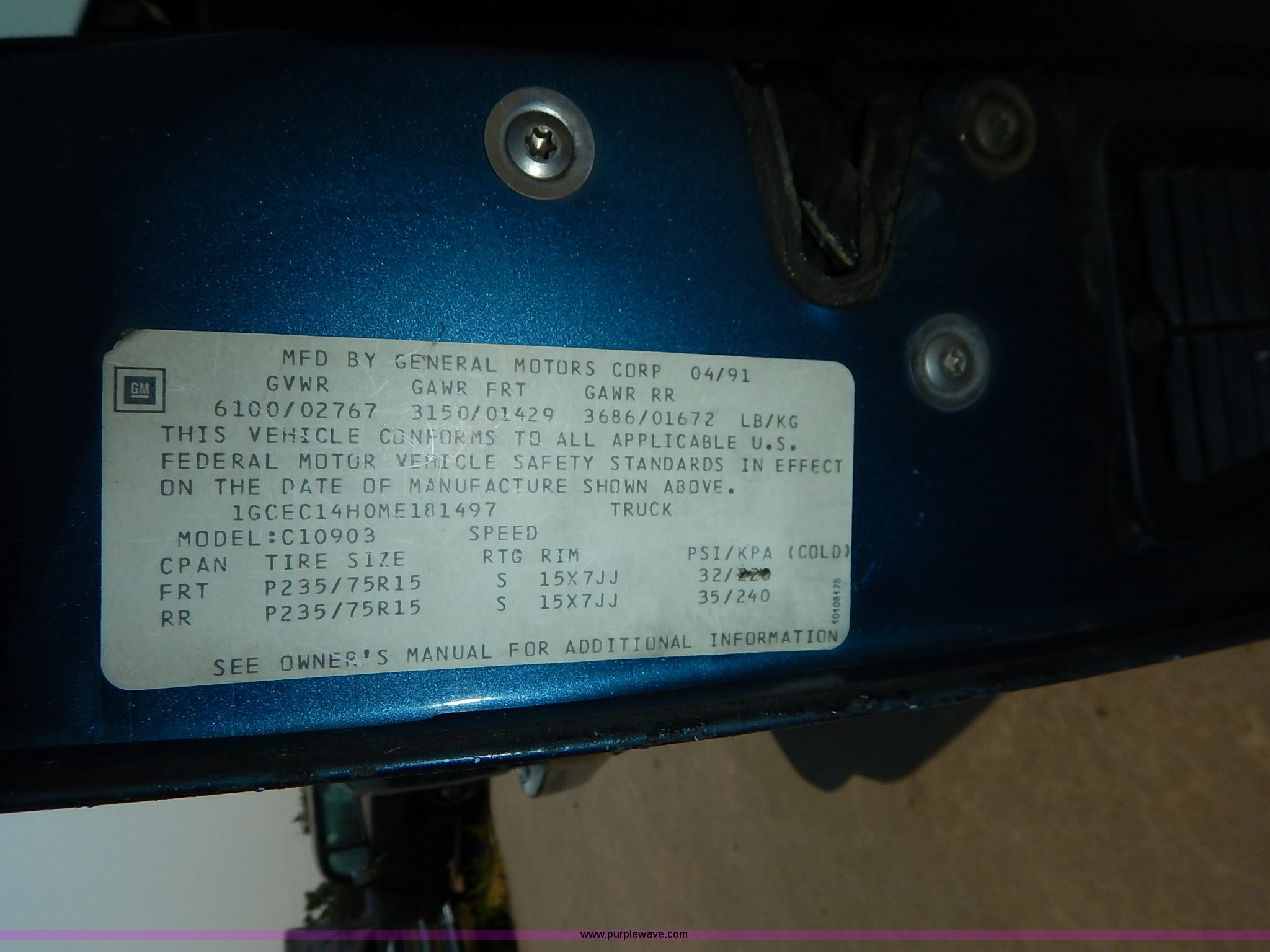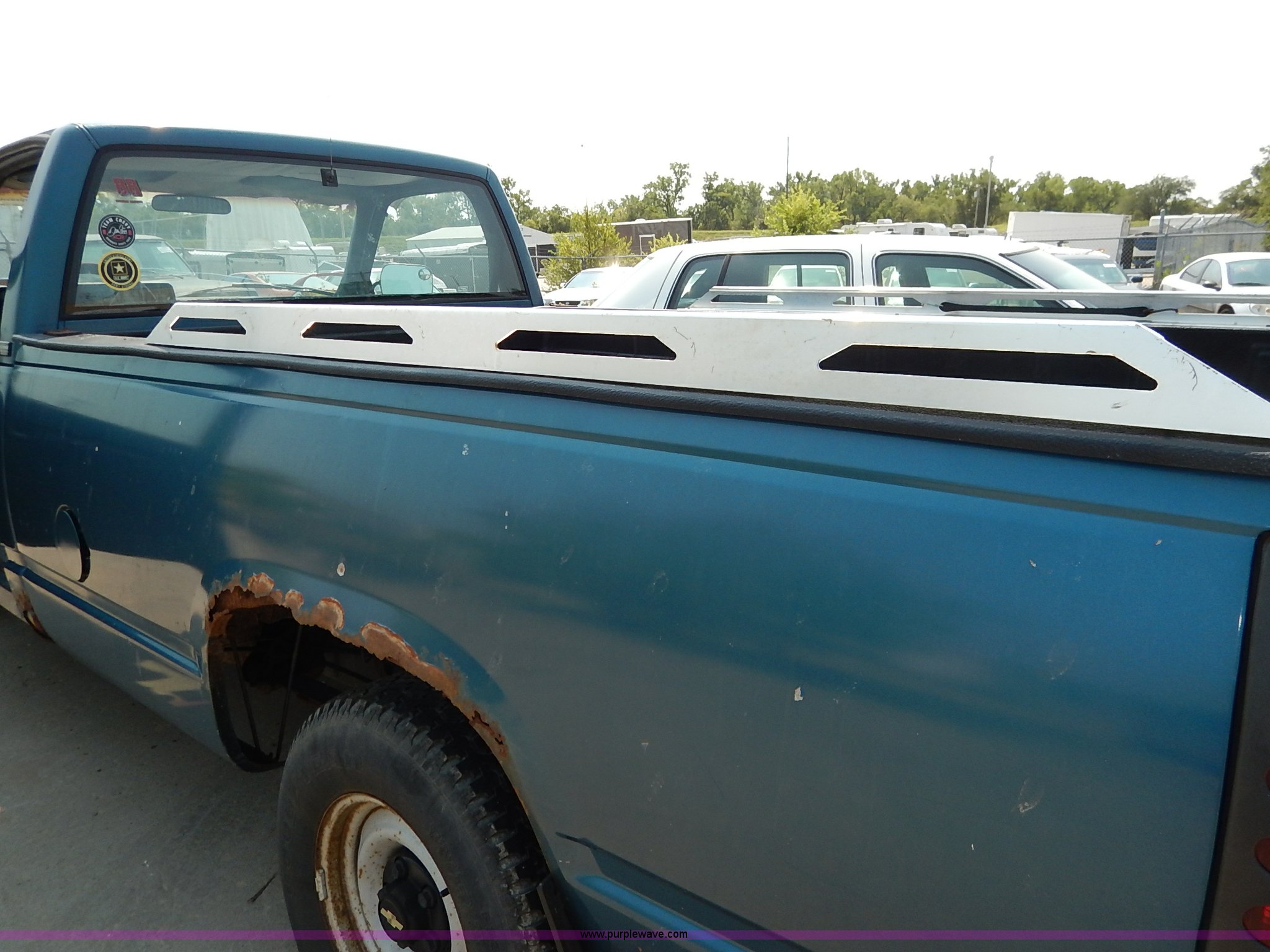 Purple Wave is selling a used 1/2 Ton Pickup or Van in Kansas. This item is a 1991 Chevrolet Cheyenne 1500 pickup with the following: 162,797 miles on odometer, 5.0L V8 gas engine, Five speed manual transmission, AC and heat, AM/FM/CD, Manual windows and locks, Cloth interior, Long bed, Receiver hitch, 235/75R15 tires, Interior/exterior cosmetic damage, No keys, Dents and scratches, Unknown operating condition, Flat tires, Rust, Unit# AV2015008